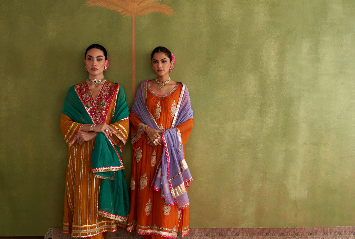 Green Rectangle Gota Yoke Rasiya Kurta Set
