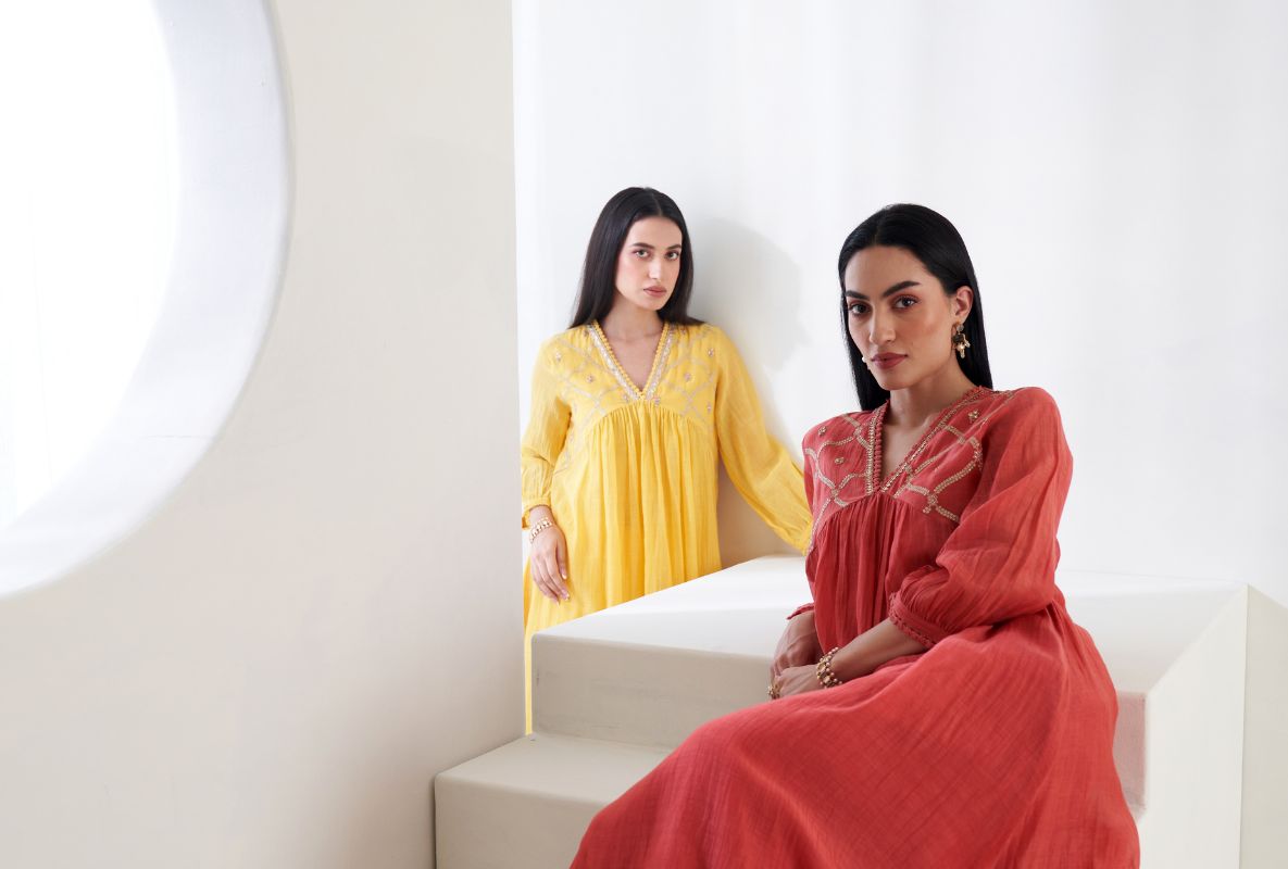 Madhuri Grover in Red Thread Work Tissue Yoke Ruhi Kurta Set