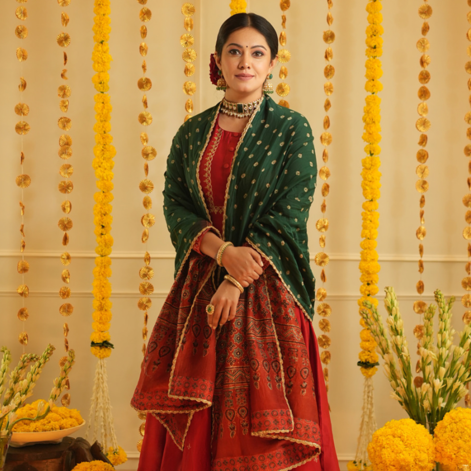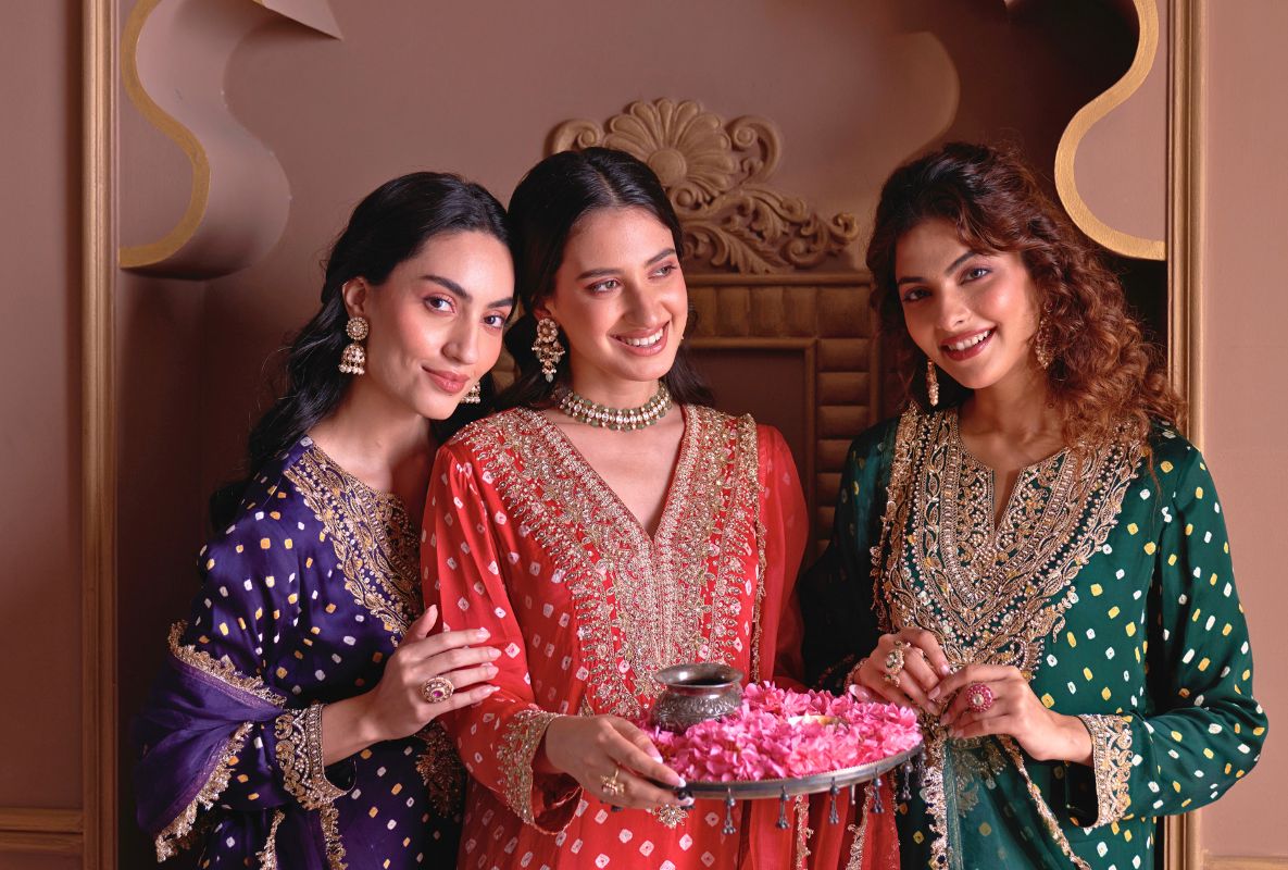 Green Bandhej Rasiya Kurta Set