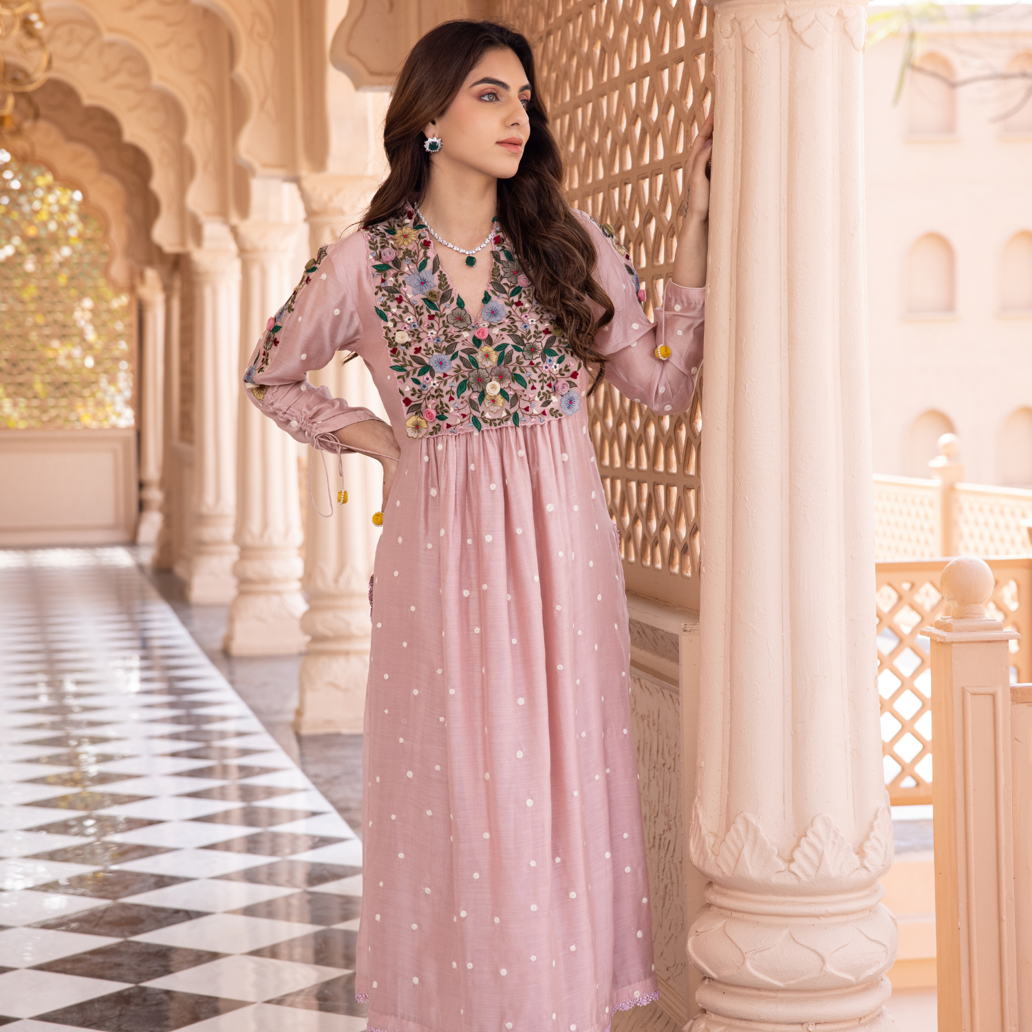 Meghna Nayyar in Light Pink Pakhi Yoke Pheran Long Kurta Set