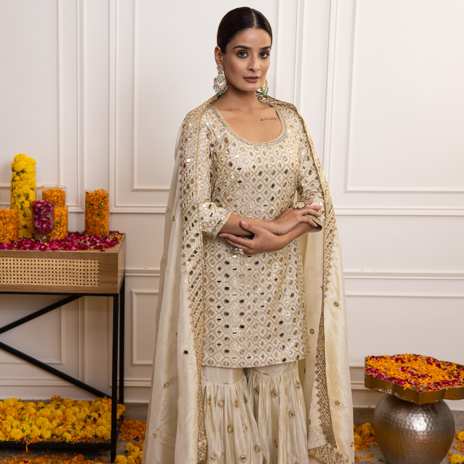 Smridhi Oberoi In Ivory Mirror Hoor Gharara Set