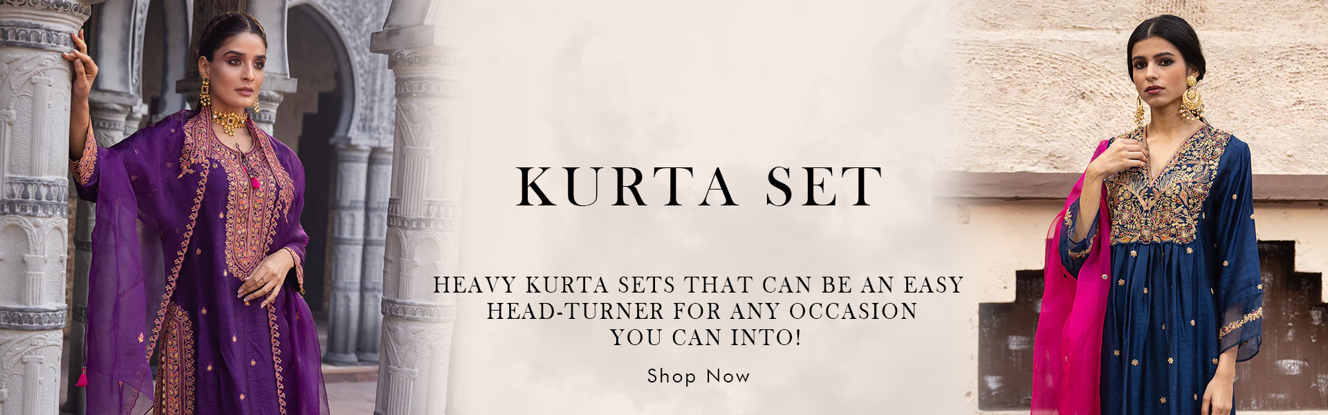 Blue Bead Yoke Rasiya Kurta Set
