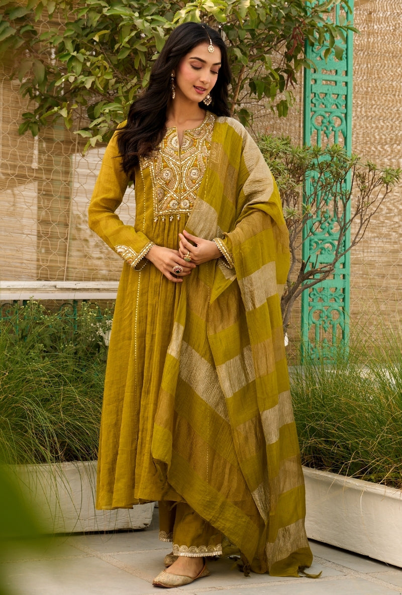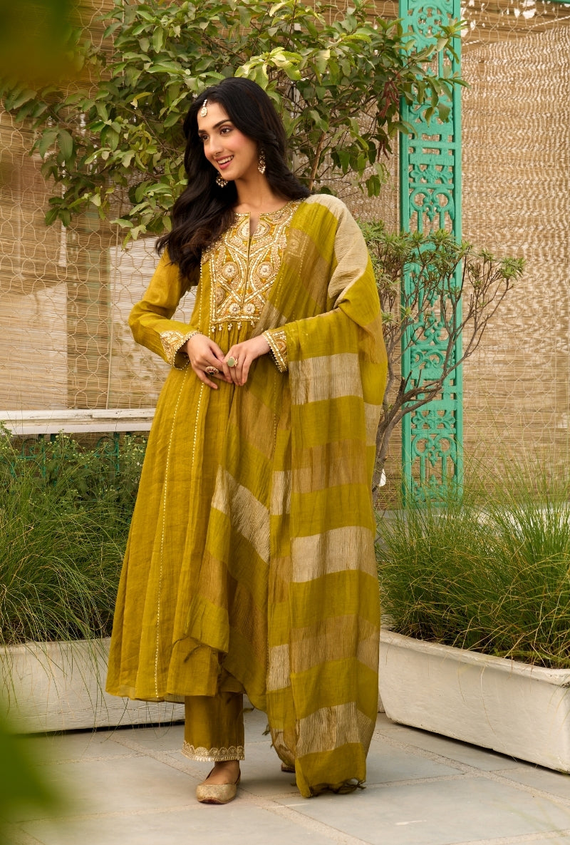 Mustard Empire Cut Applique Anaardana Anarkali Set