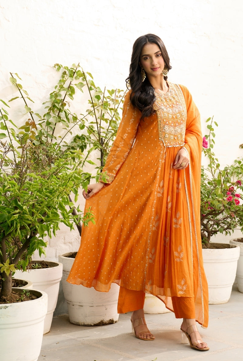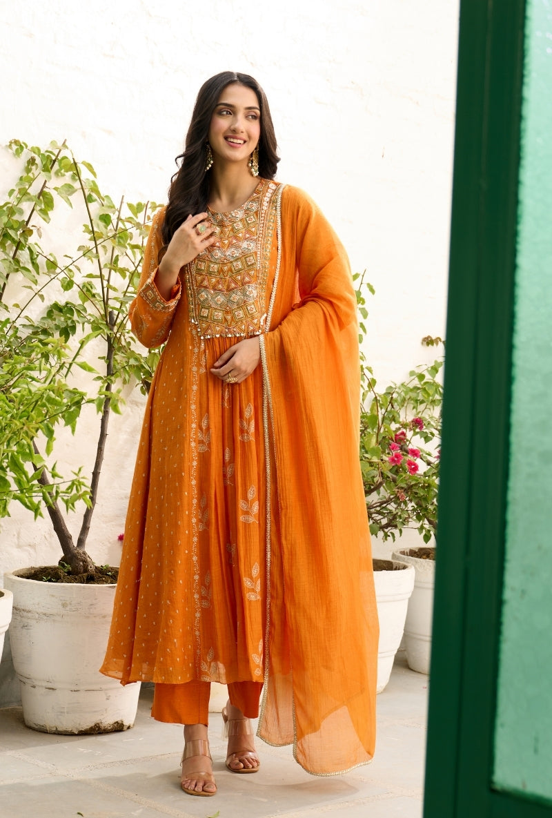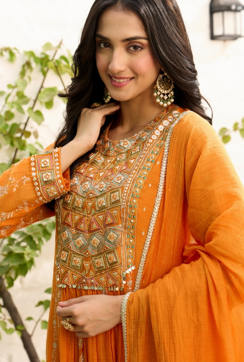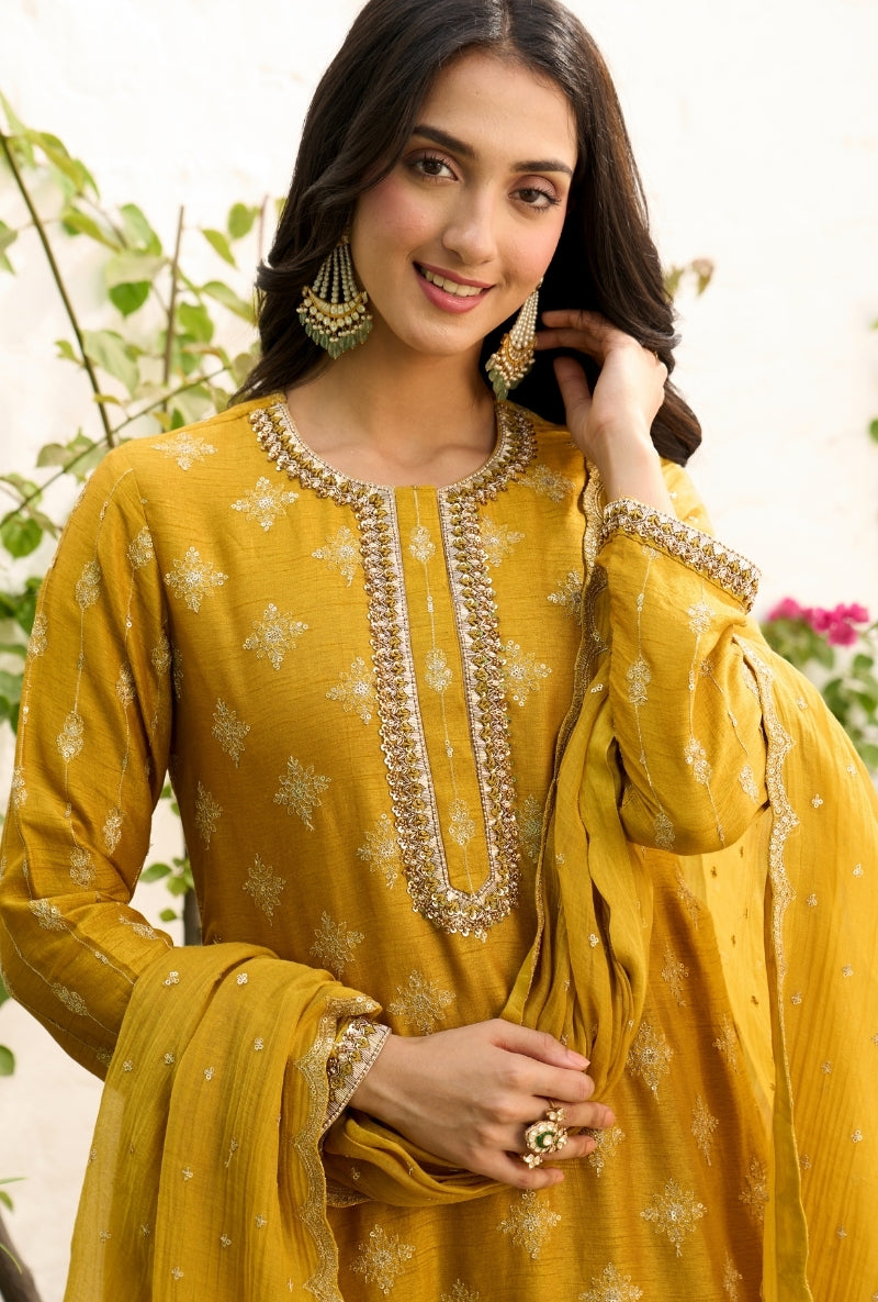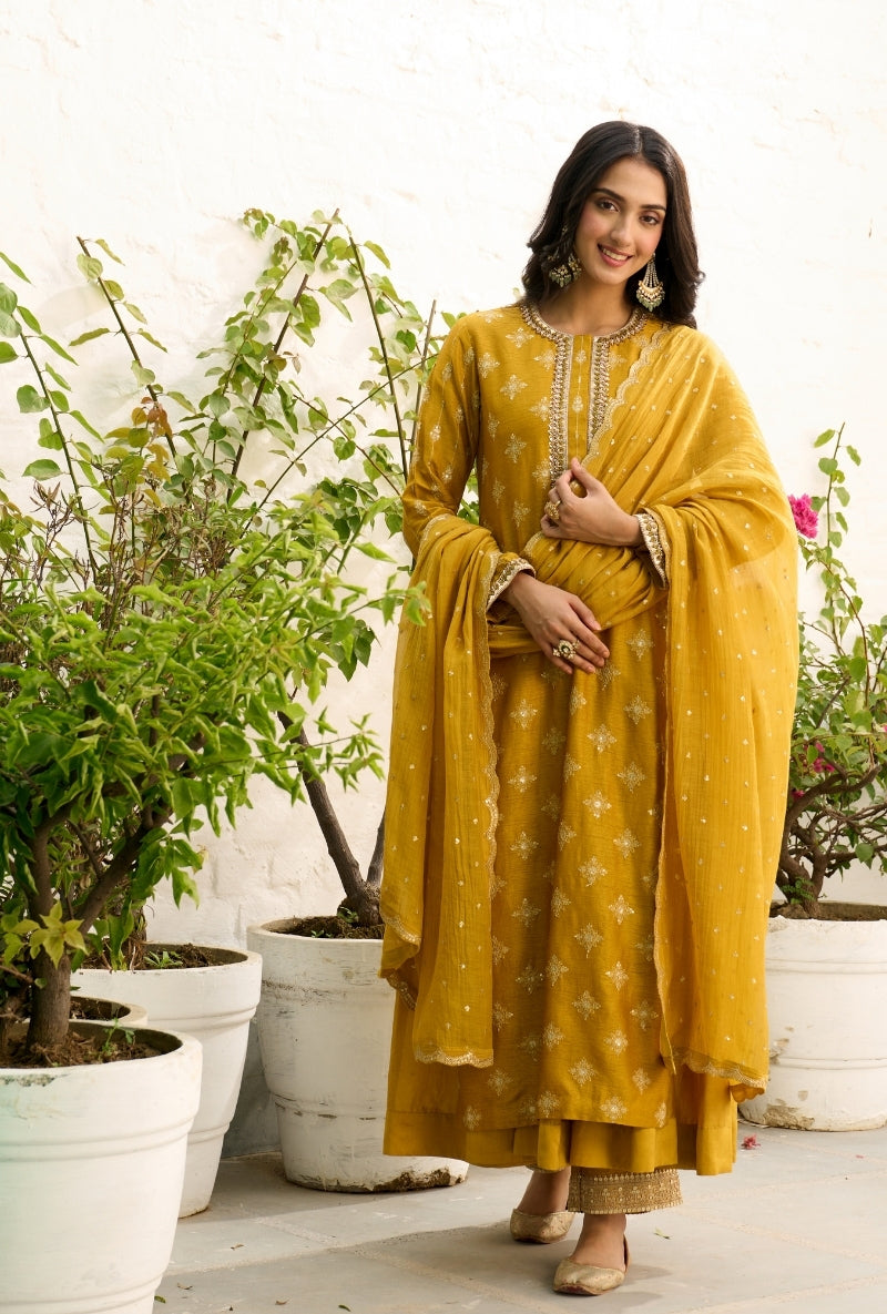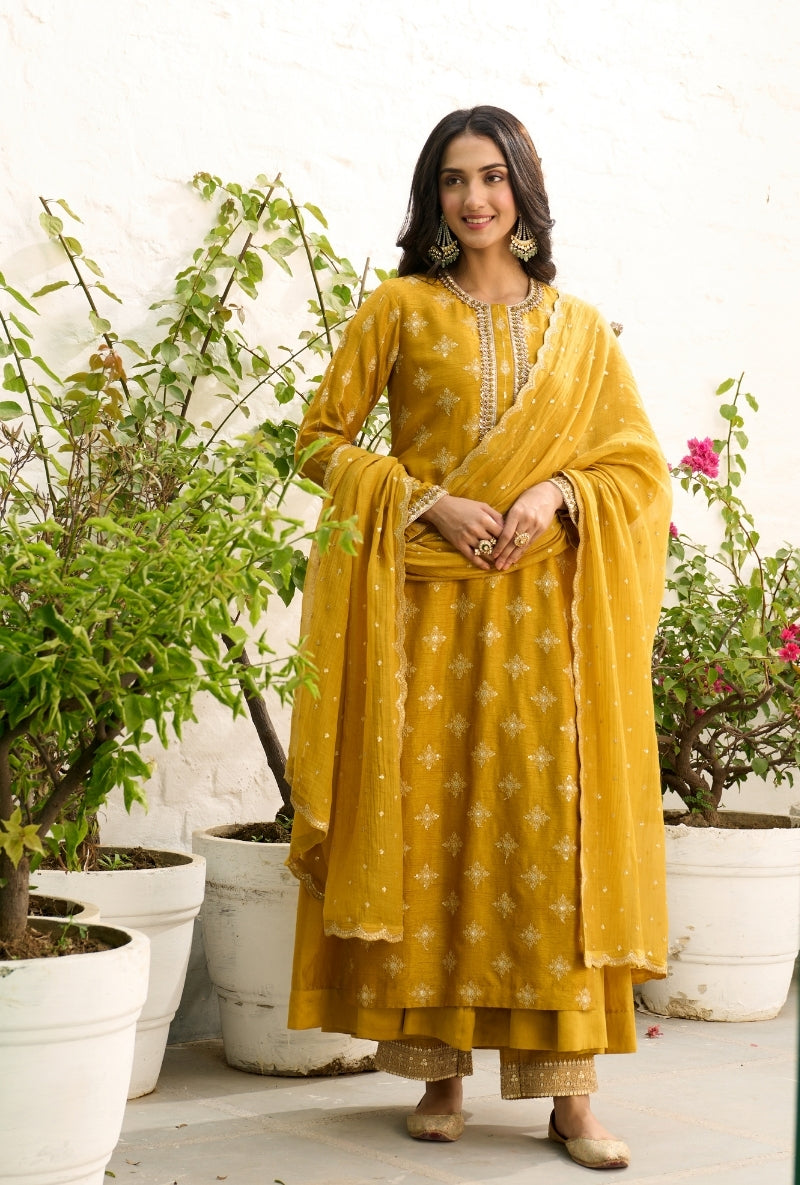 Mustard Heavy Yoke Paneled Sabah Anarkali Set