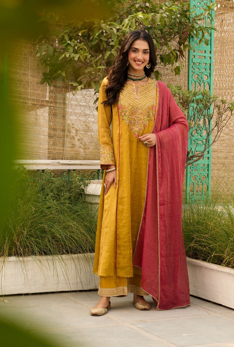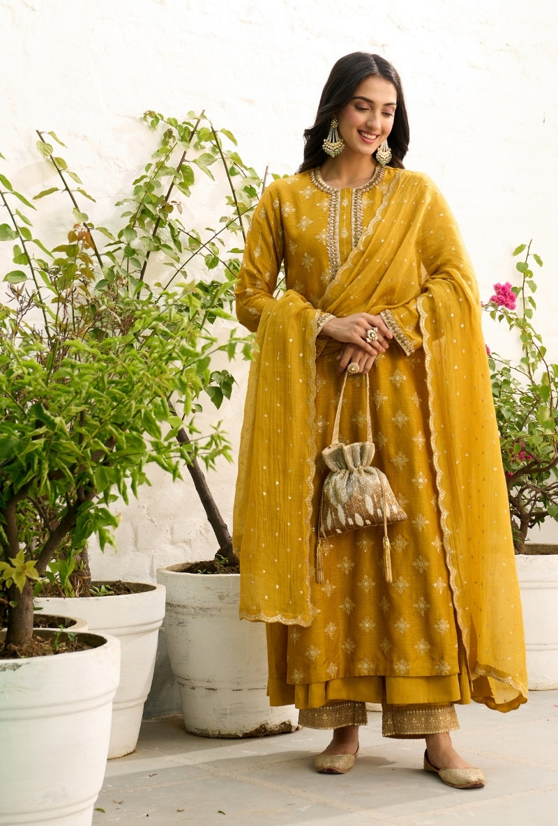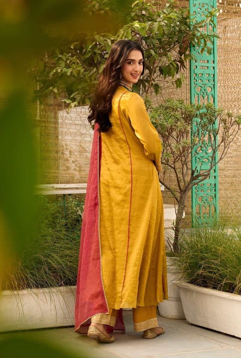 Mustard Overlapping Neckline Anaardana Kurta Set