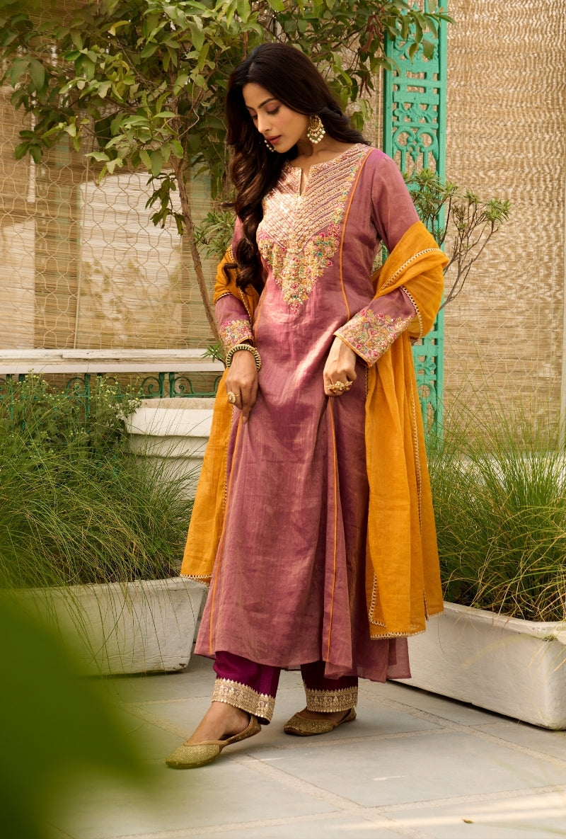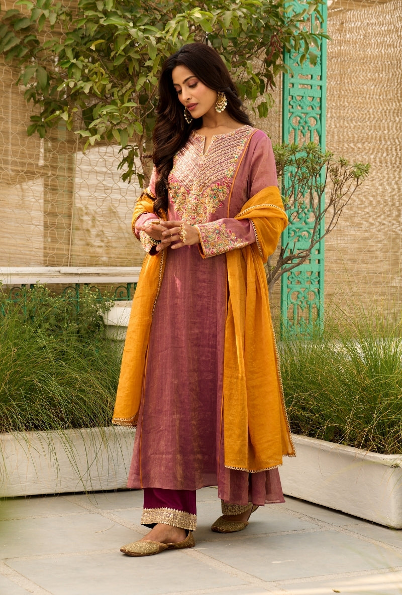 Mustad Hand Embroidered Yoke Anaardana Kurta Set