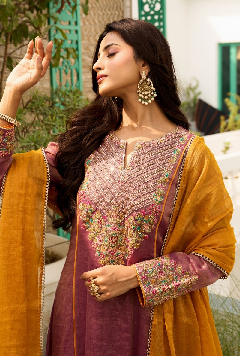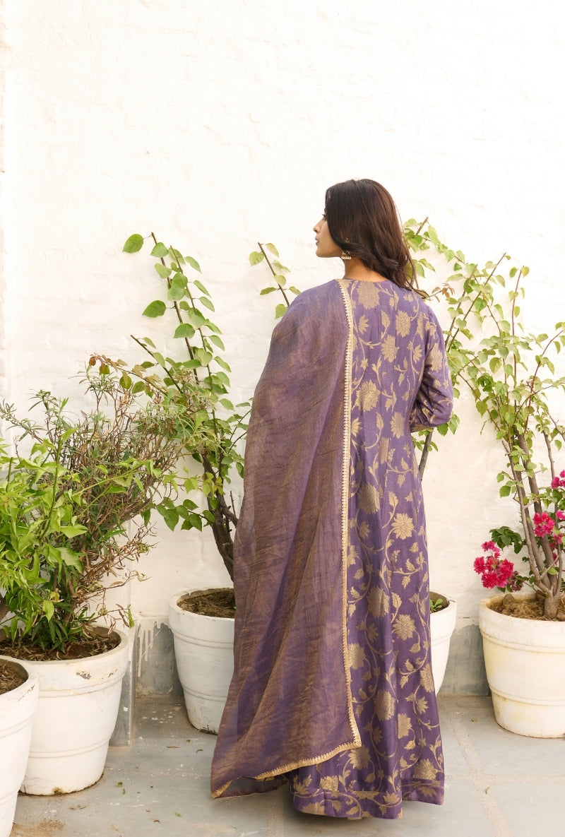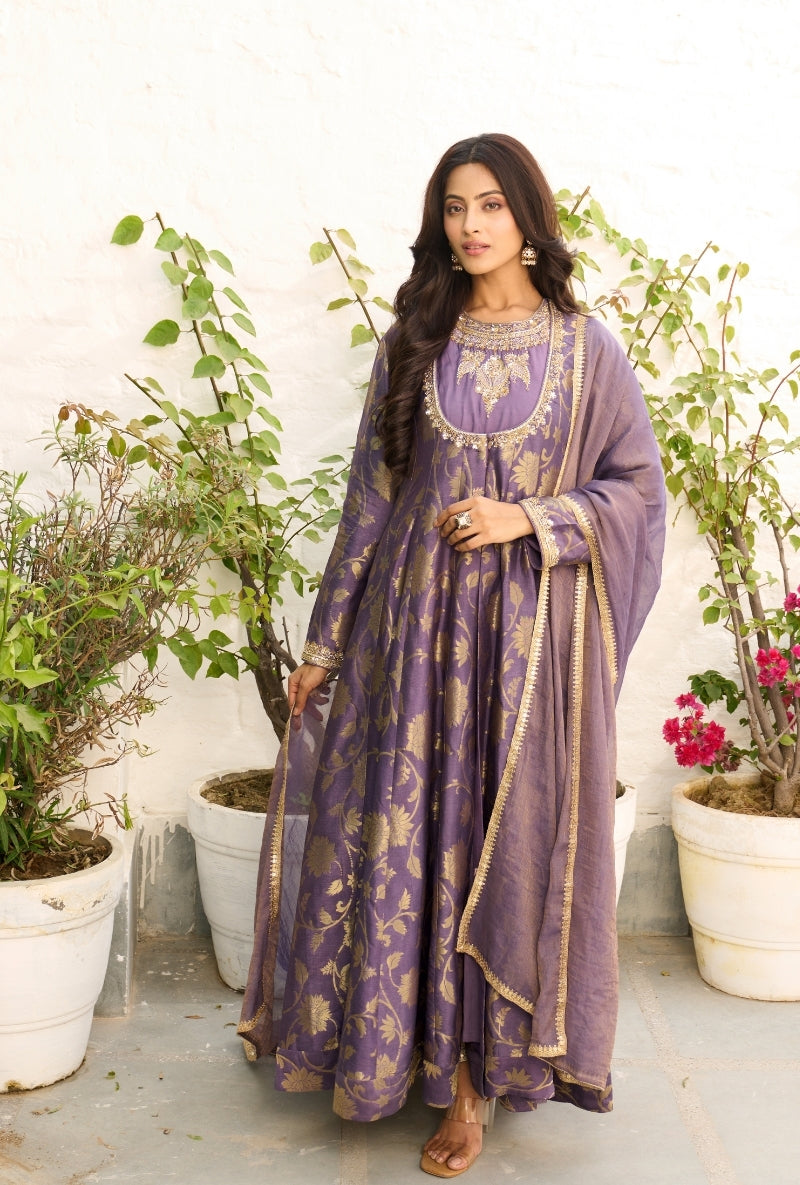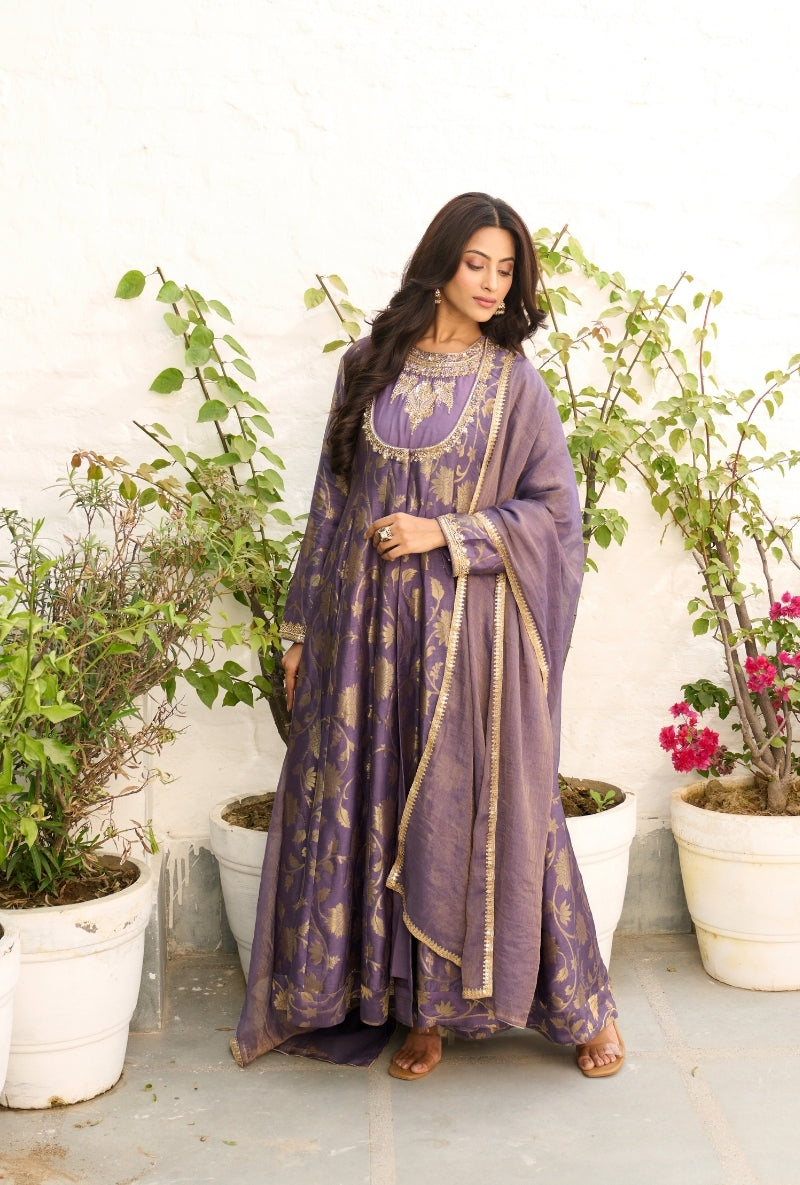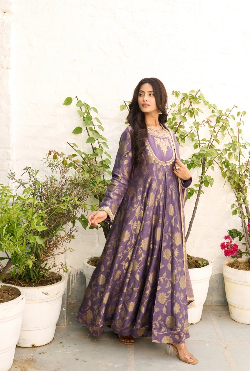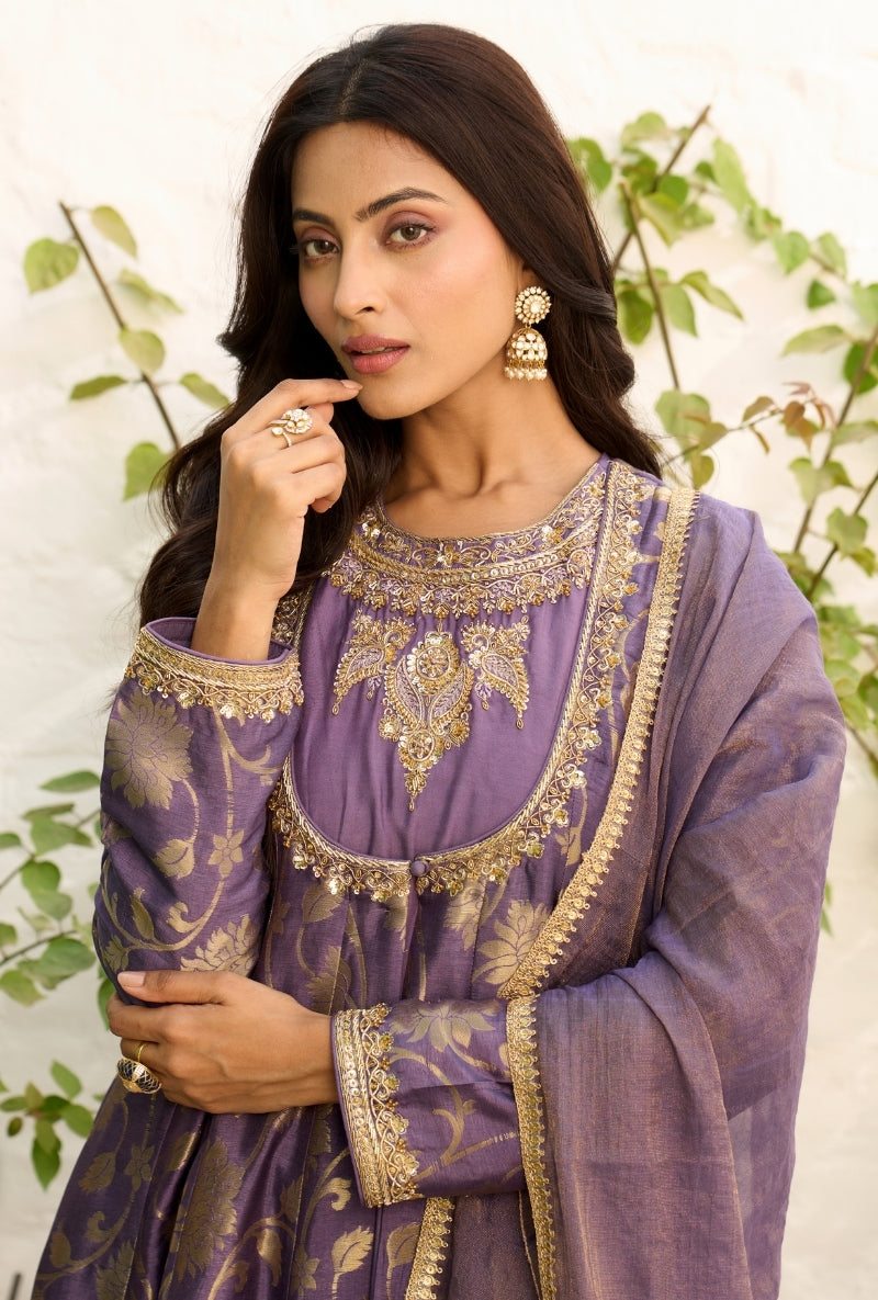 Purple Heavy Yoke Paneled Sabah Anarkali Set