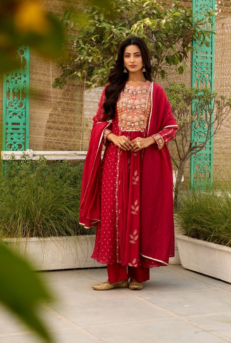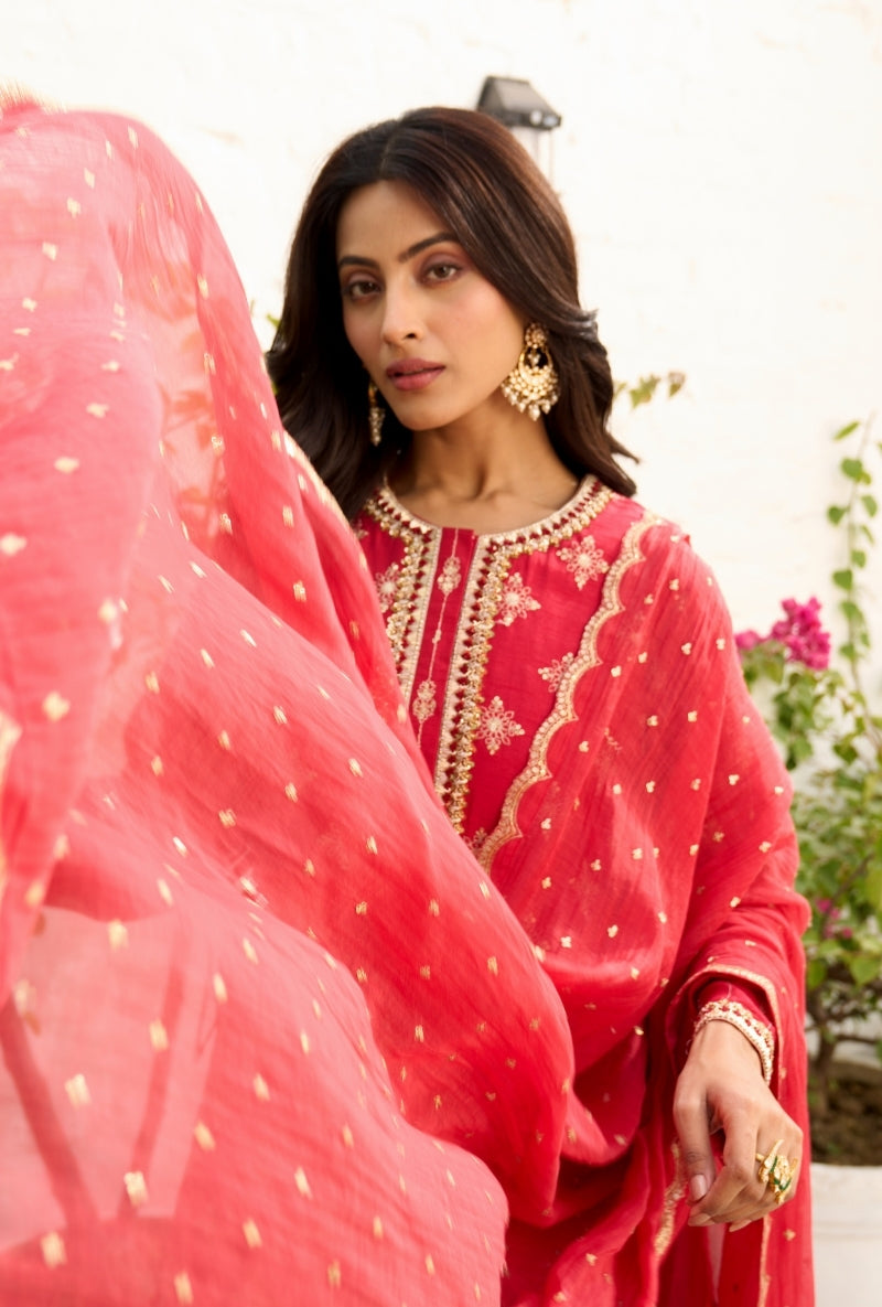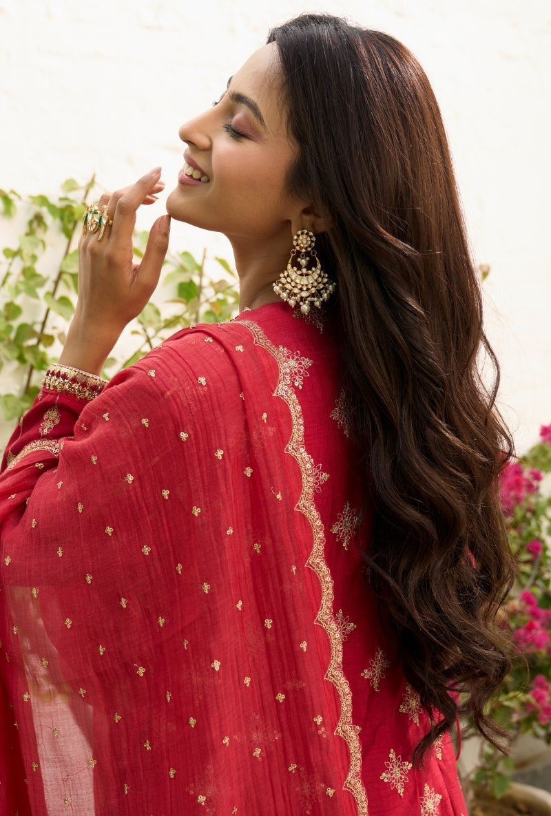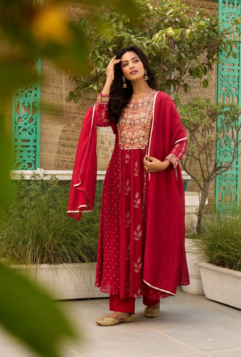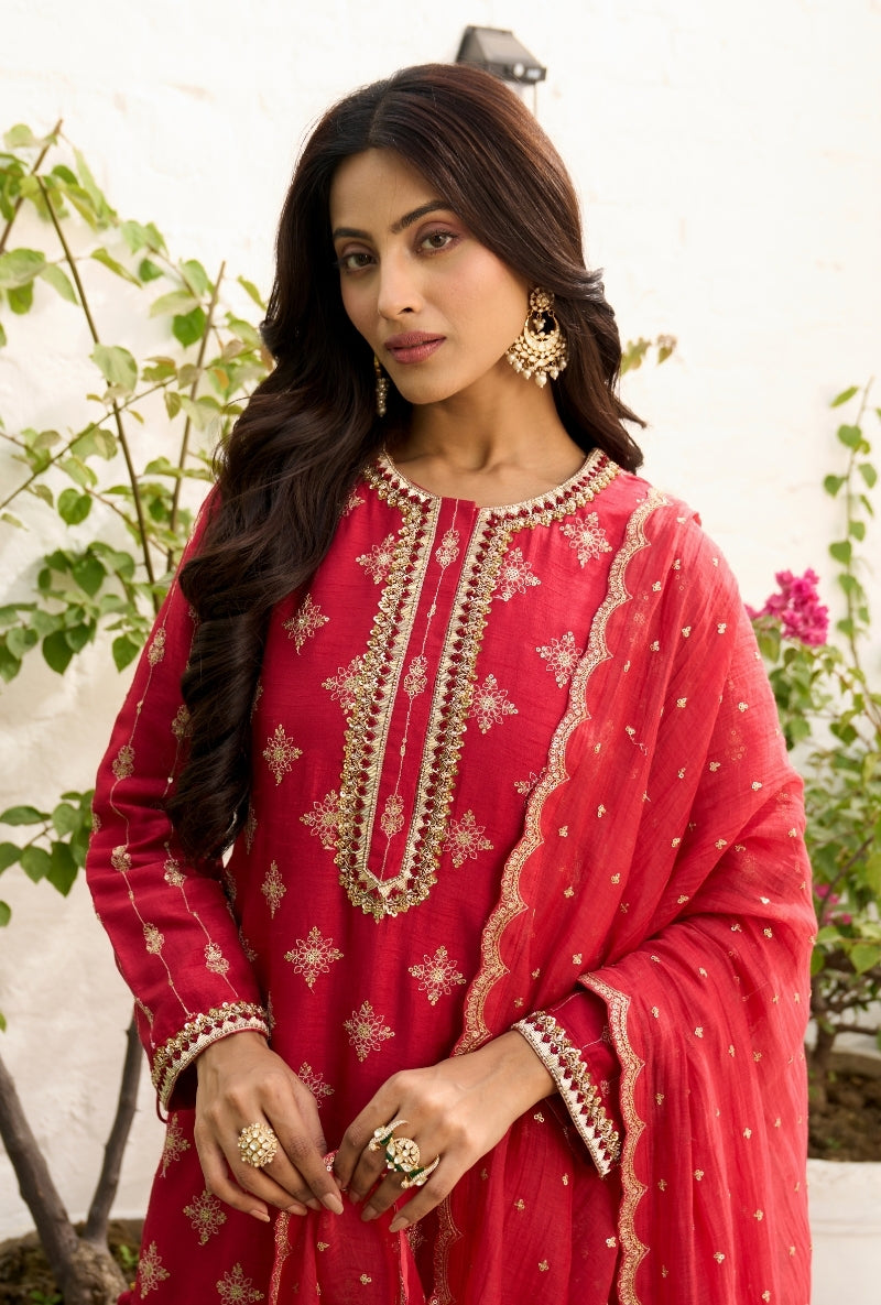 Red Embroidered Yoke Jalsa Kurta Set