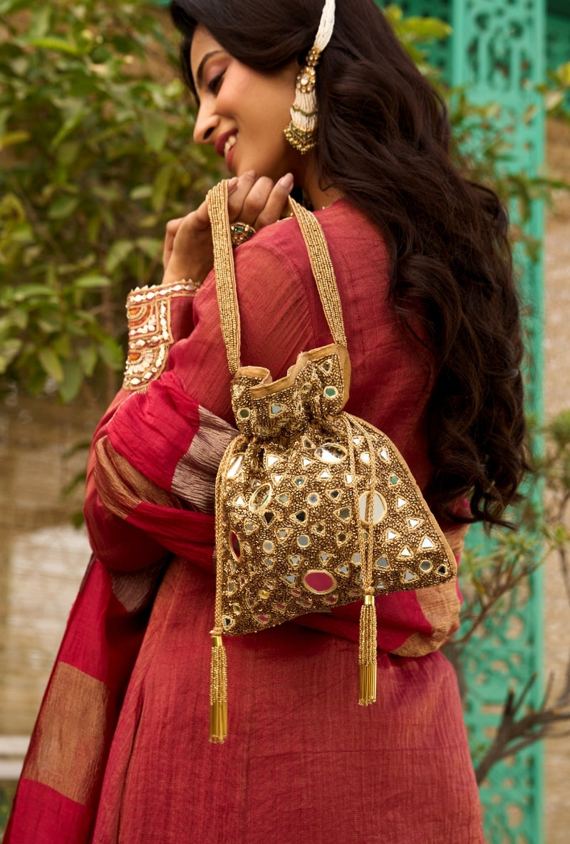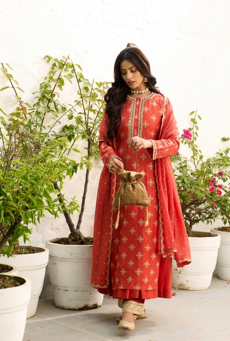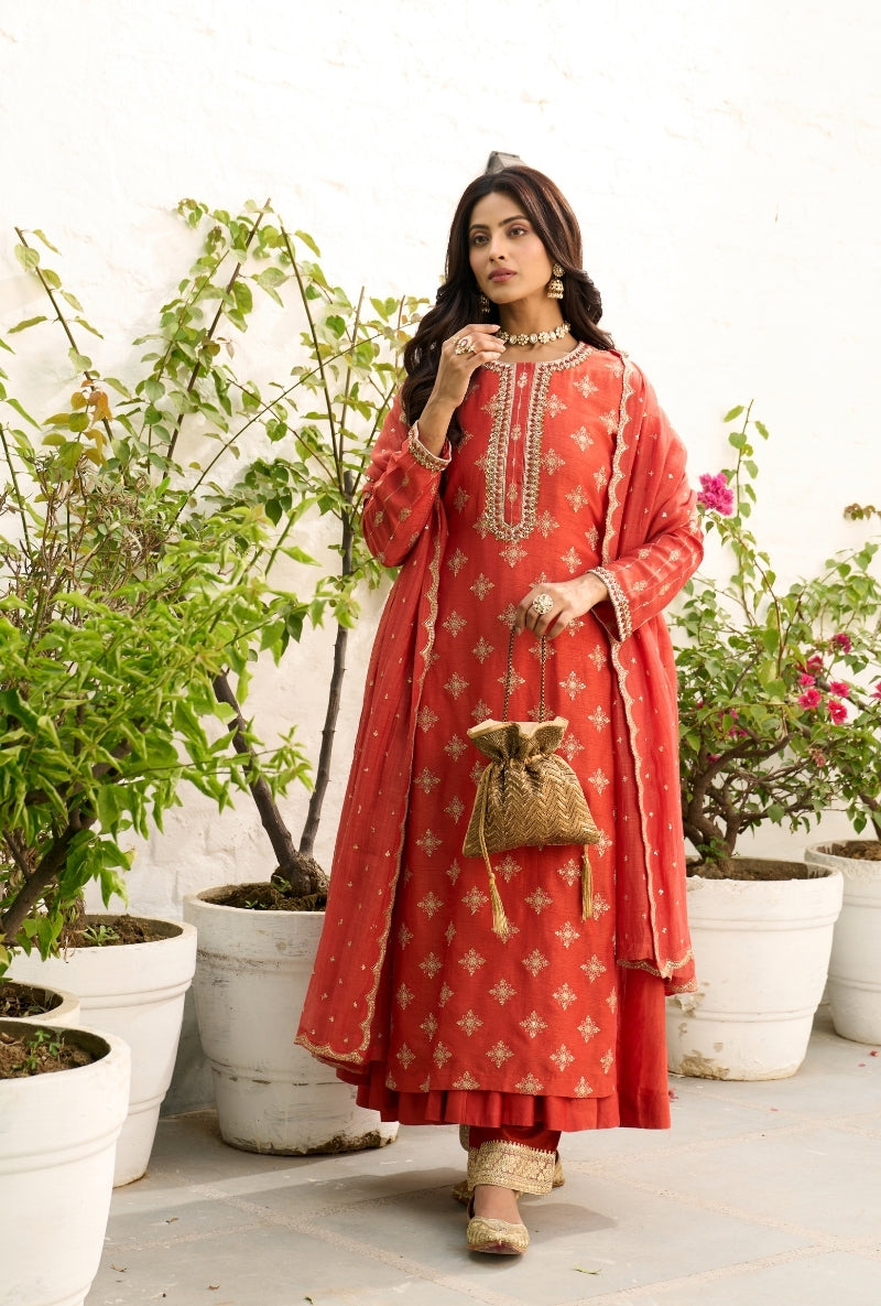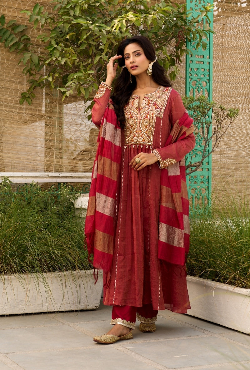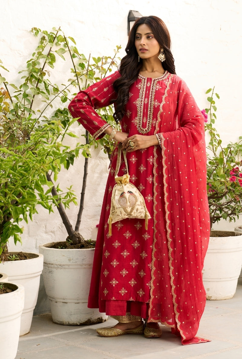 Red Embroidered Yoke Jalsa Kurta Set