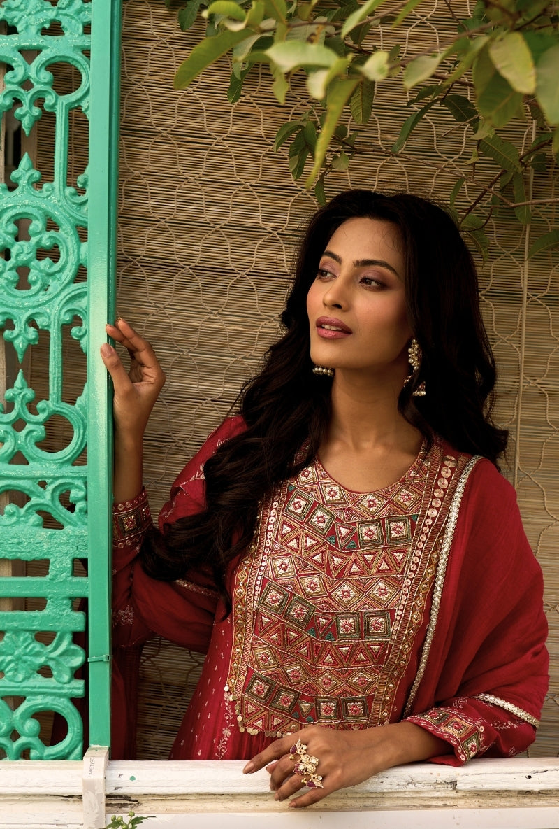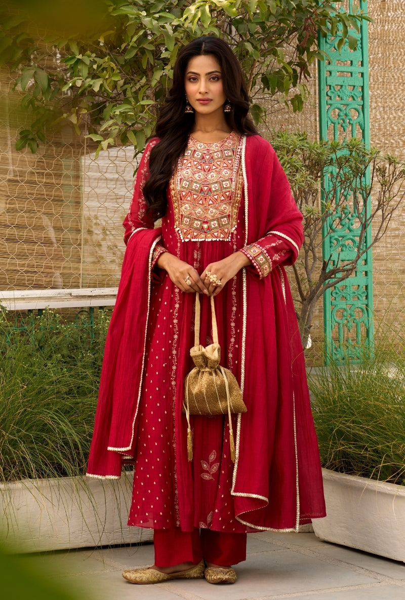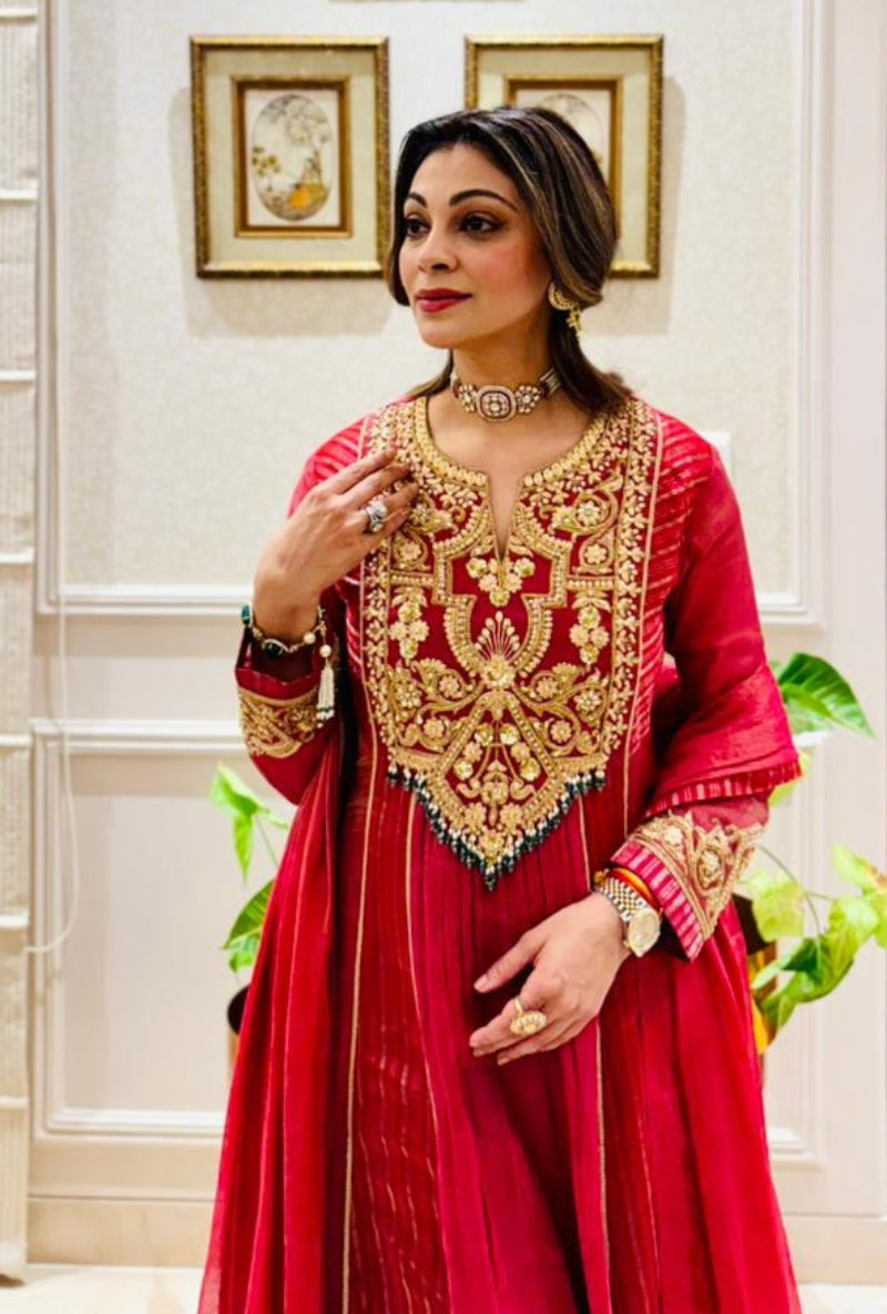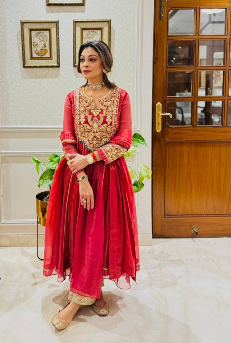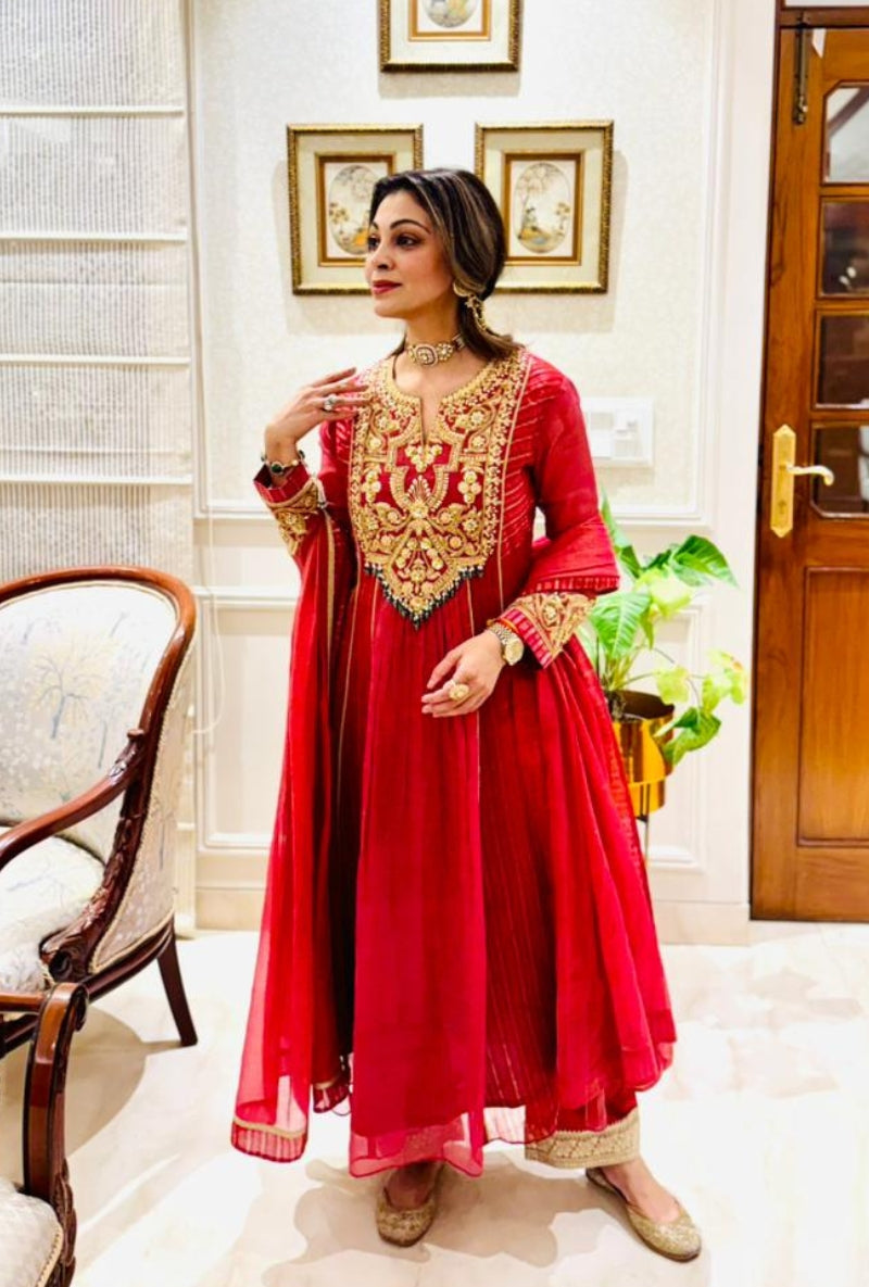 Meghna Nayyar In Red Embroidered Yoke Sabah Anarkali Set