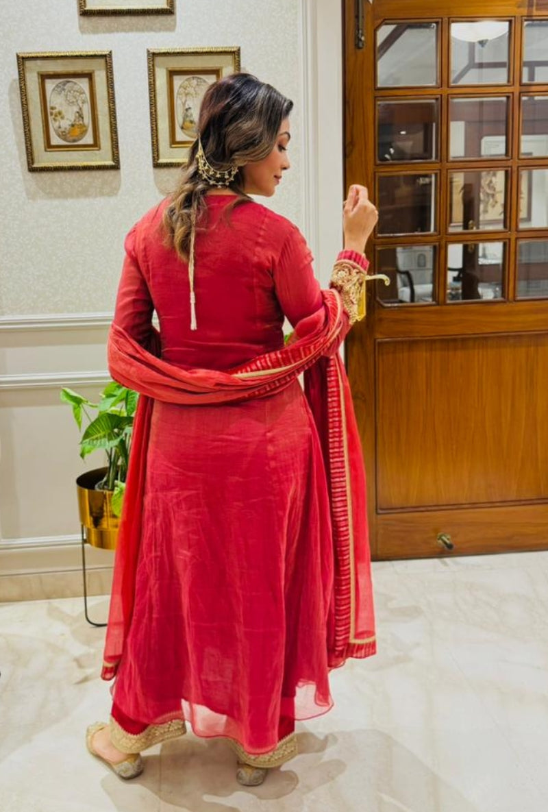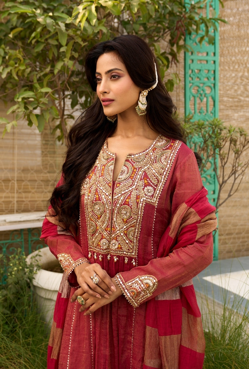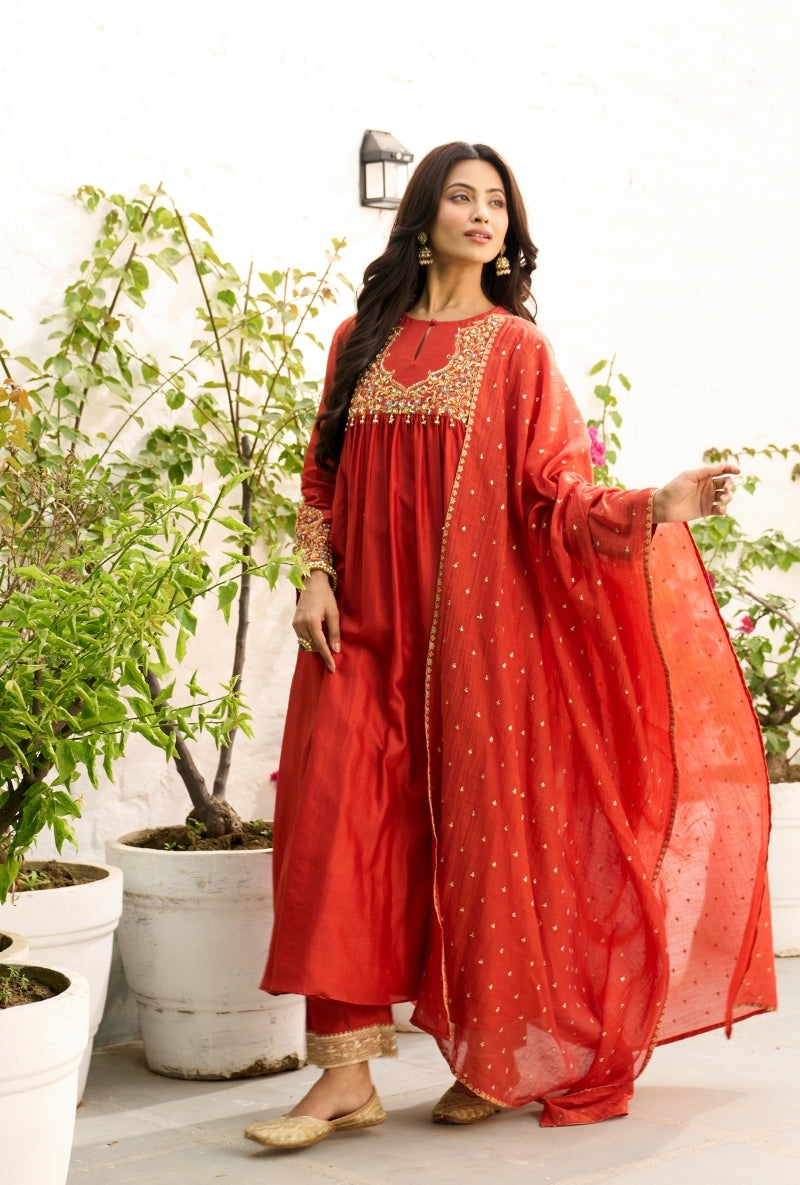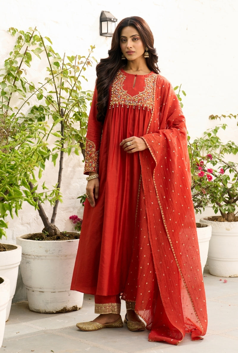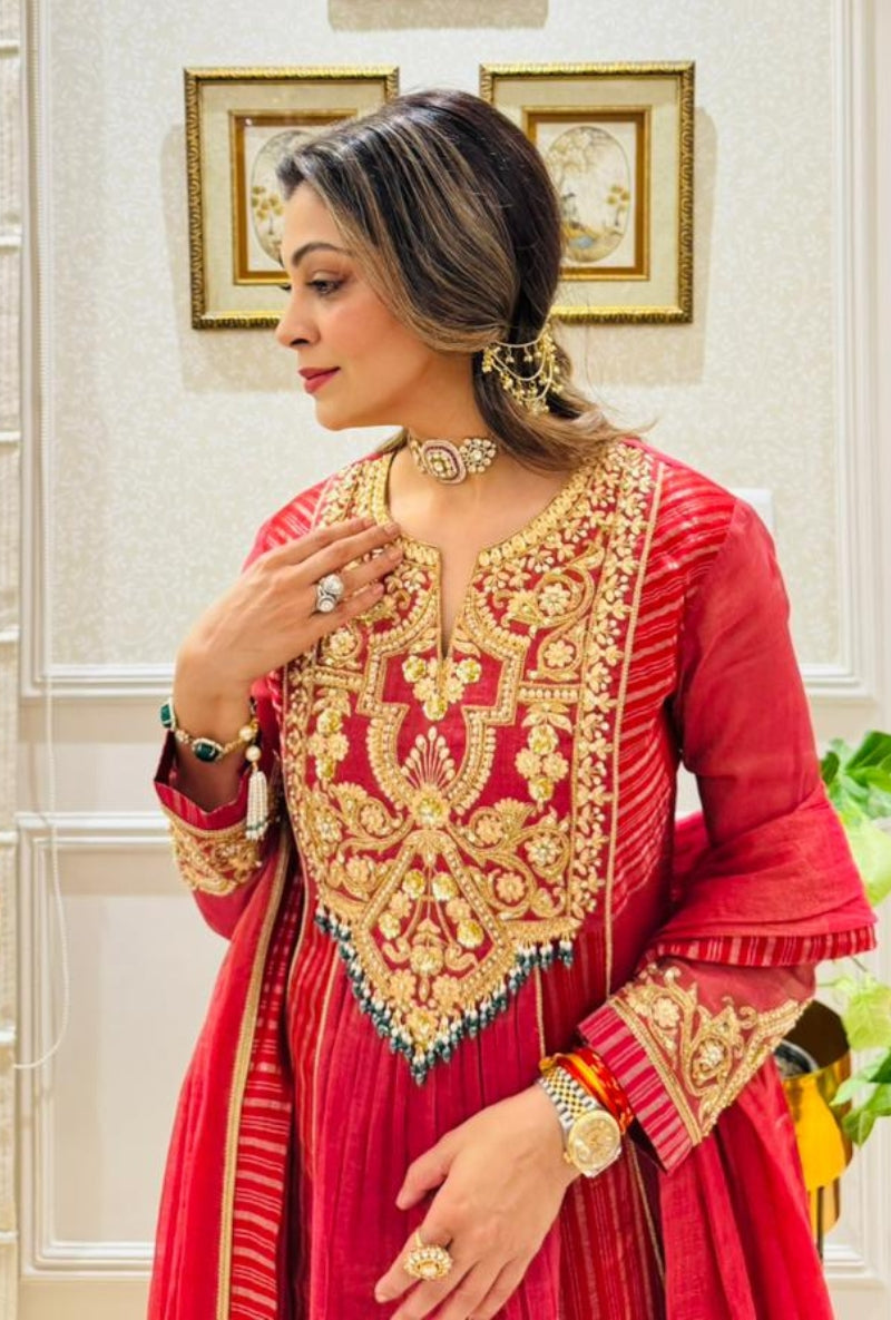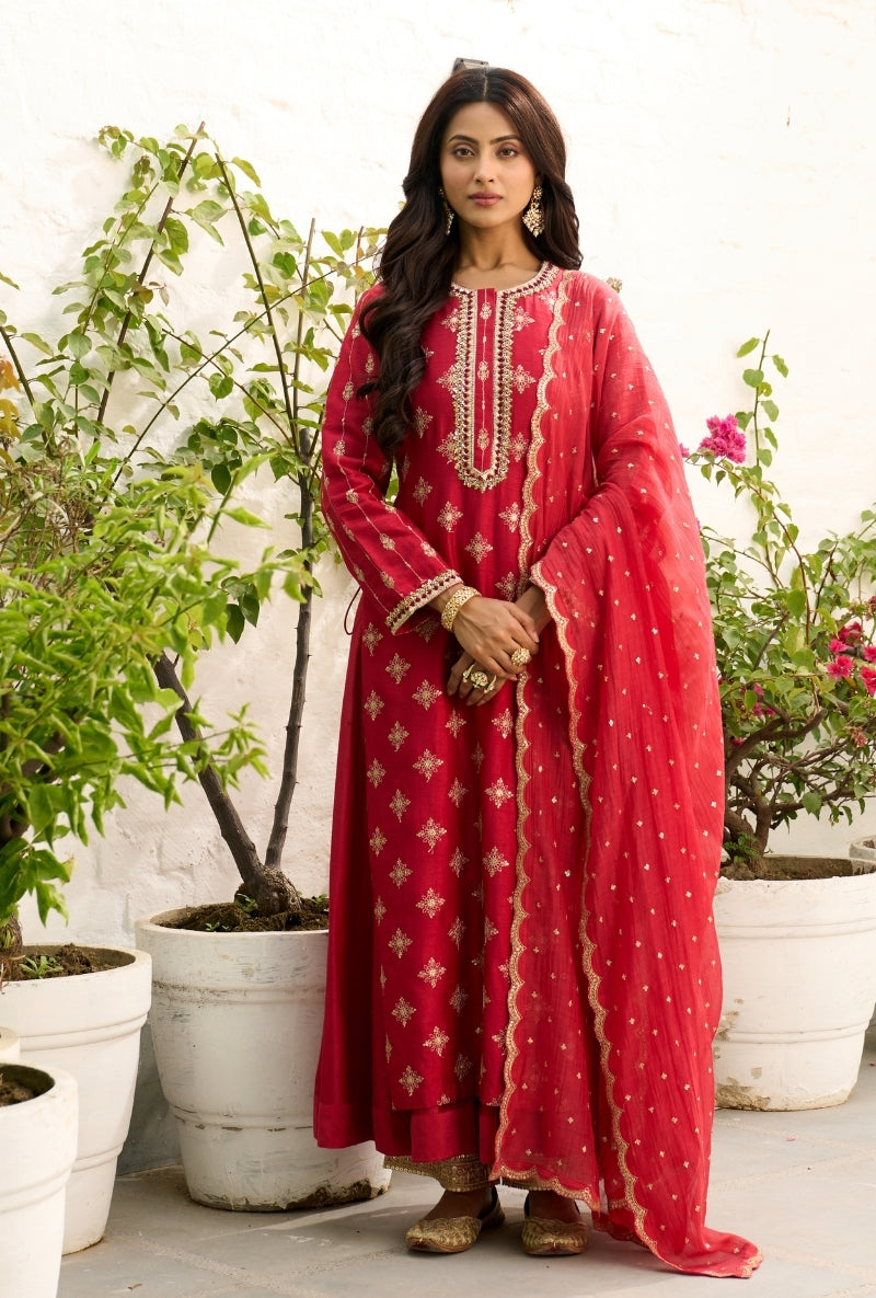 Meghna Nayyar In Red Embroidered Yoke Sabah Anarkali Set
