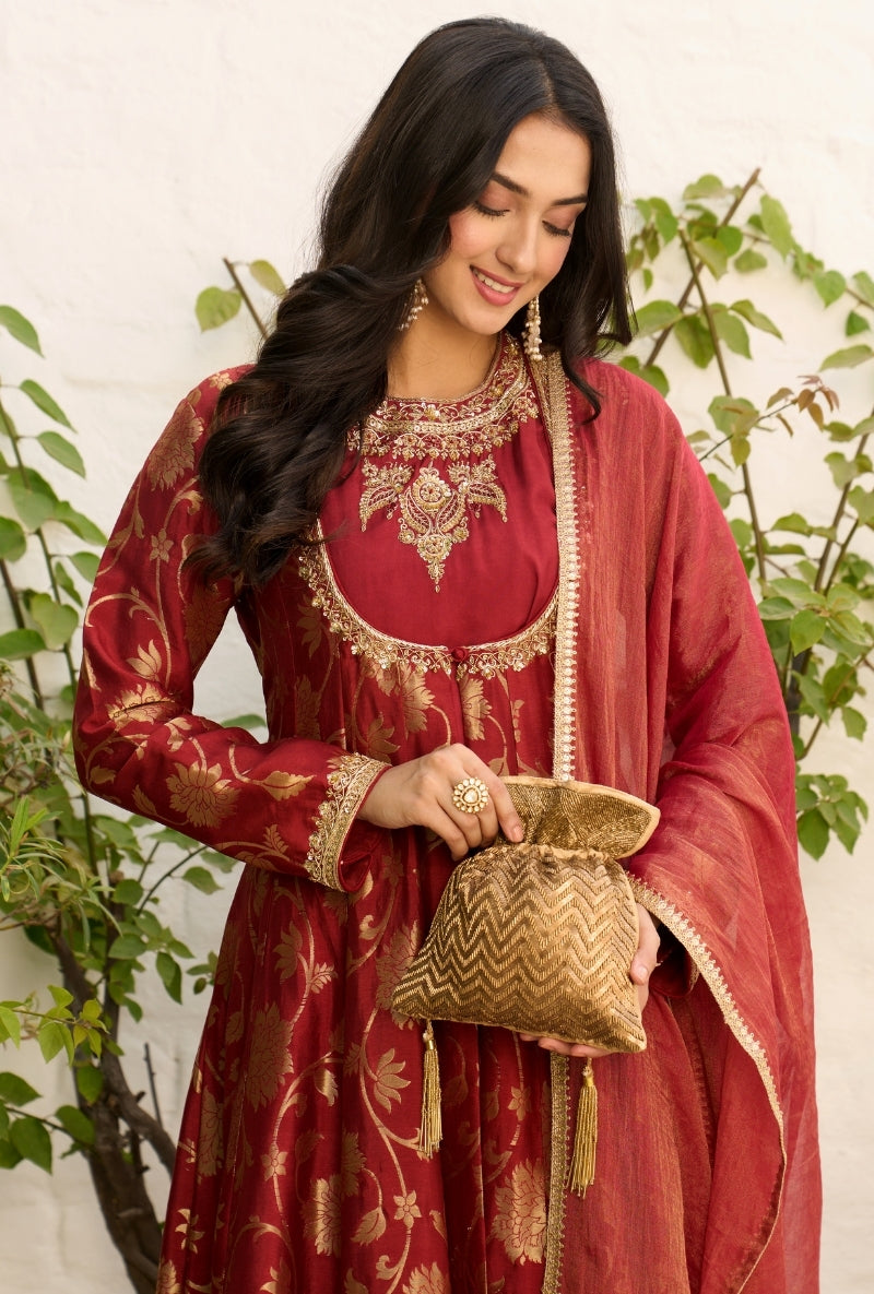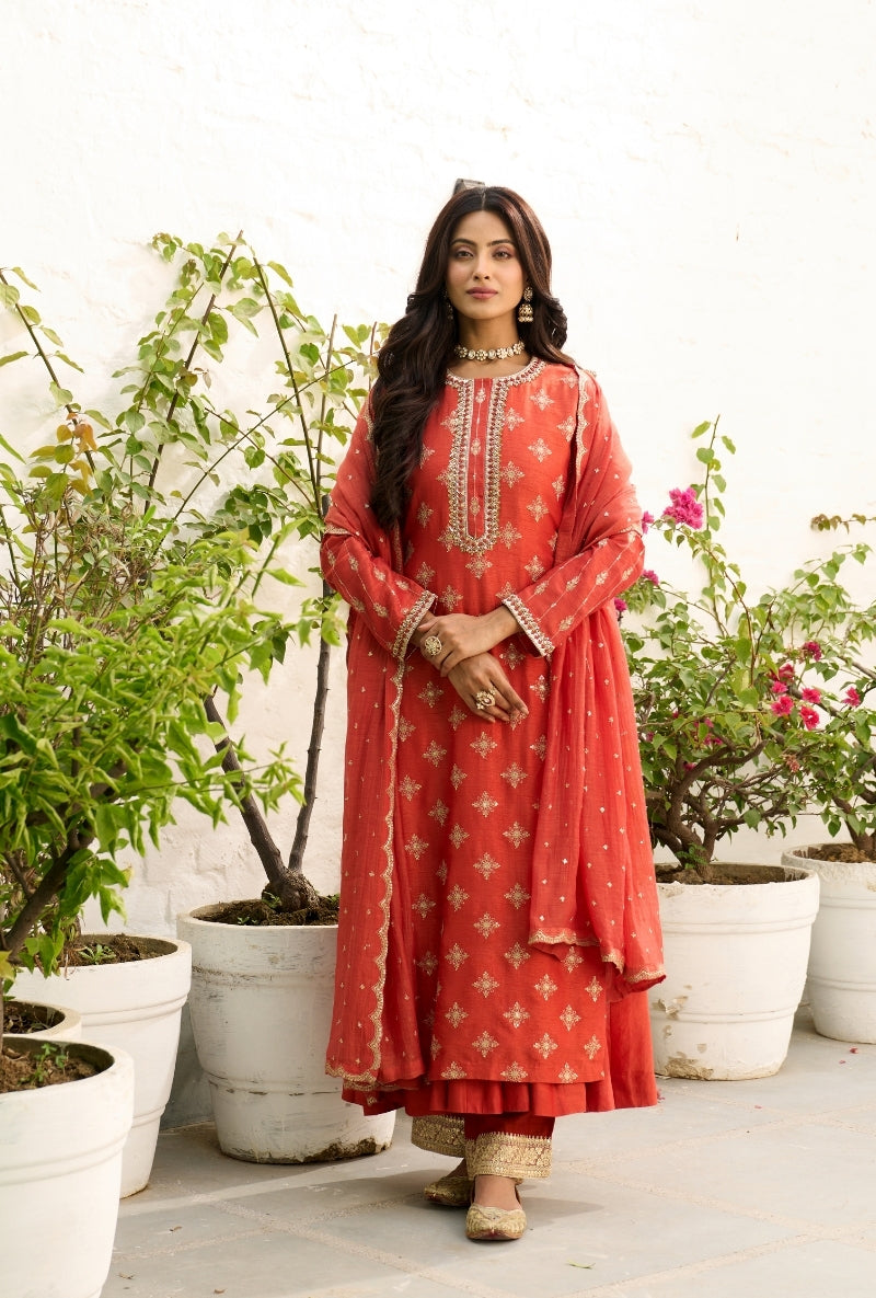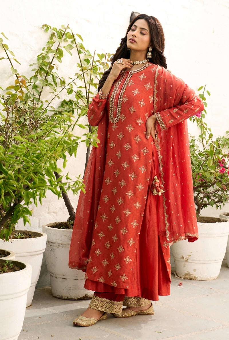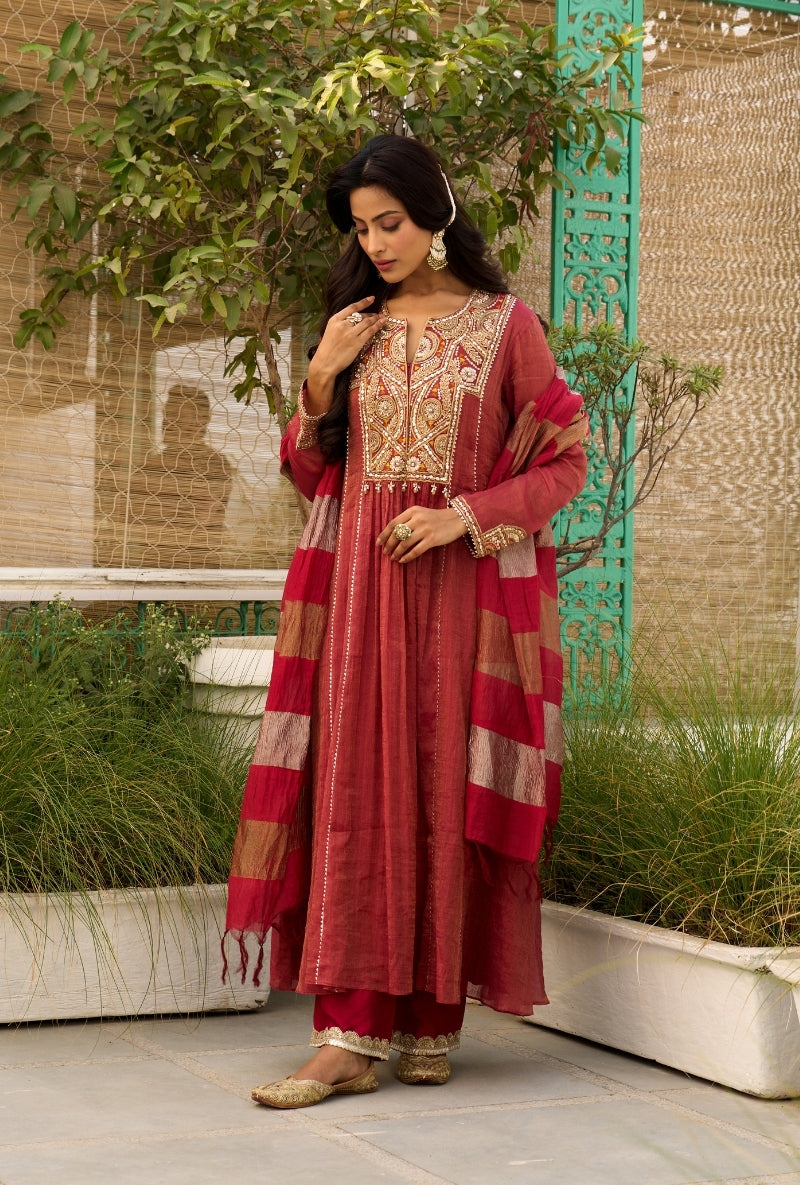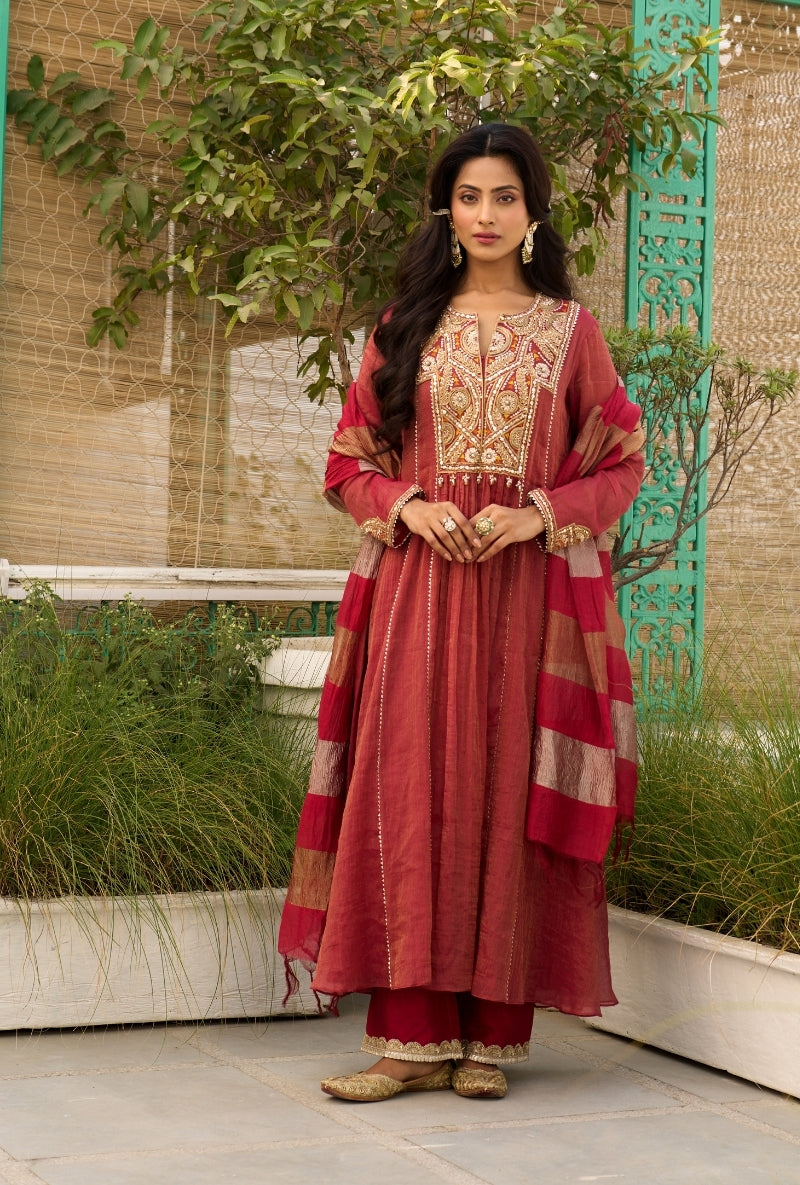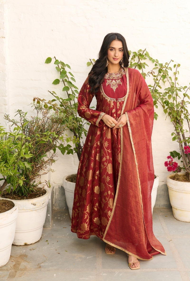 Meghna Nayyar In Red Embroidered Yoke Sabah Anarkali Set