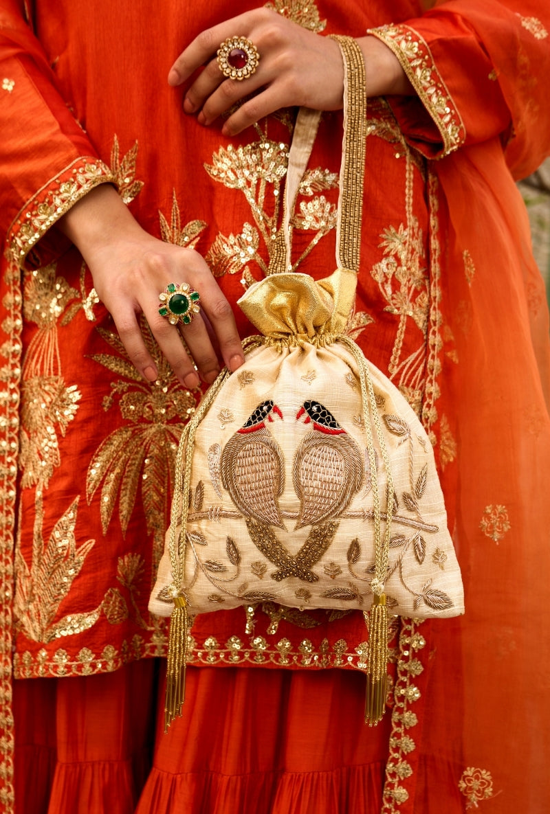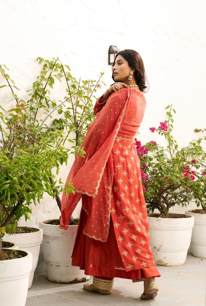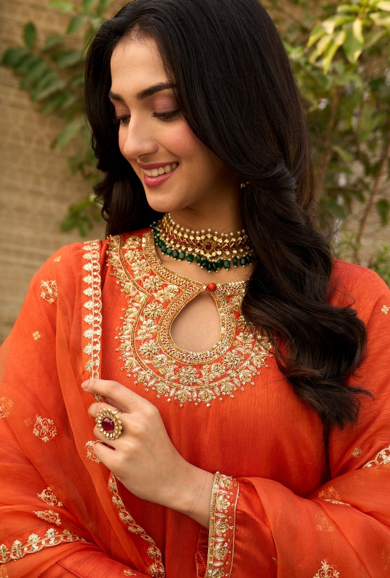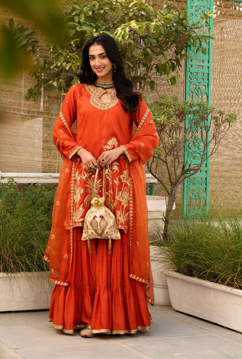 Orange Palm Tree Zardosi Embroidered Sabah Sharara Set
