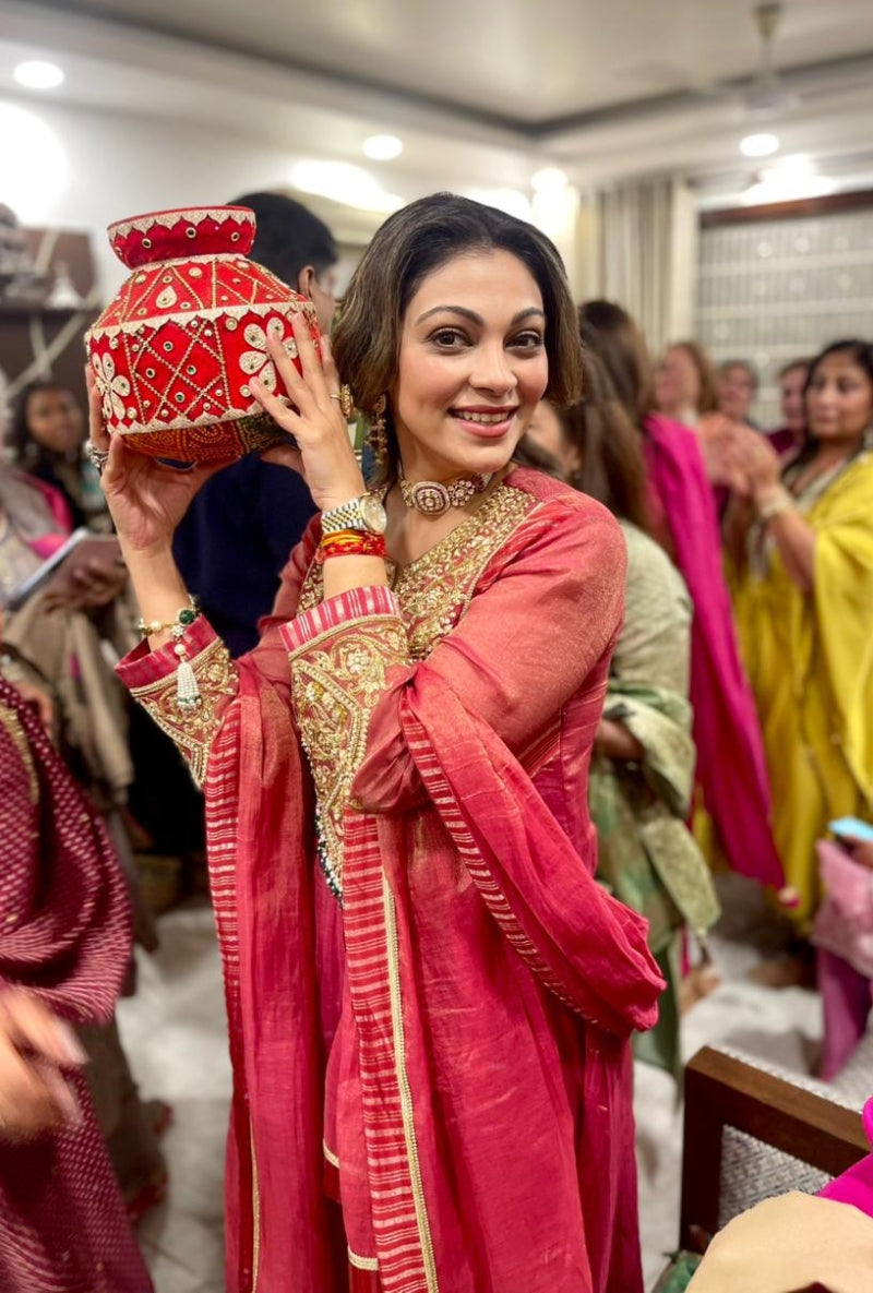 Varsha Rana in Red Anti Fit Stripe Kurta Set