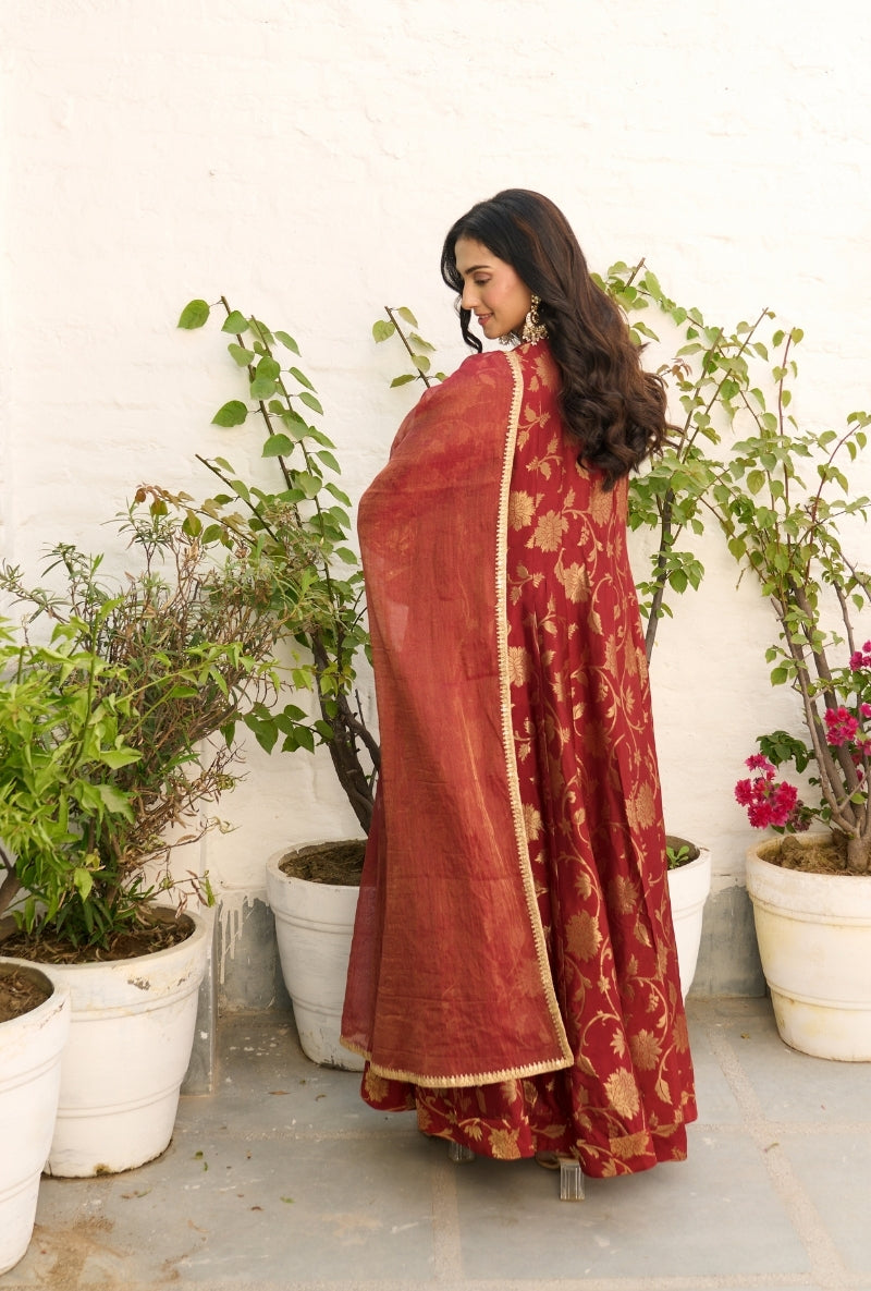 Red Front Gathers Sabah Anarkali Set