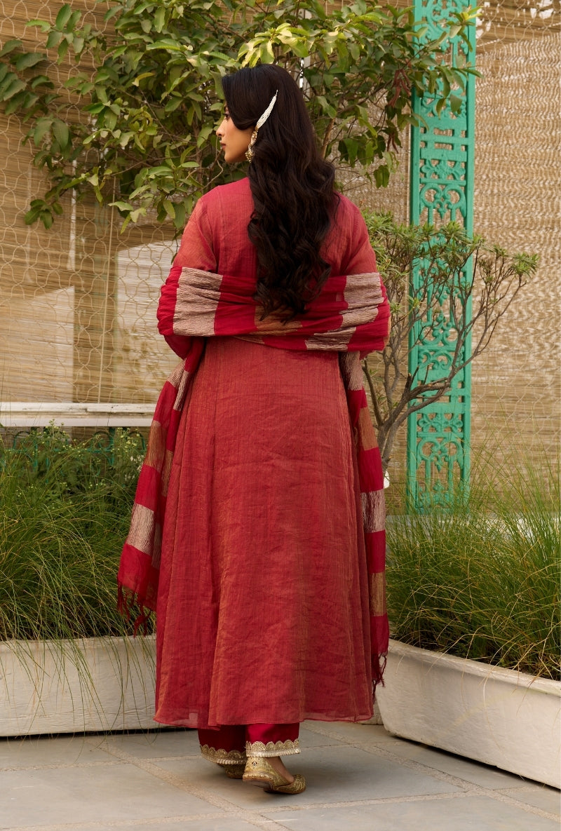 Red Multi Panel Sabah Anarkali Set