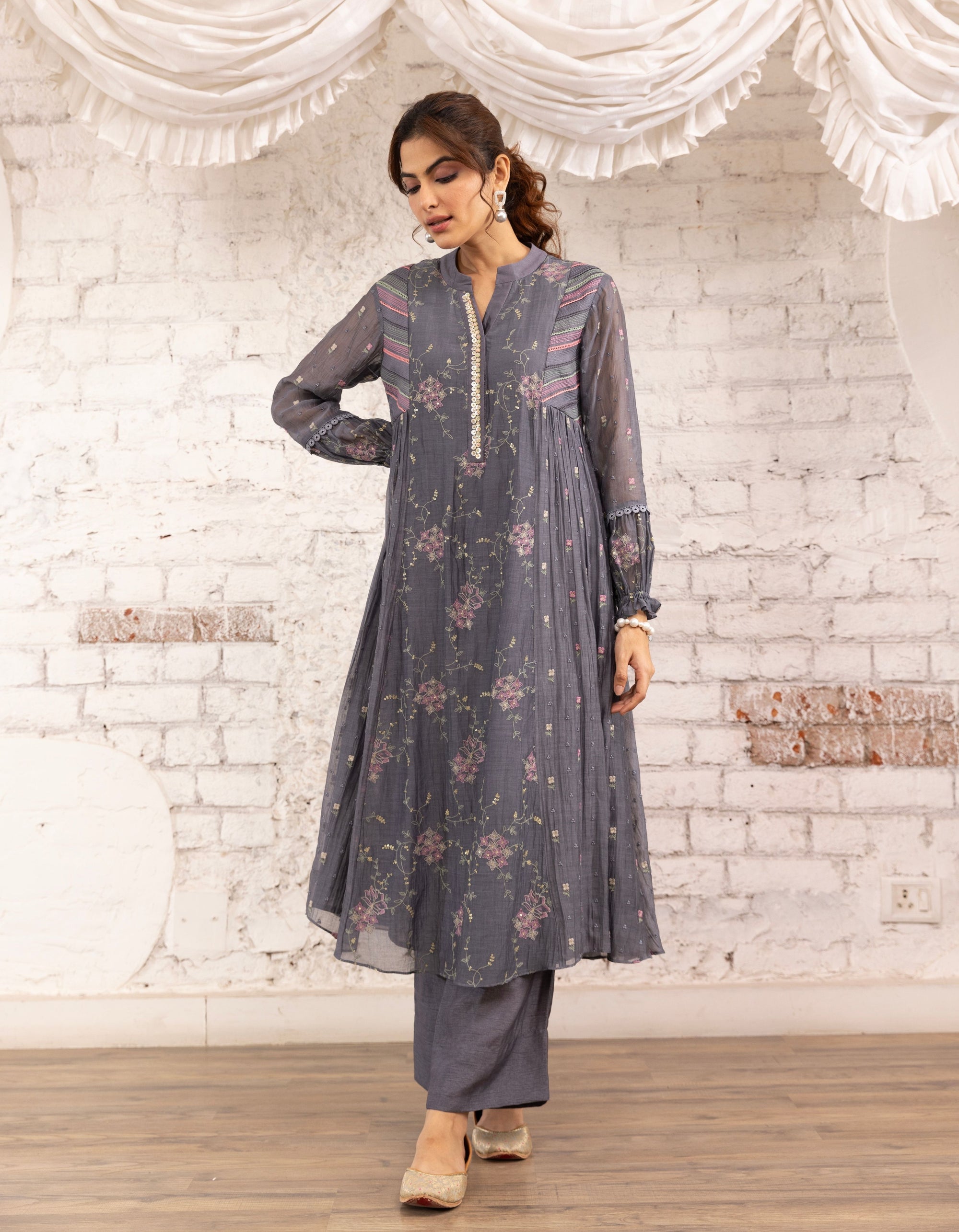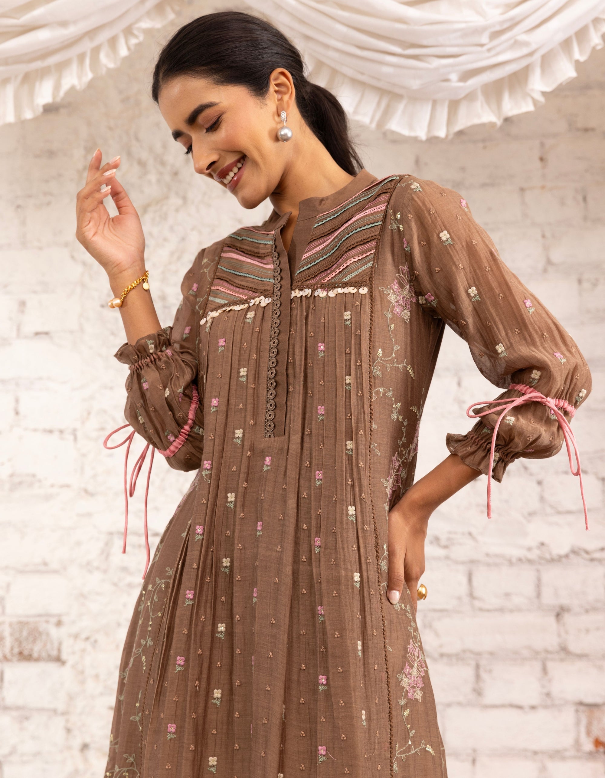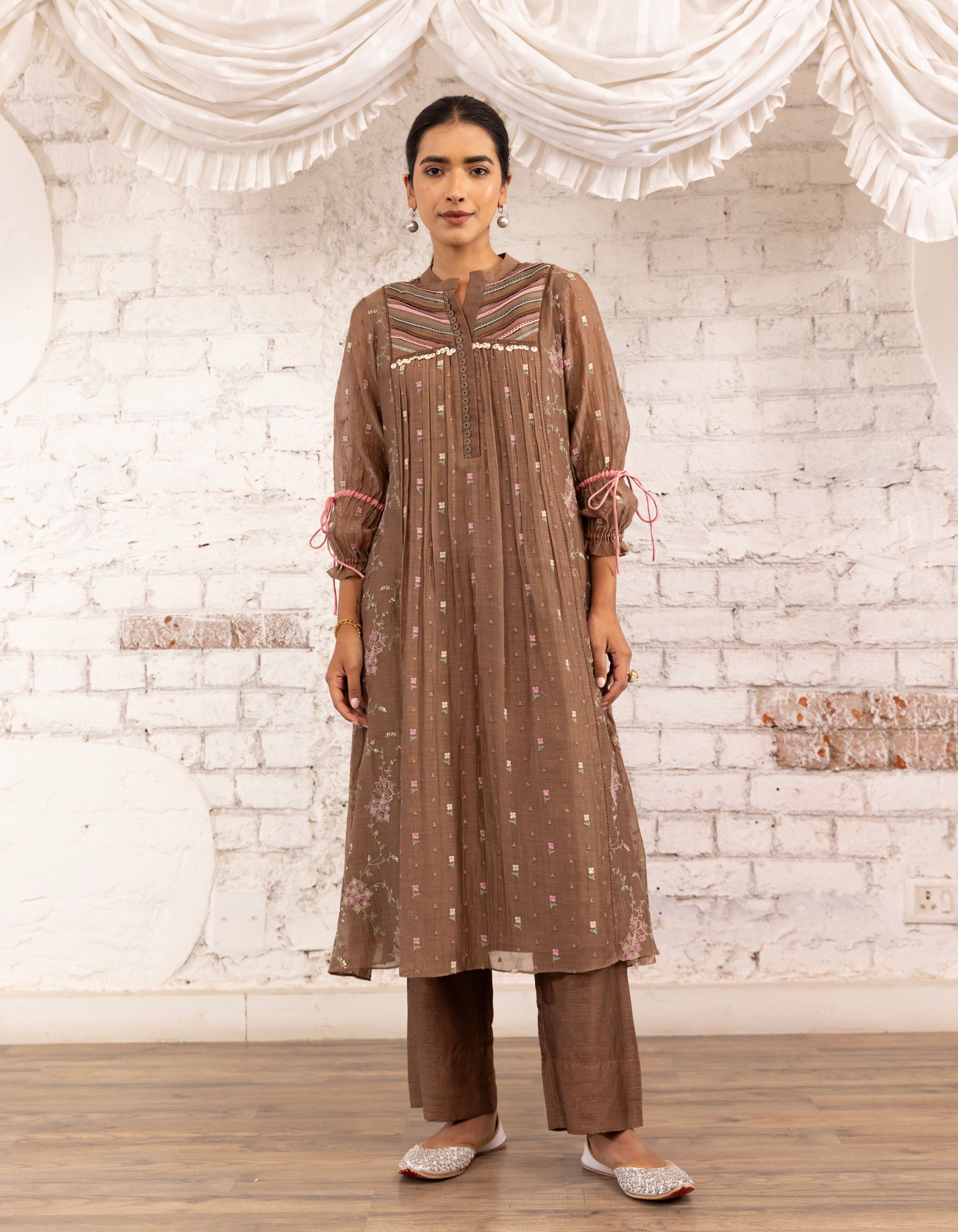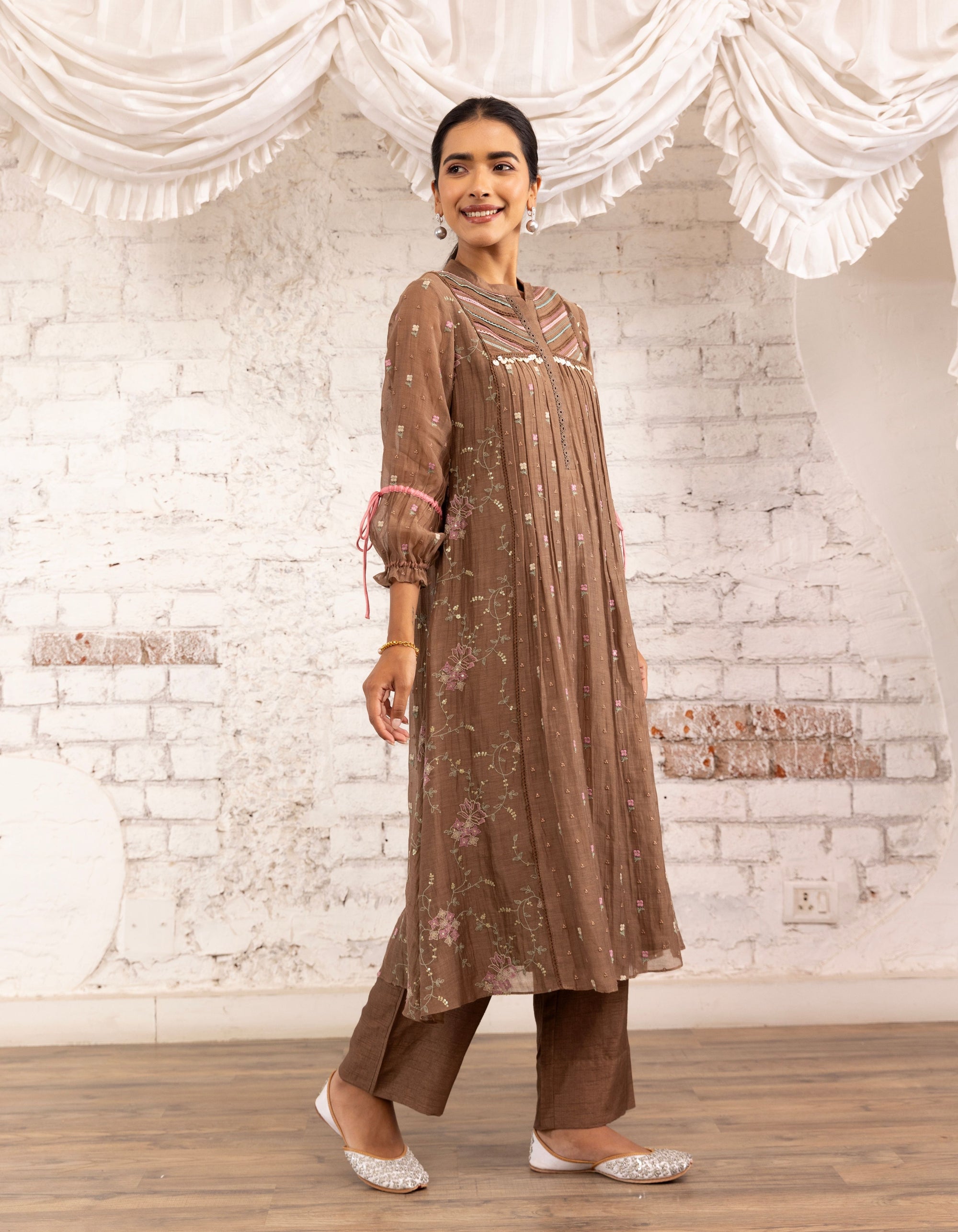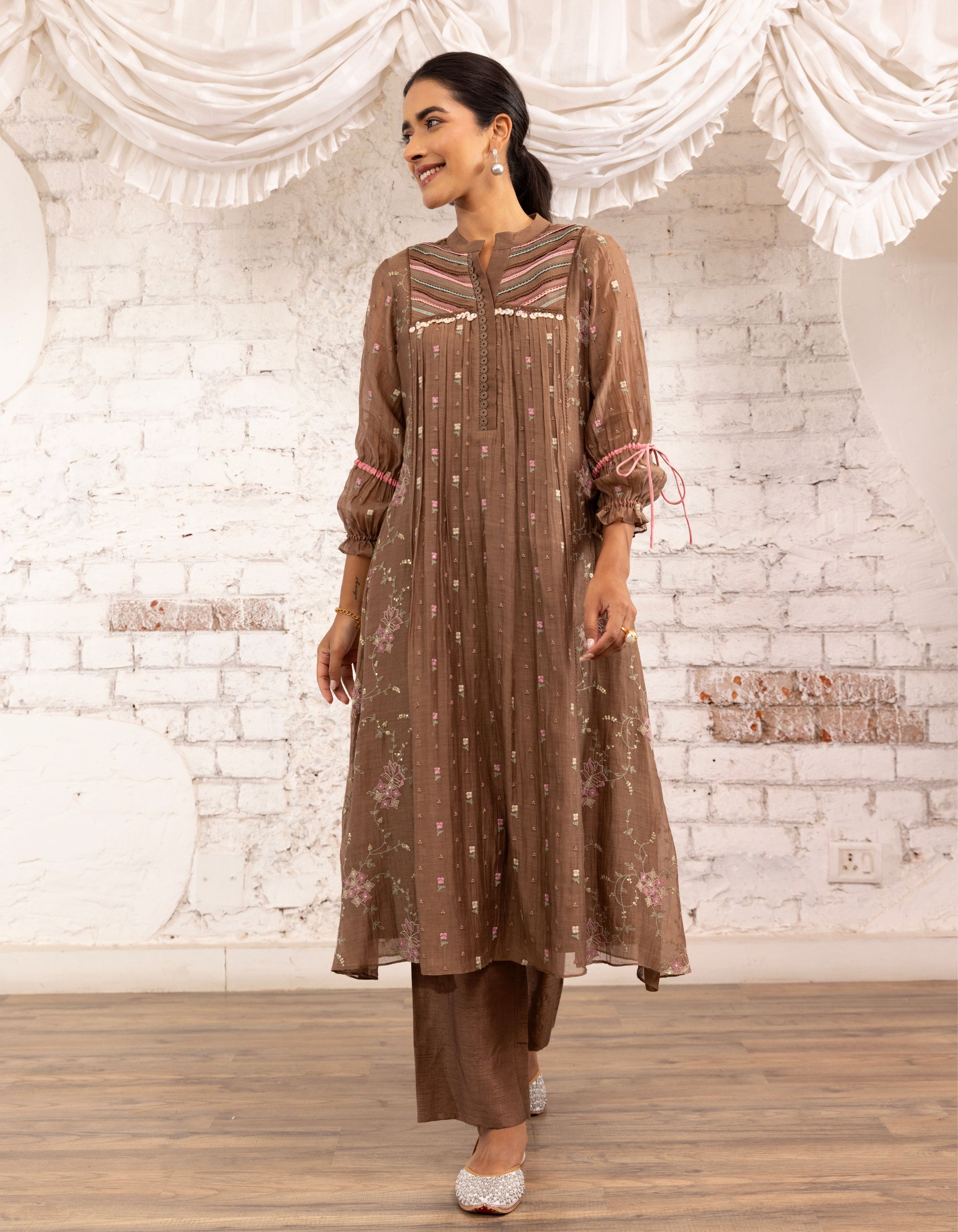 Ivory Reshamn Yoke Front Pleats Laado Kurta Set