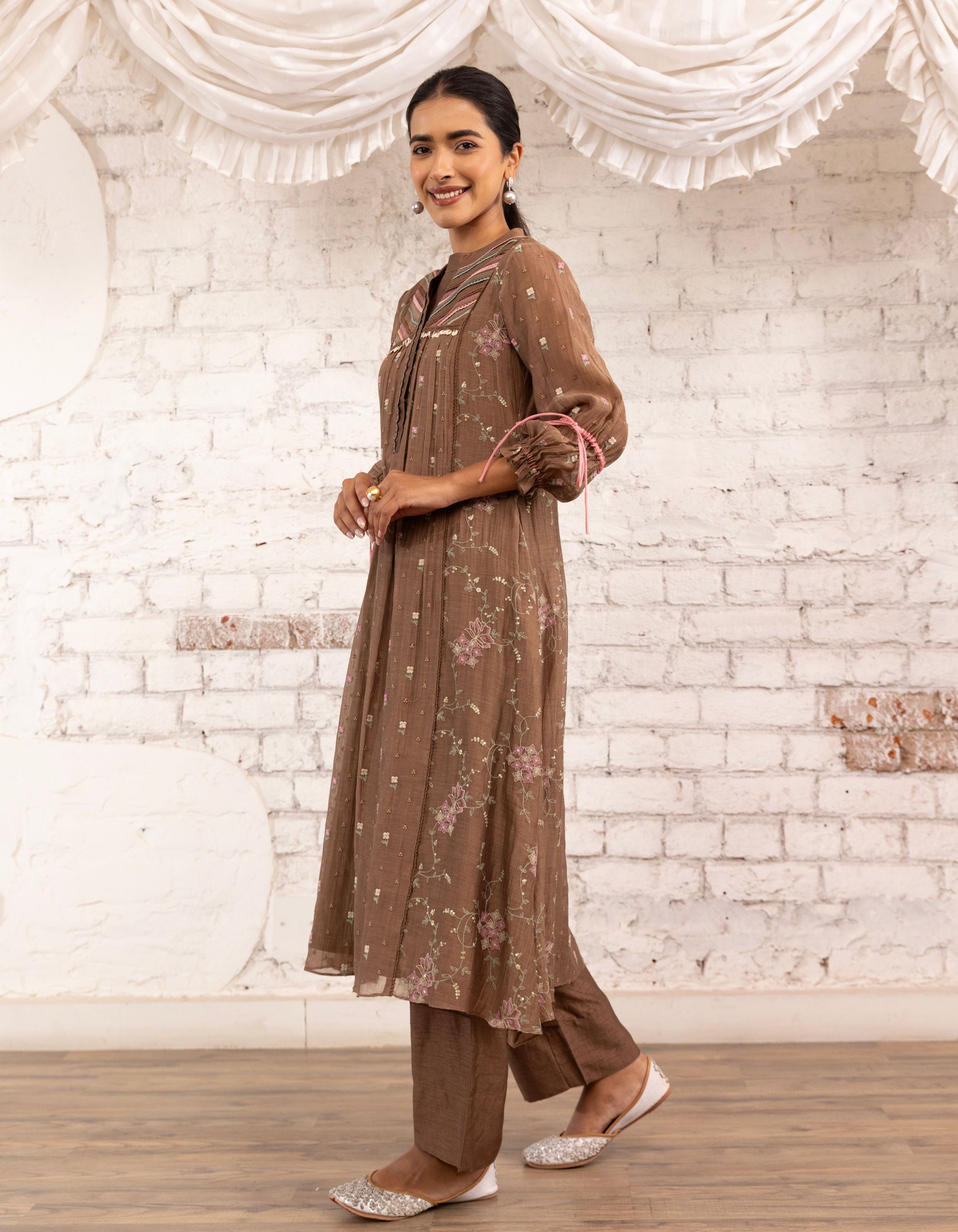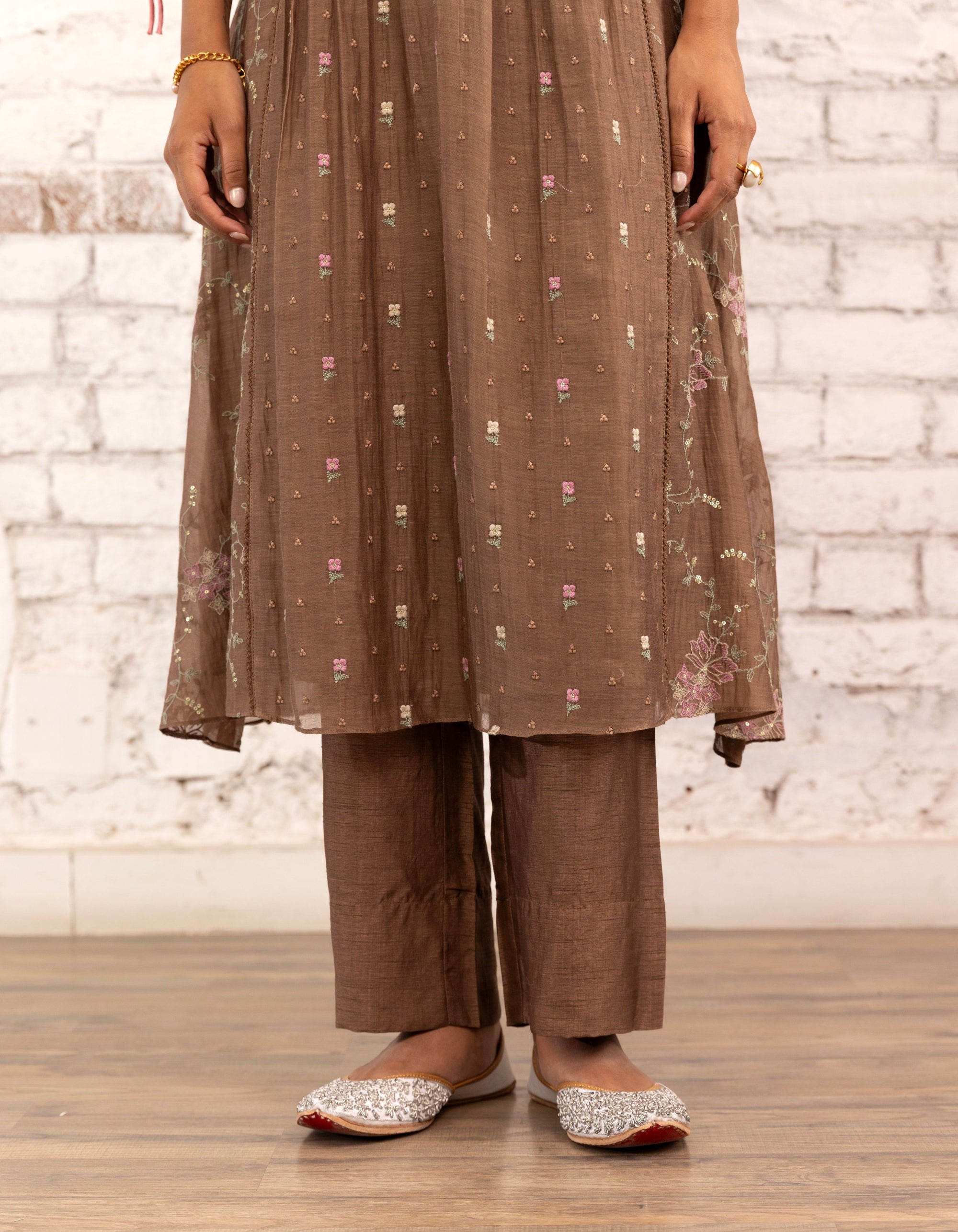 Mustard Cutwork Neckline Straight Anaardana Kurta Set