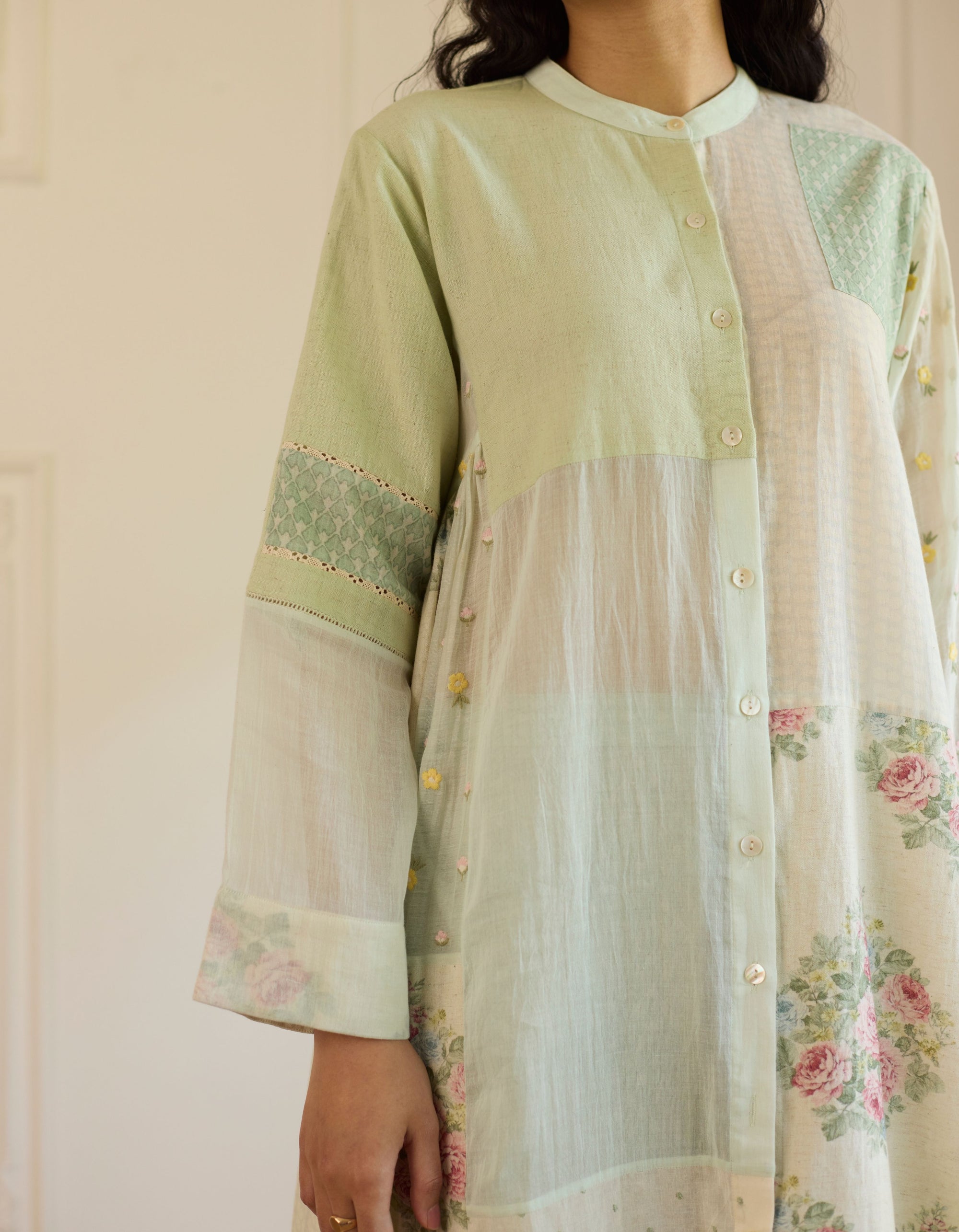 Multi Colour Pink Front Button Placket Floral Hand Block Printed Multi Panel Mia Kurta Set
