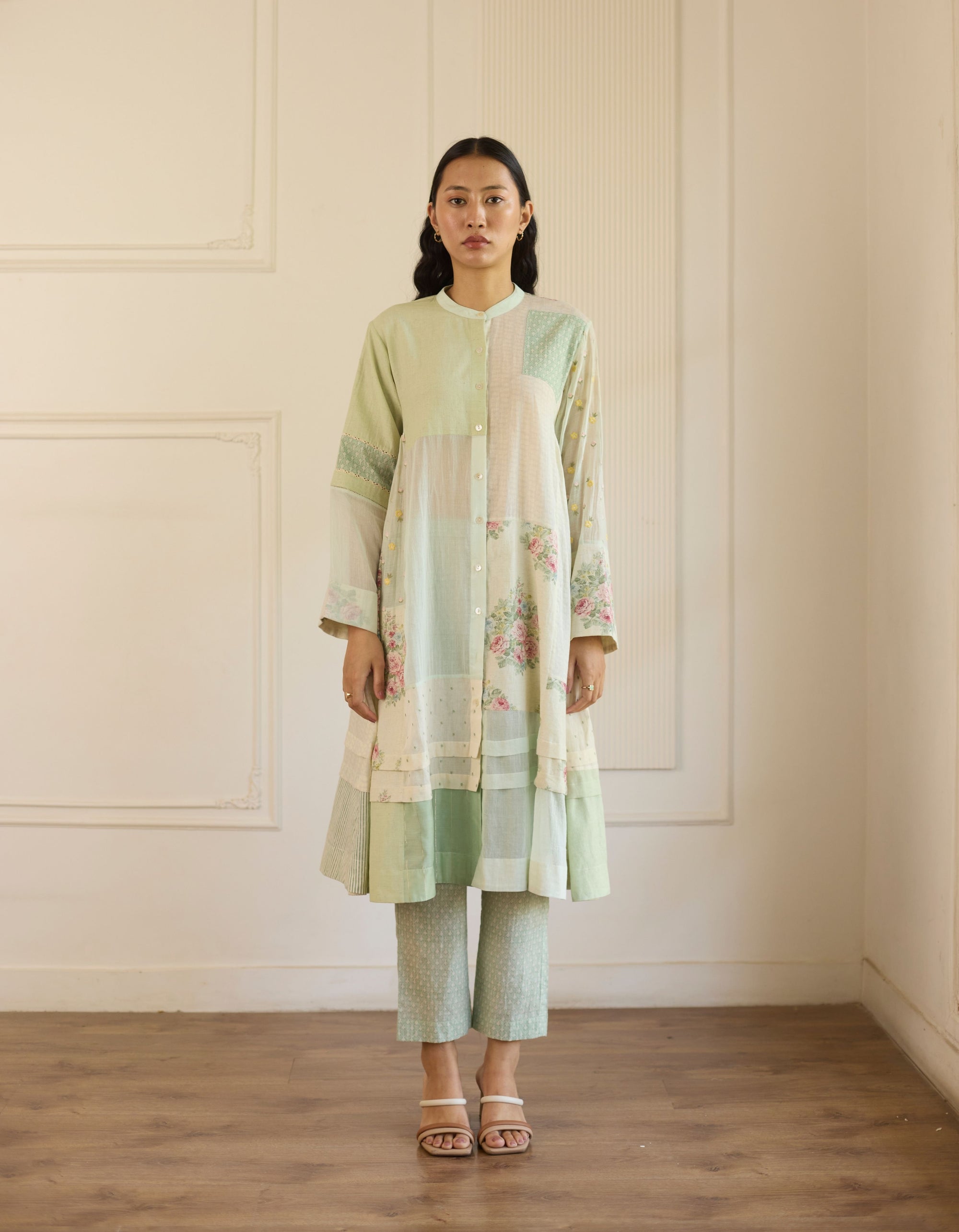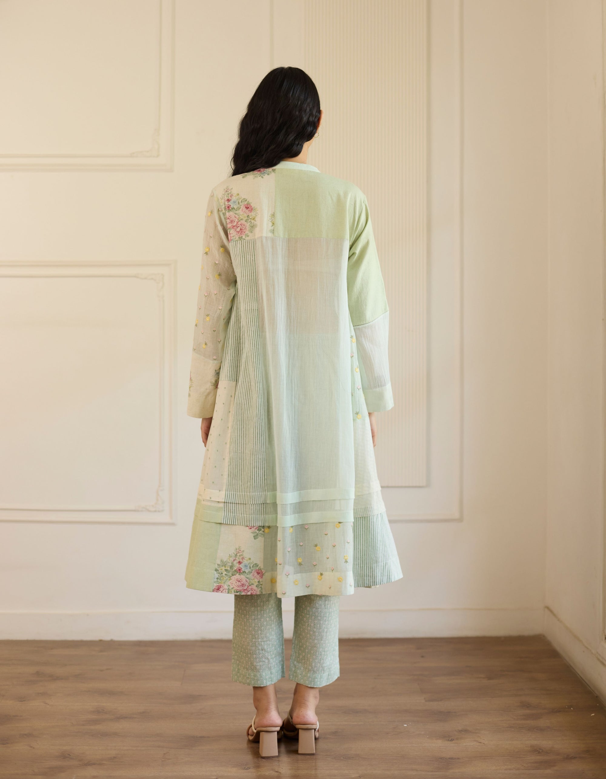 Powder Blue Hand Block Printed Multi Panel Mia Kurta Set