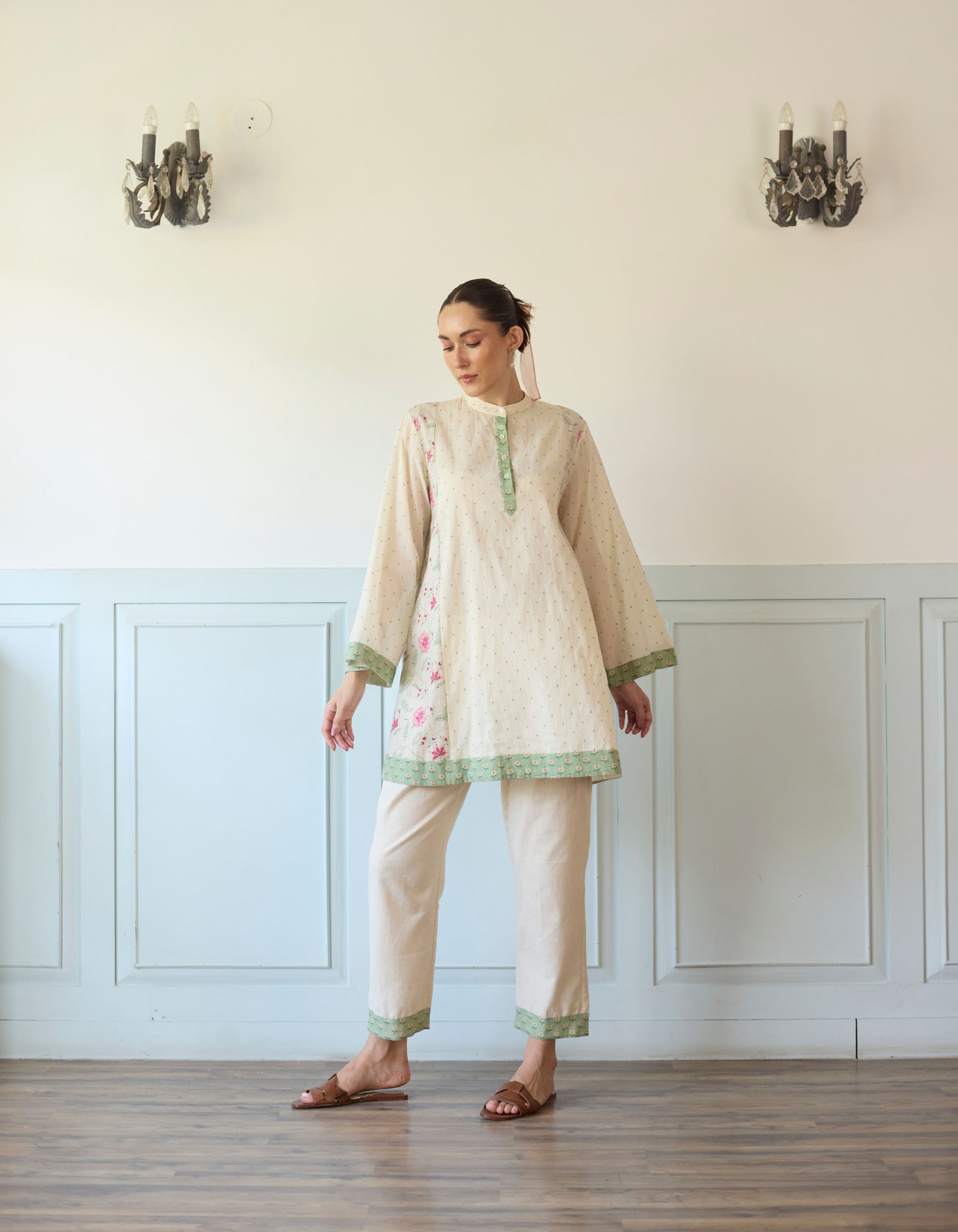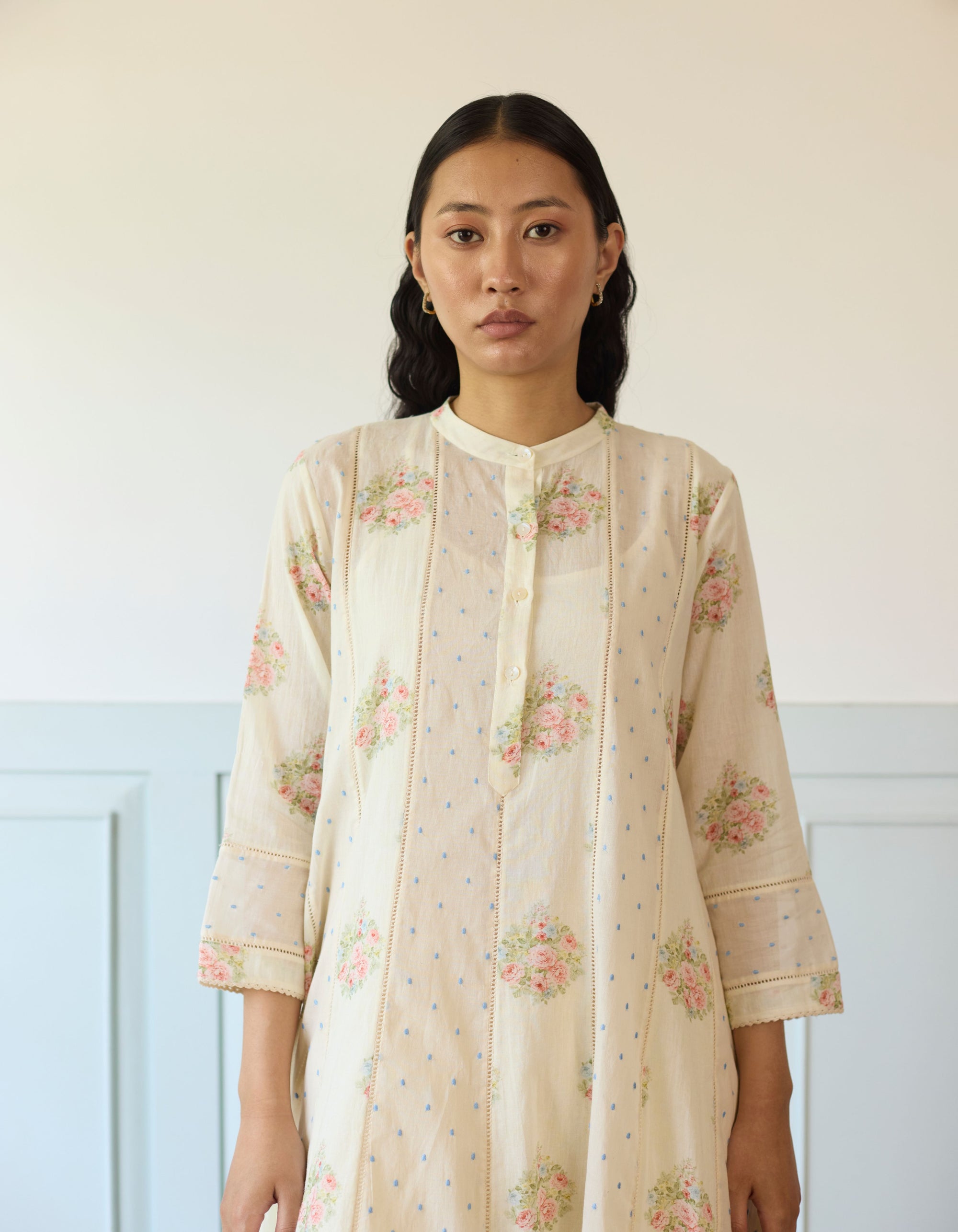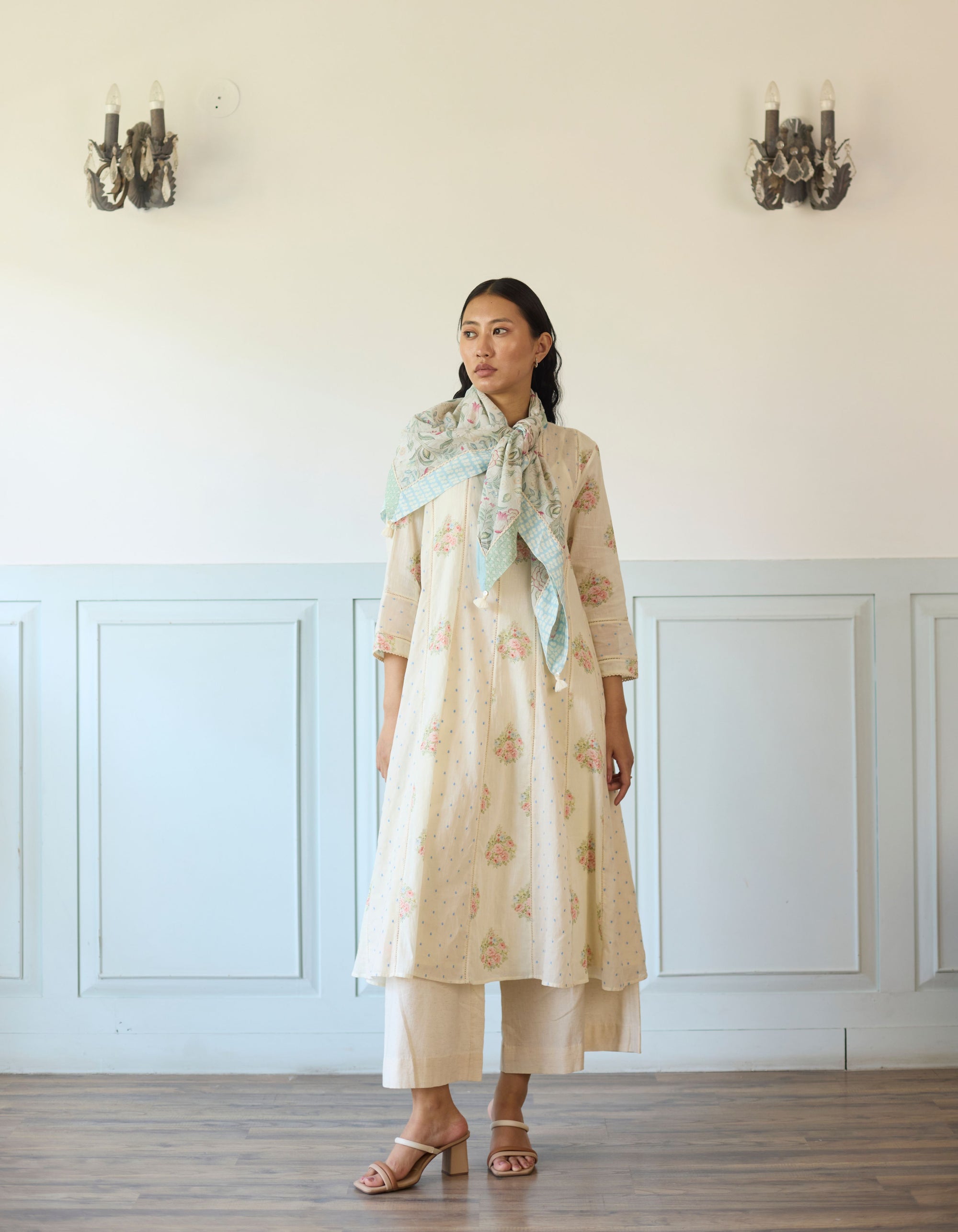 Beige Hand Embroidered Sweet Pea Maple Kurta Set