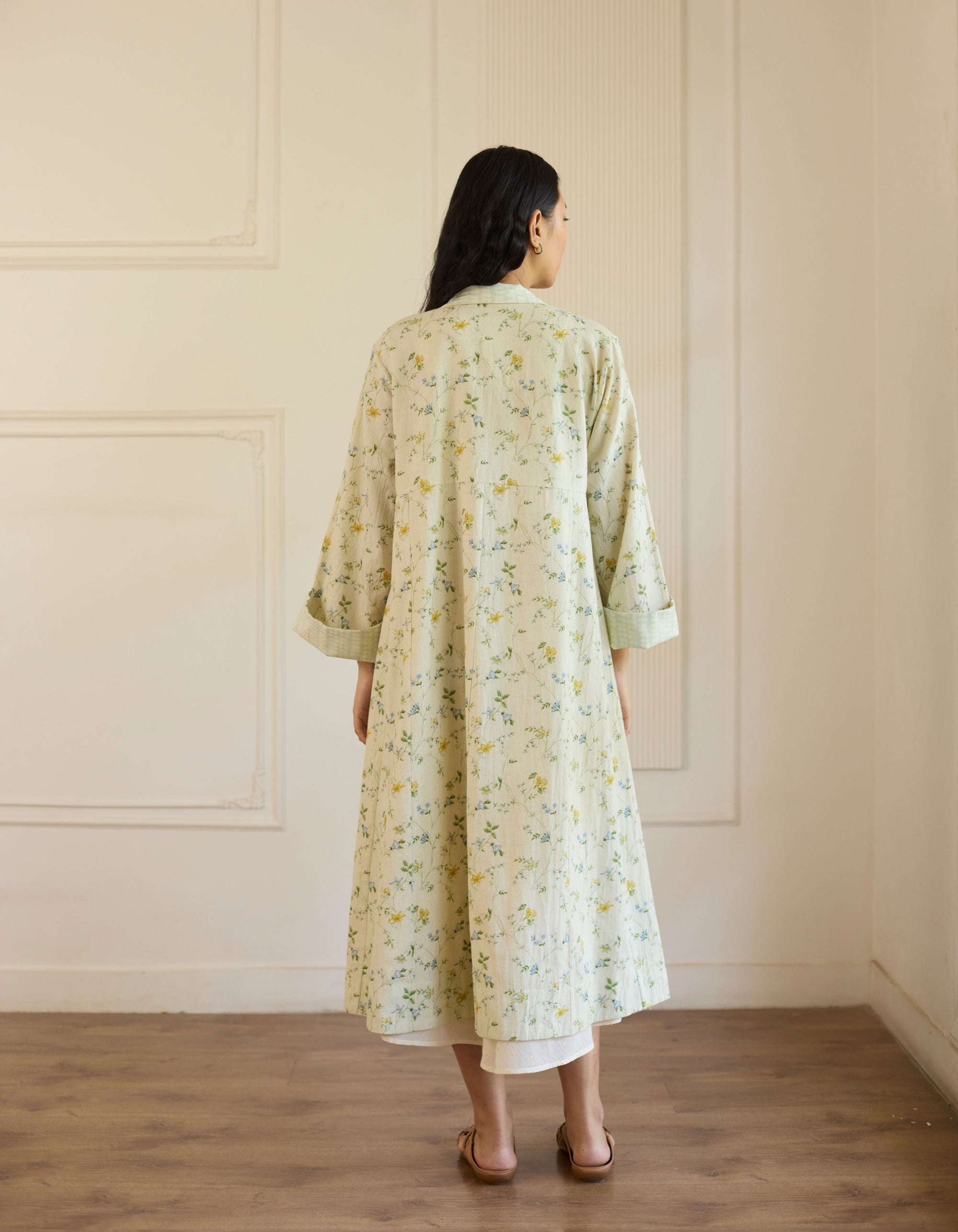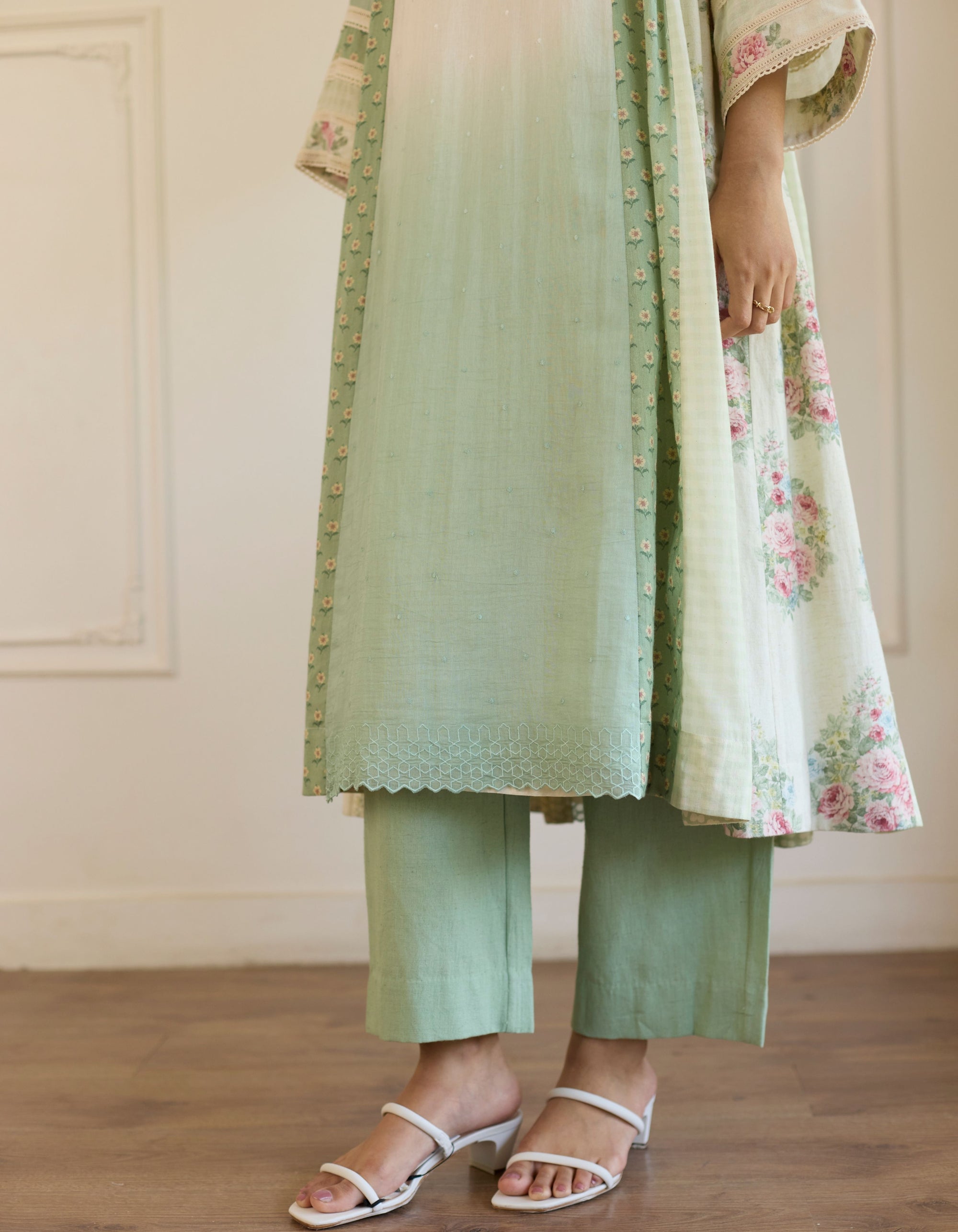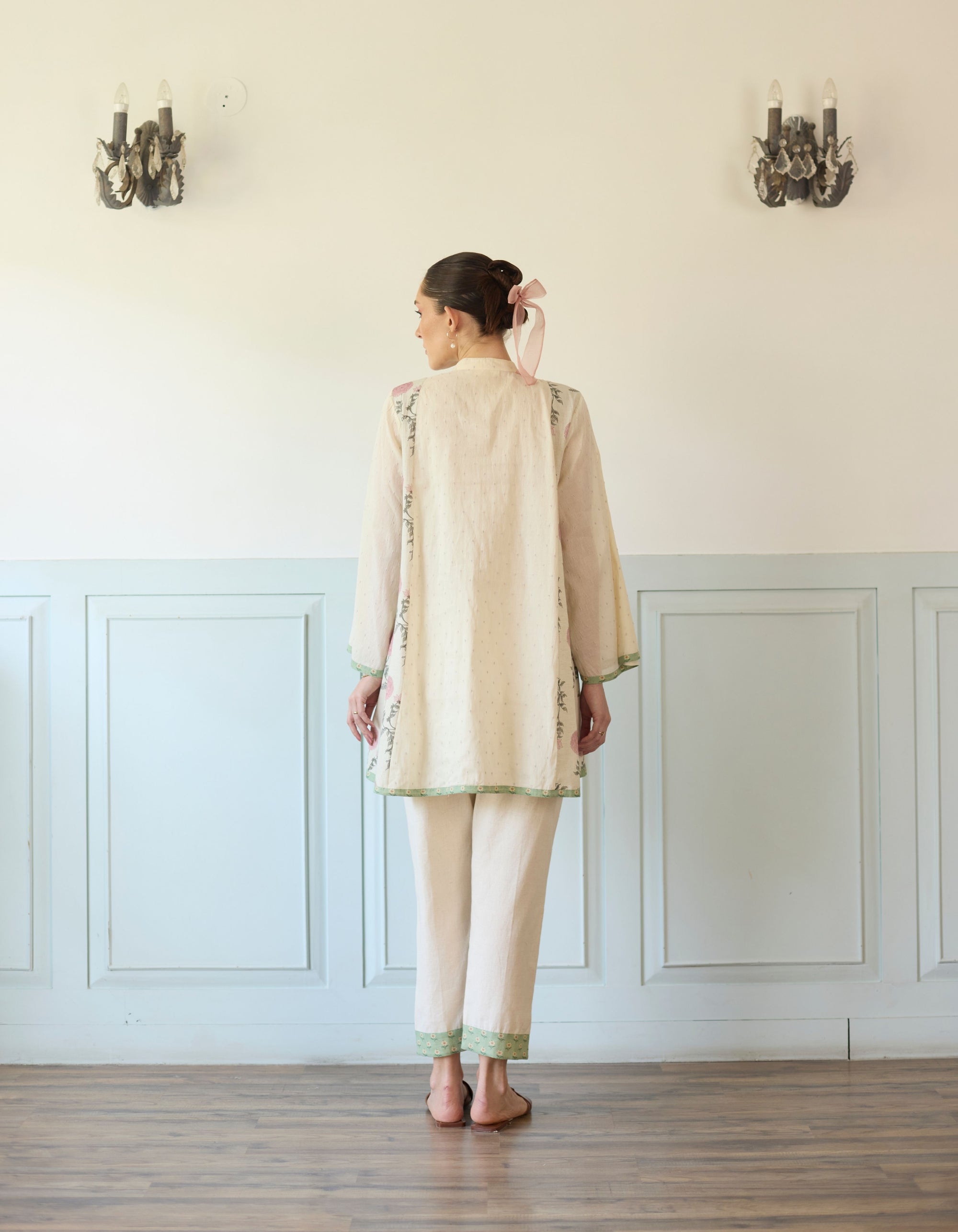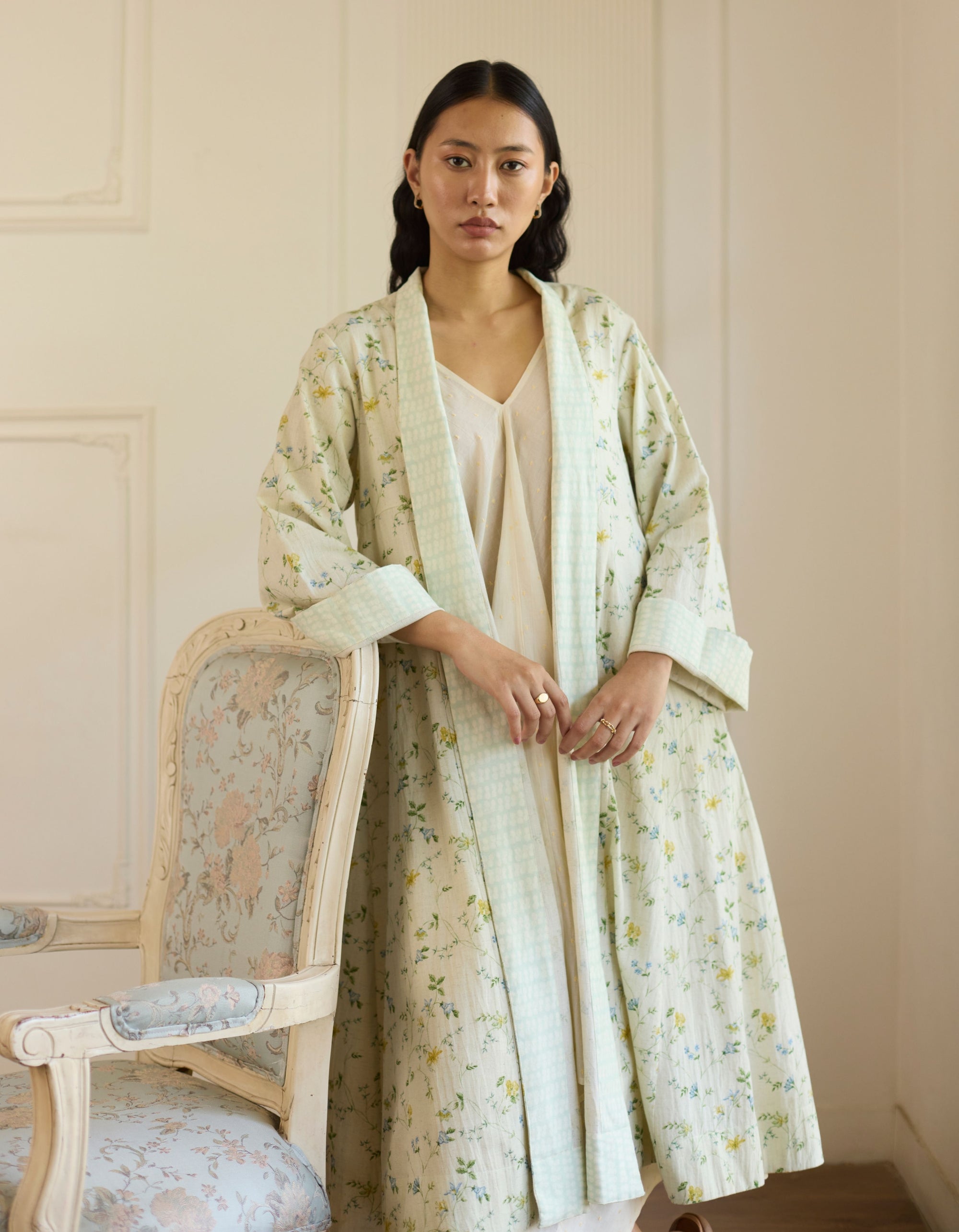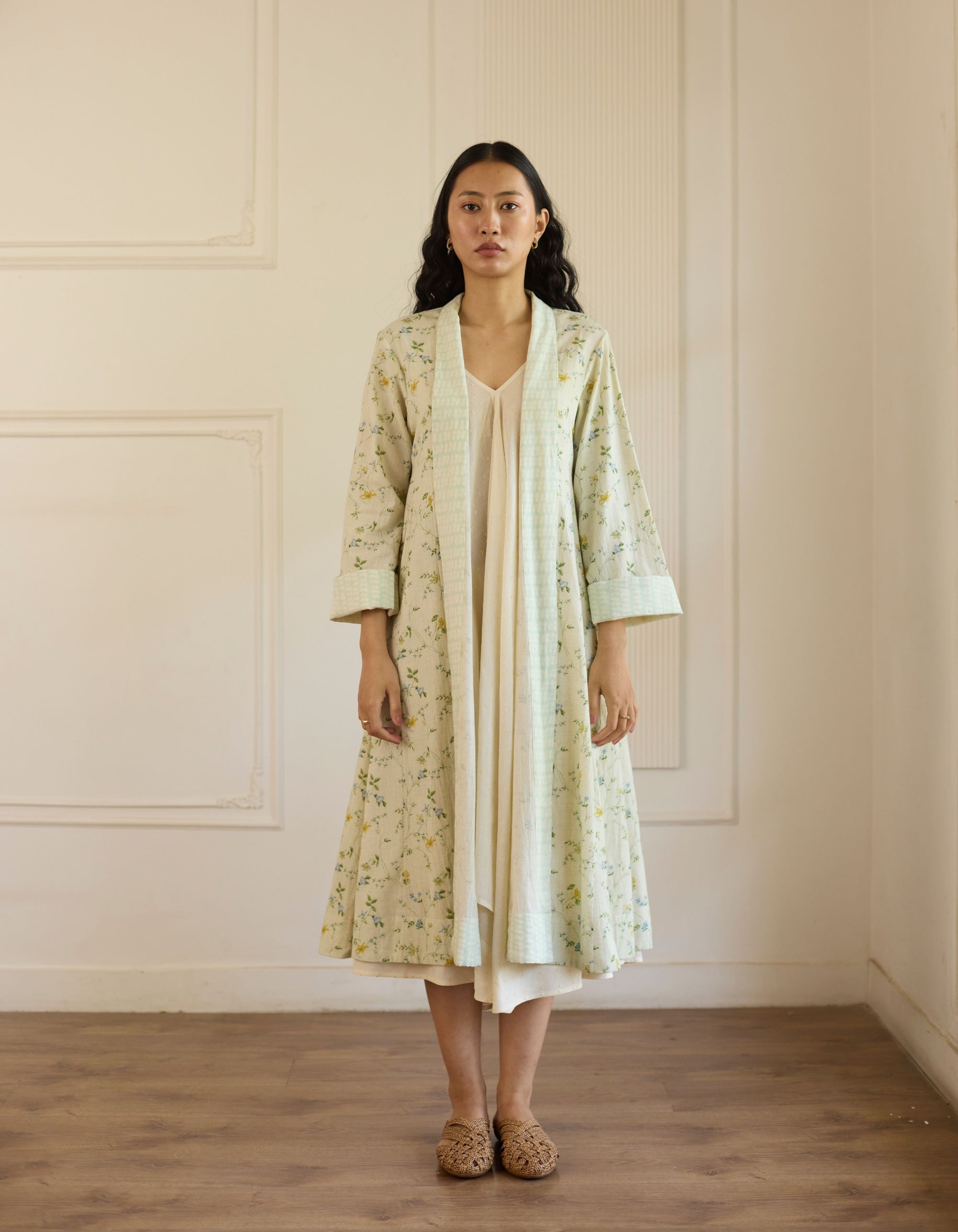 Ivory And Mint Green Floral Print Amelia Jacket Set