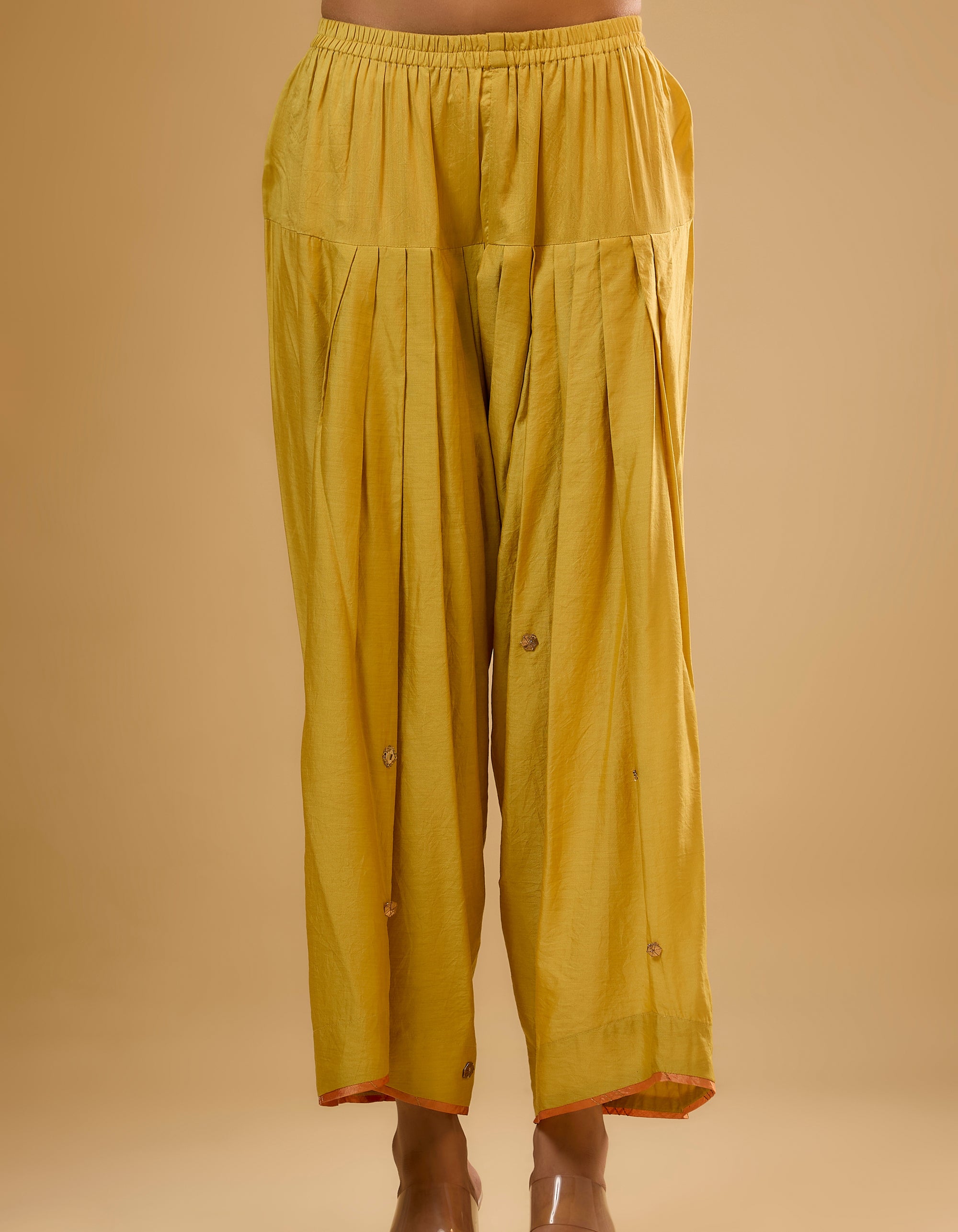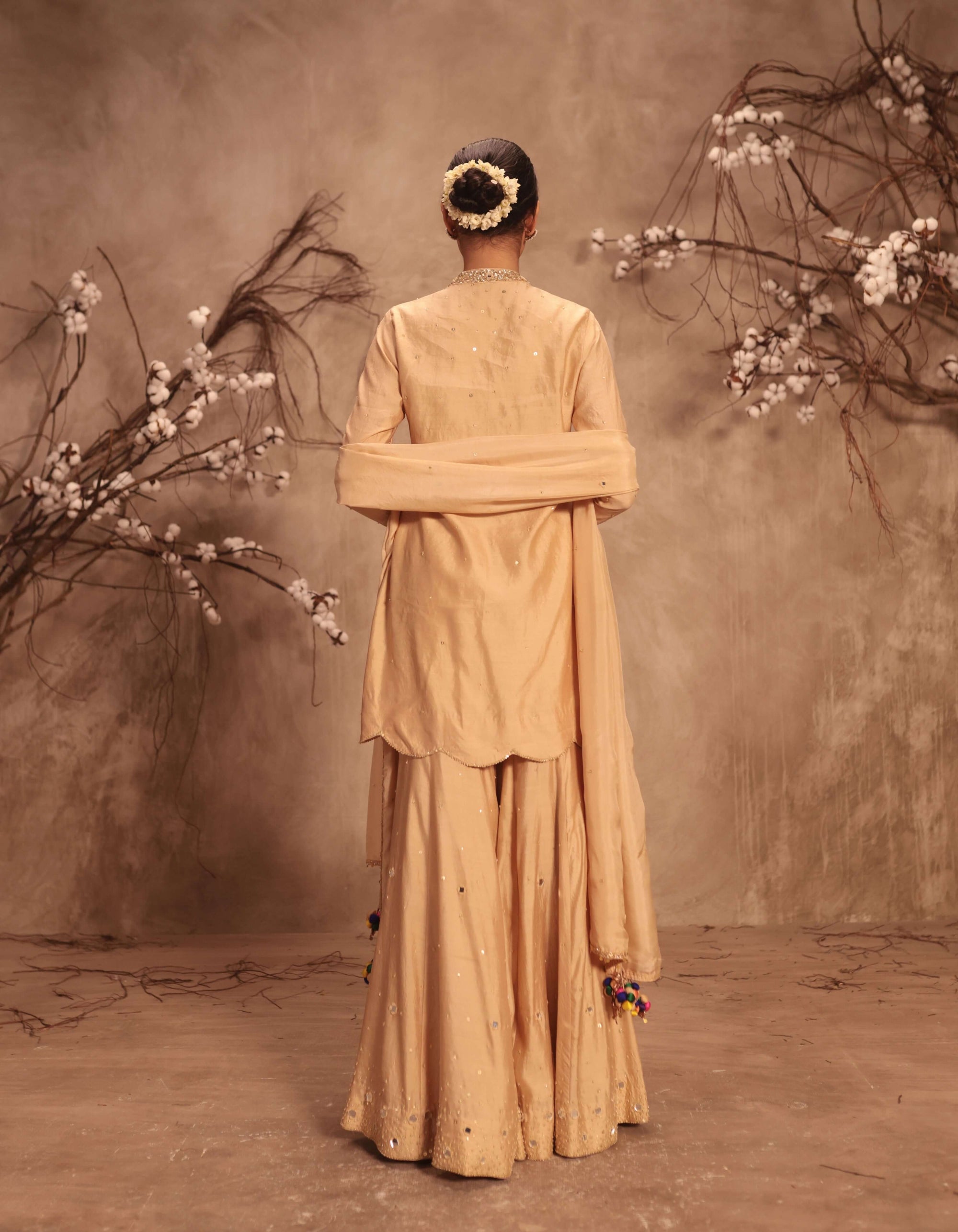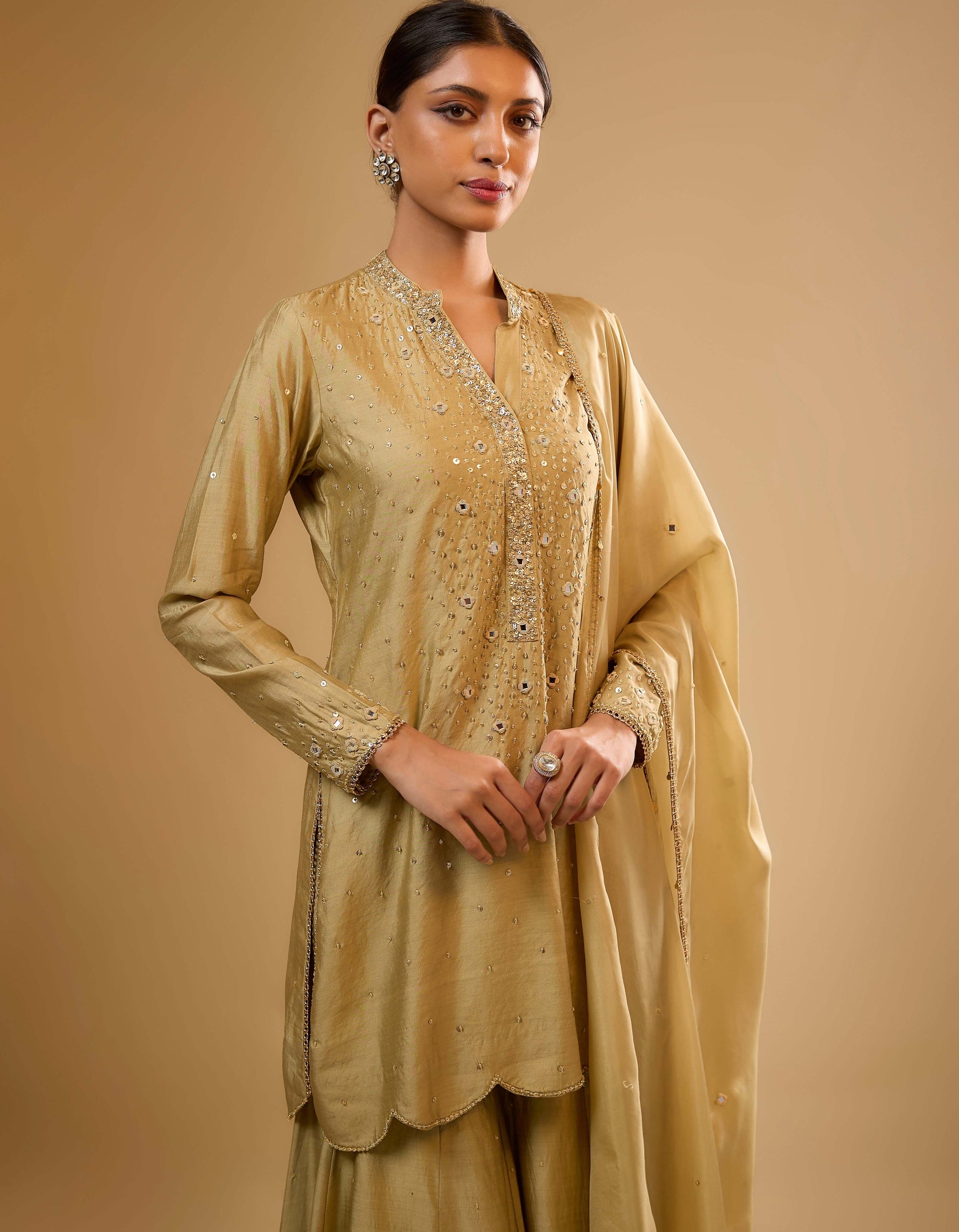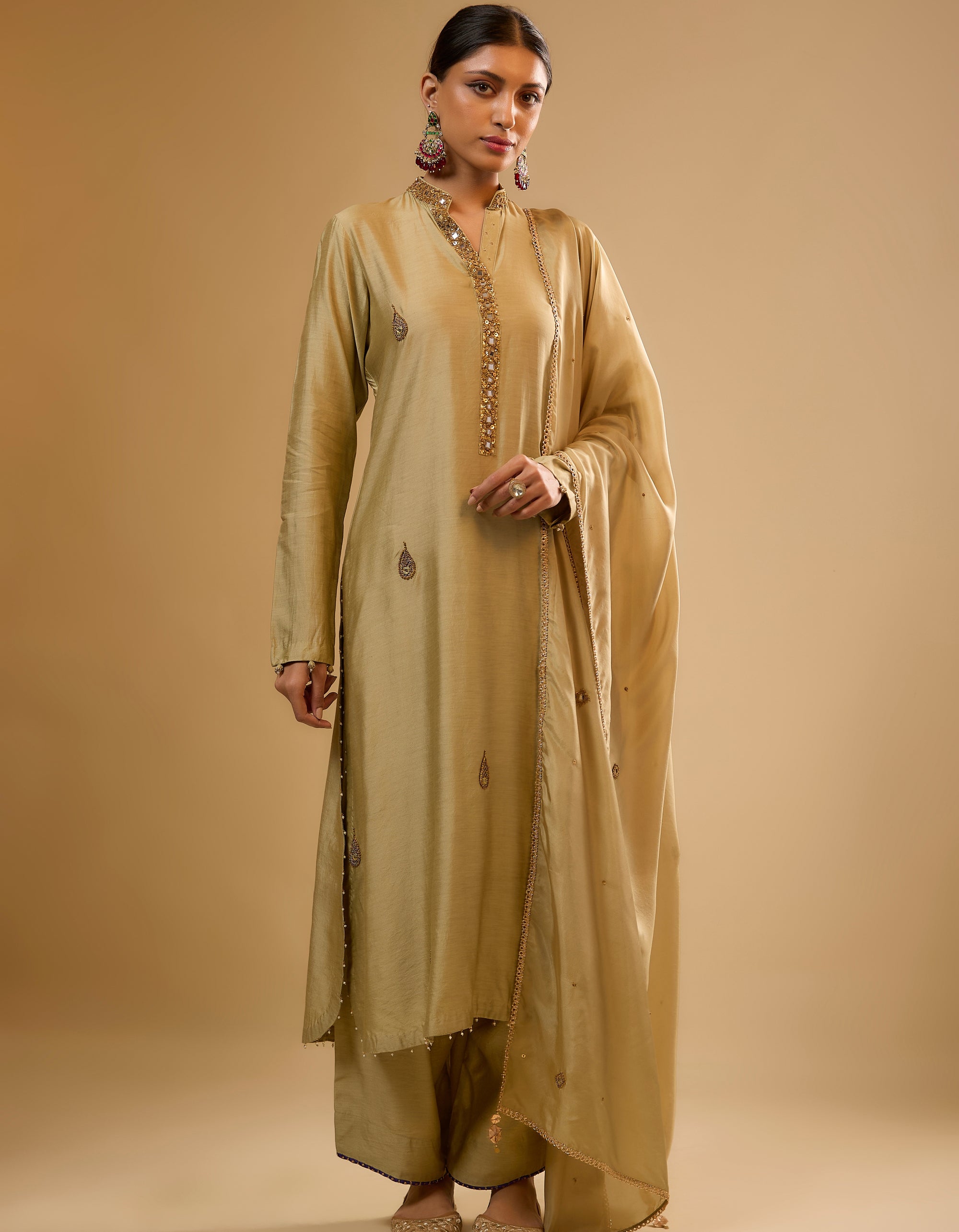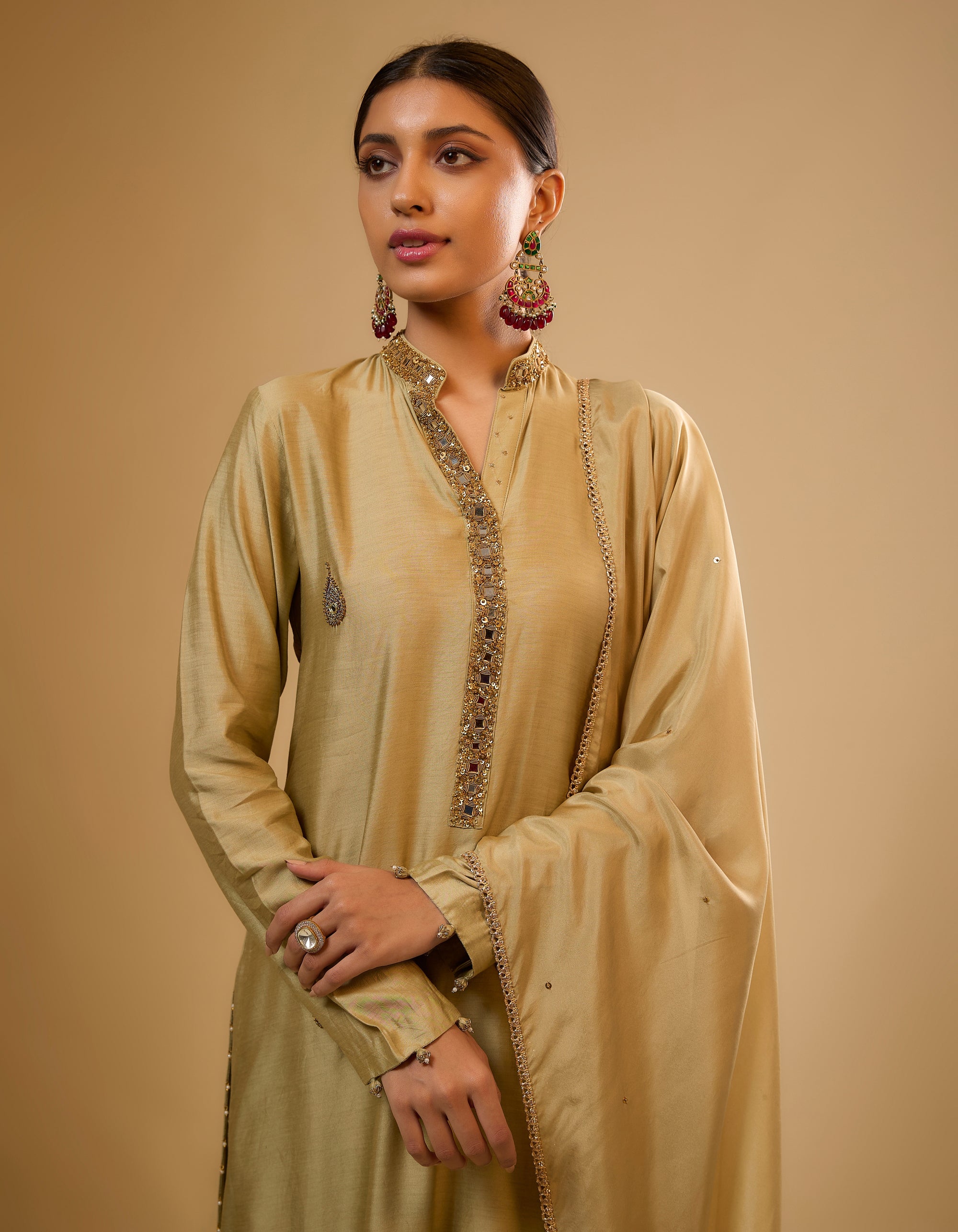 Mustard Embroidered V Neck Bageecha Kurta Set