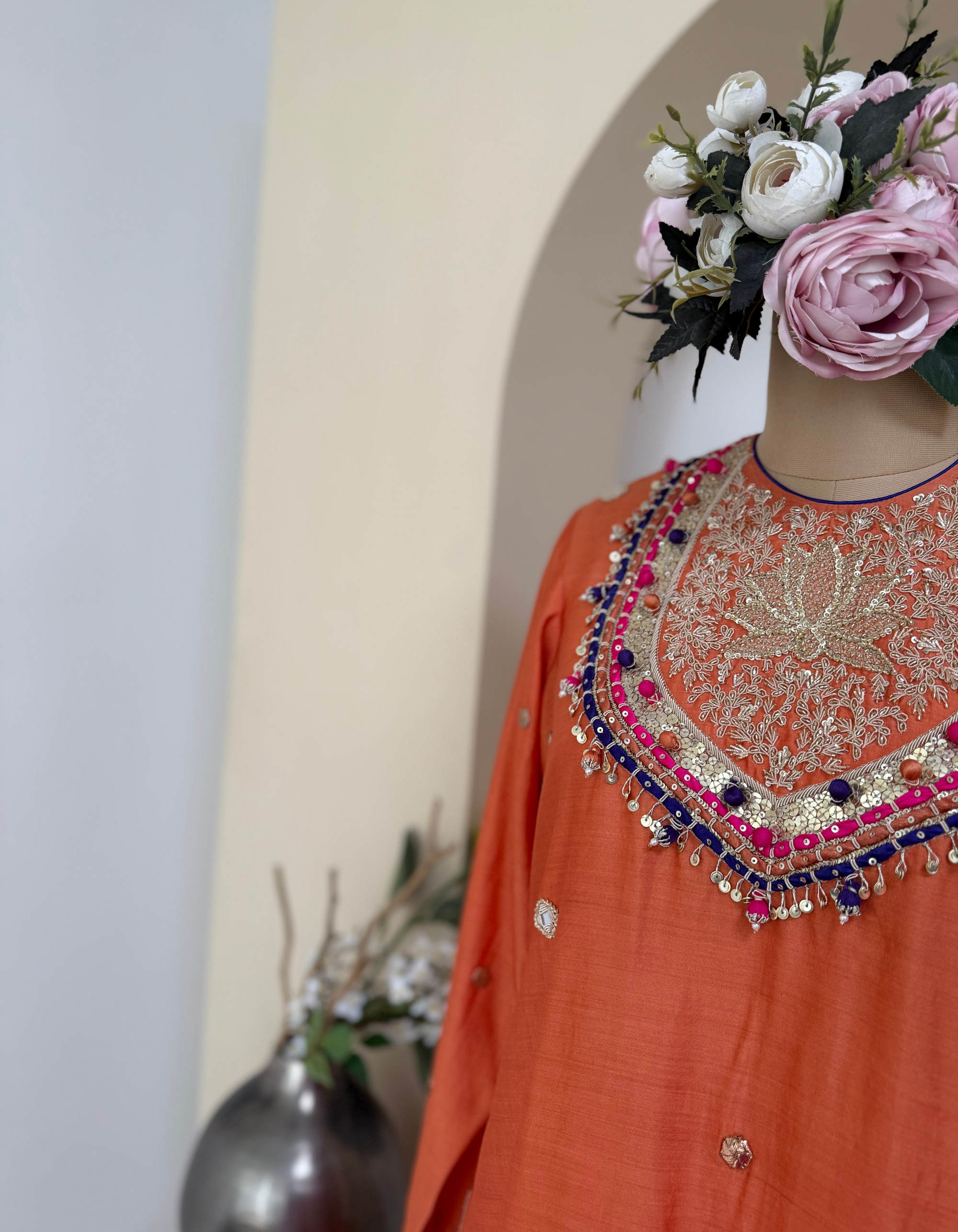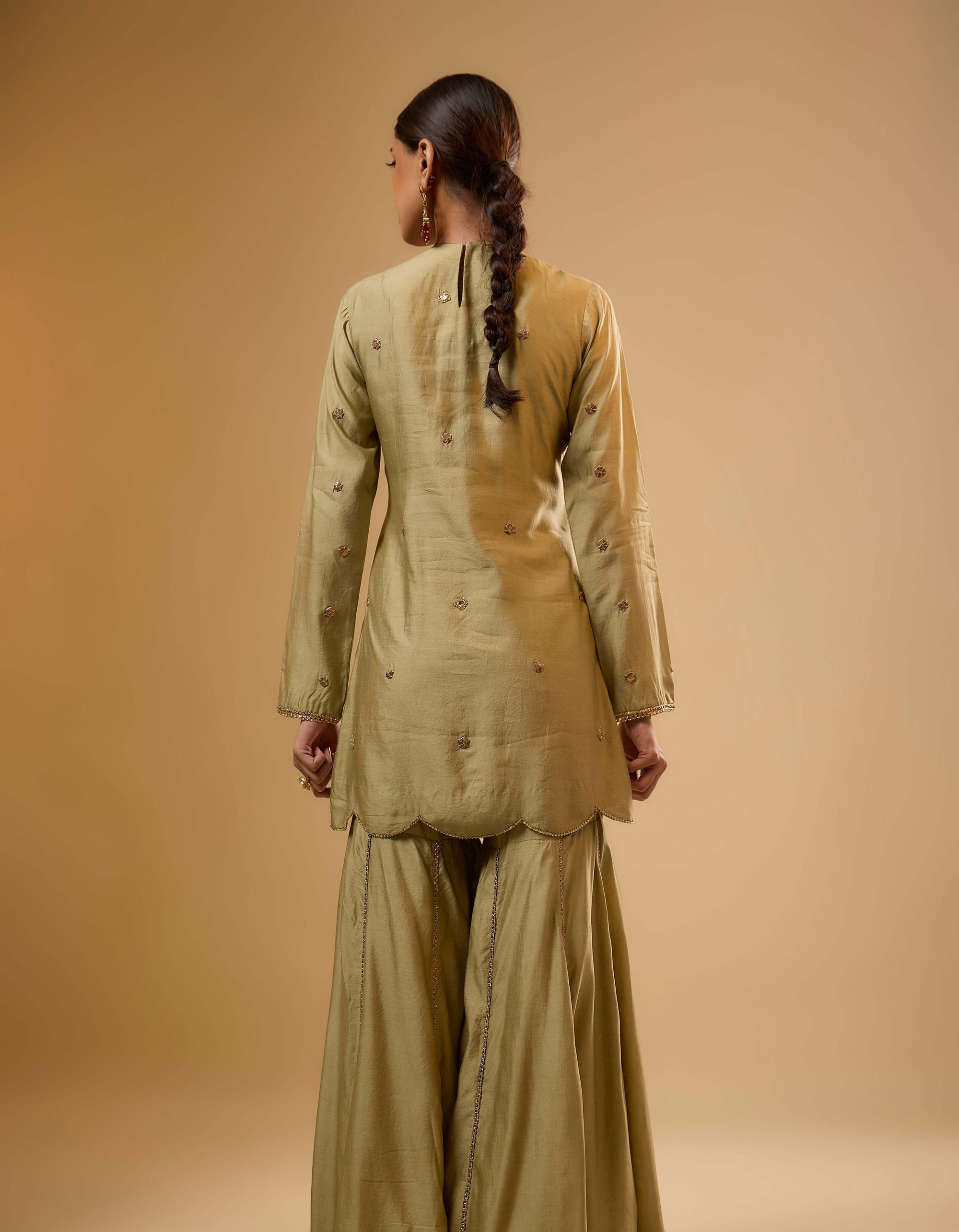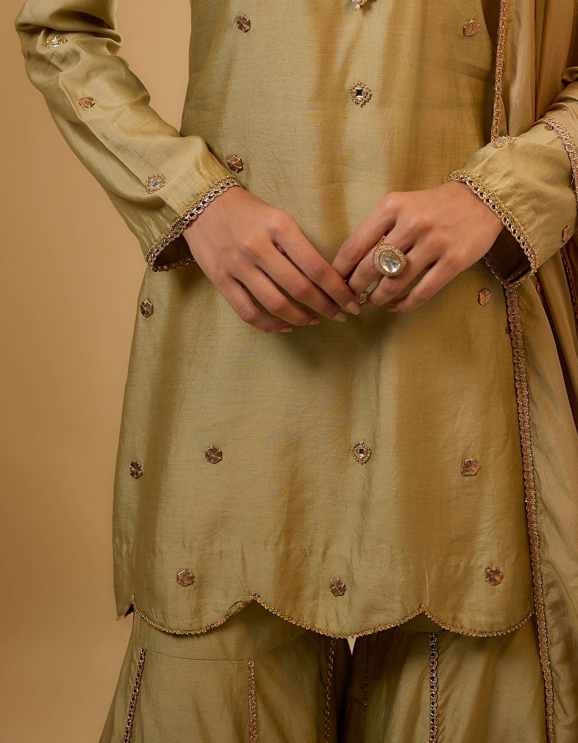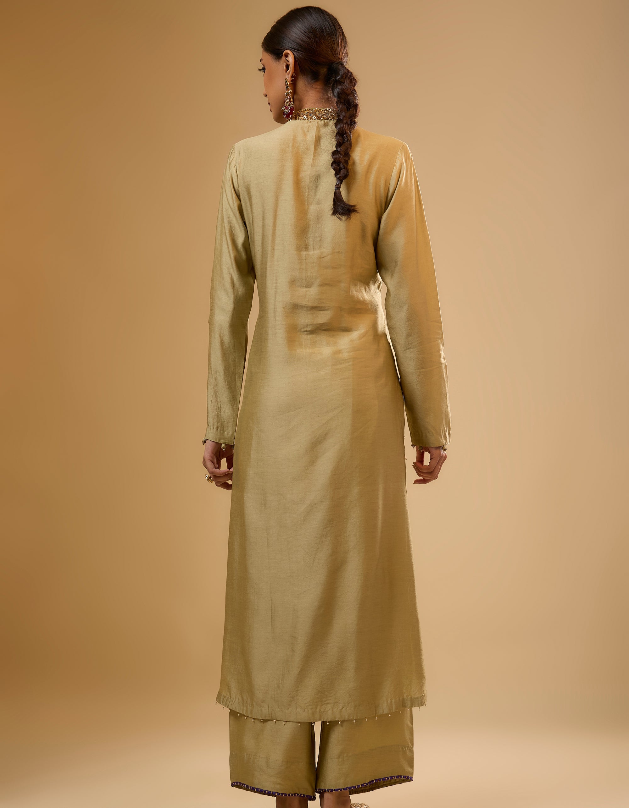Mustard Embroidered V Neck Bageecha Kurta Set