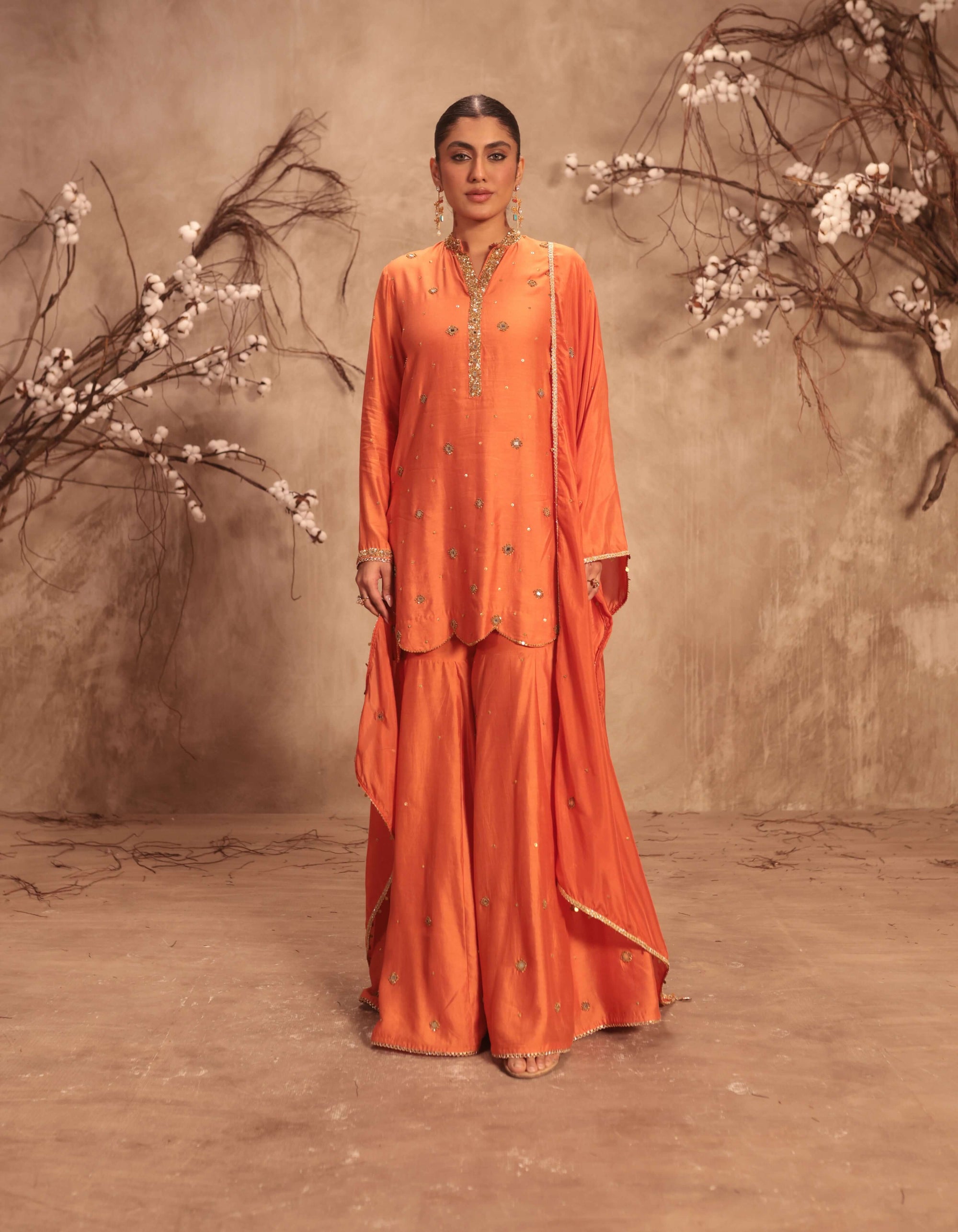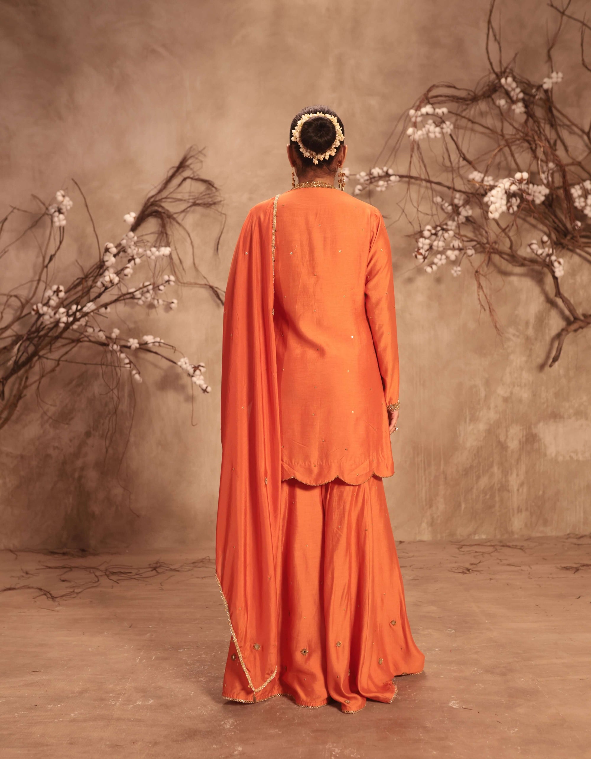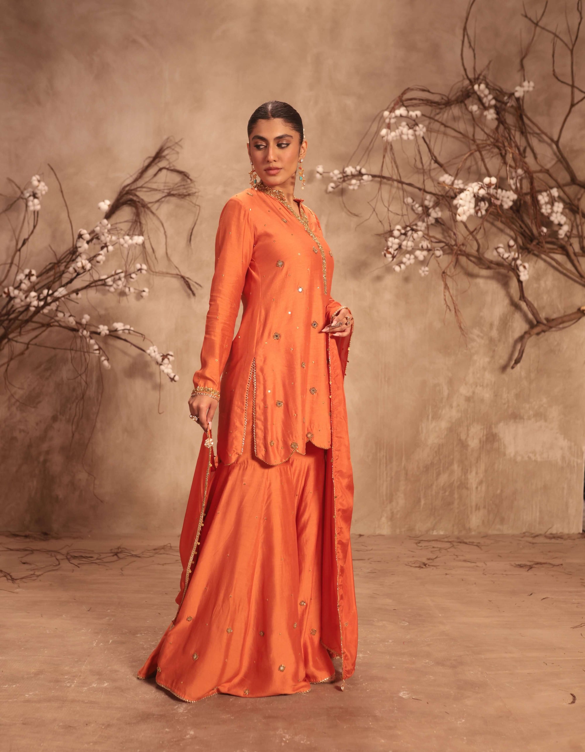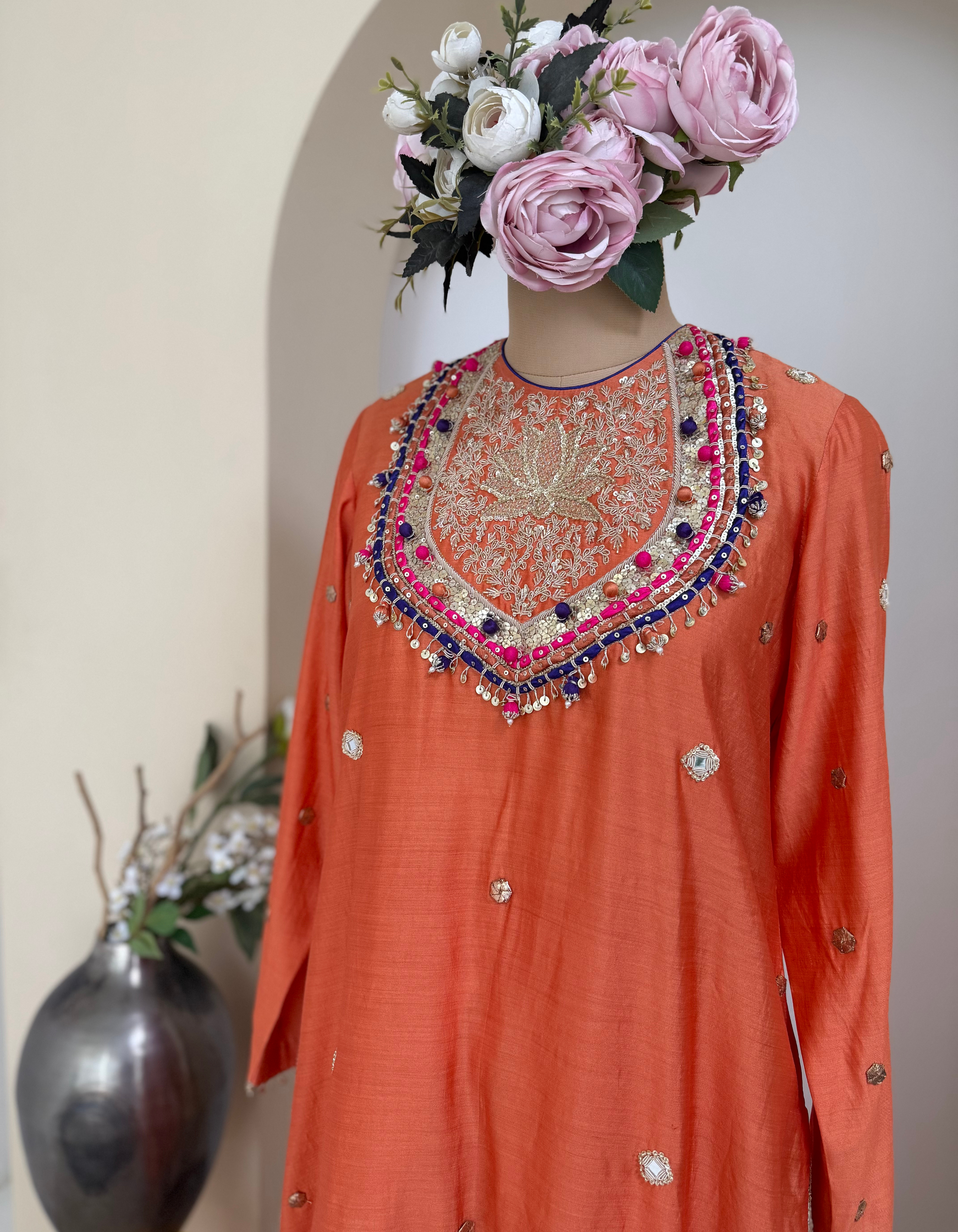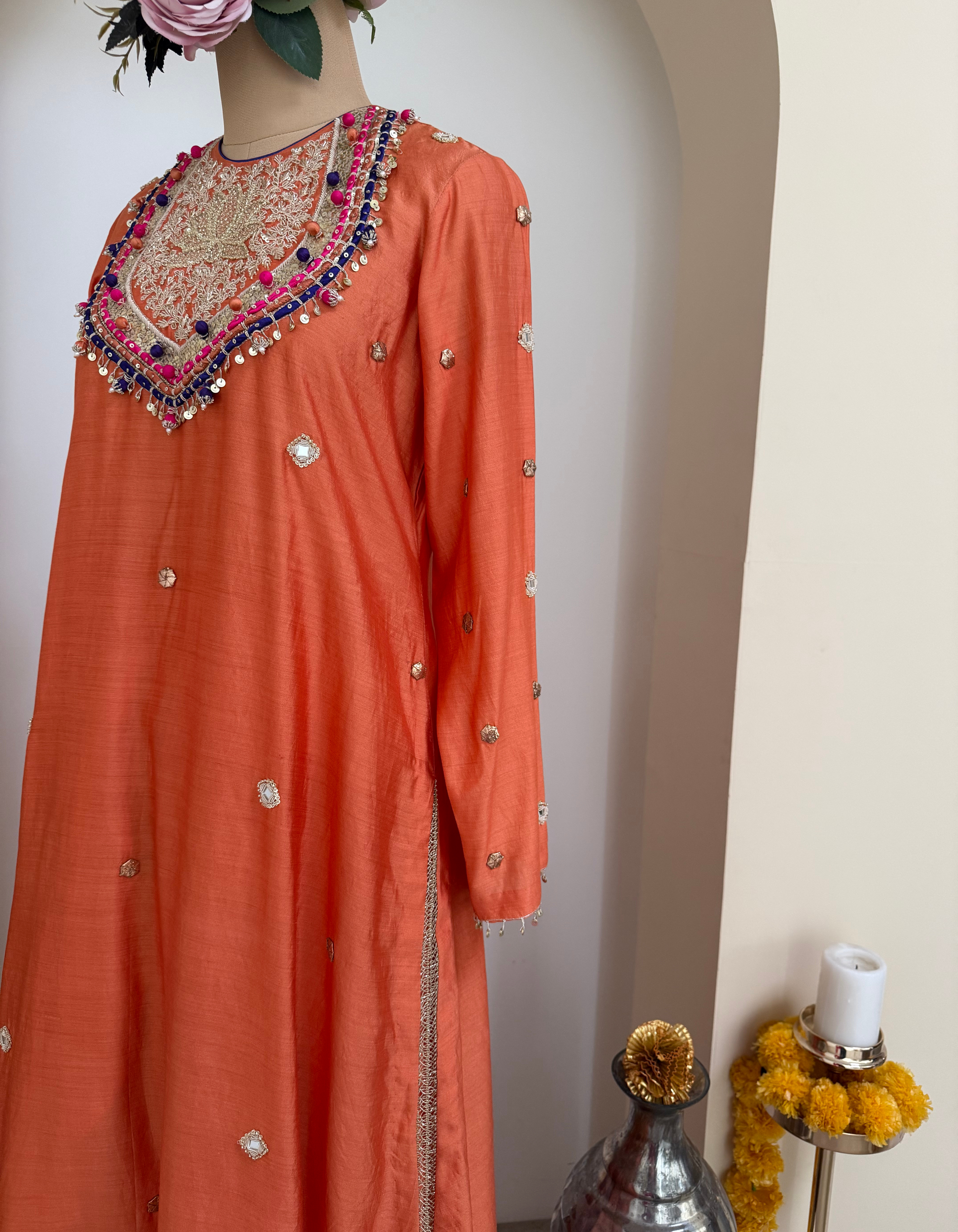Mustard Embroidered V Neck Bageecha Kurta Set