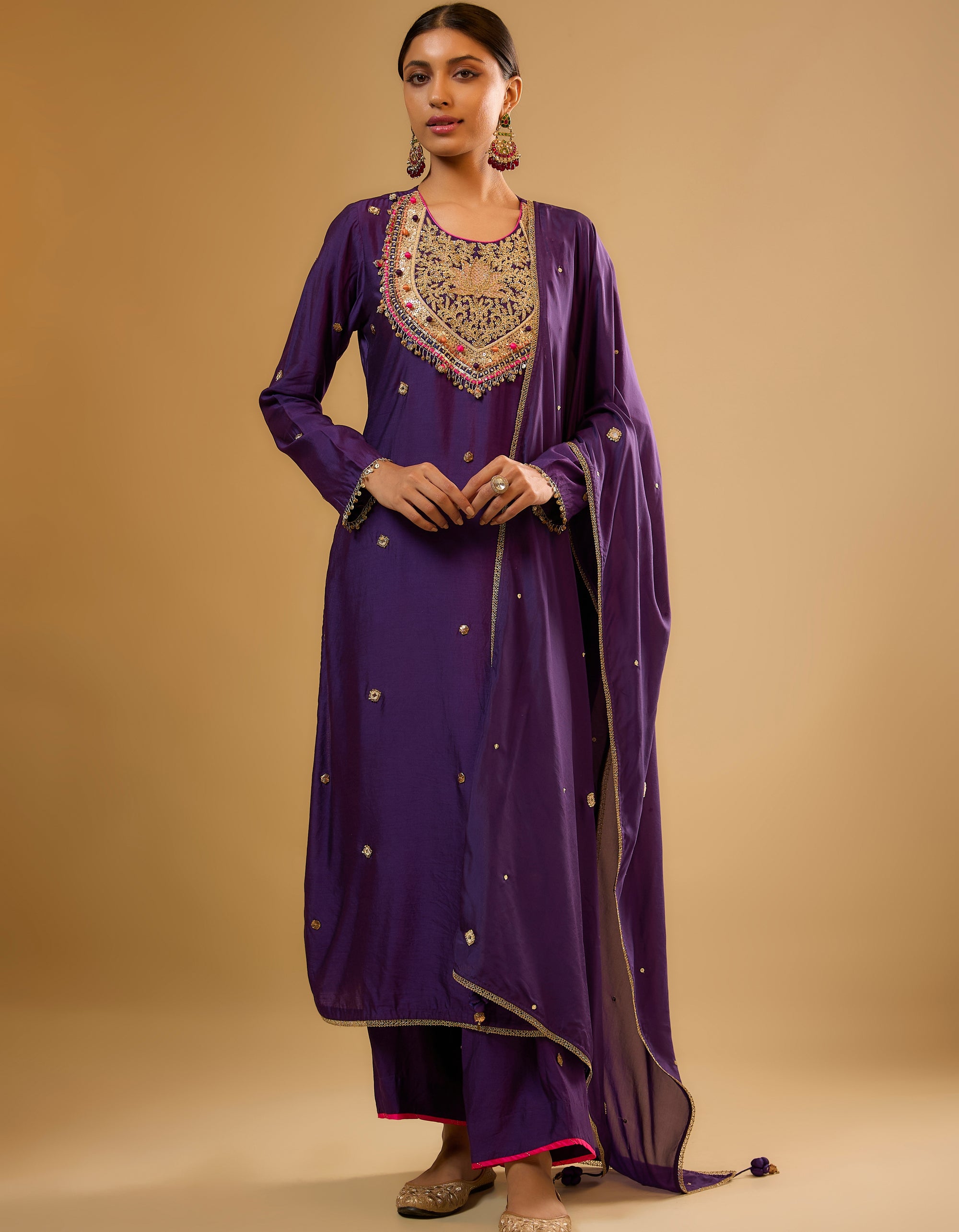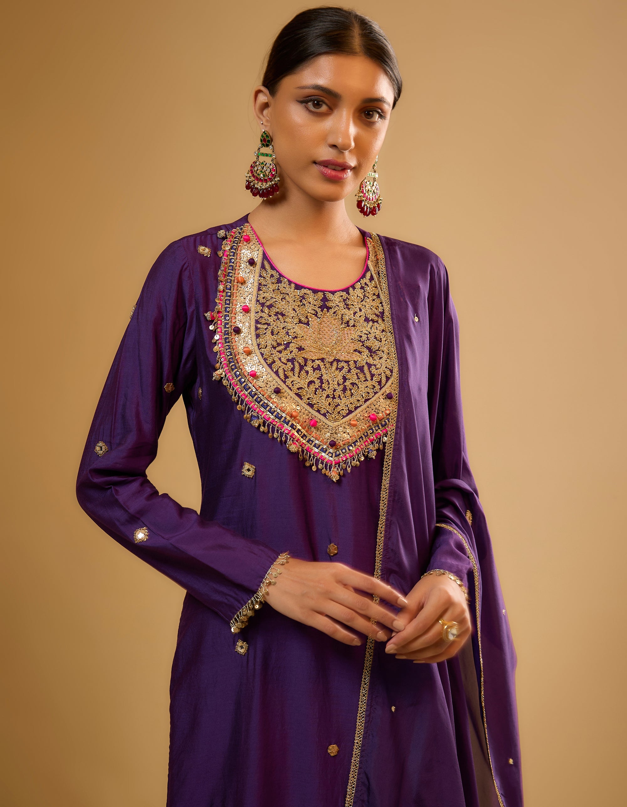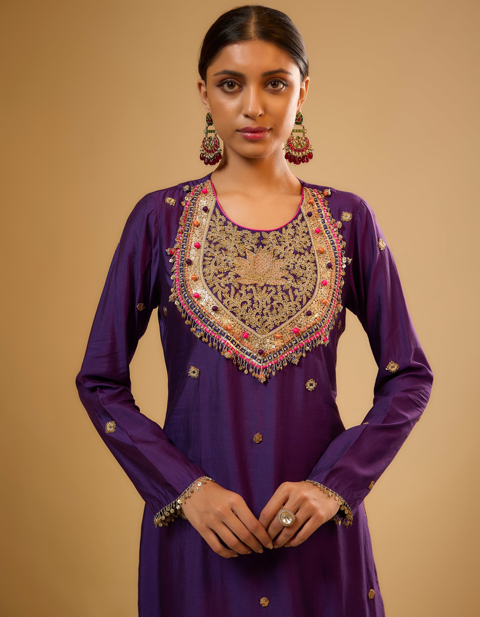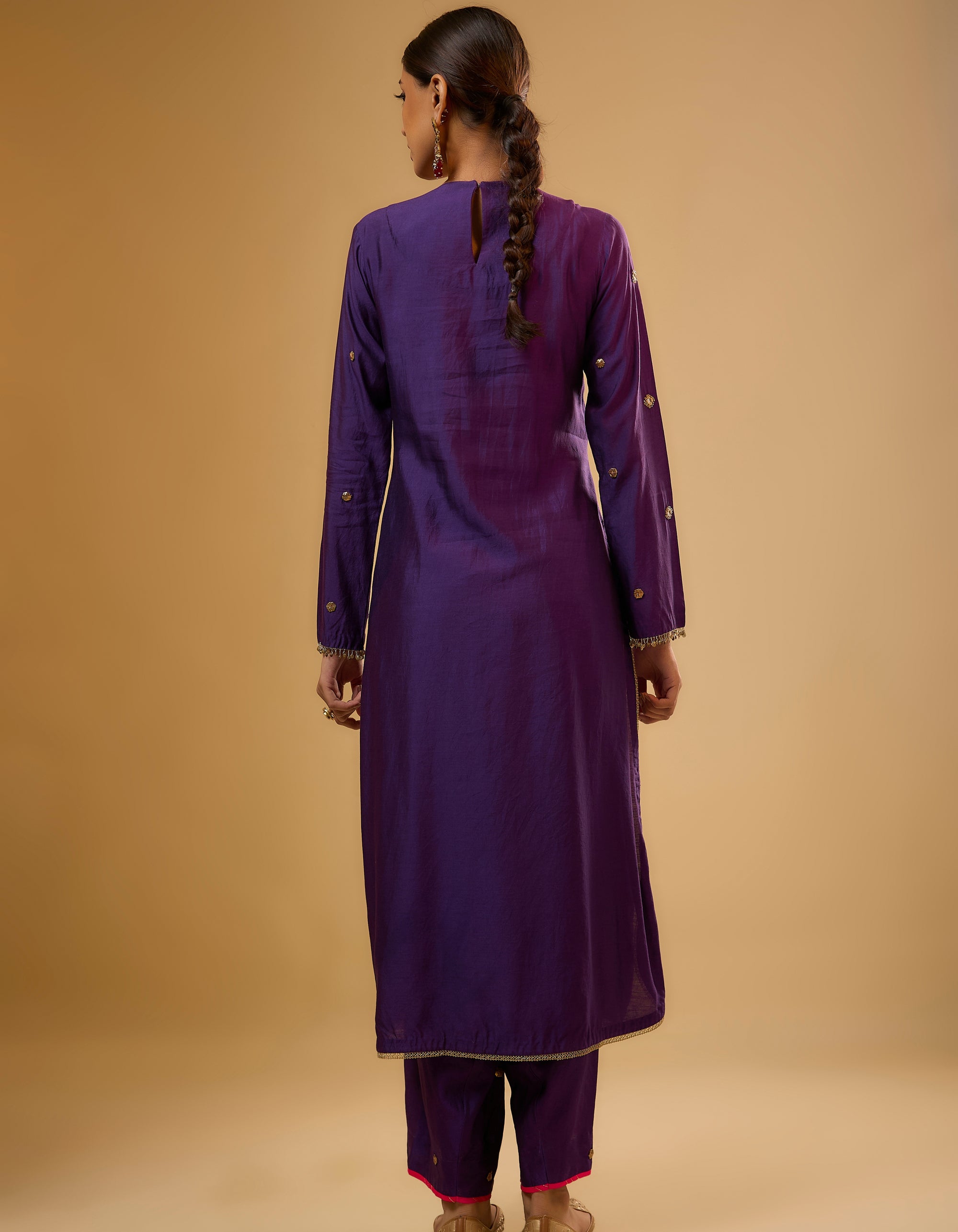 Purple Anti Fit Stripe Bageecha Kurta Set