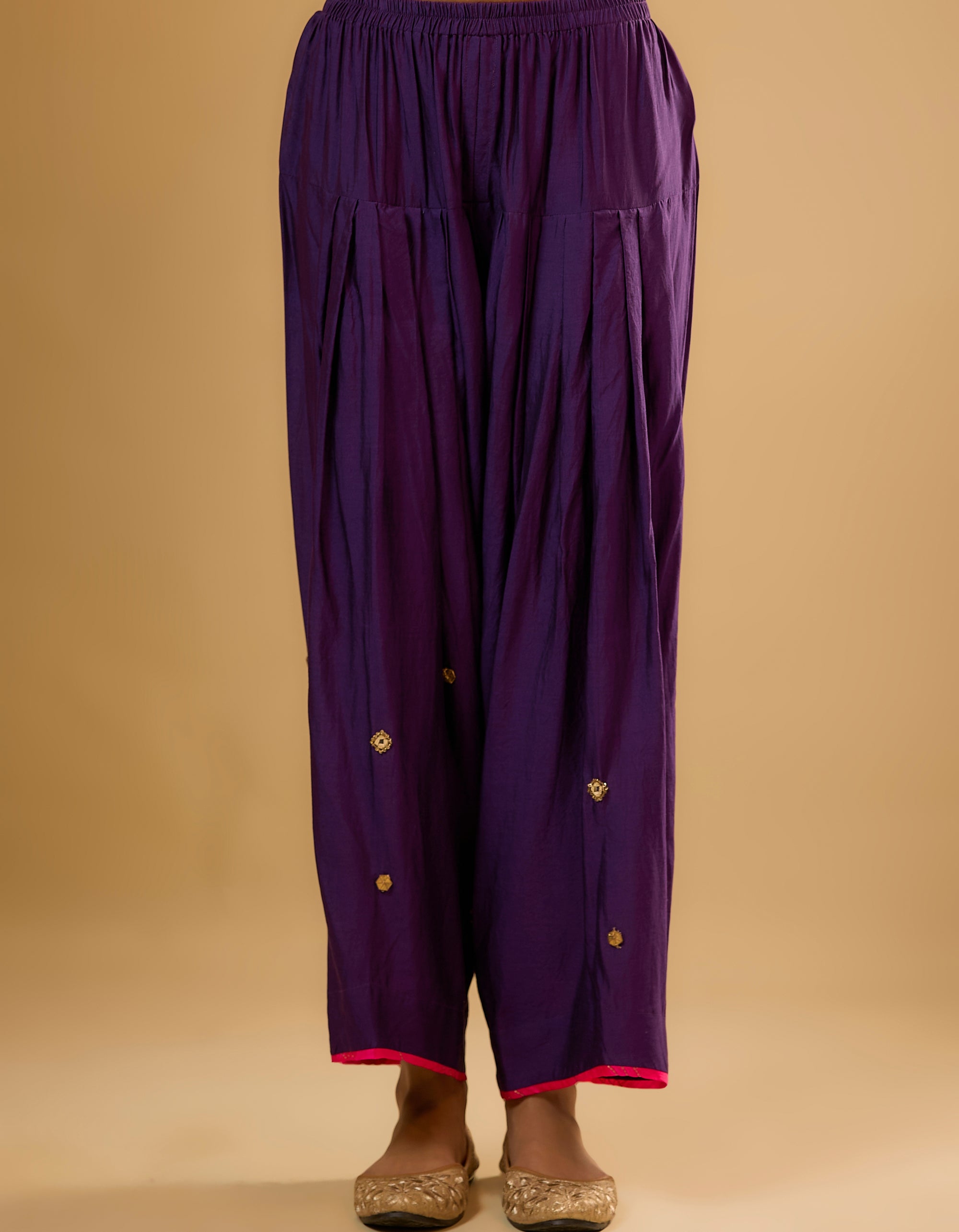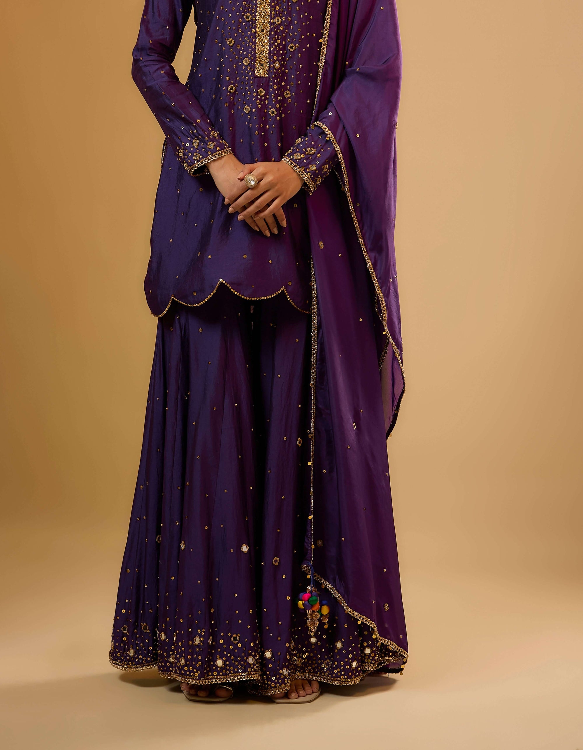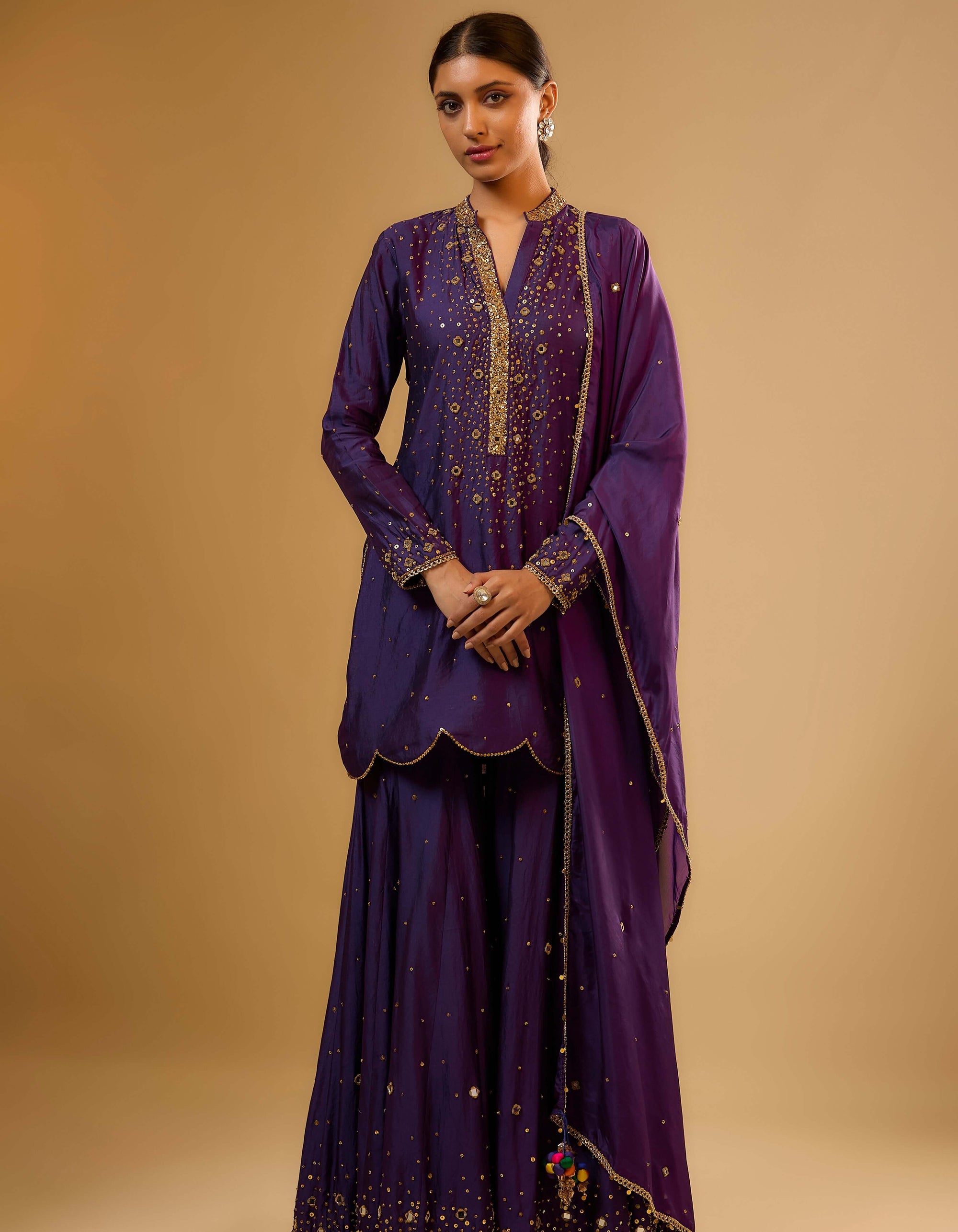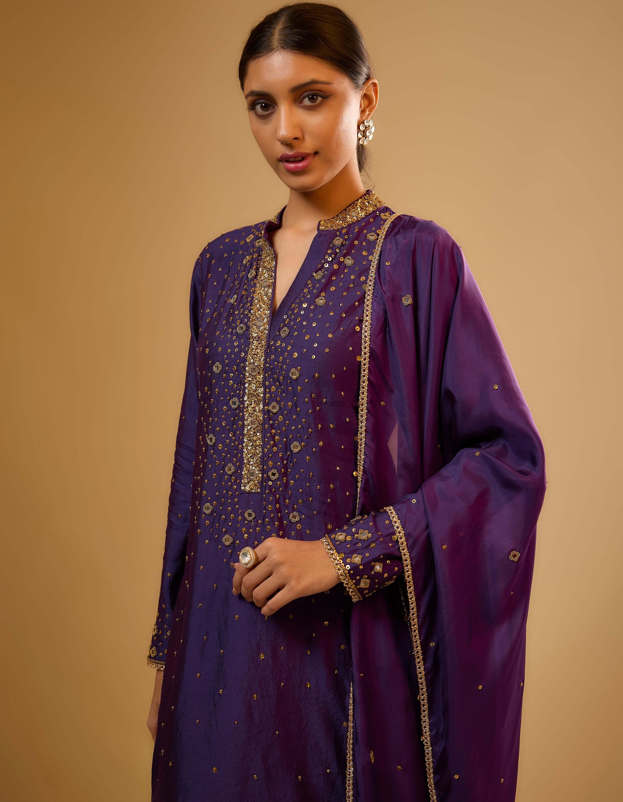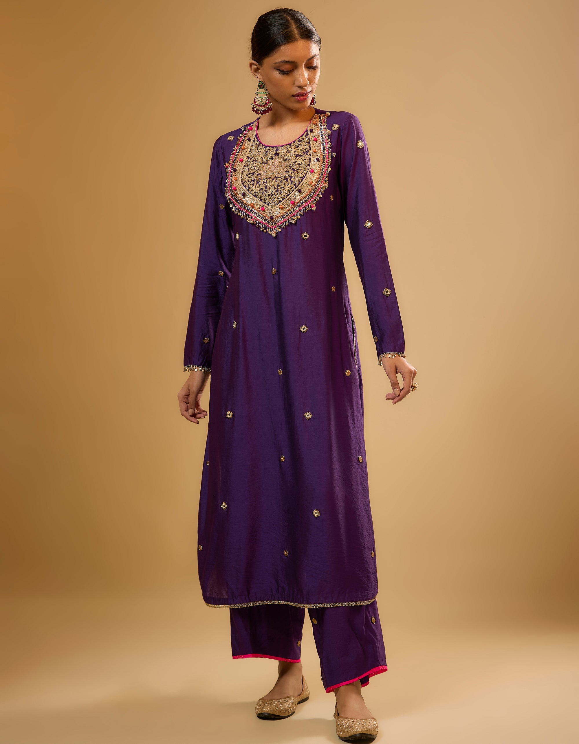 Purple Anti Fit Stripe Bageecha Kurta Set
