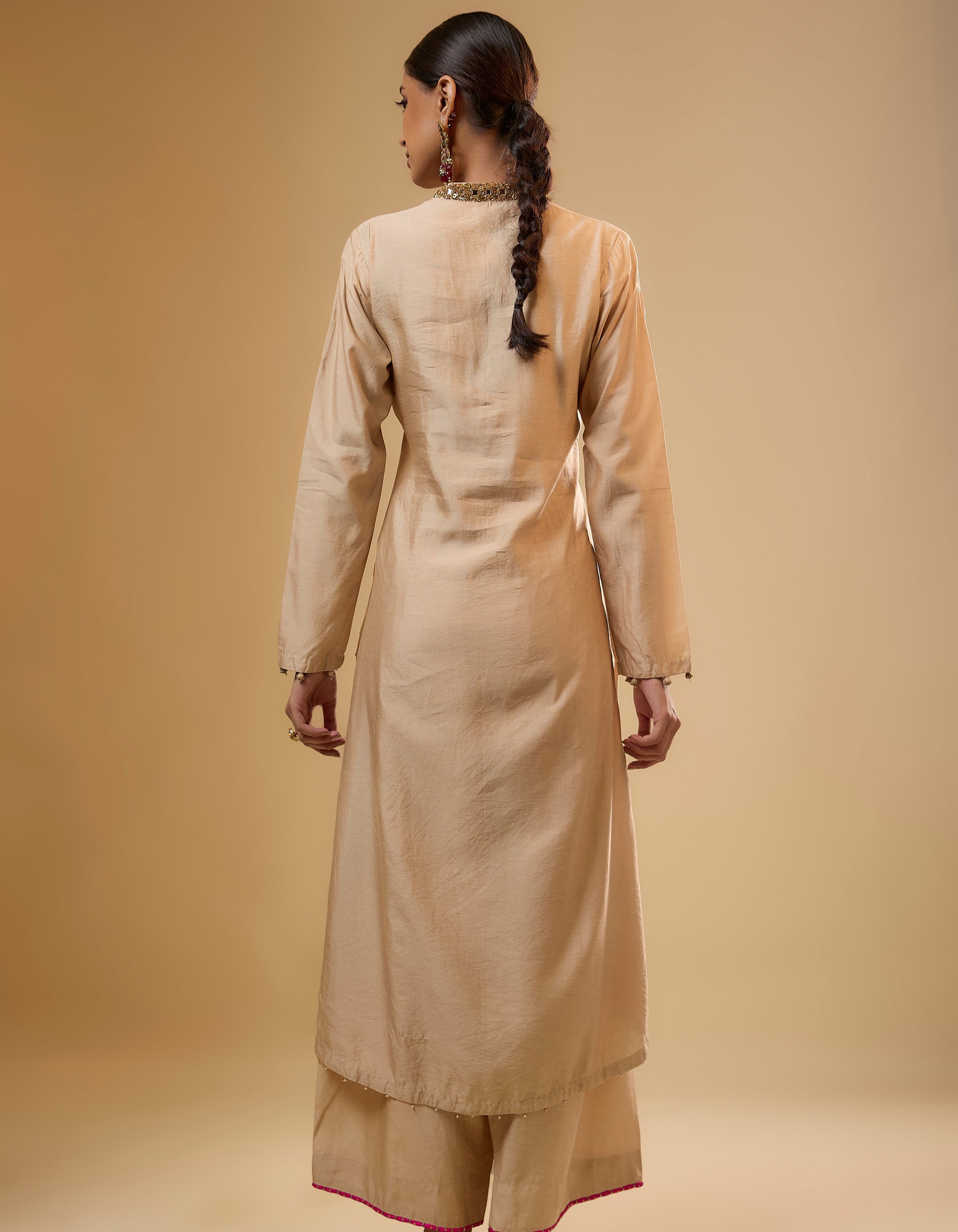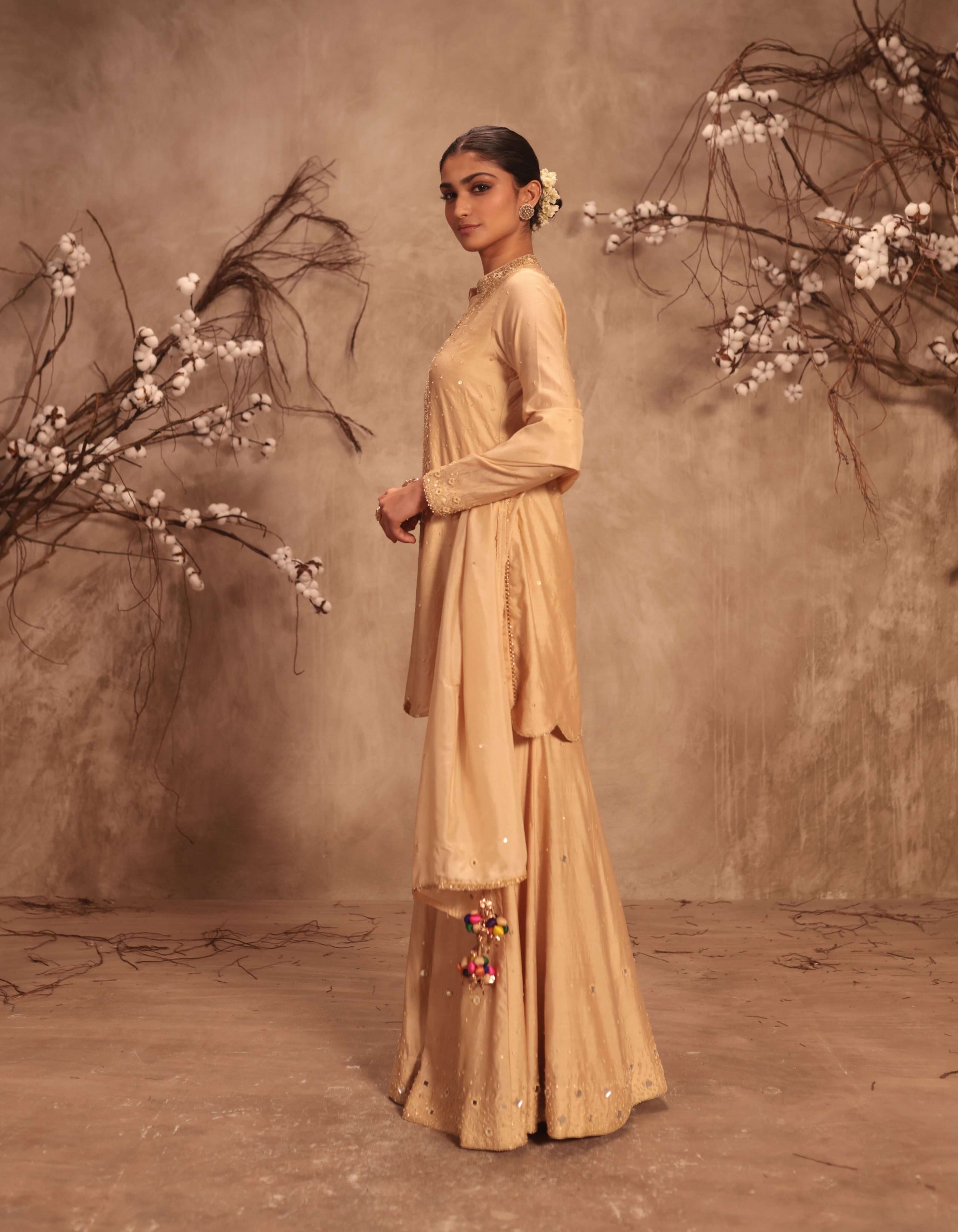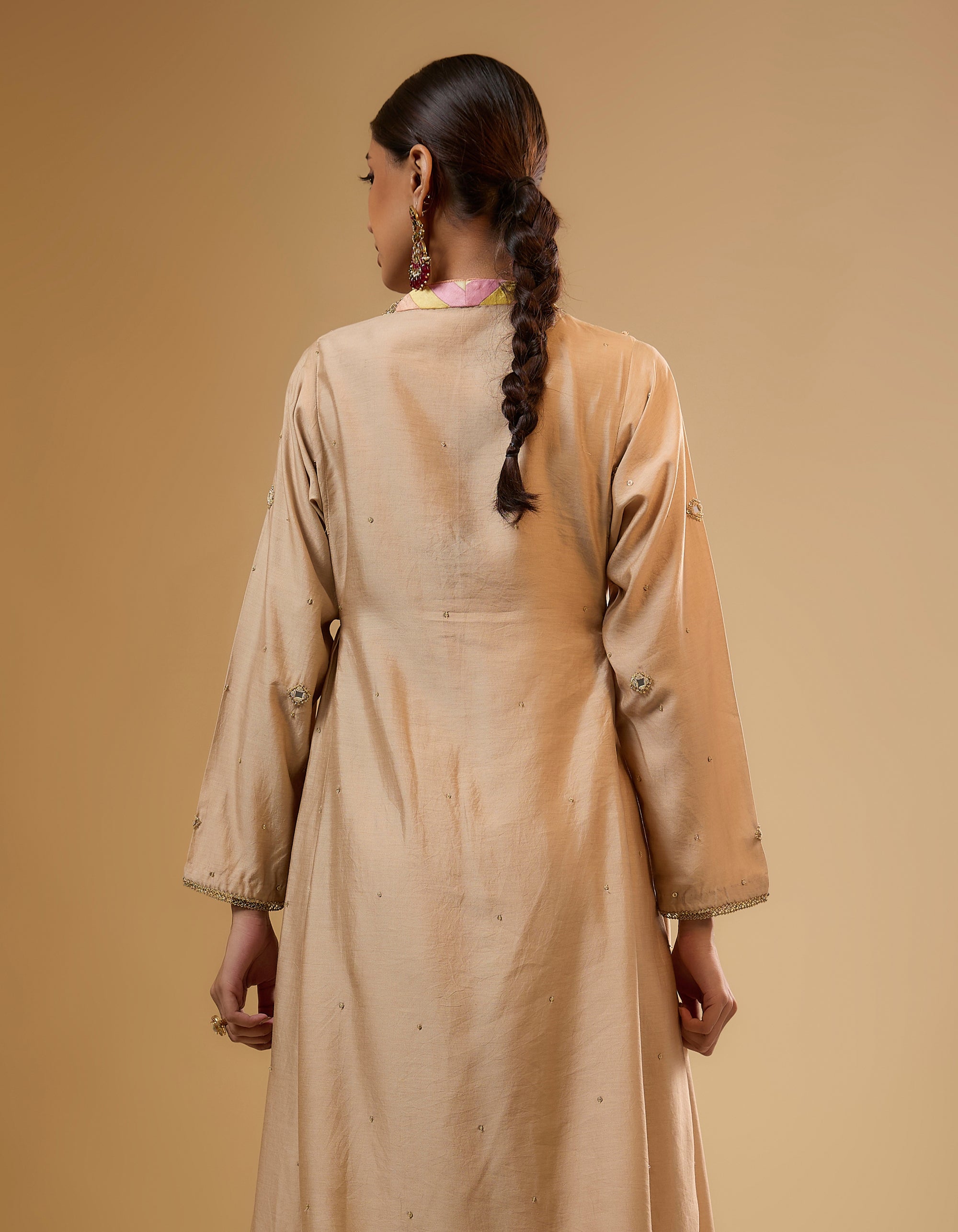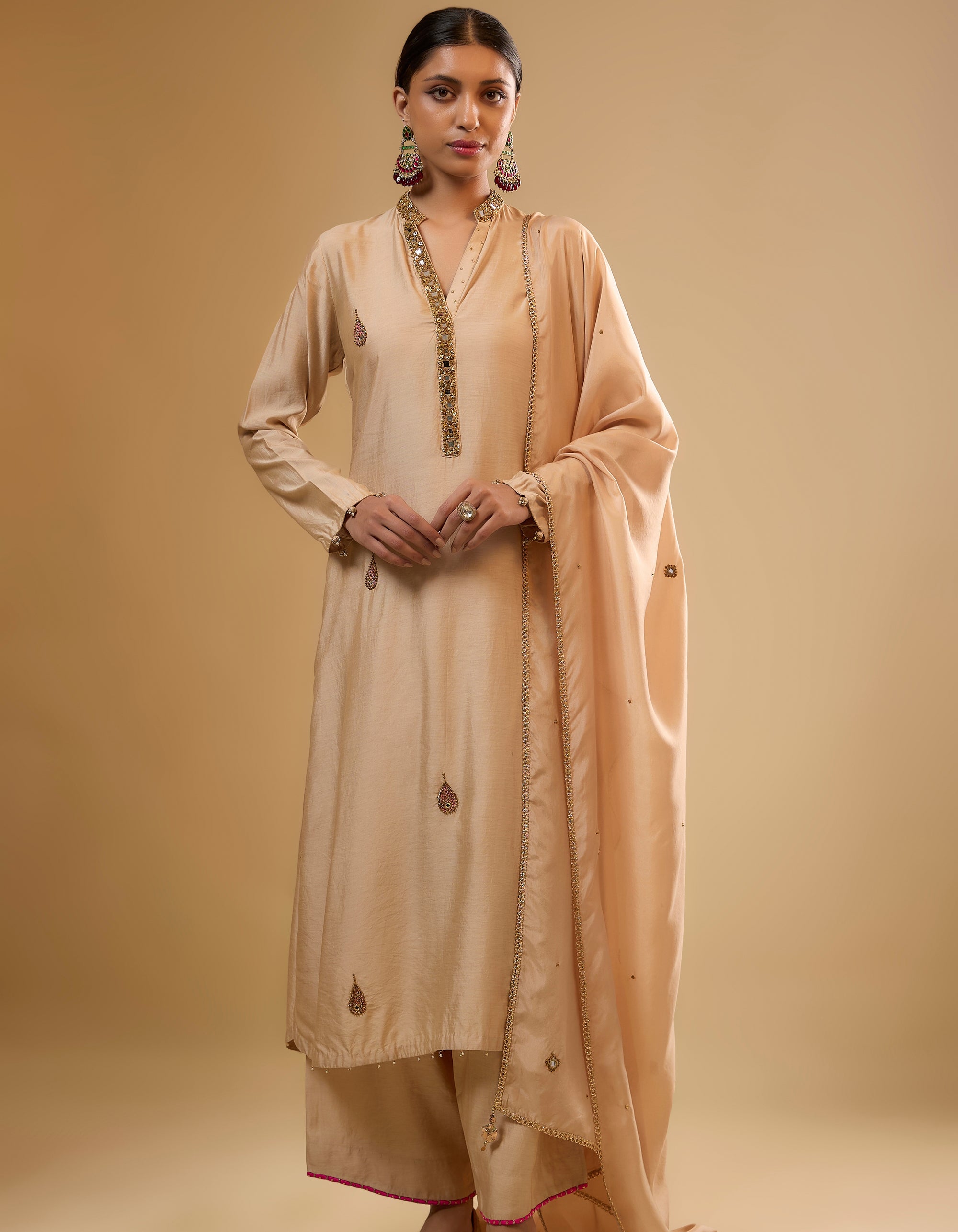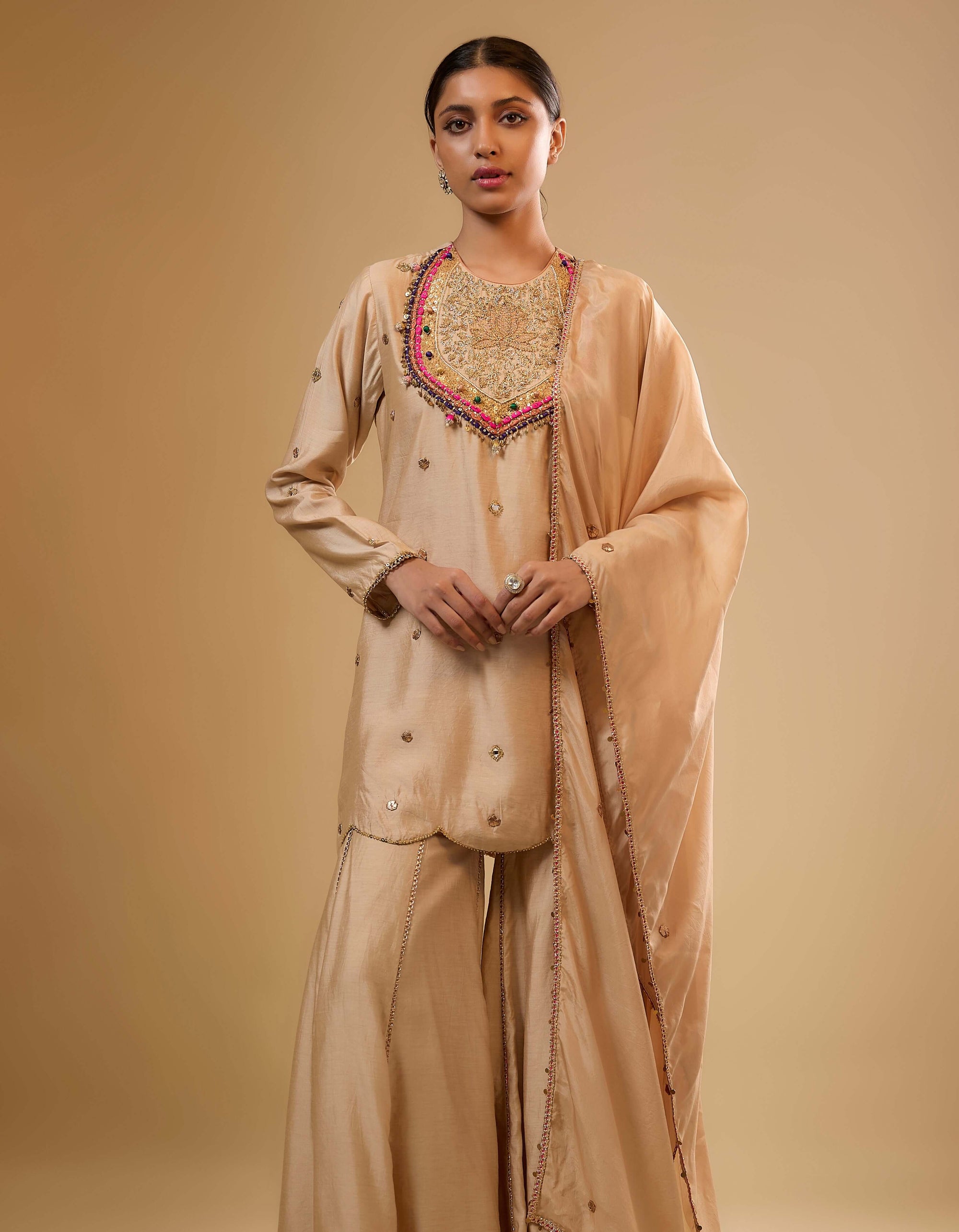 Beige Stripe Yoke Full Chunat Bageecha Kurta Set