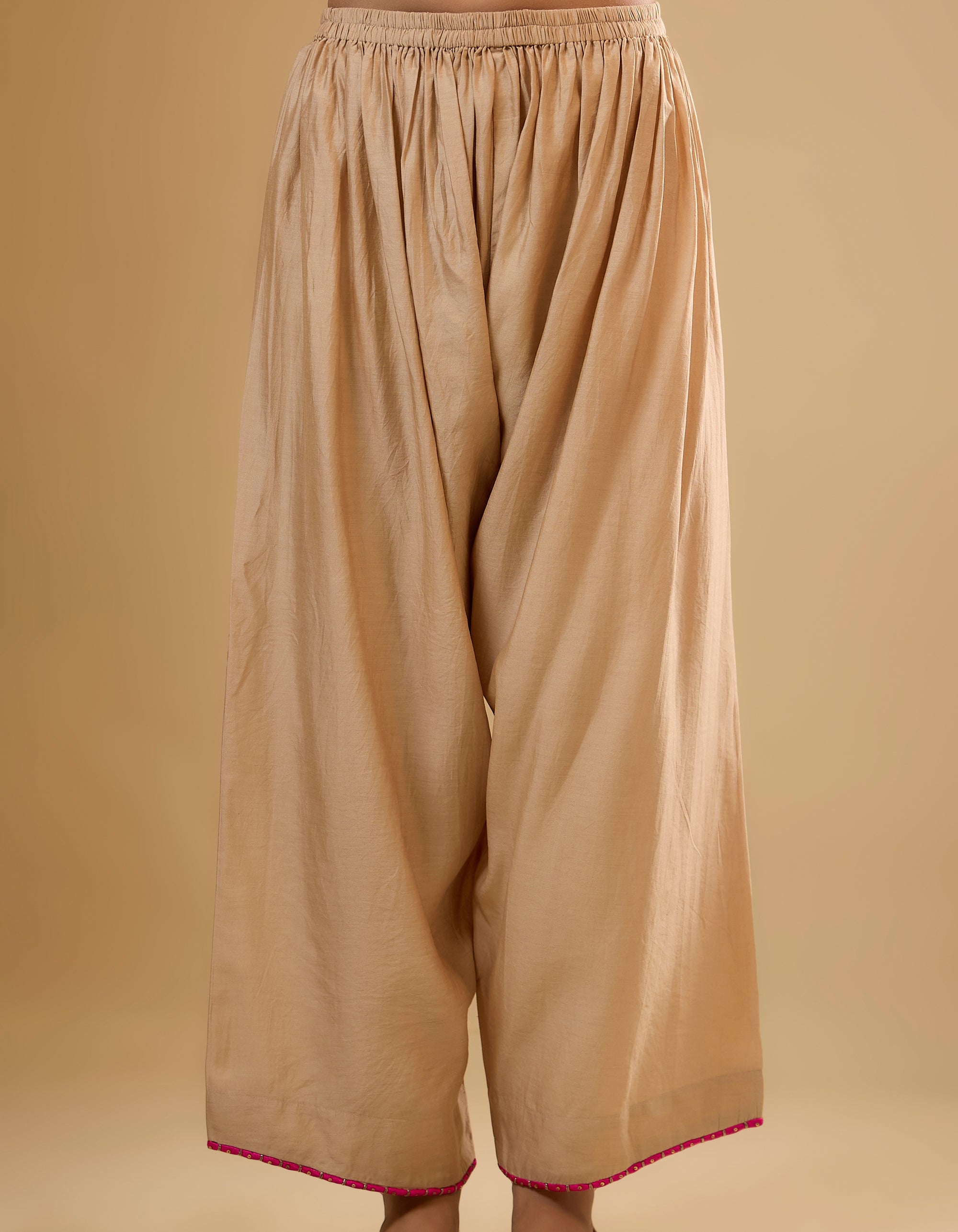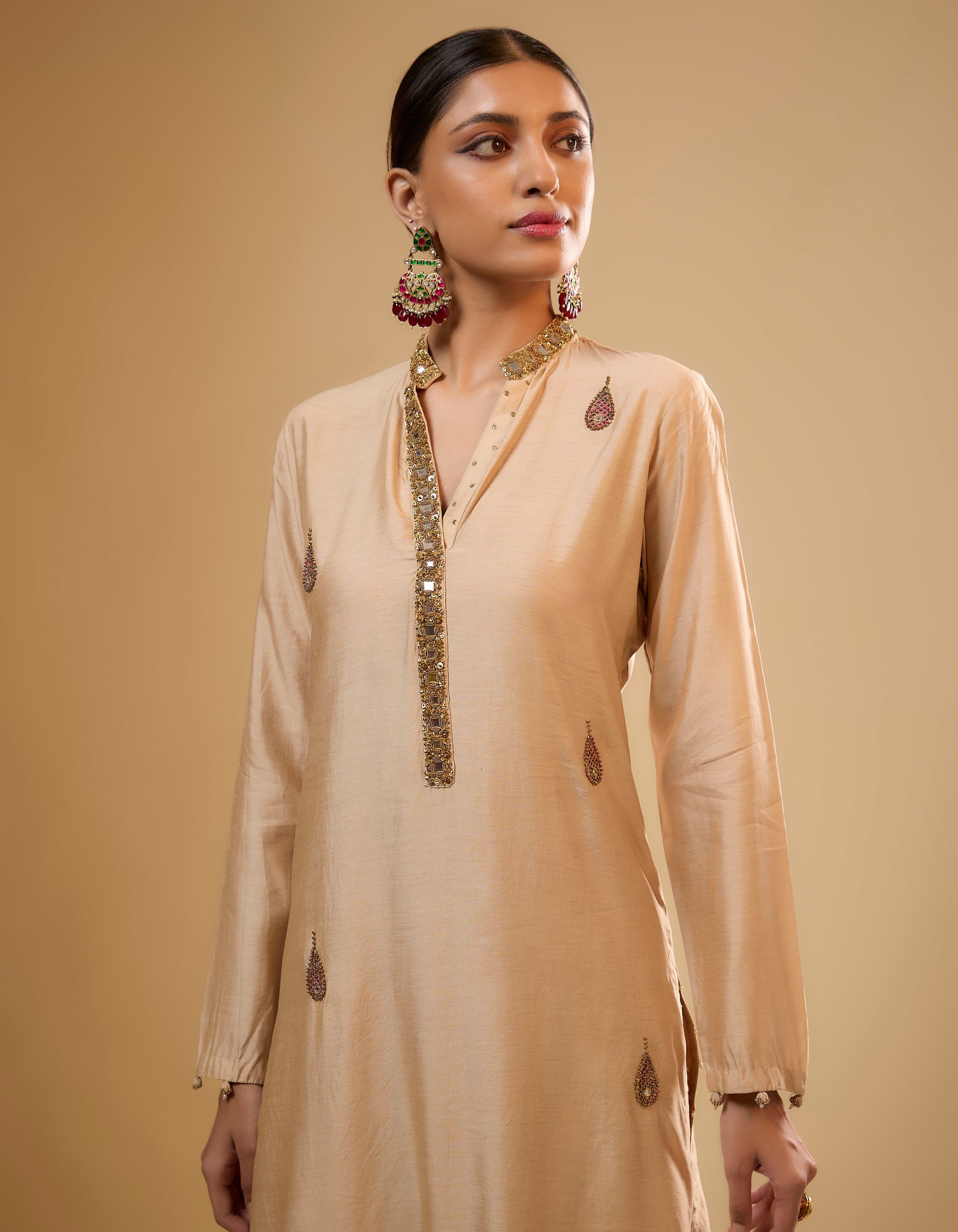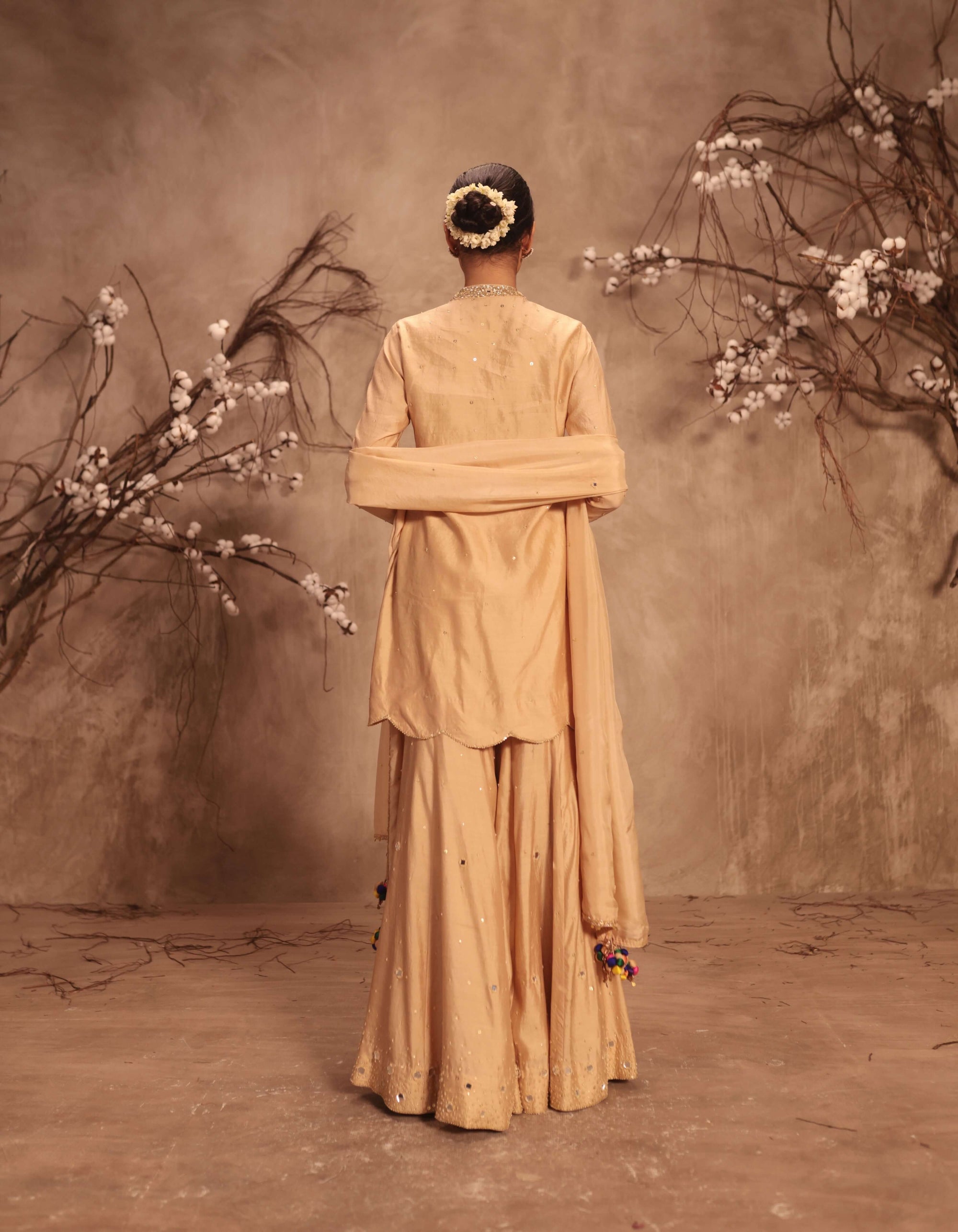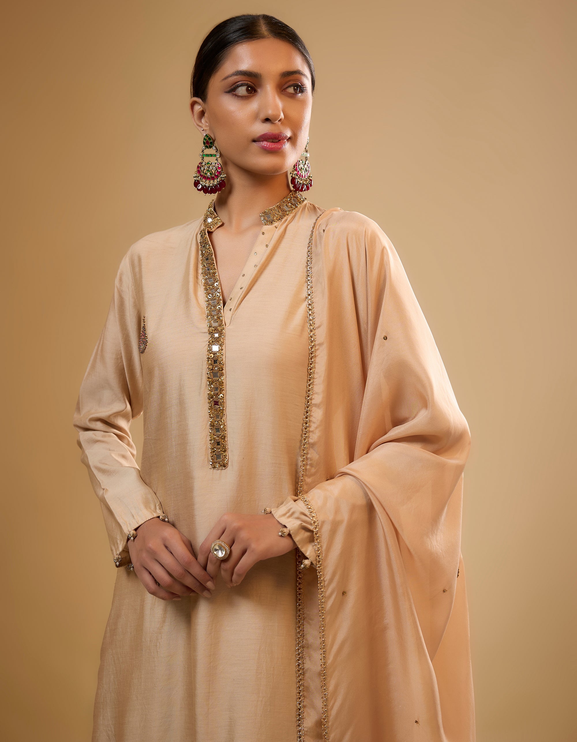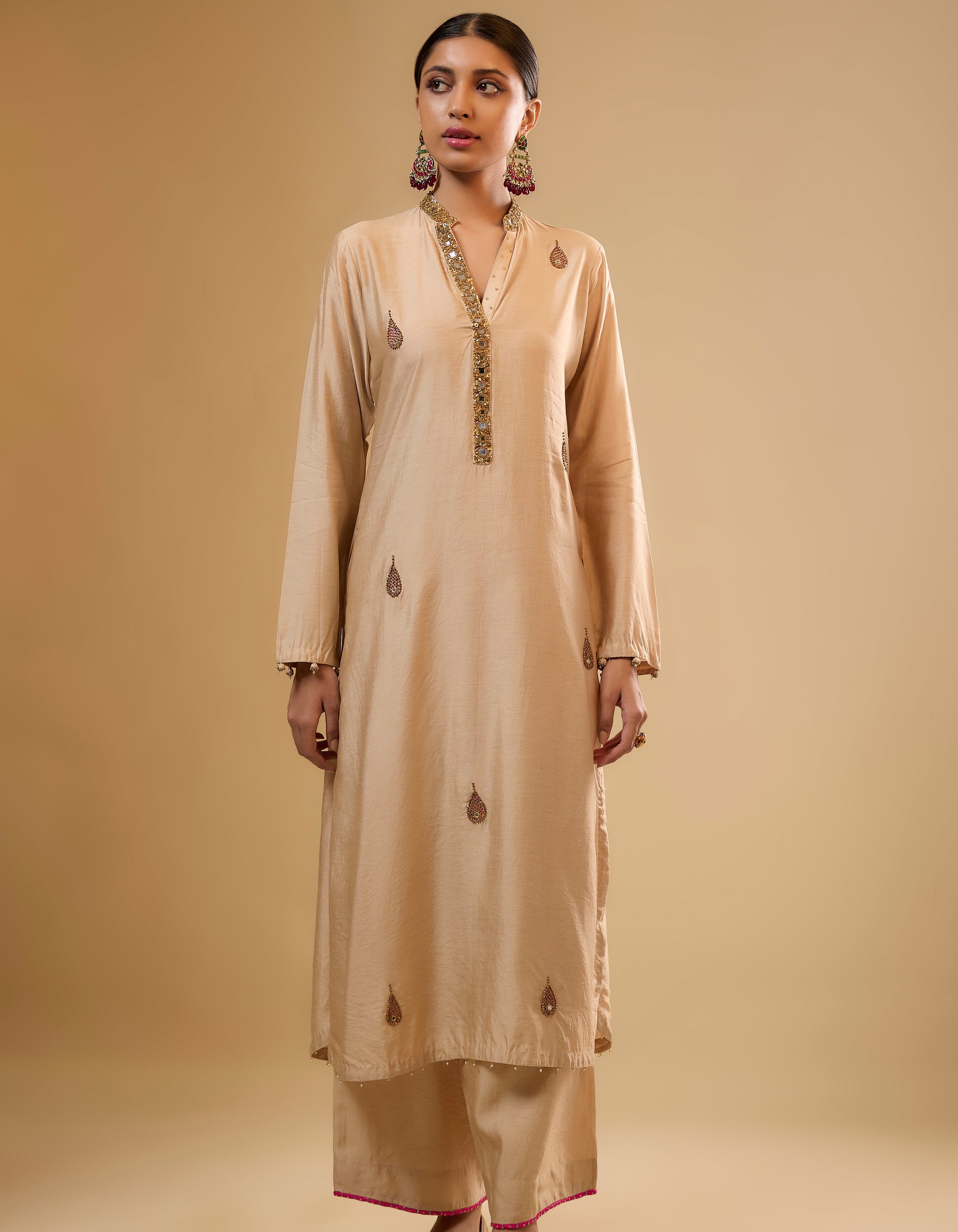 Beige Stripe Yoke Full Chunat Bageecha Kurta Set