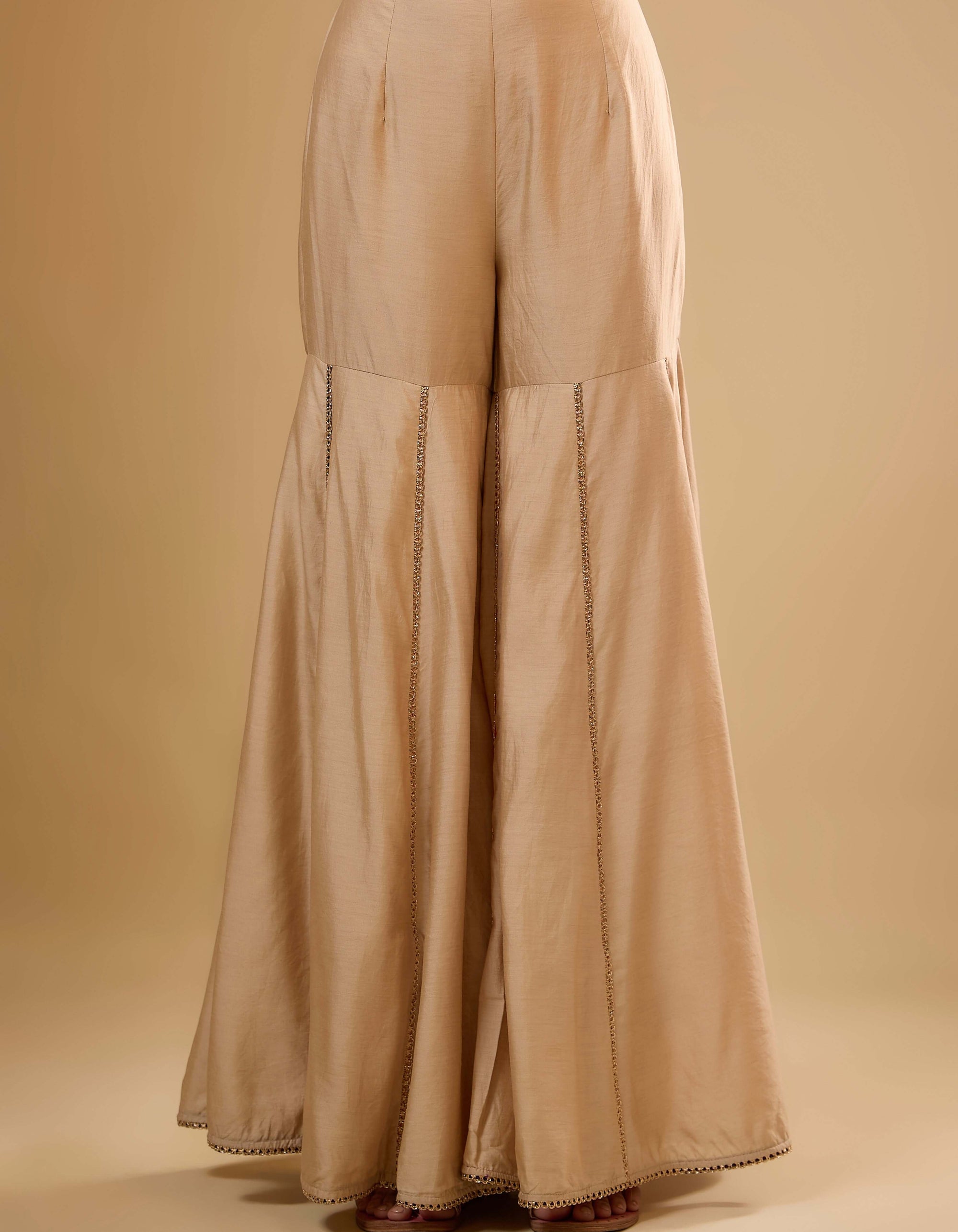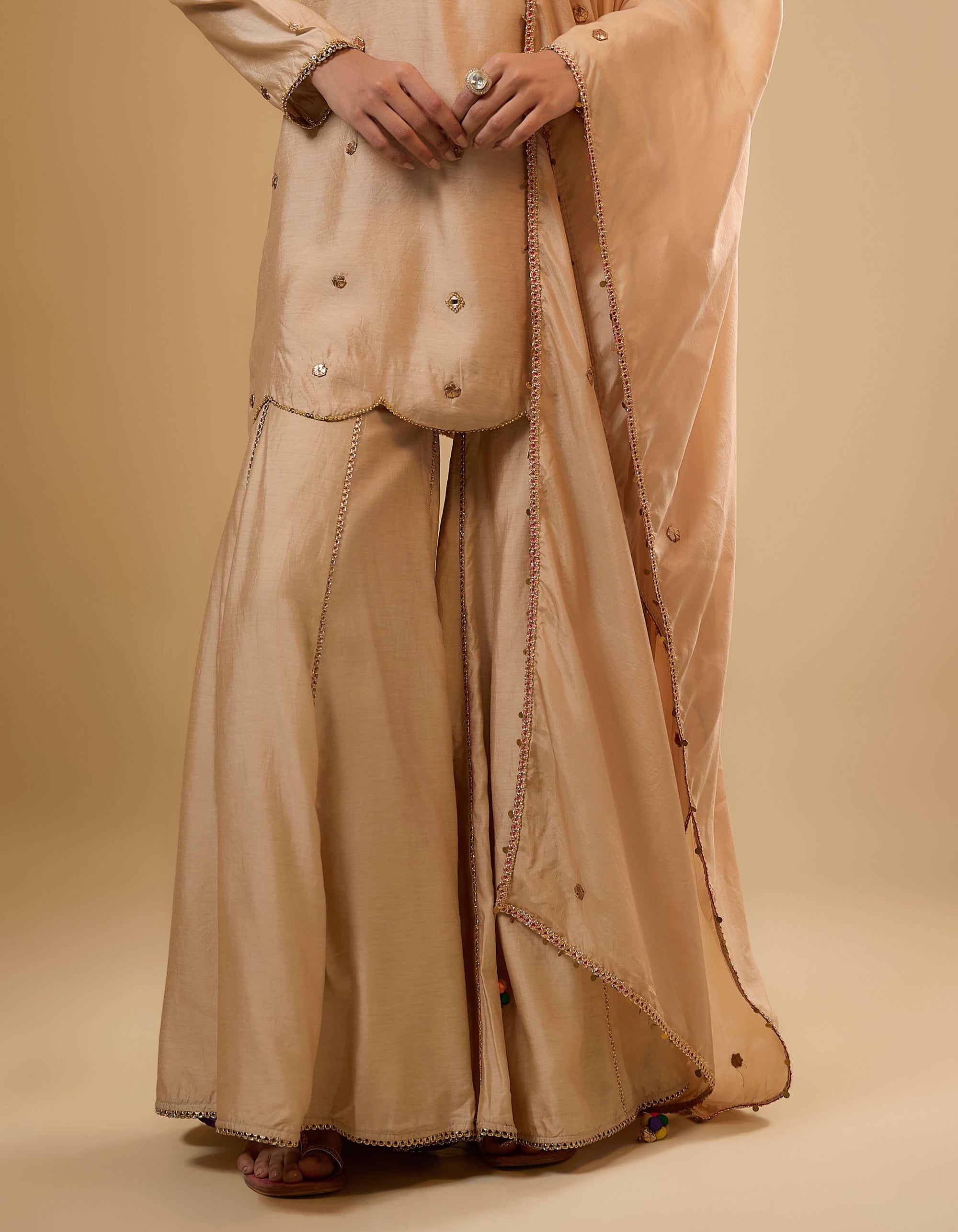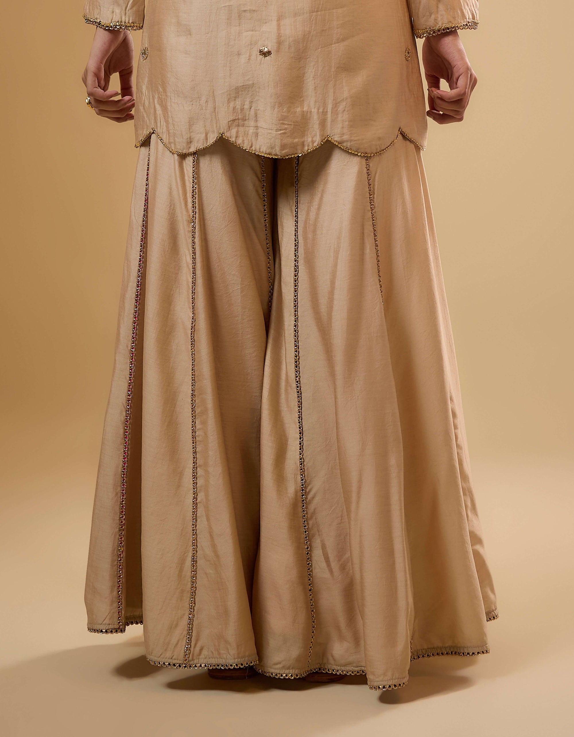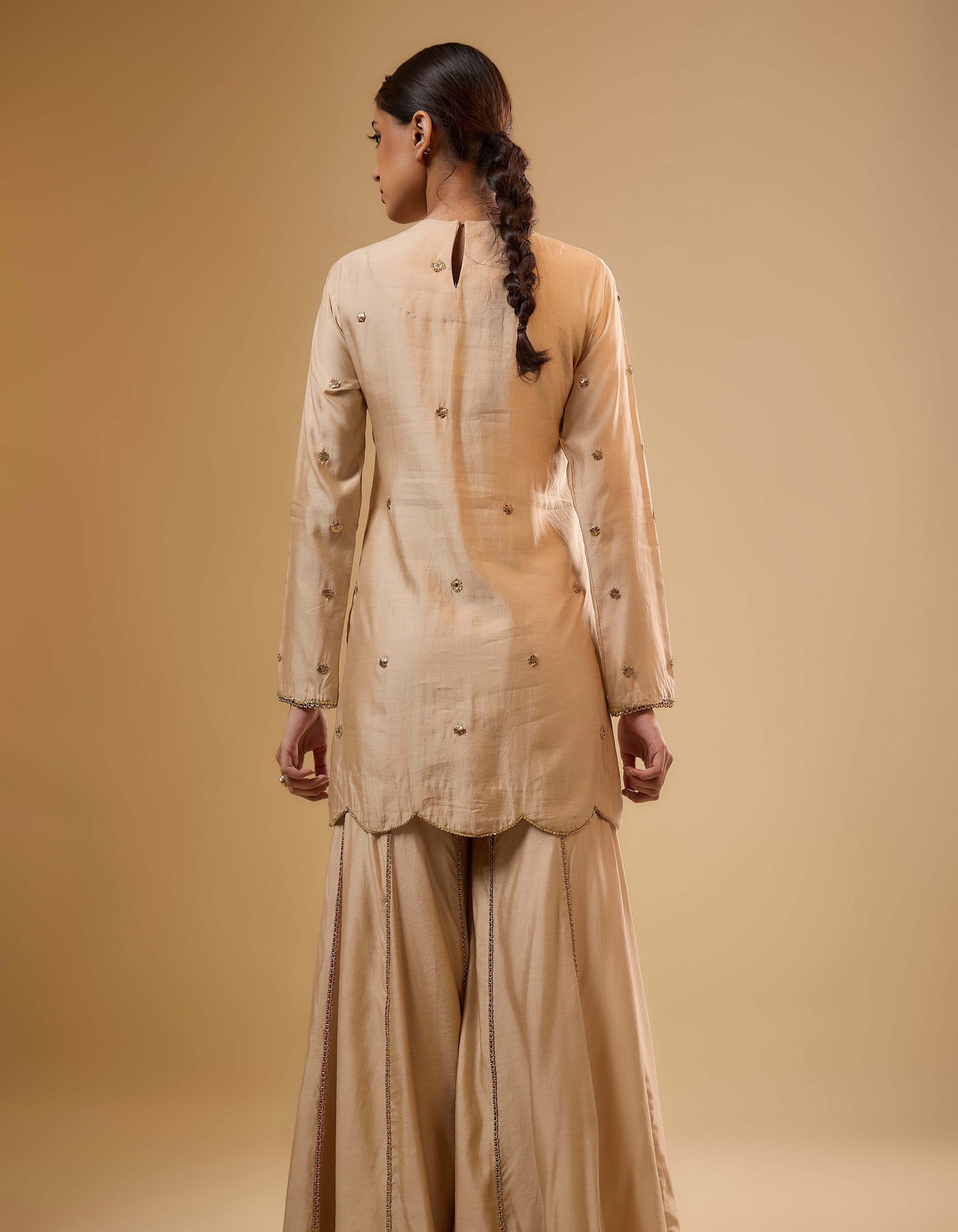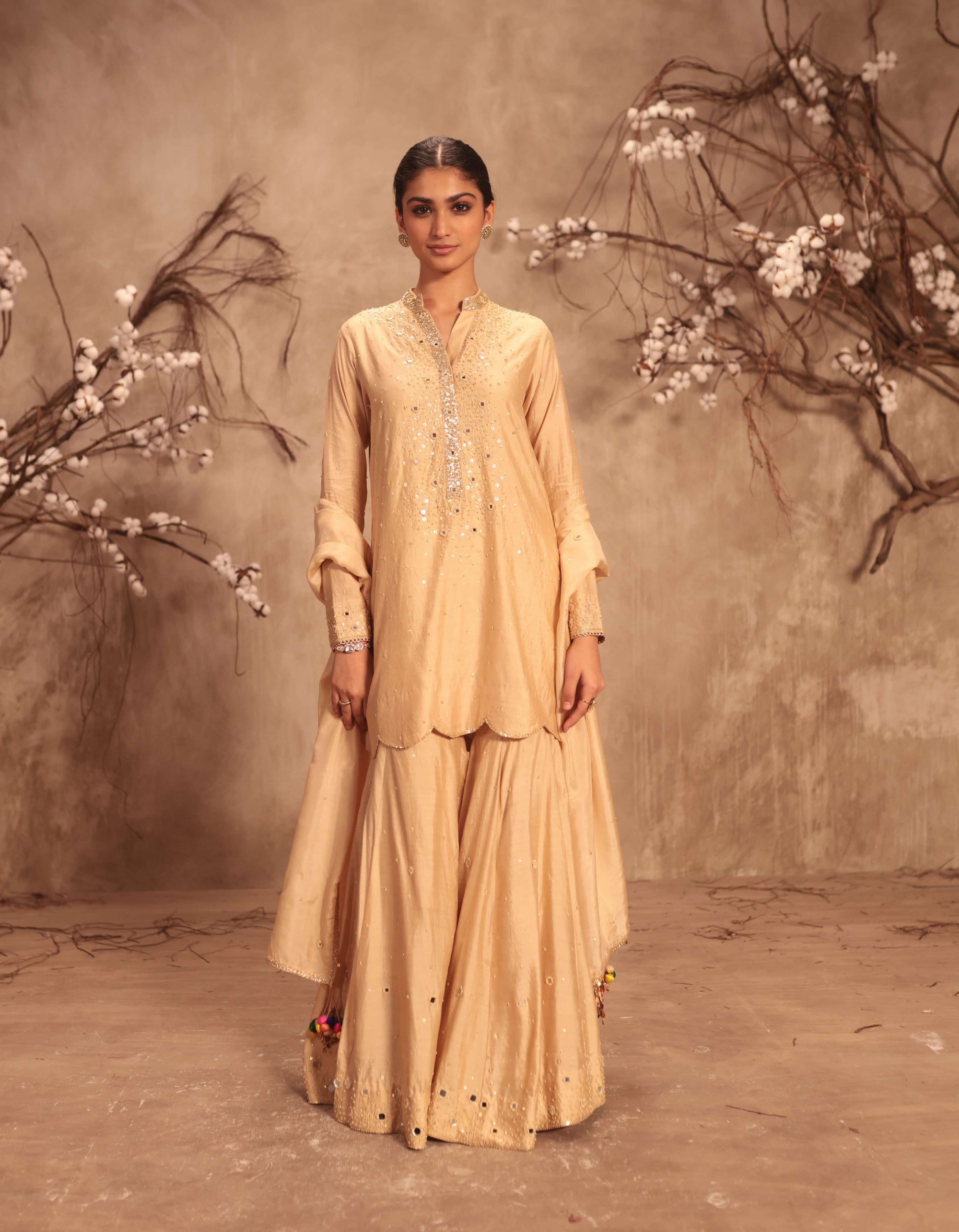 Beige Stripe Yoke Full Chunat Bageecha Kurta Set