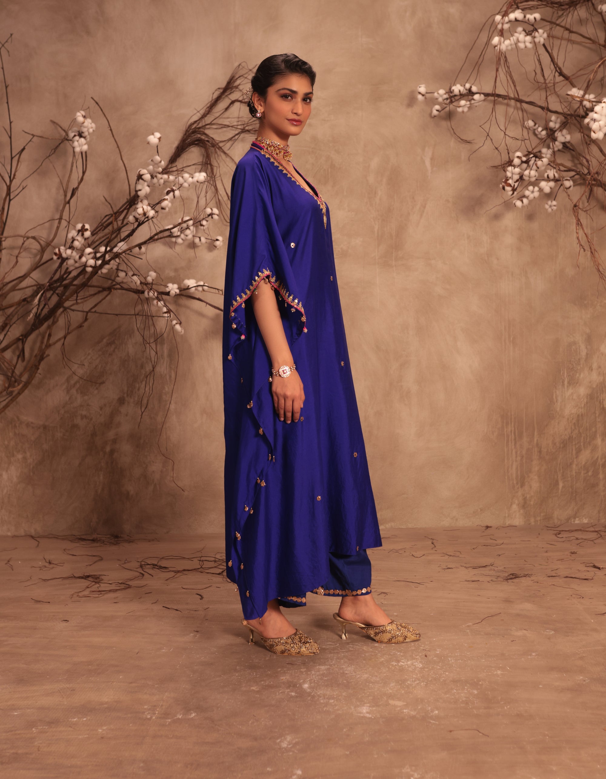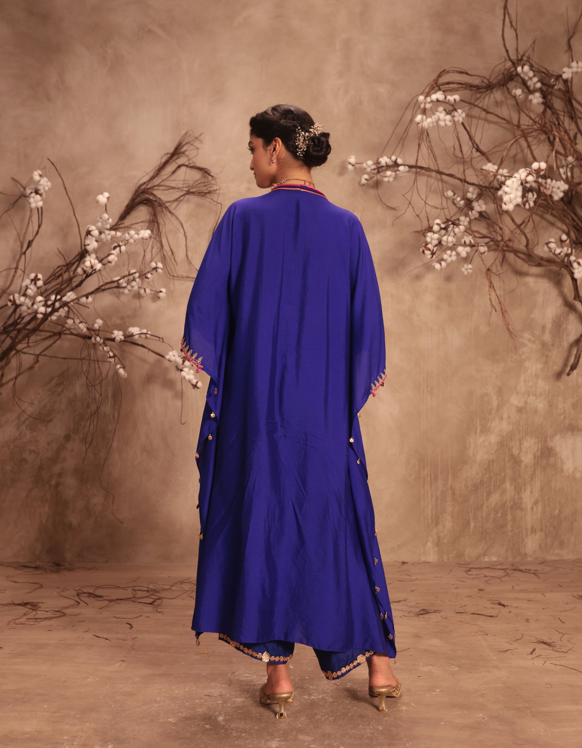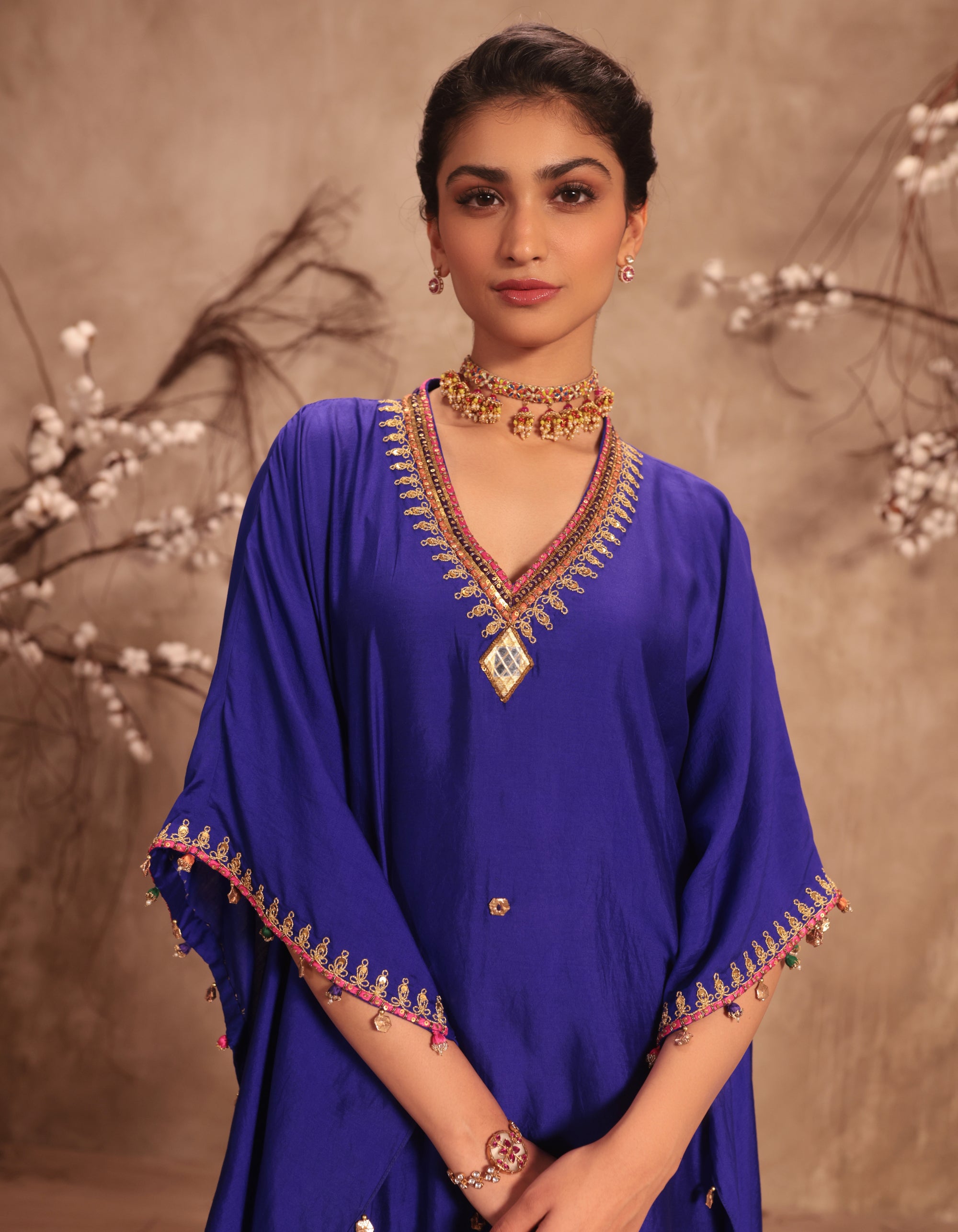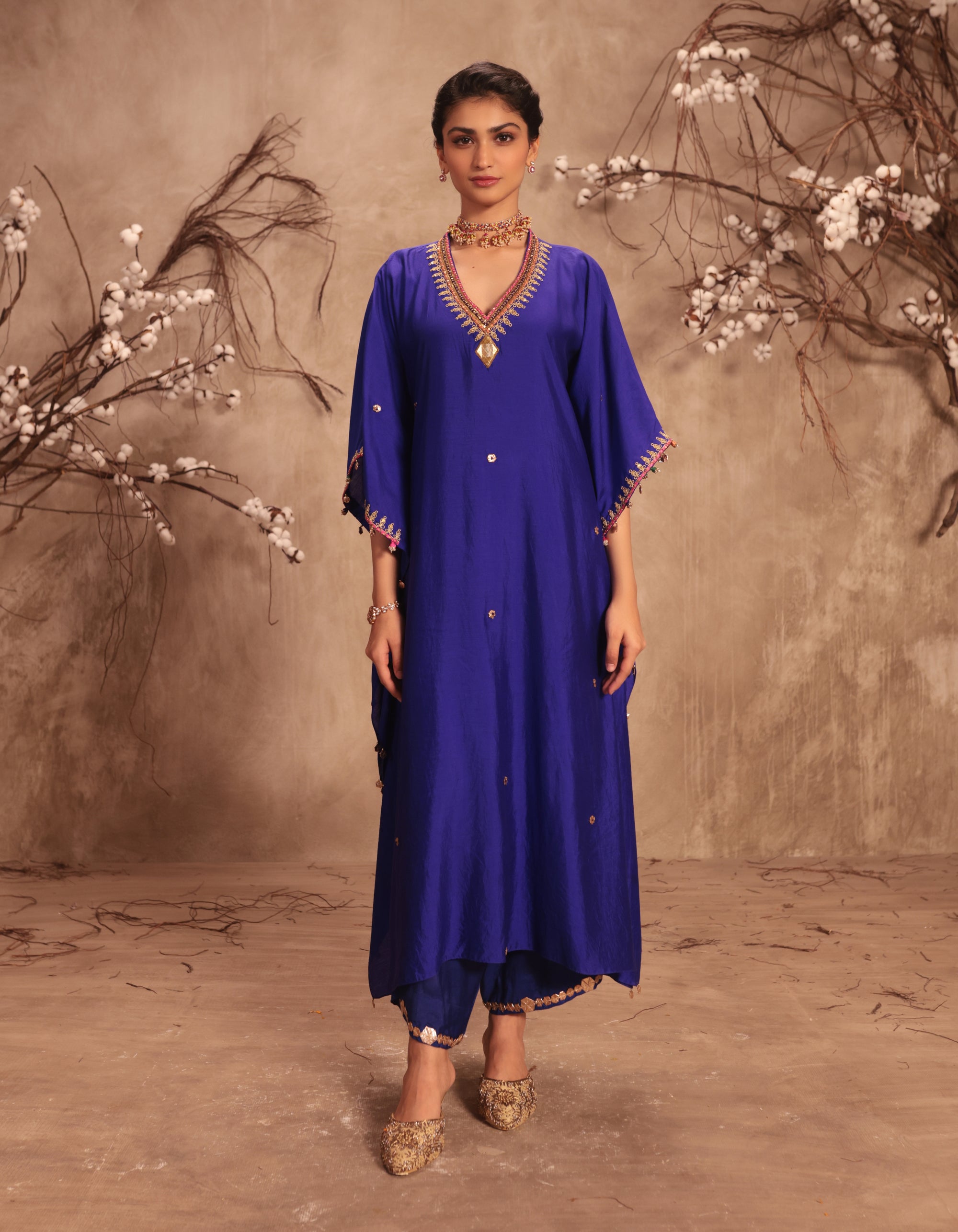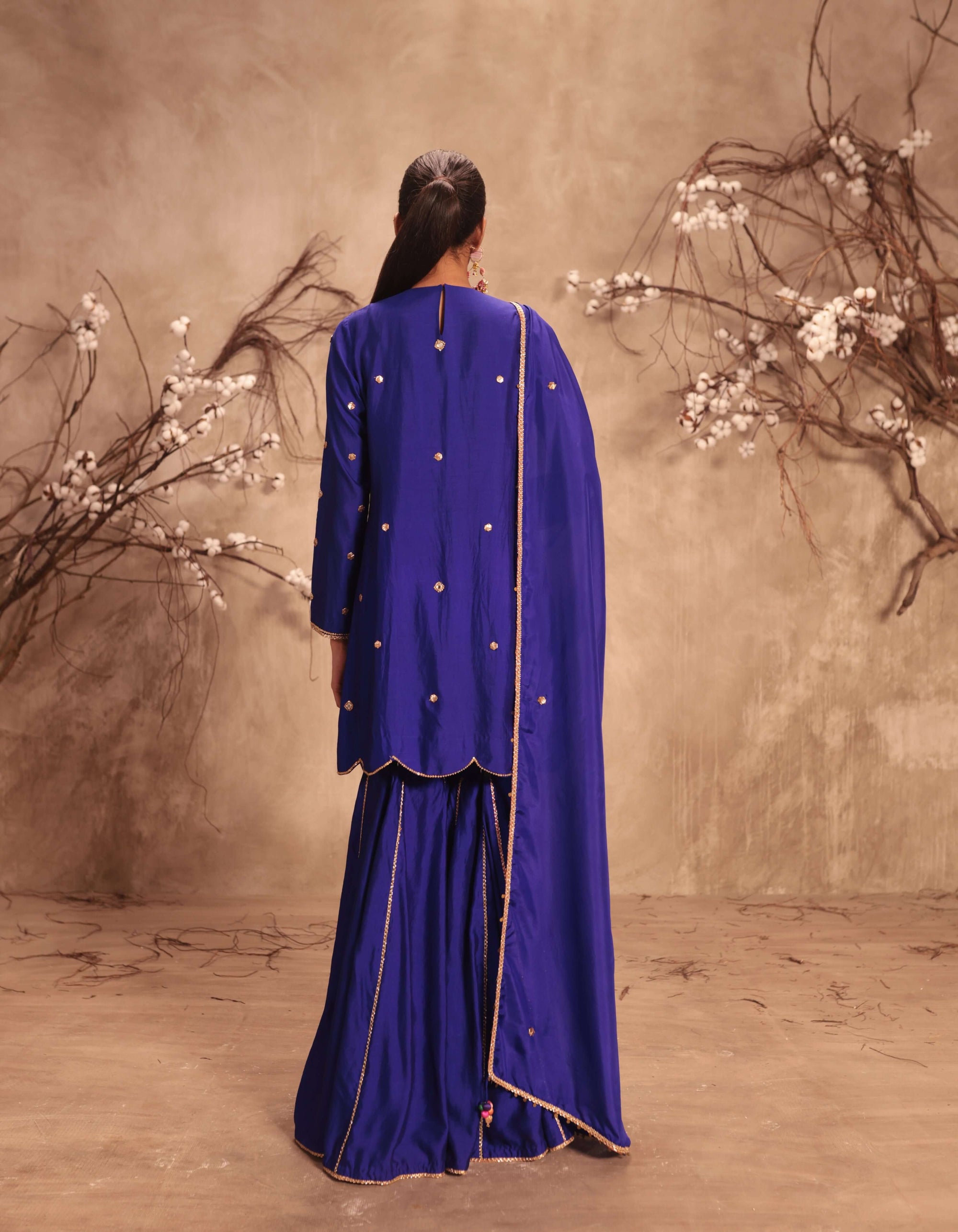 Meghna Nayyar in English Blue Threadwork Long Yoke Noor Kurta Set