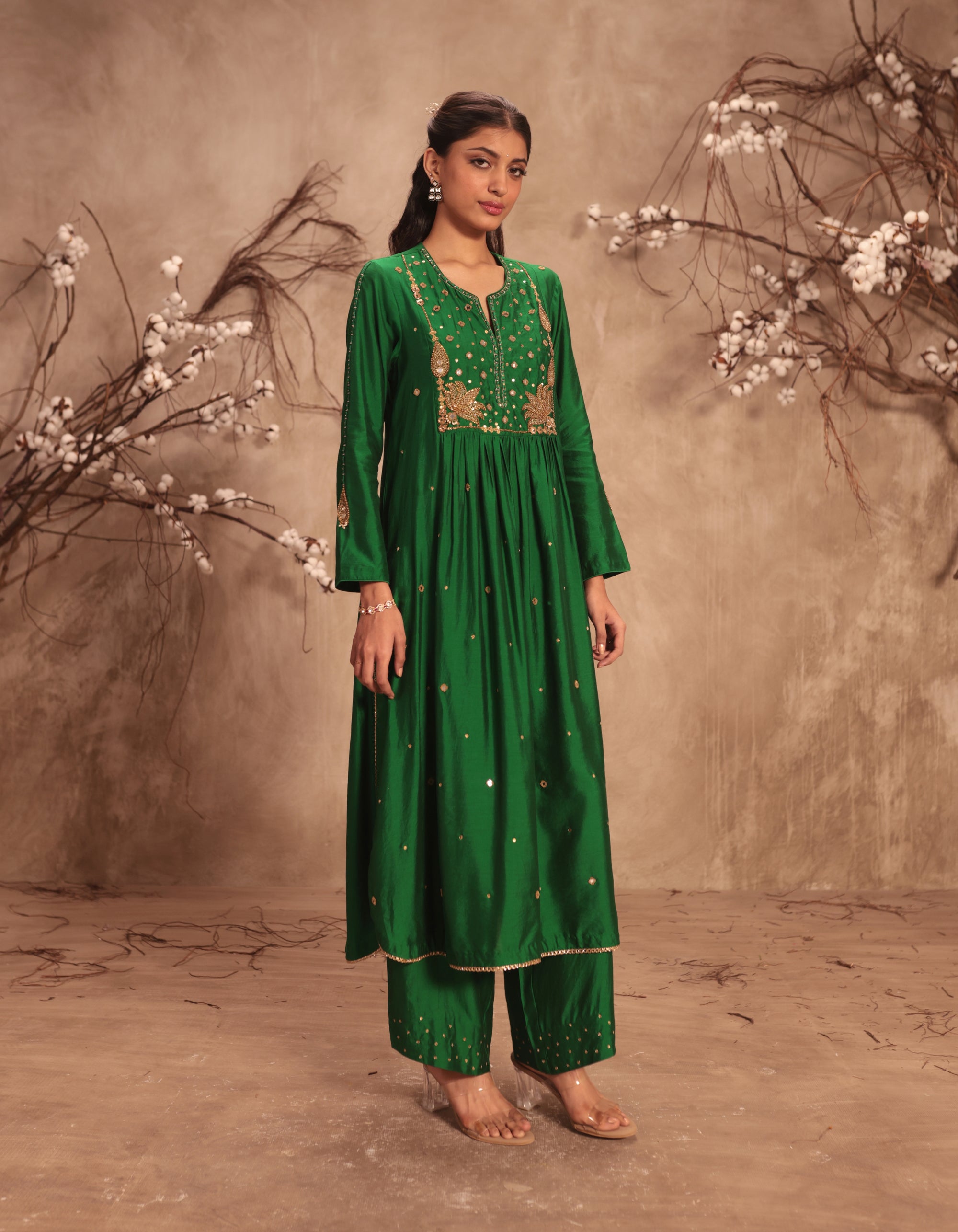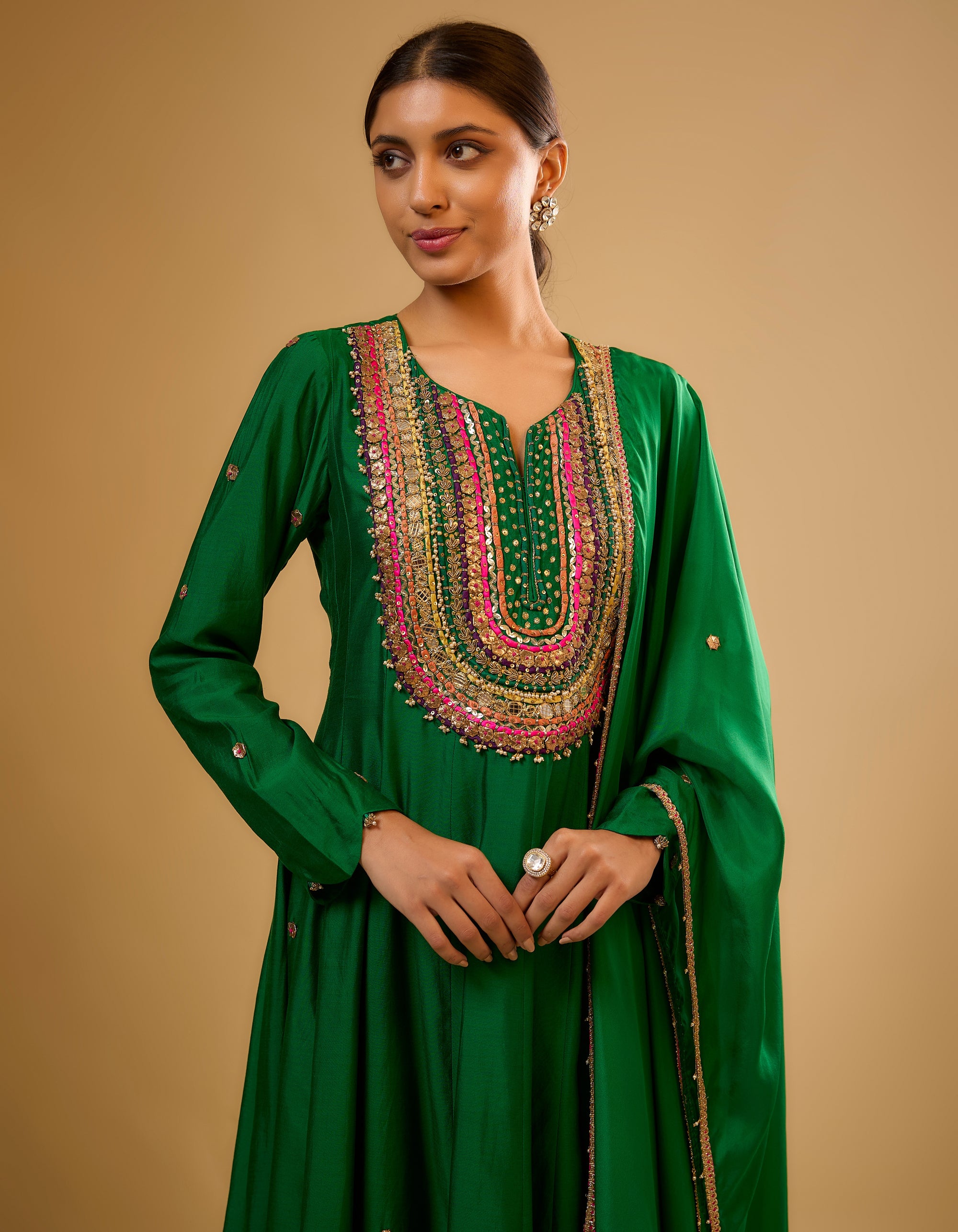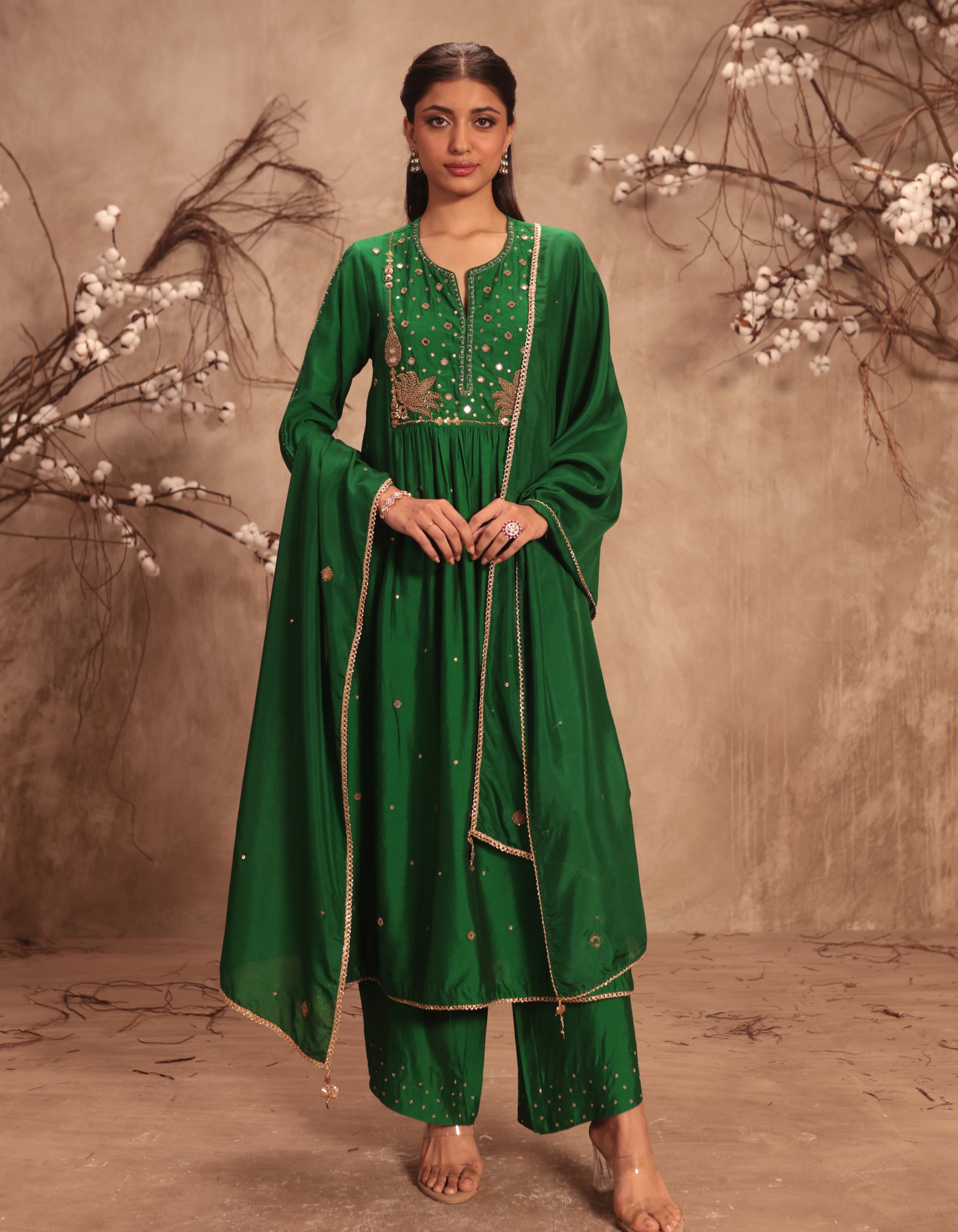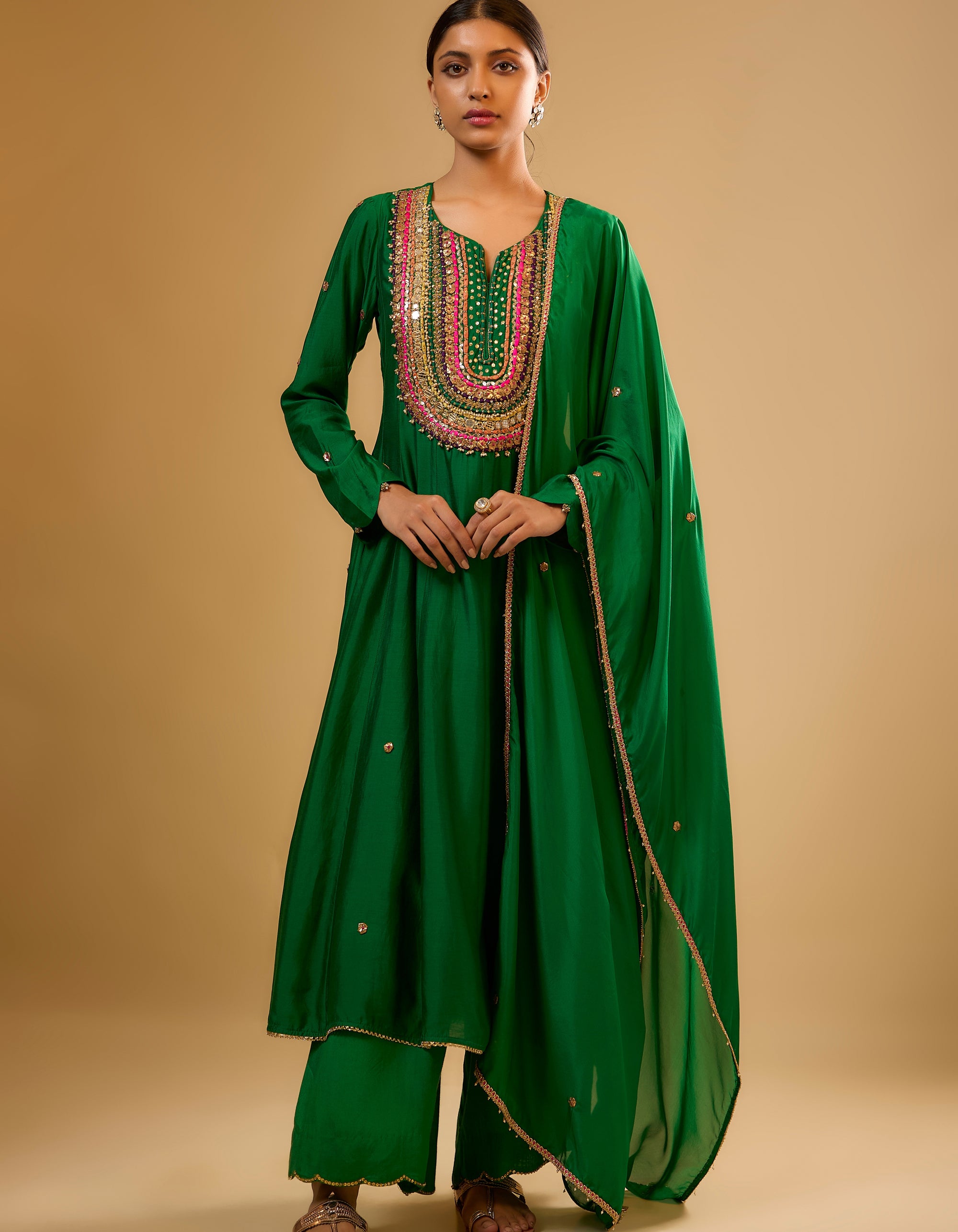 Green Stripe Yoke Full Chunat Bageecha Kurta Set