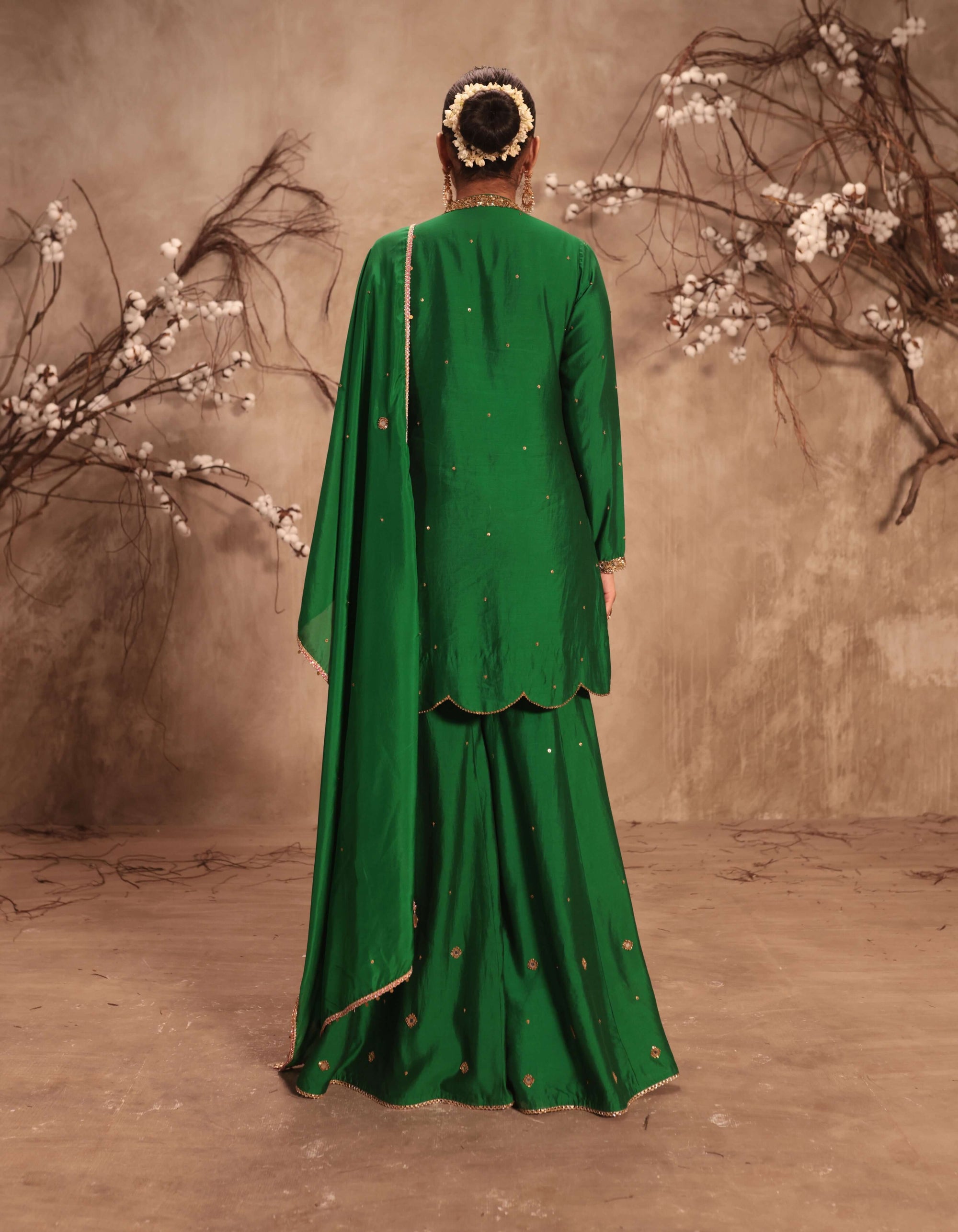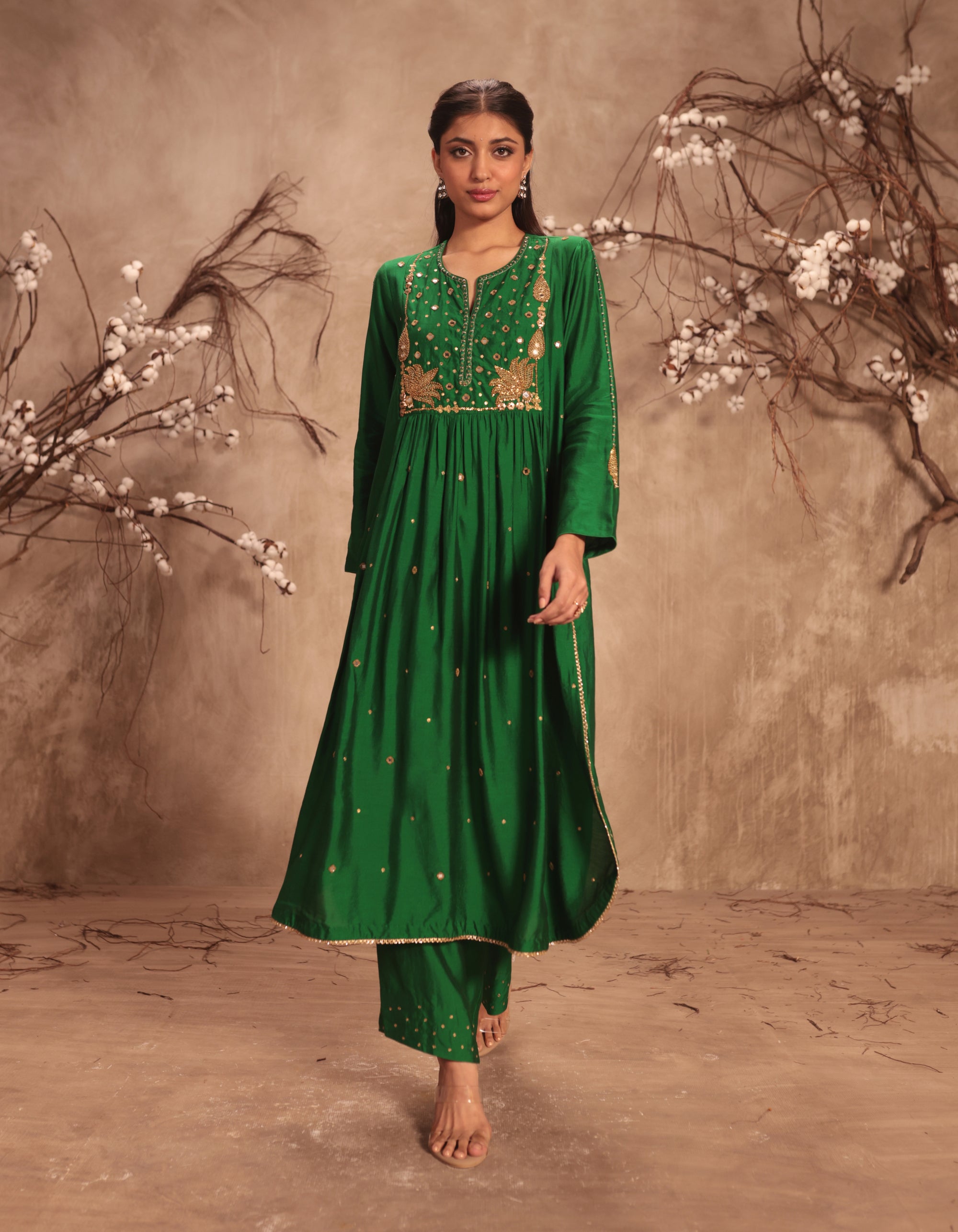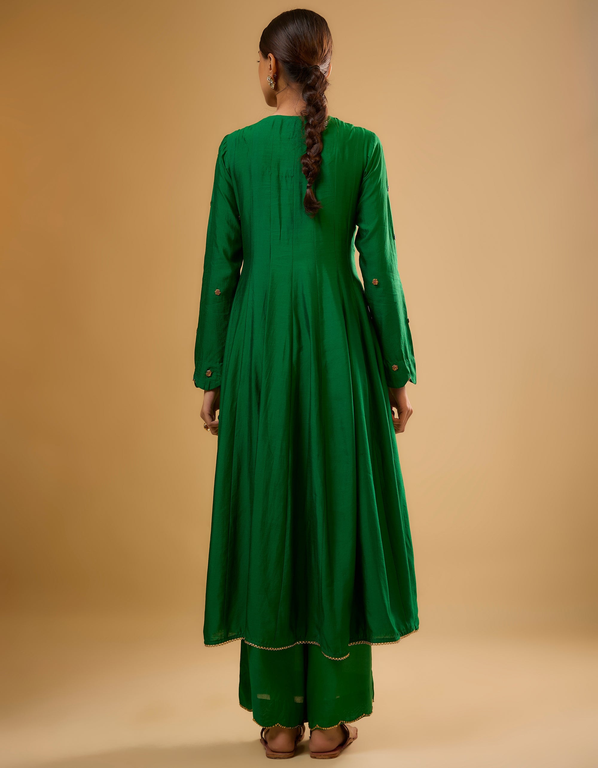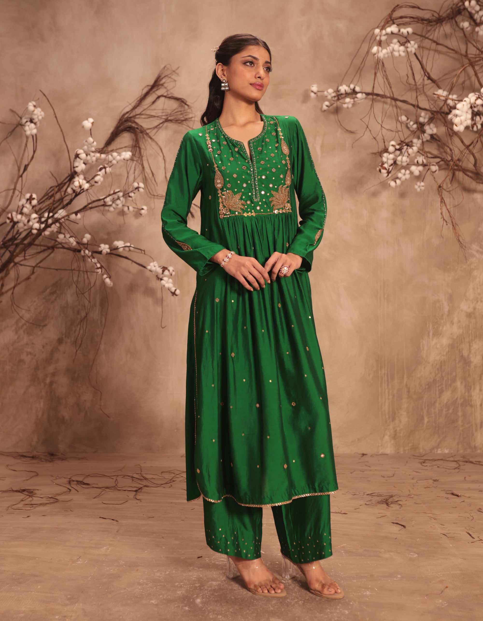 Green Stripe Yoke Full Chunat Bageecha Kurta Set