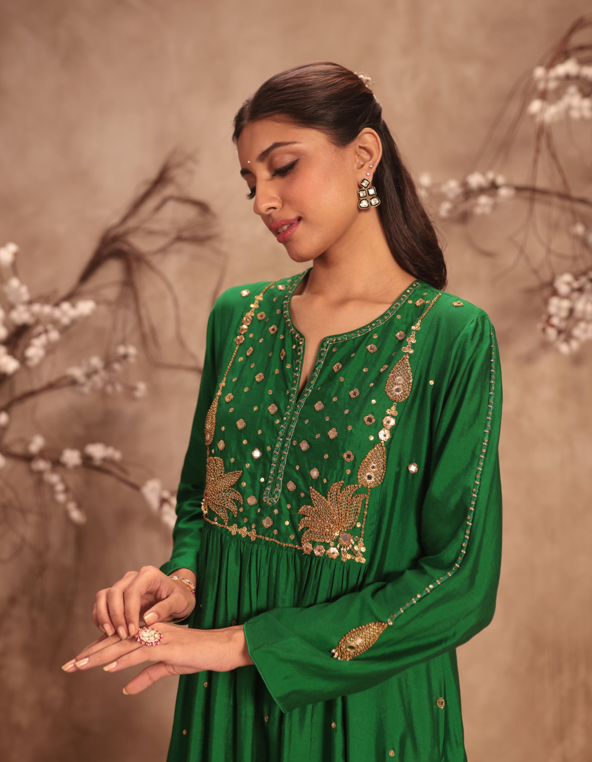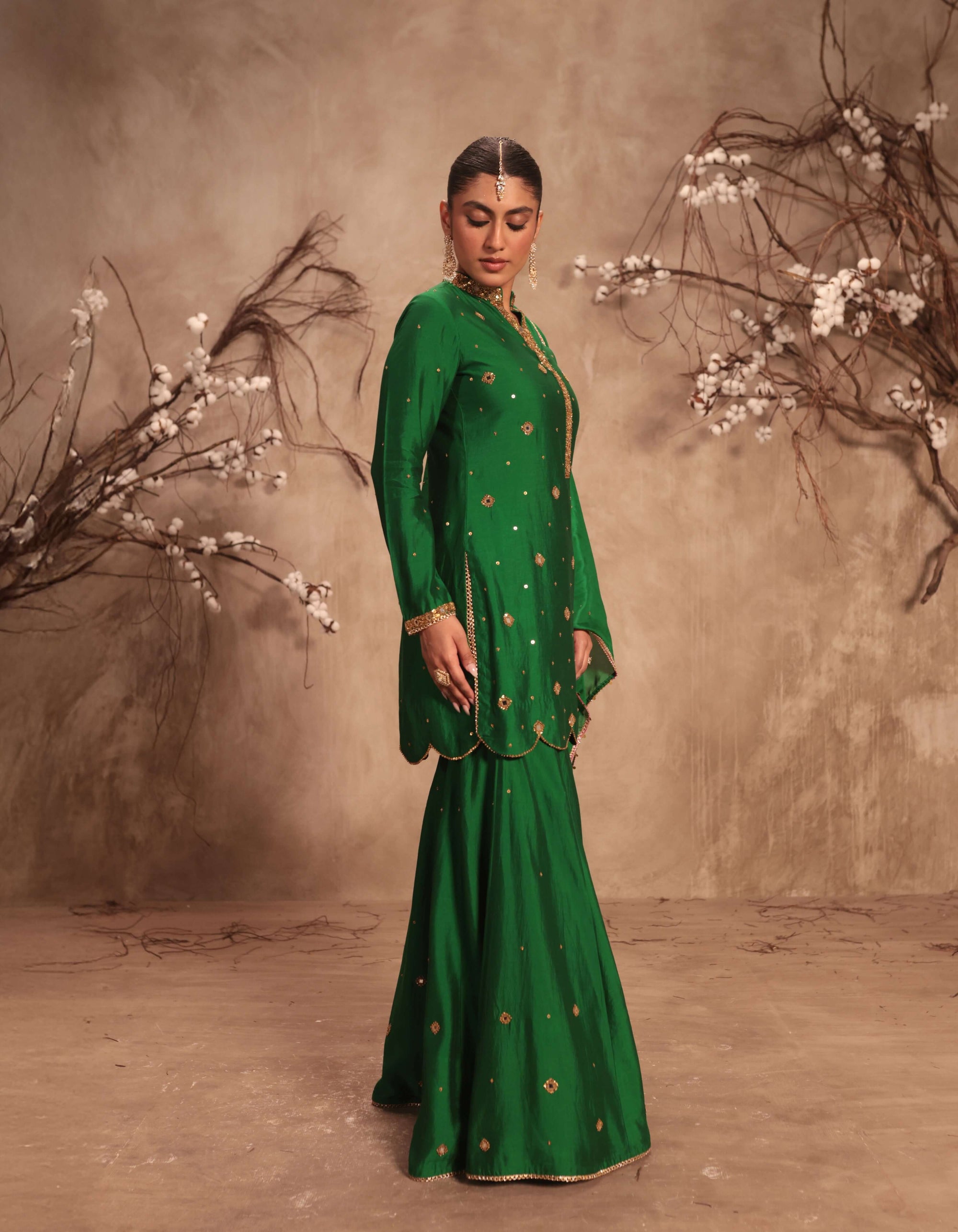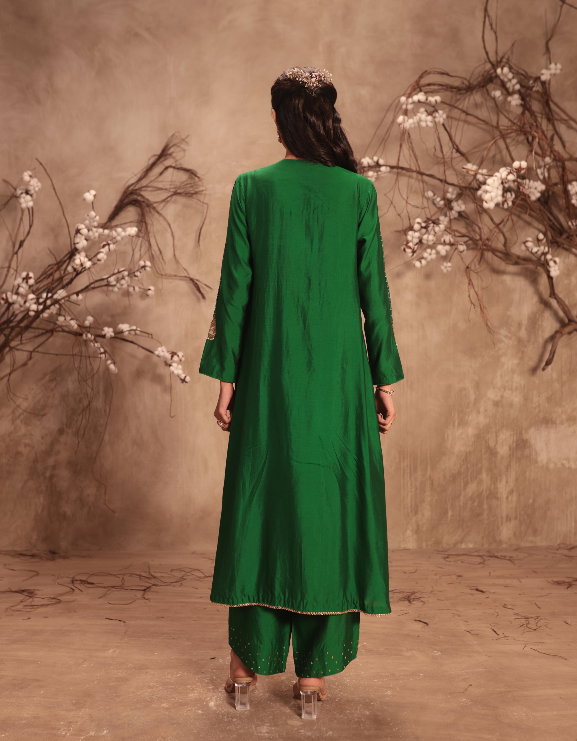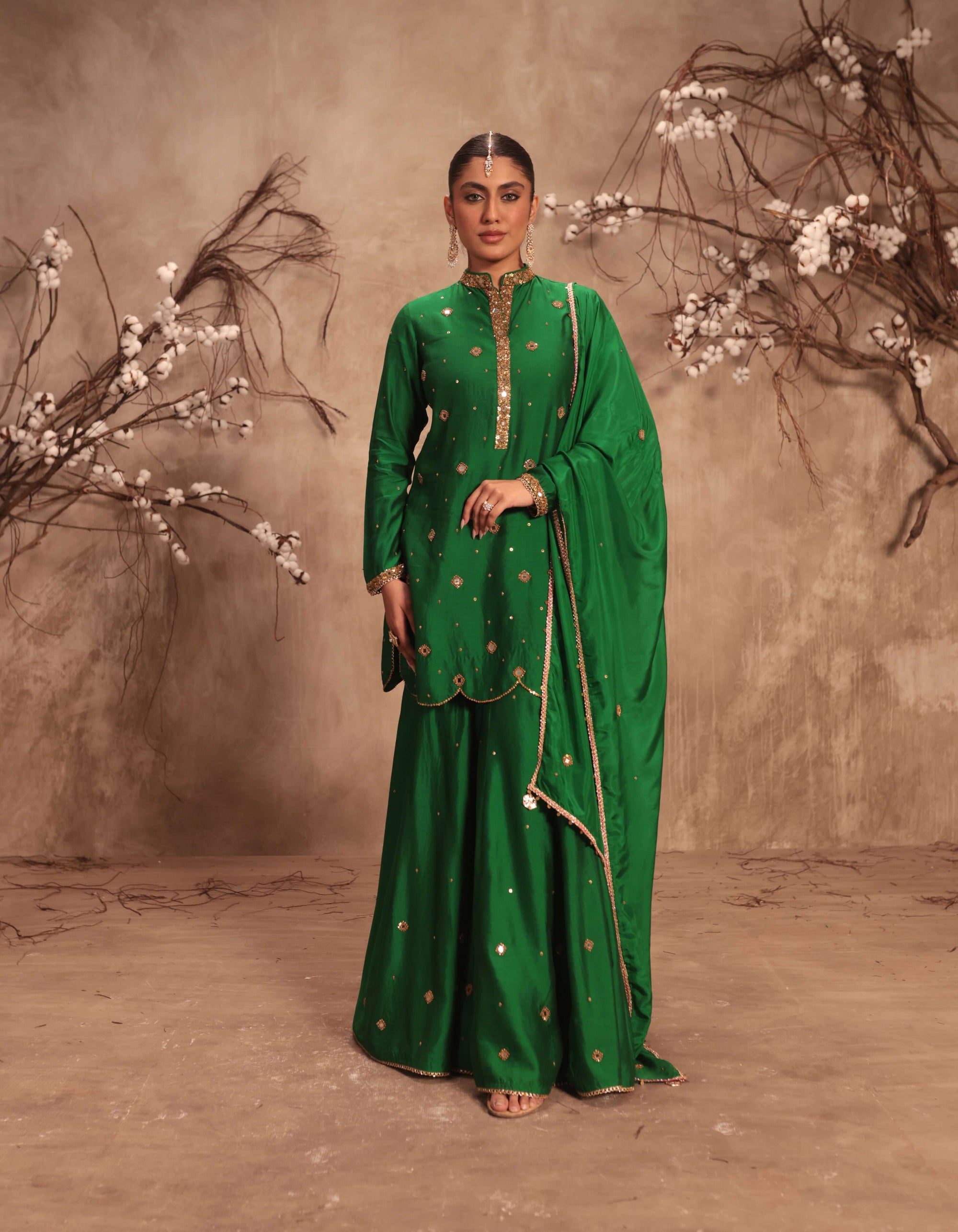Green Stripe Yoke Full Chunat Bageecha Kurta Set