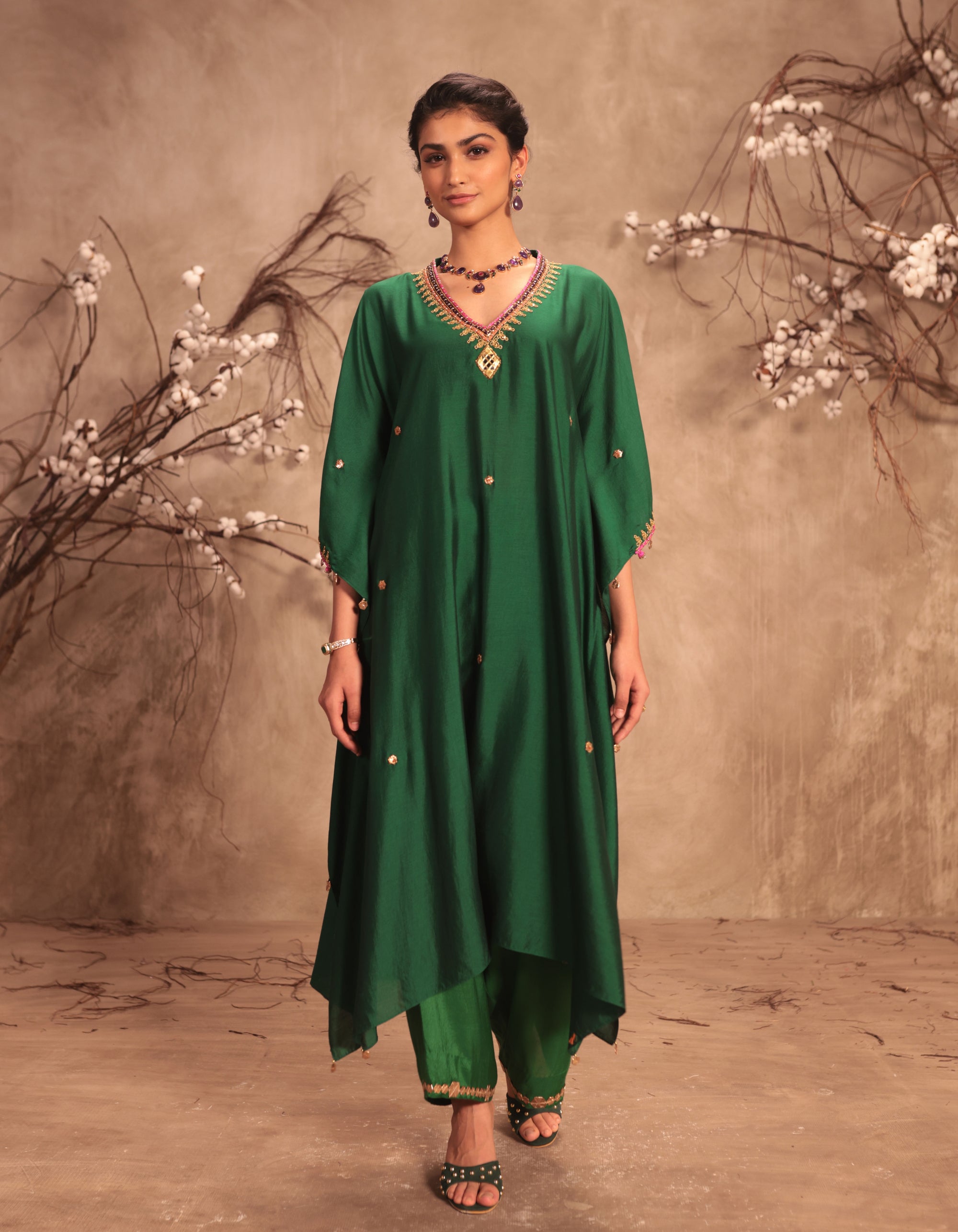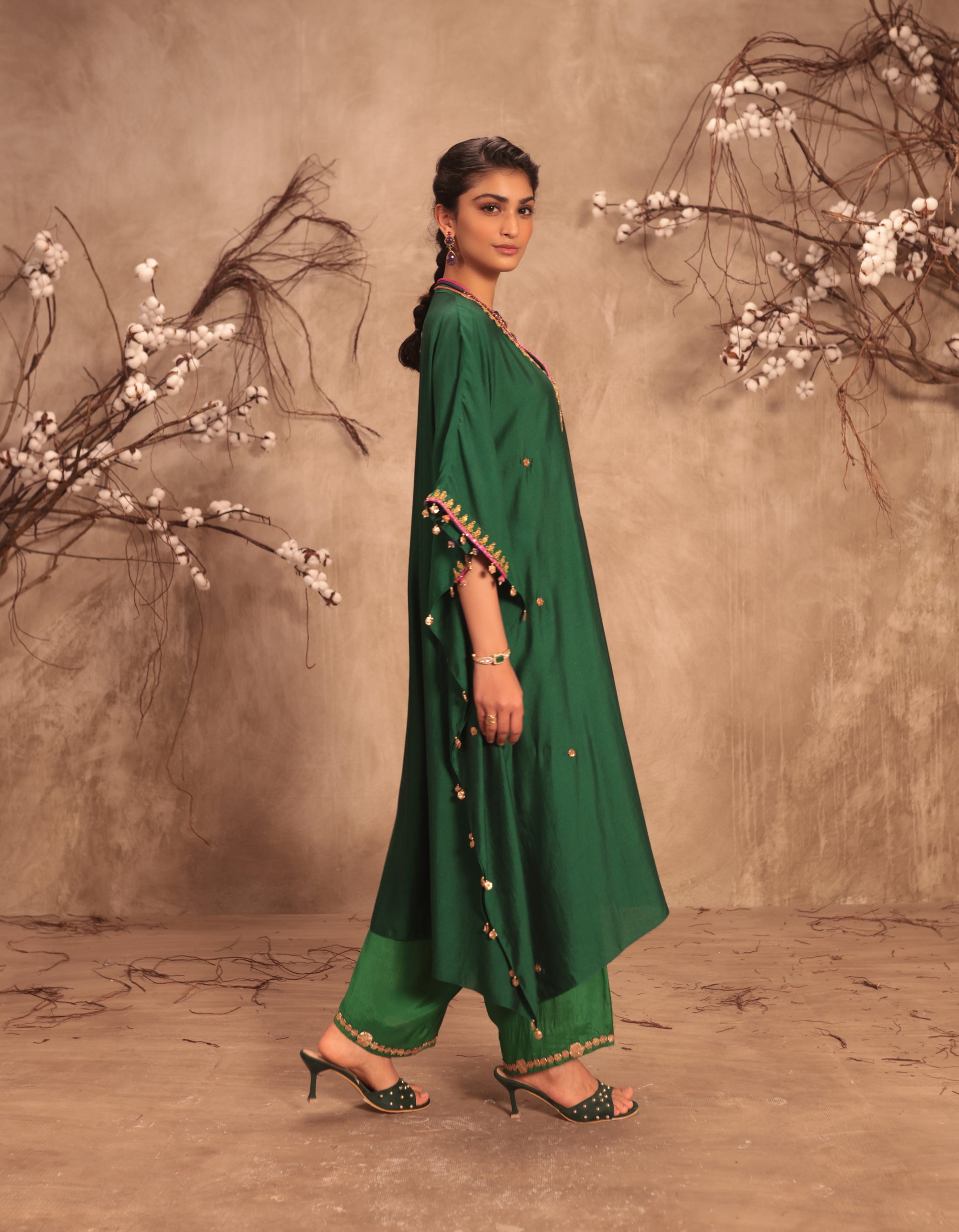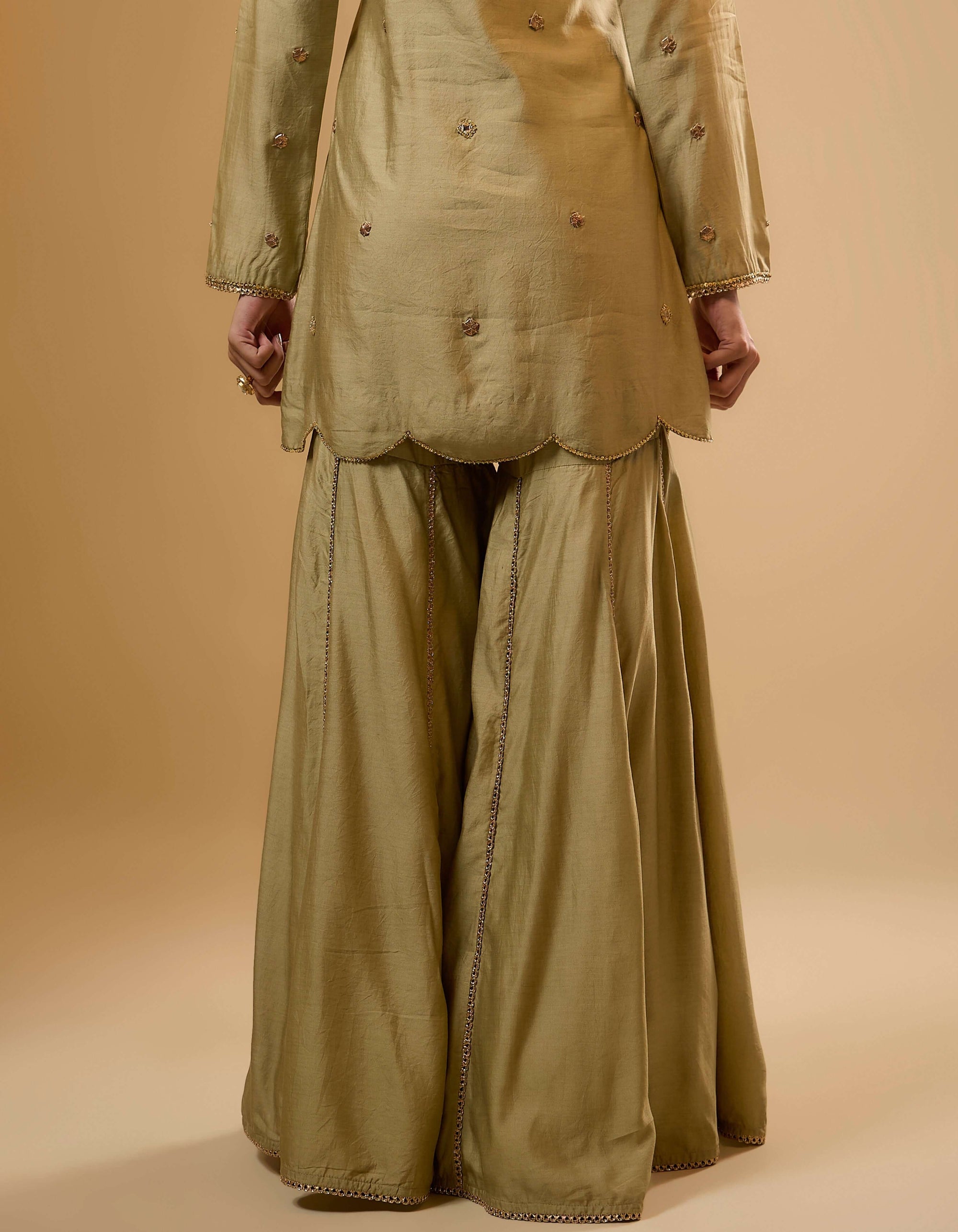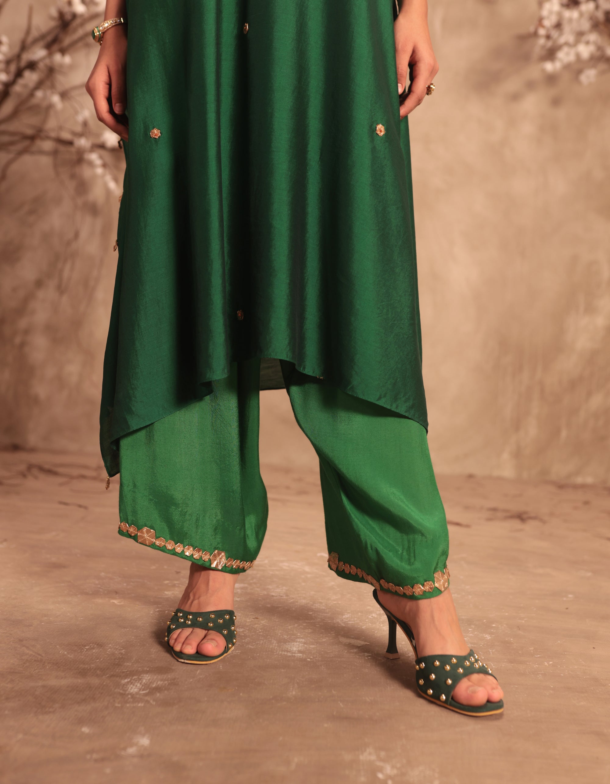 Green Stripe Yoke Full Chunat Bageecha Kurta Set