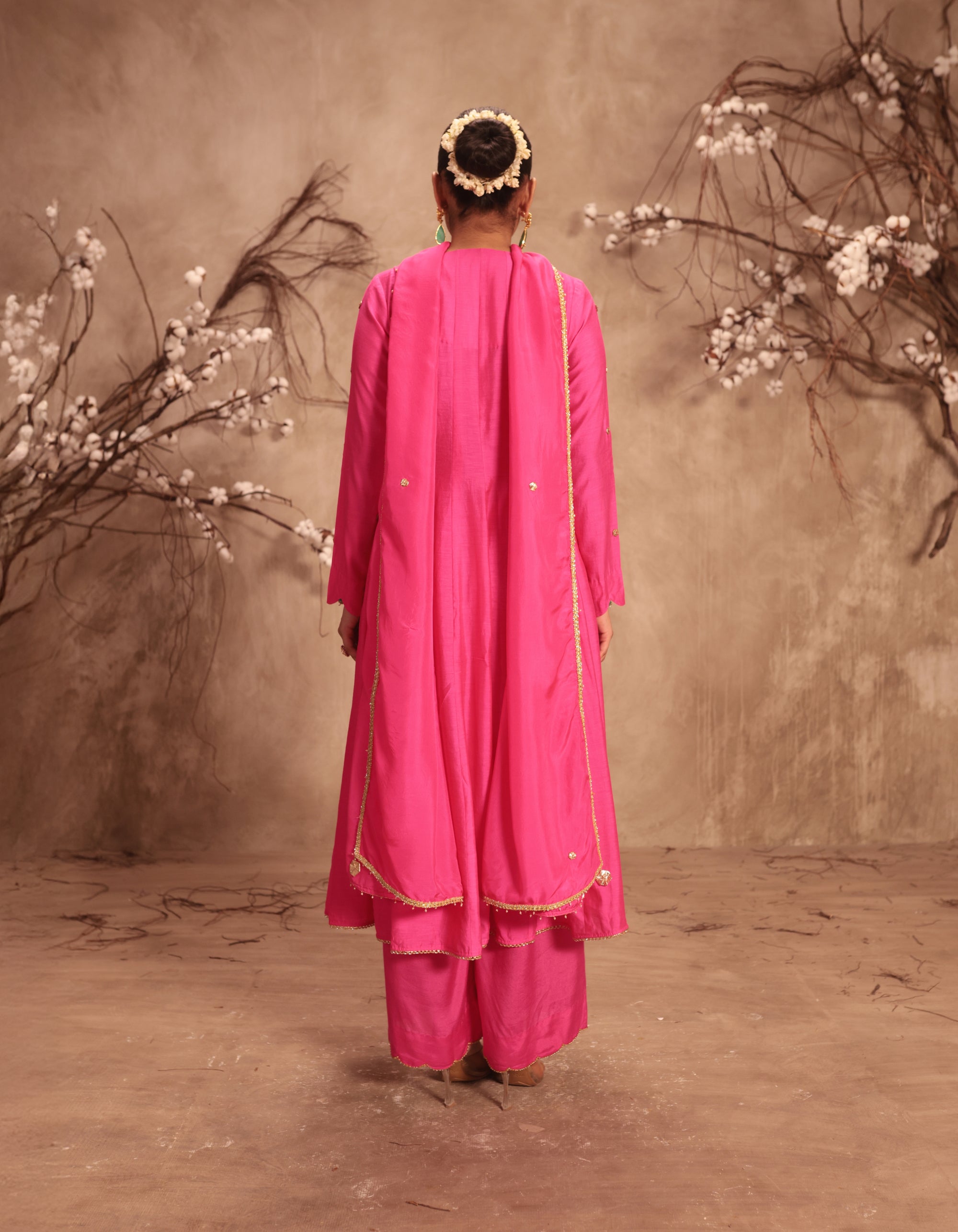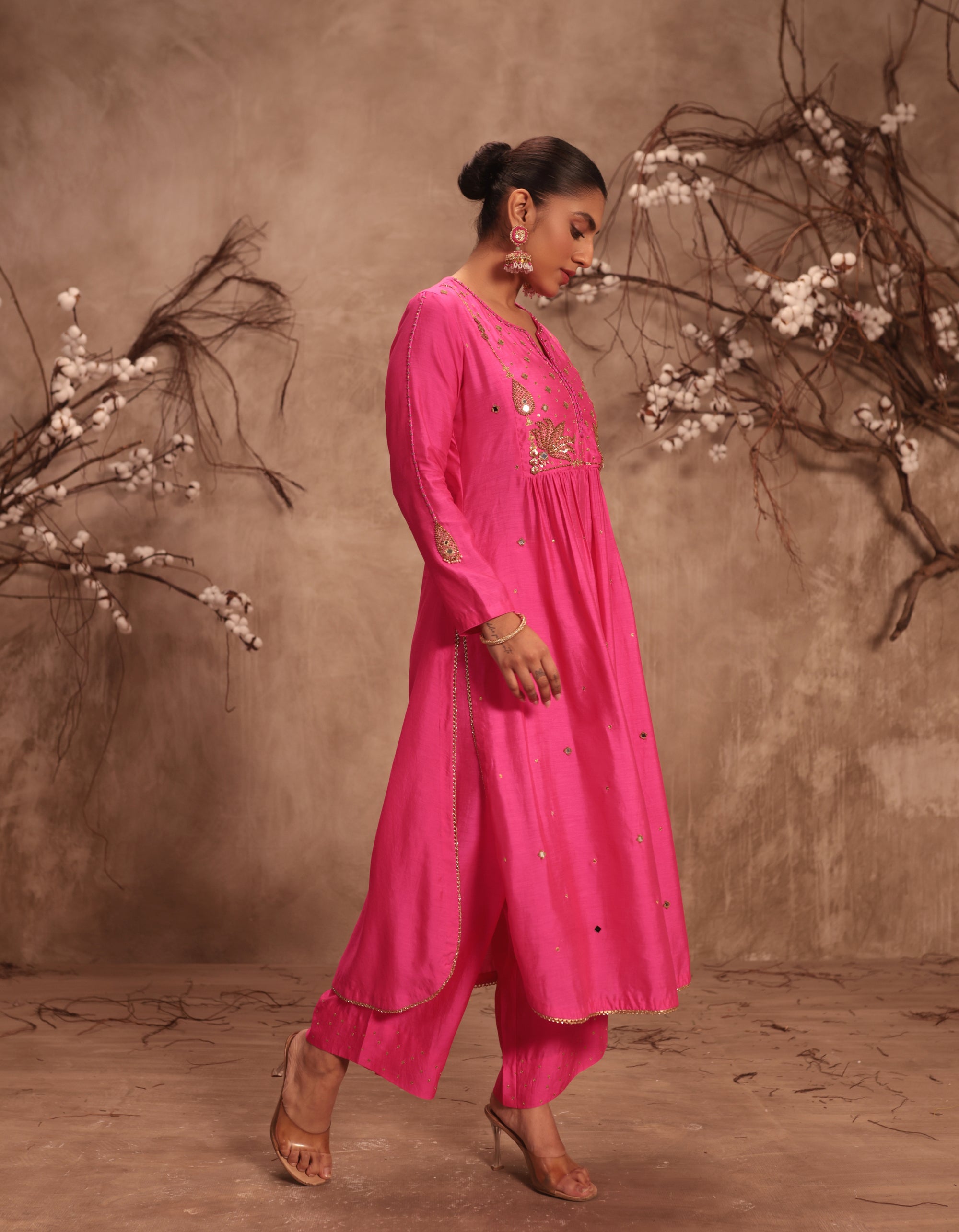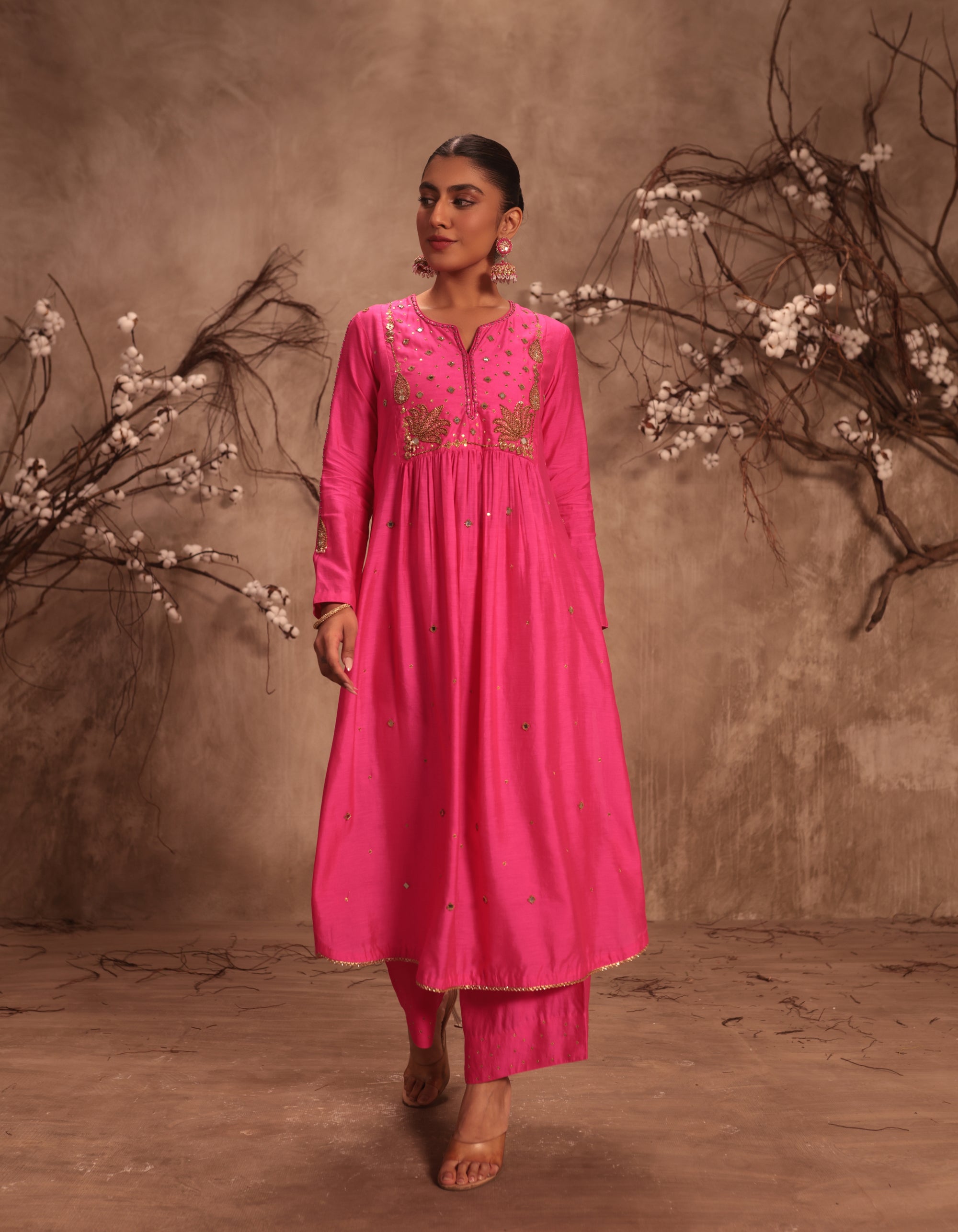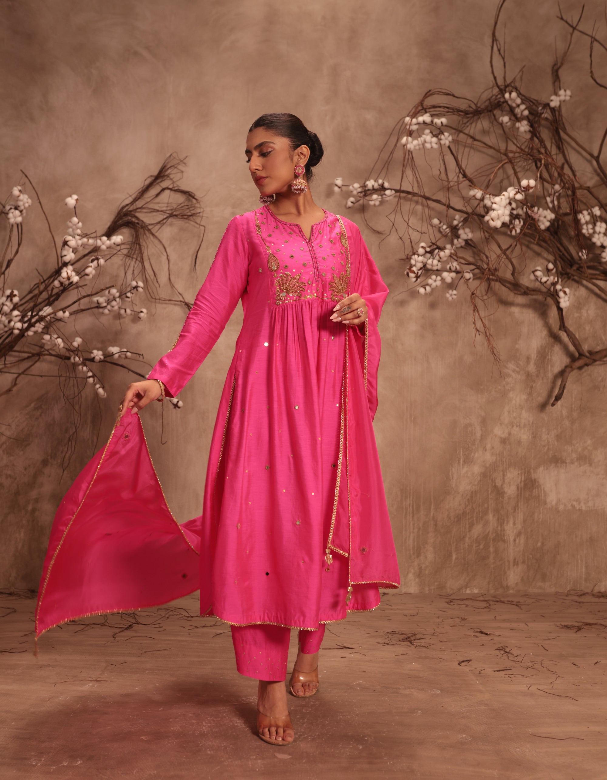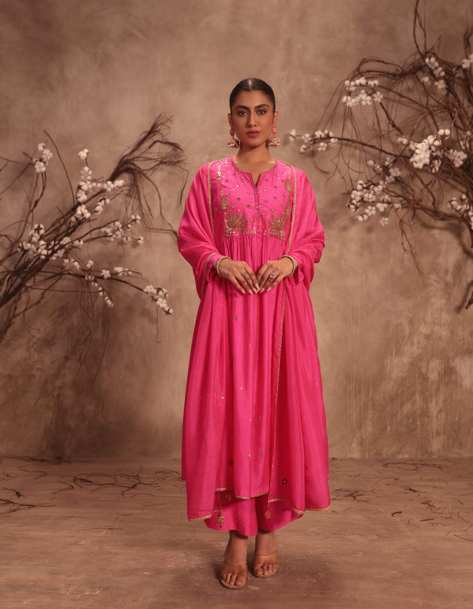 Hot Pink Multicolour Yoke Rani Anarkali Set