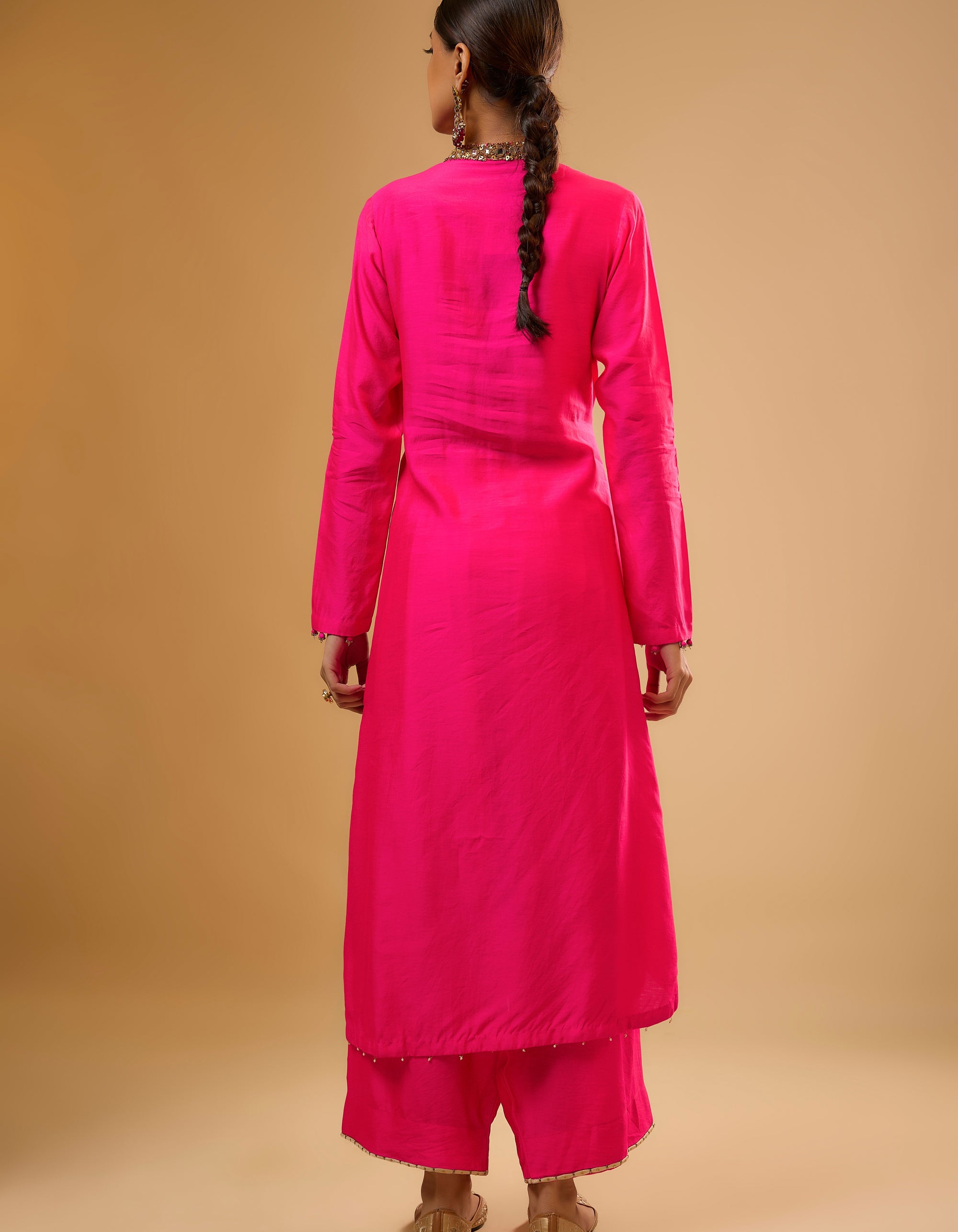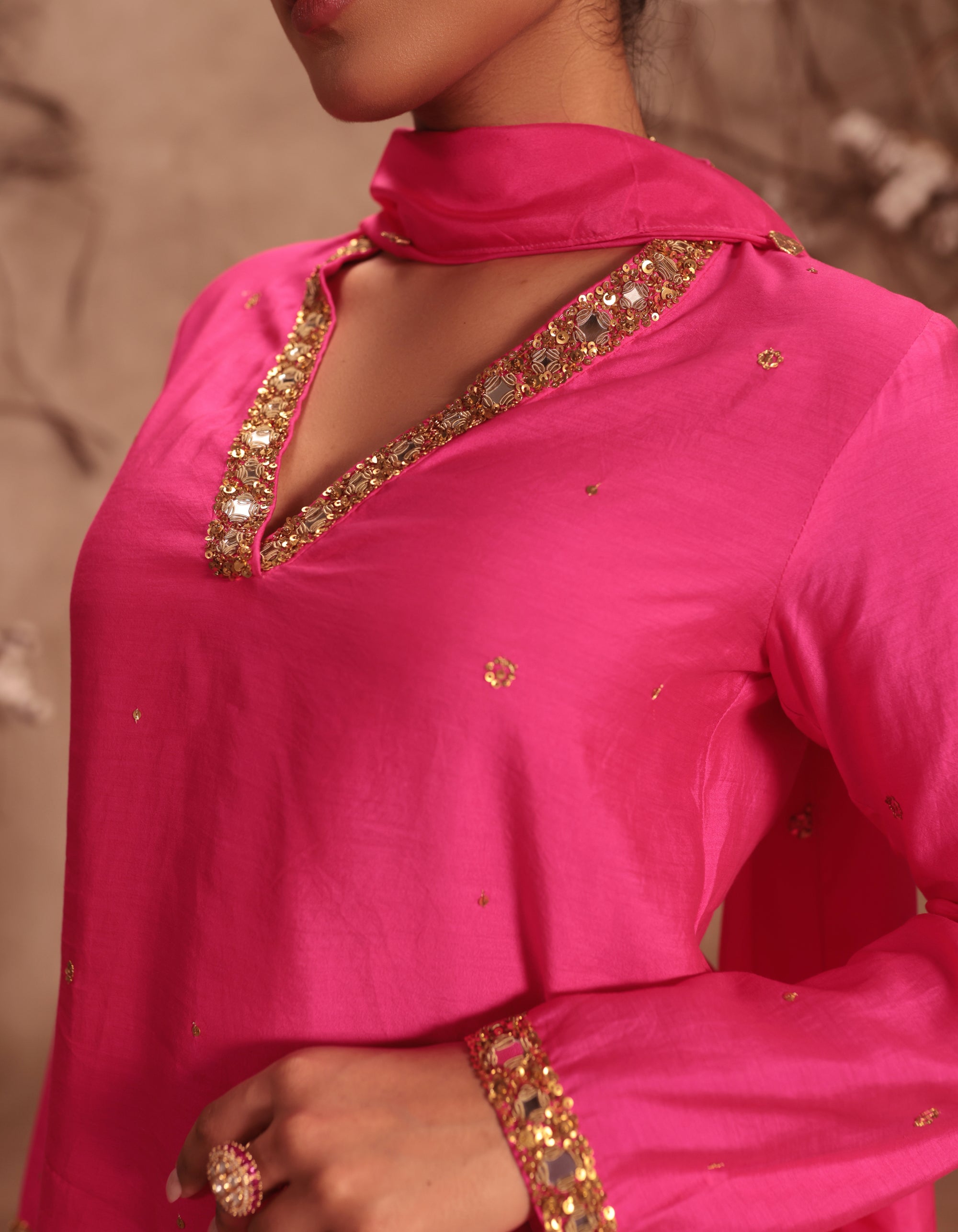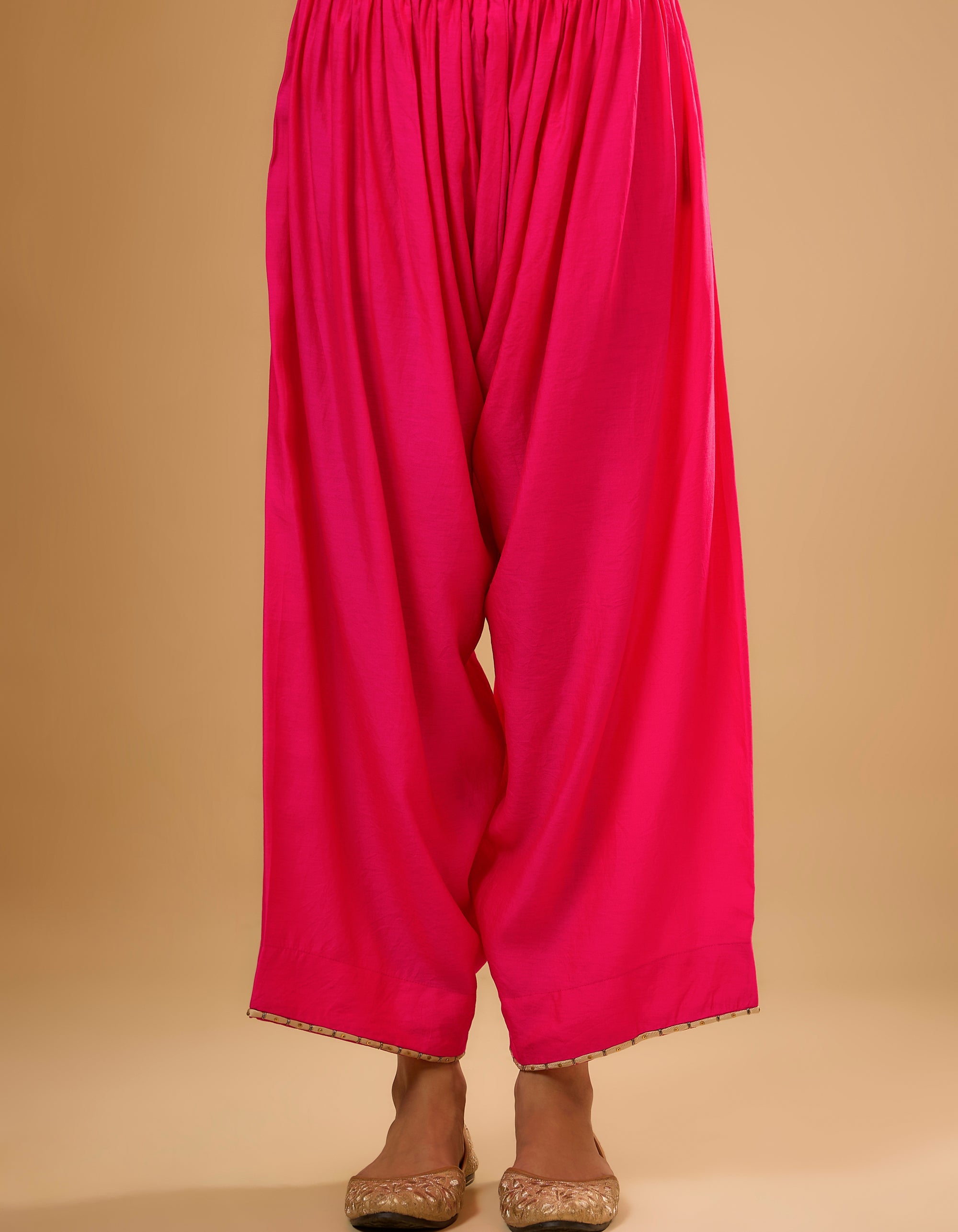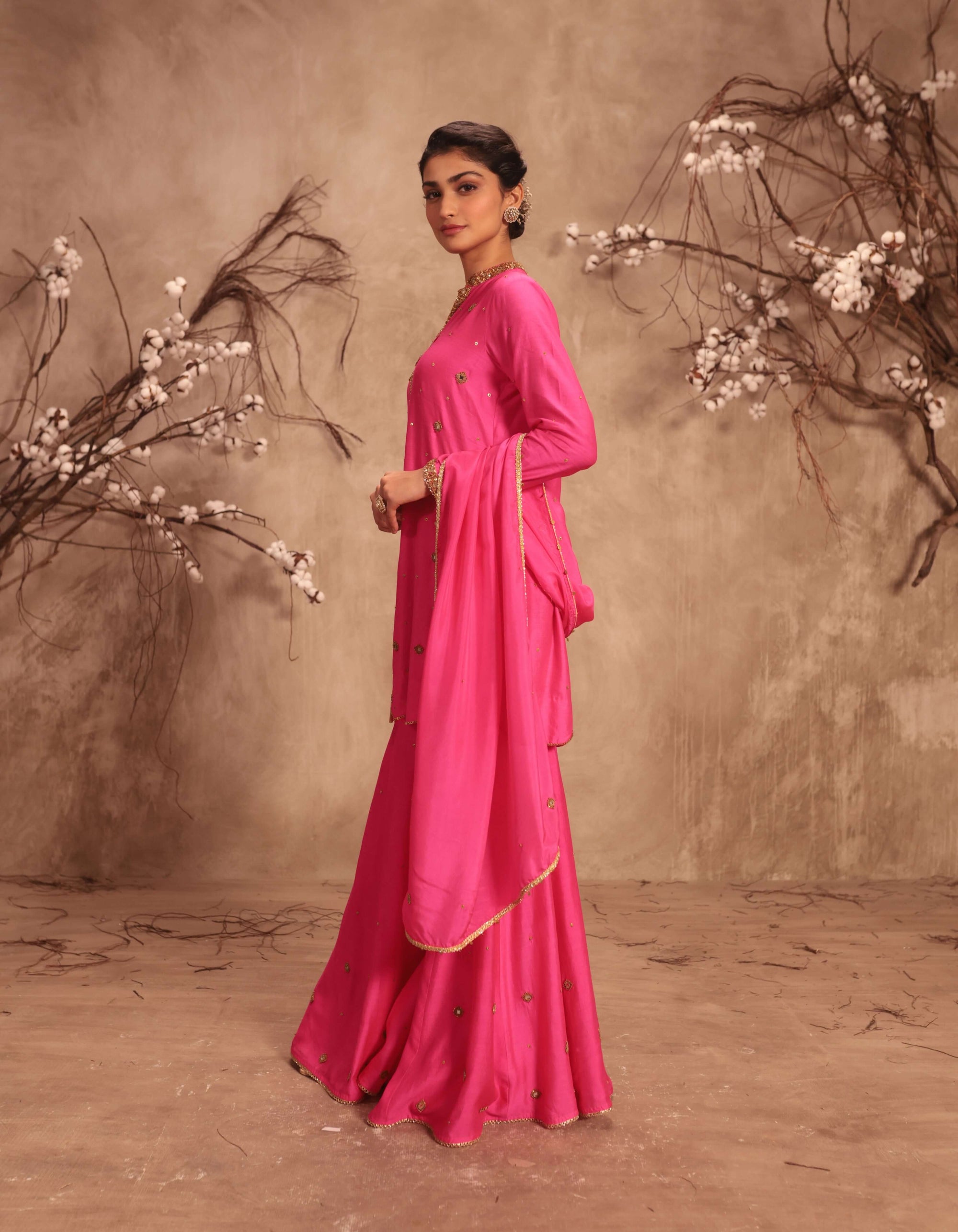 Hot Pink Multicolour Yoke Rani Anarkali Set