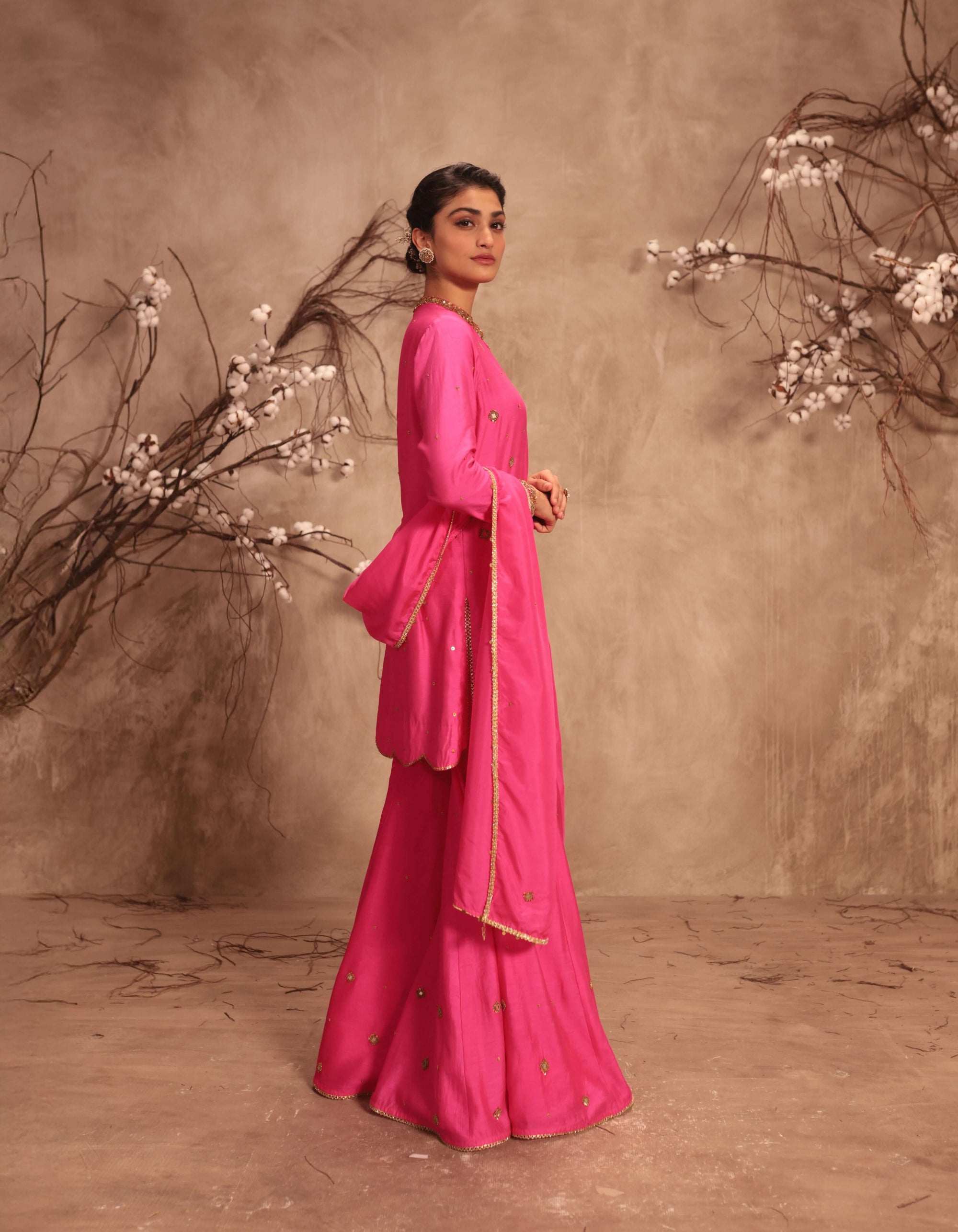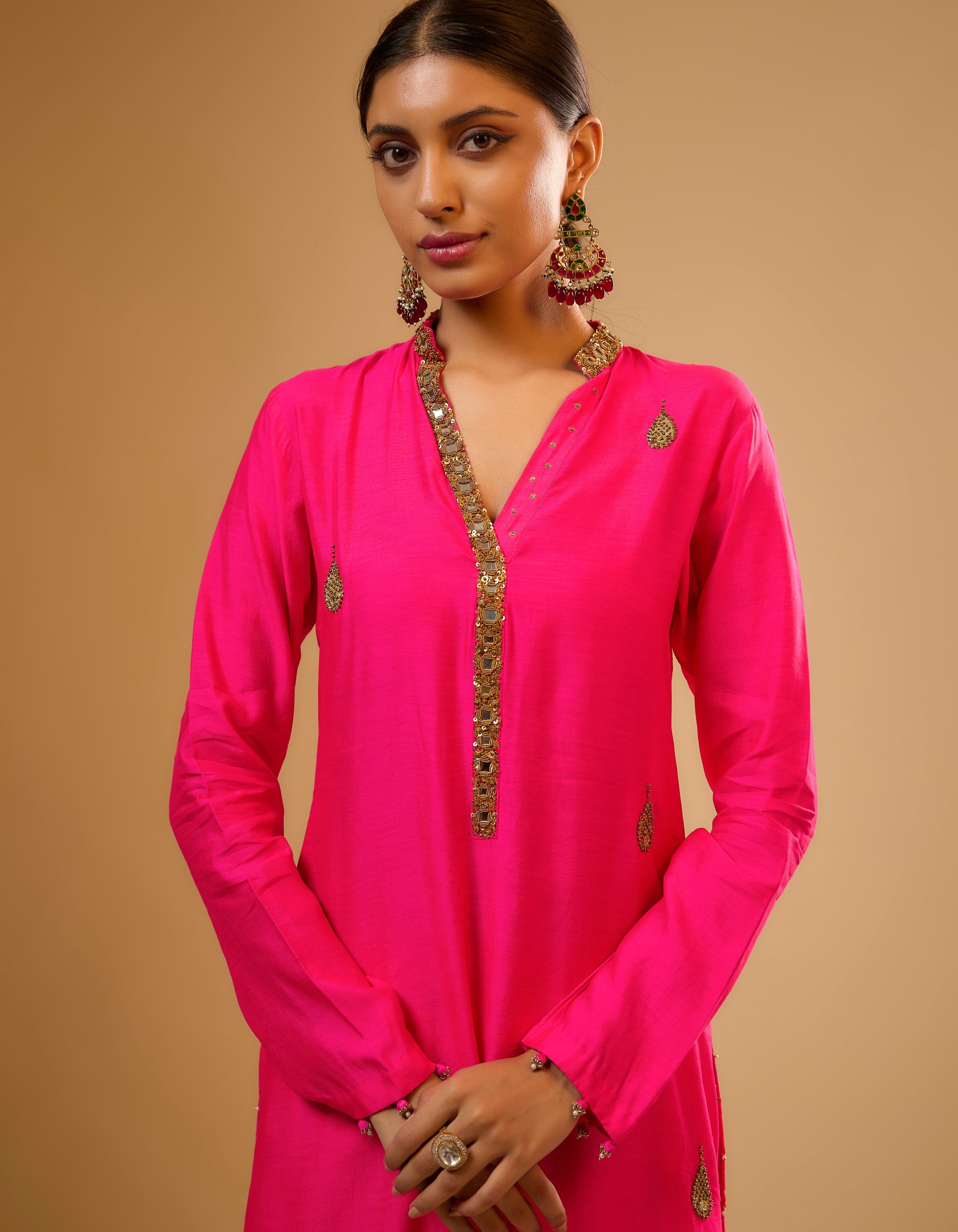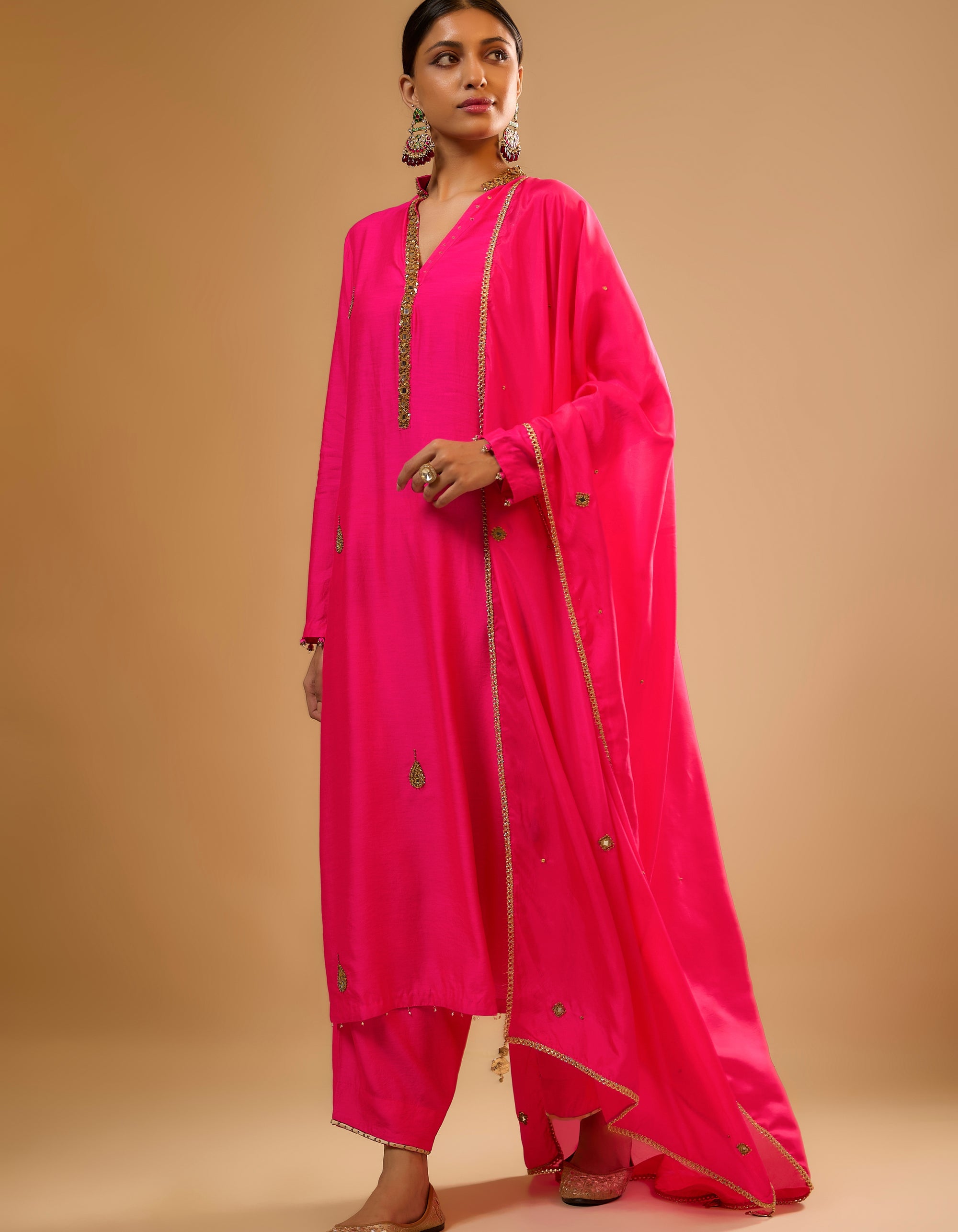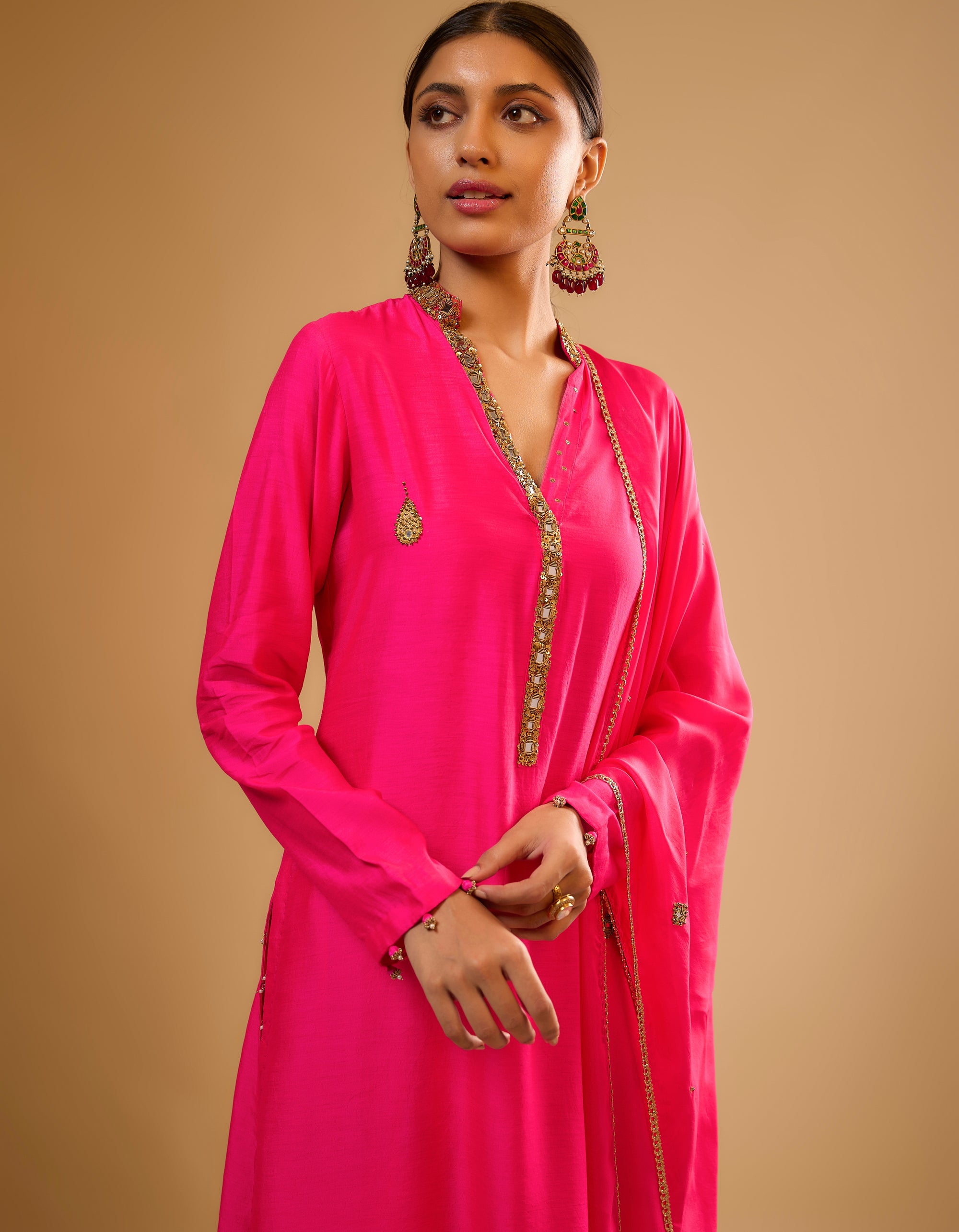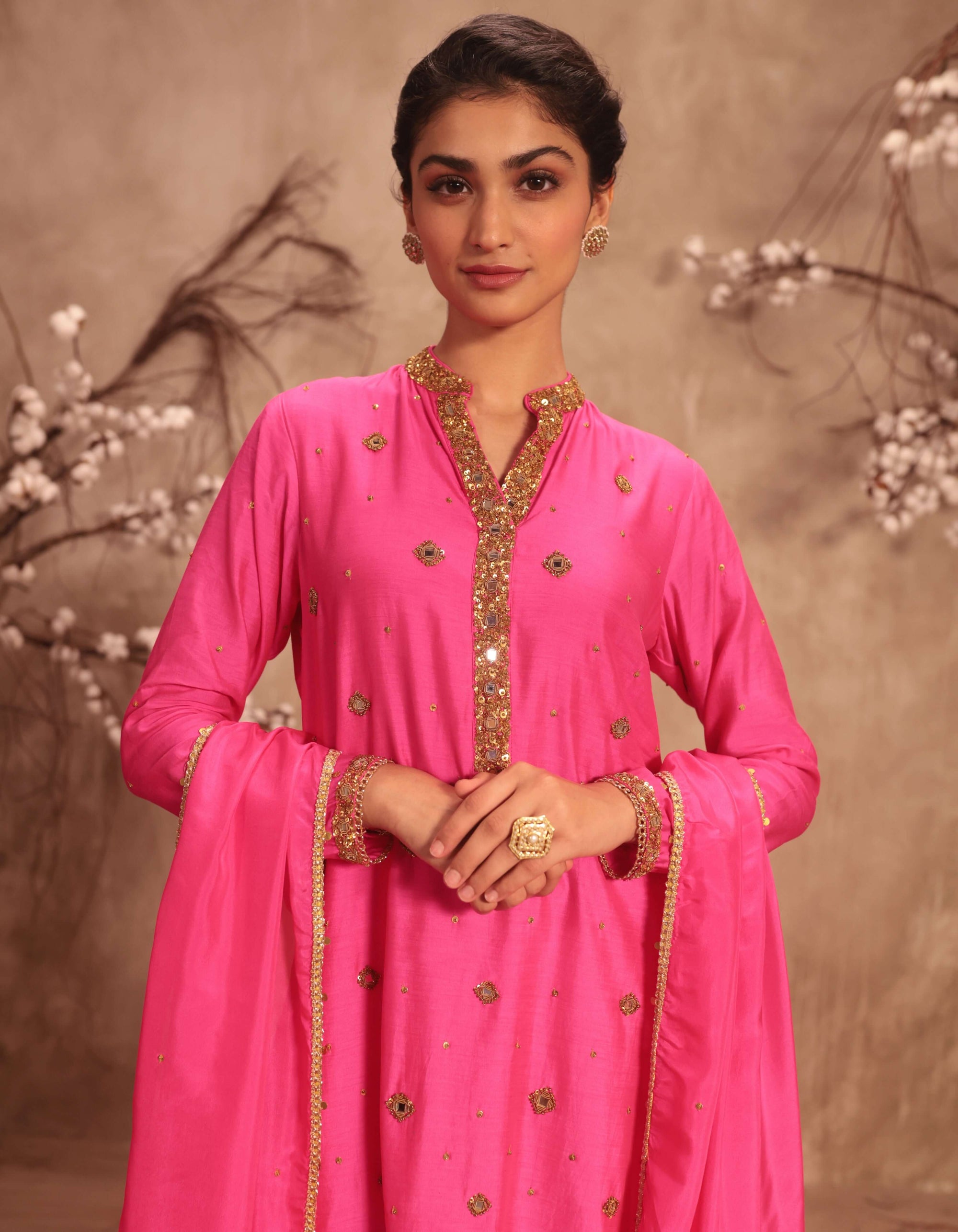 Hot Pink Multicolour Yoke Rani Anarkali Set