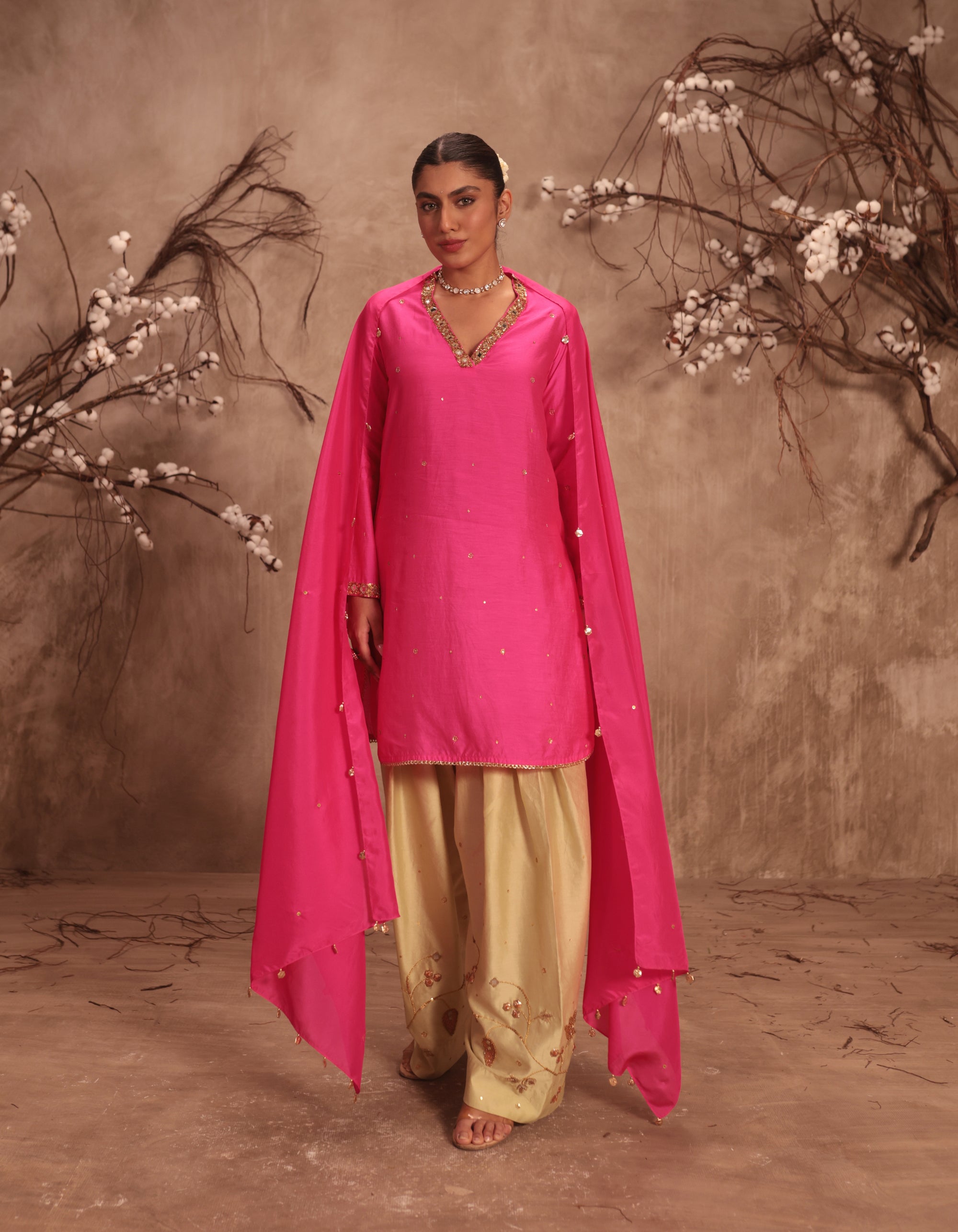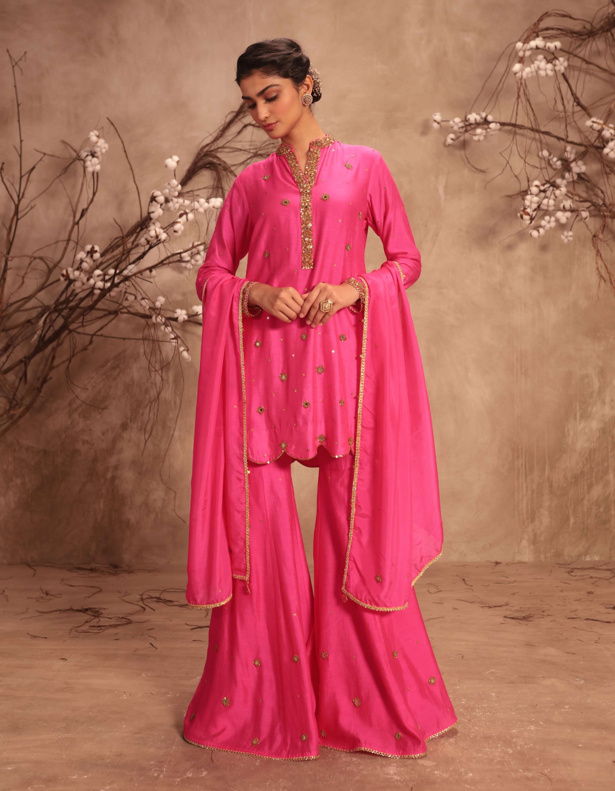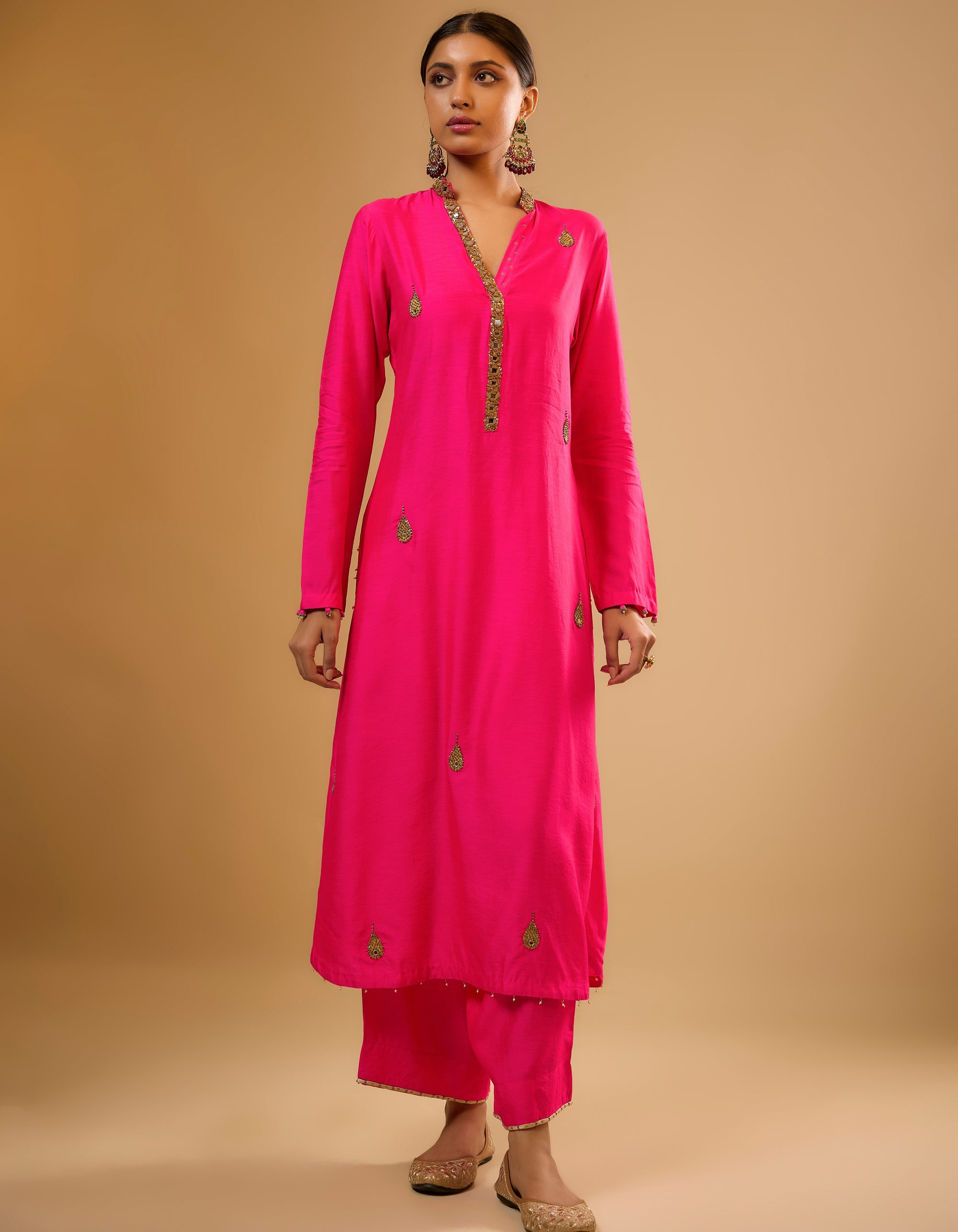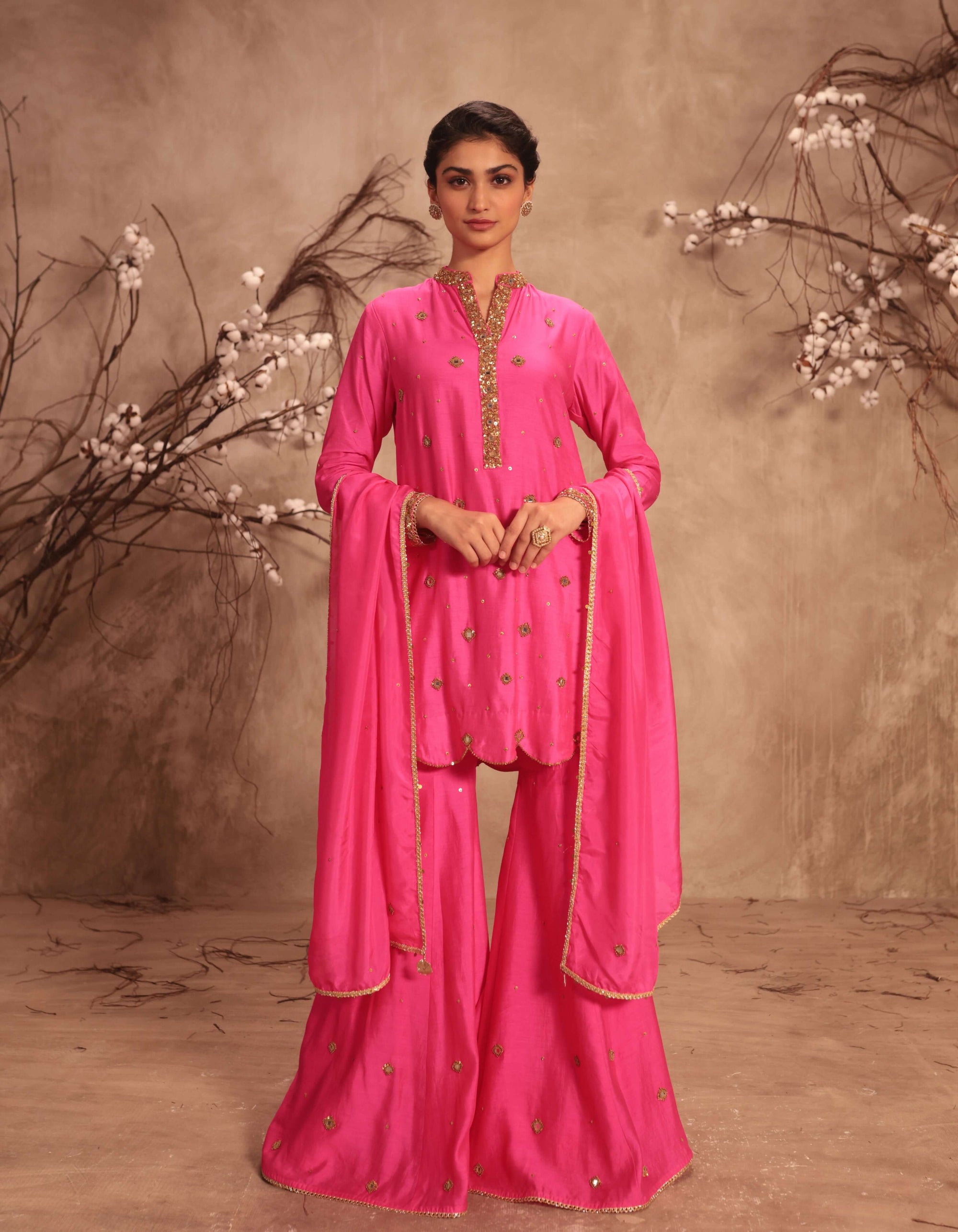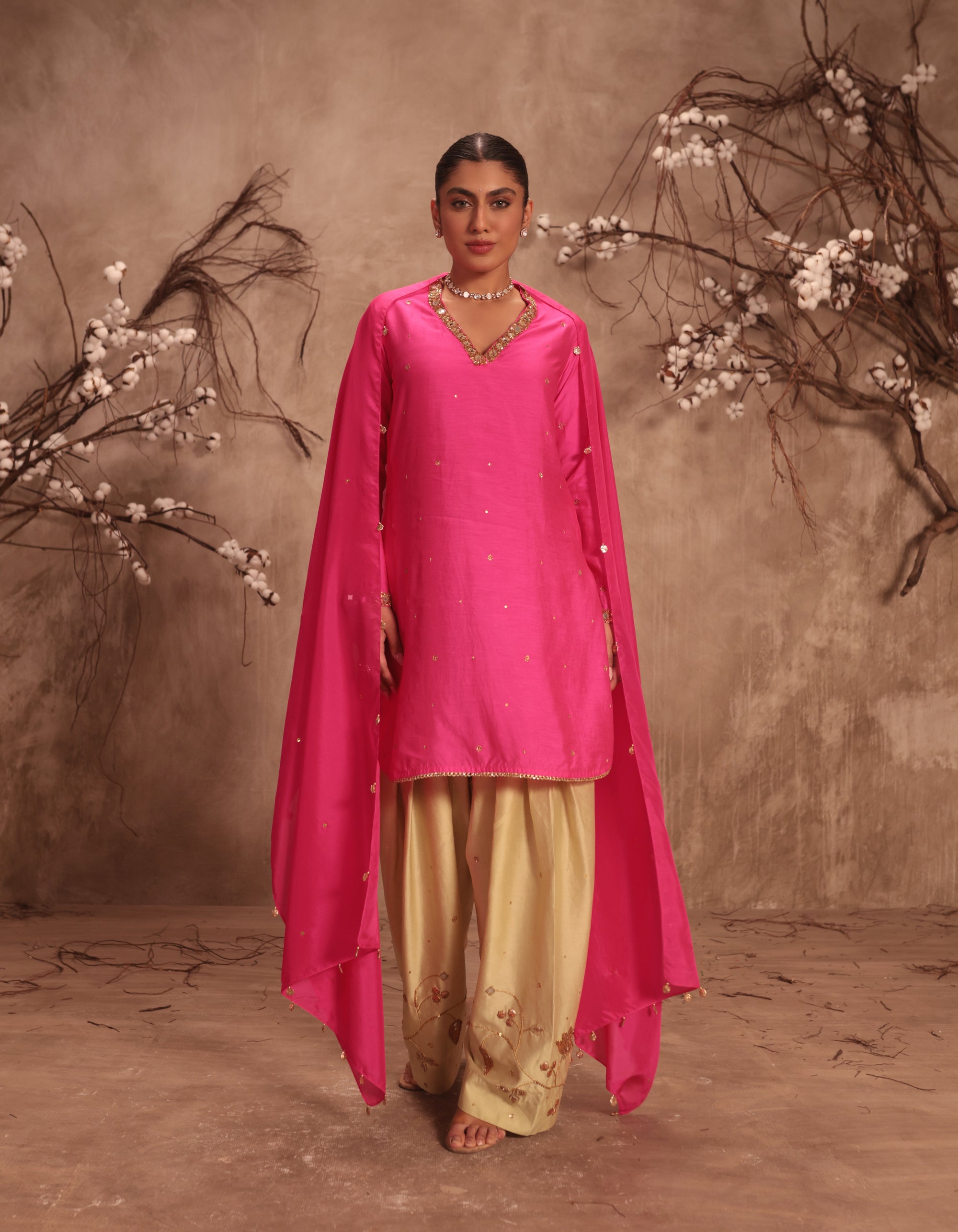 Hot Pink Multicolour Yoke Rani Anarkali Set