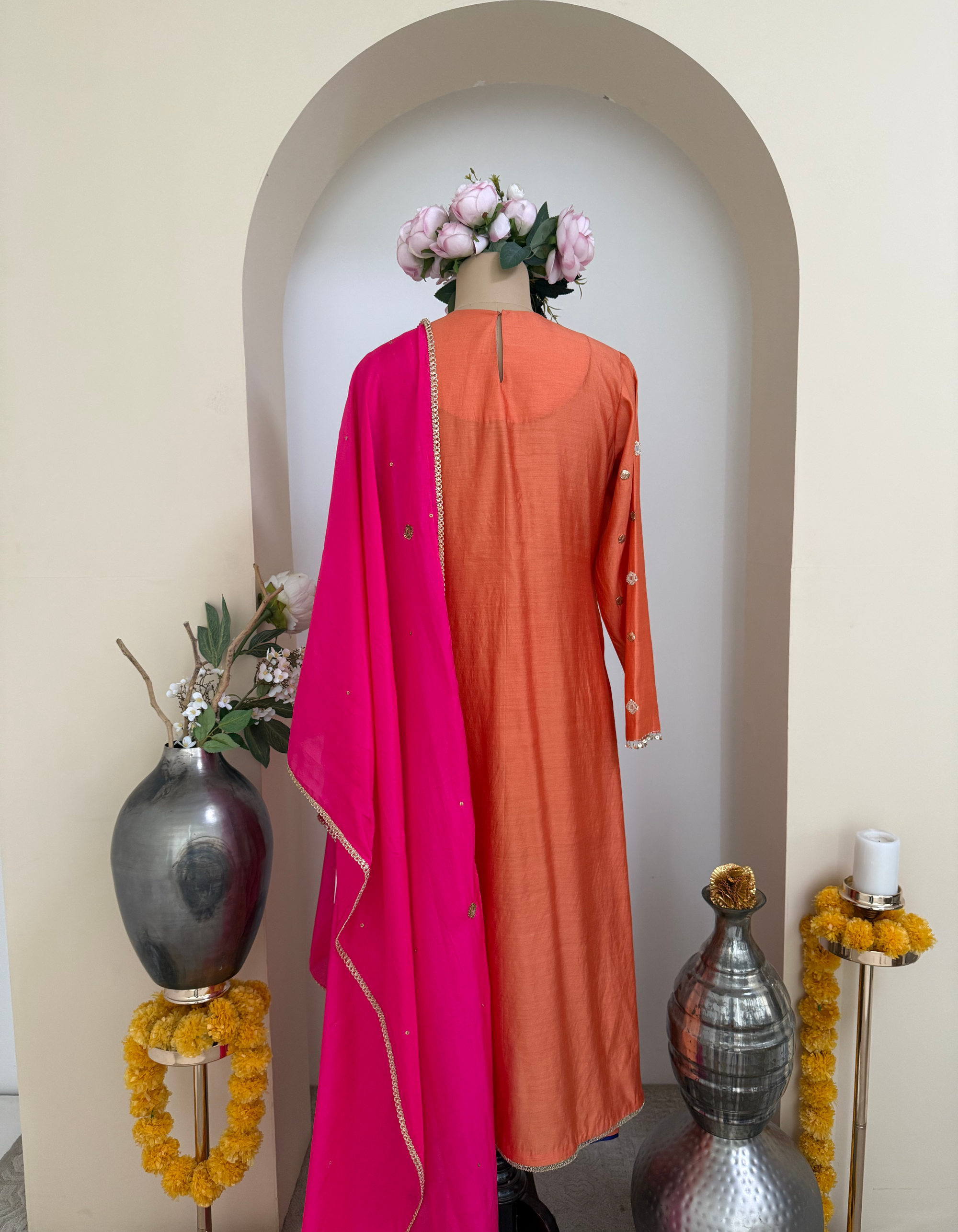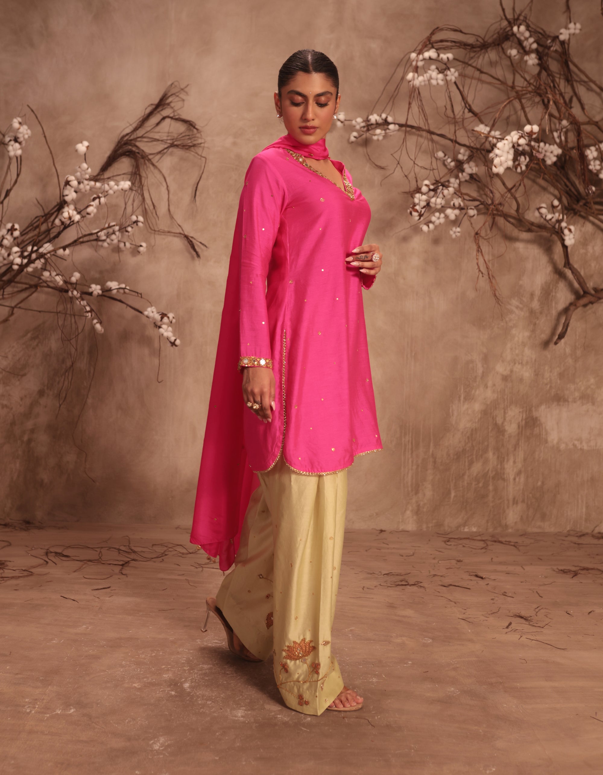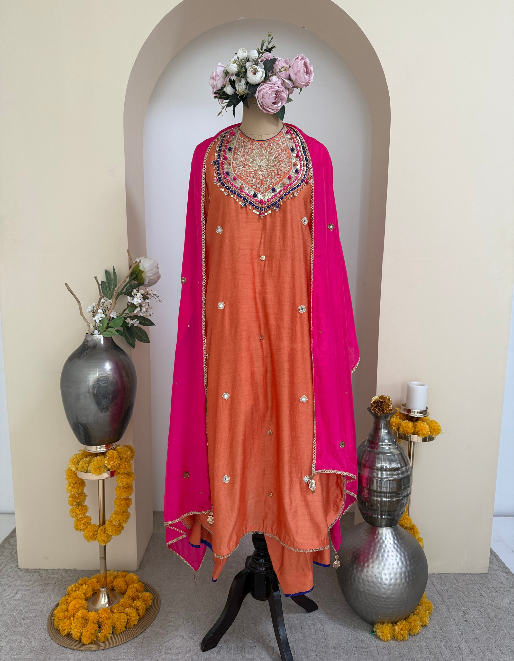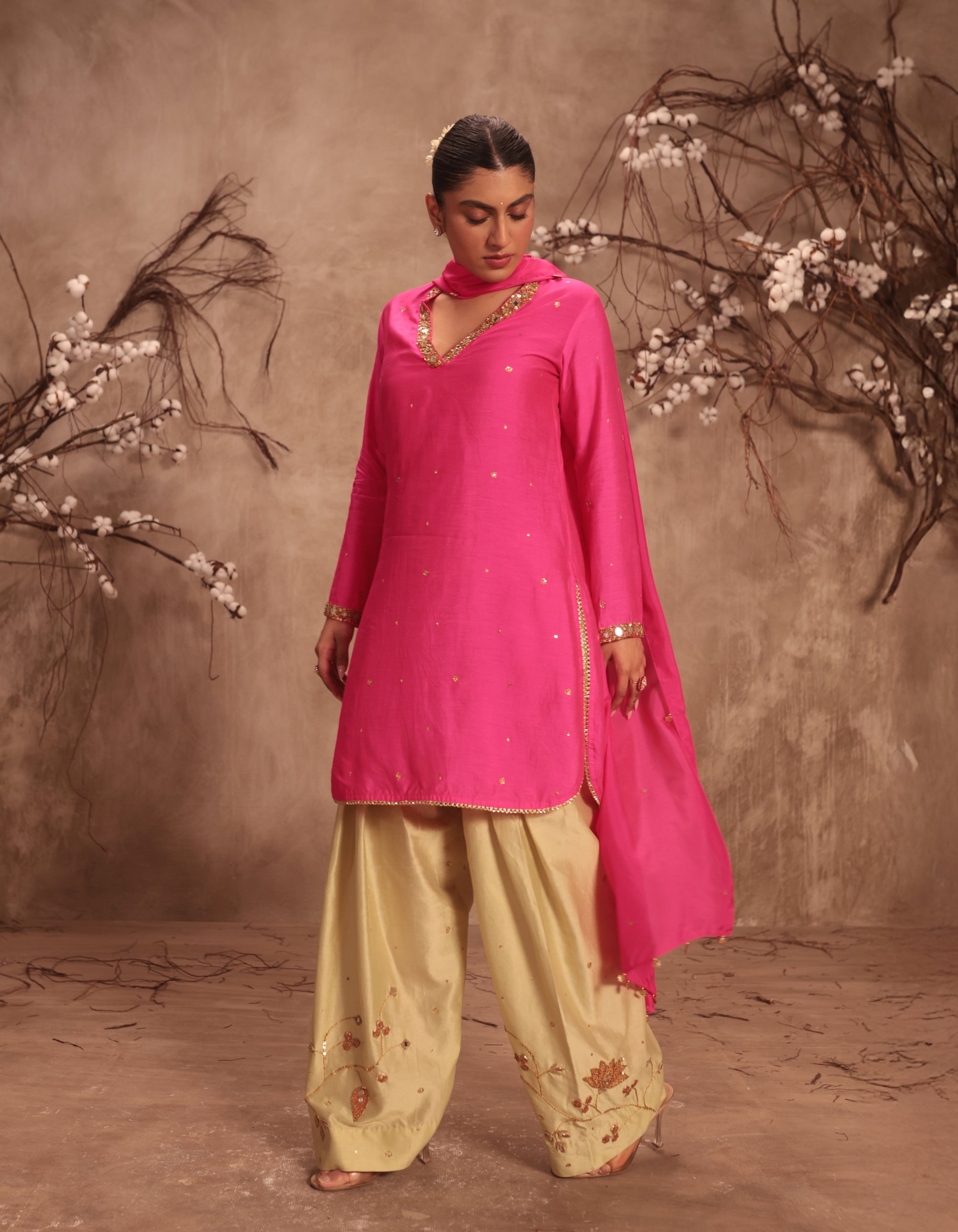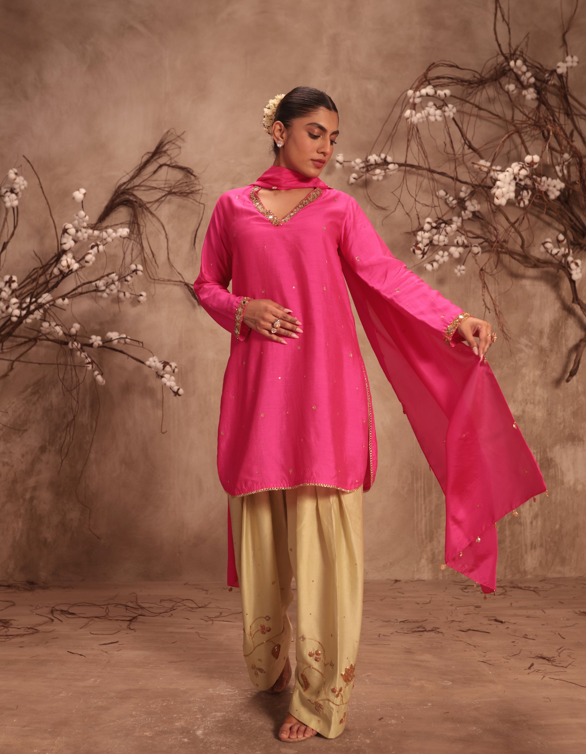 Hot Pink Multicolour Yoke Rani Anarkali Set