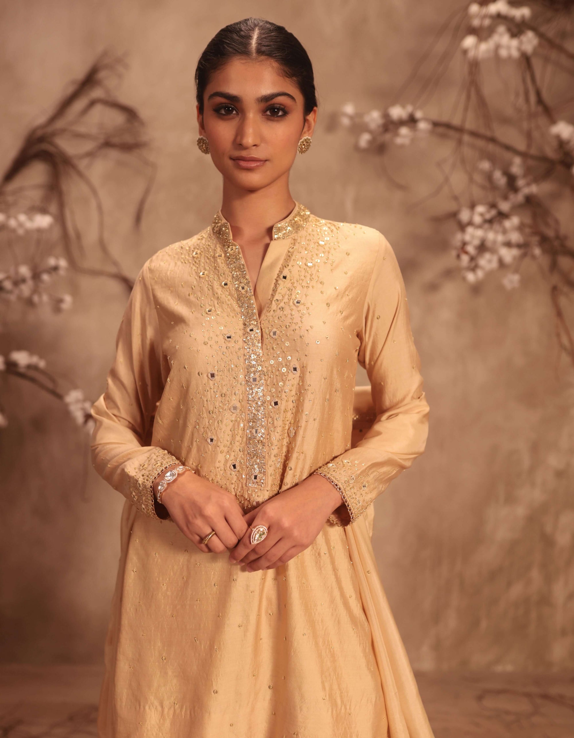 Ivory Sequin Yoke Bageecha Anarkali Set