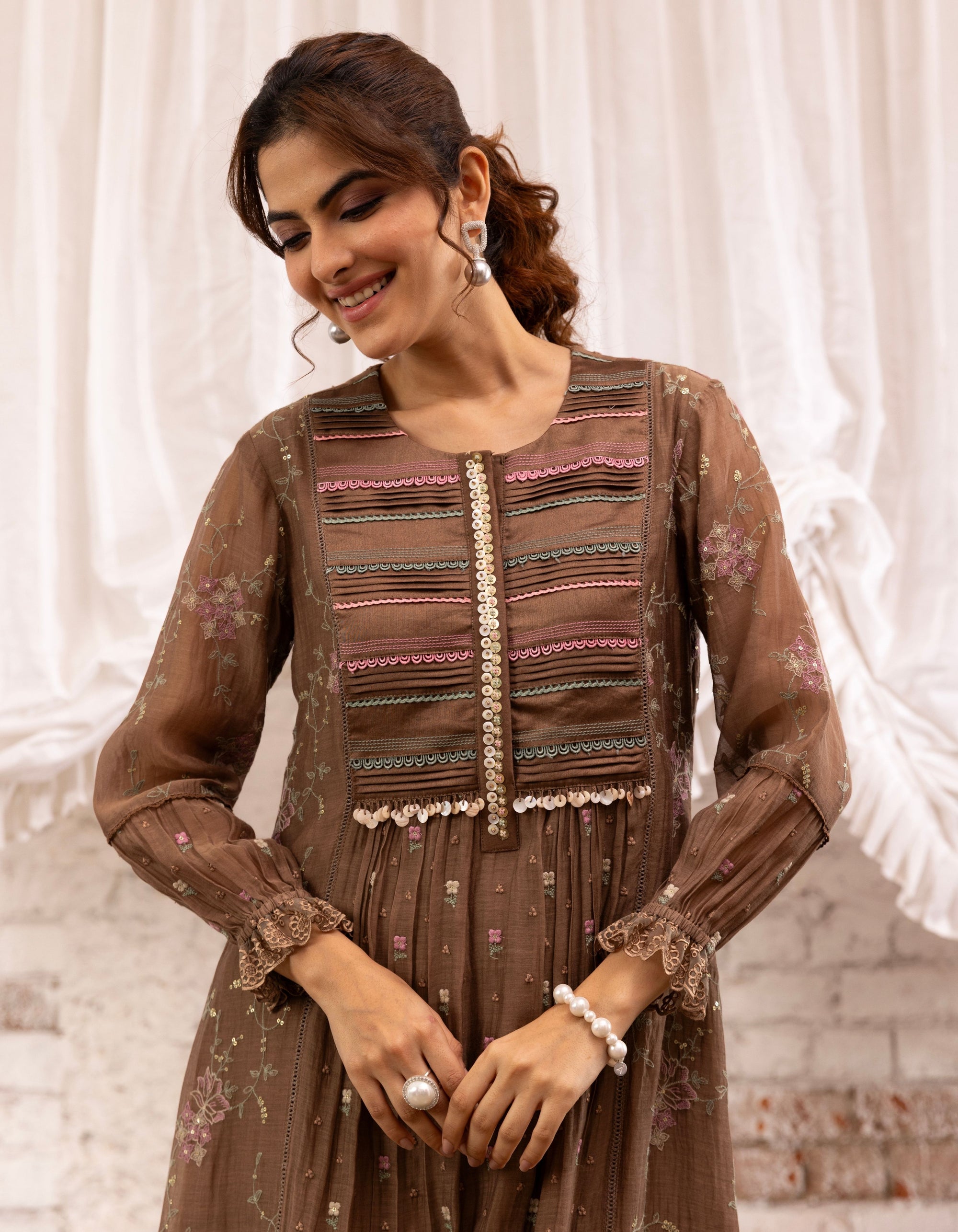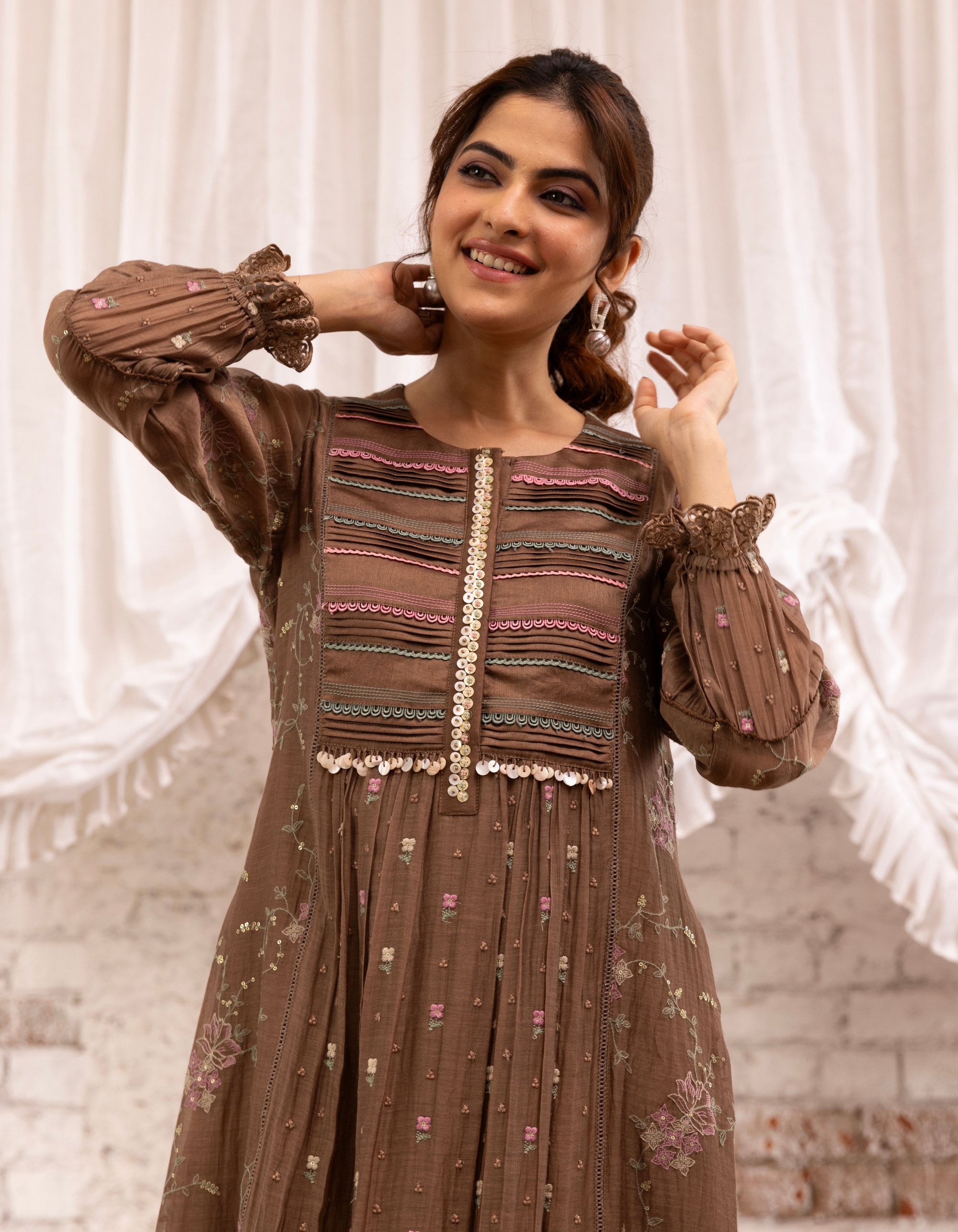 Mustard Threadwork Short Yoke Noor Kurta Set