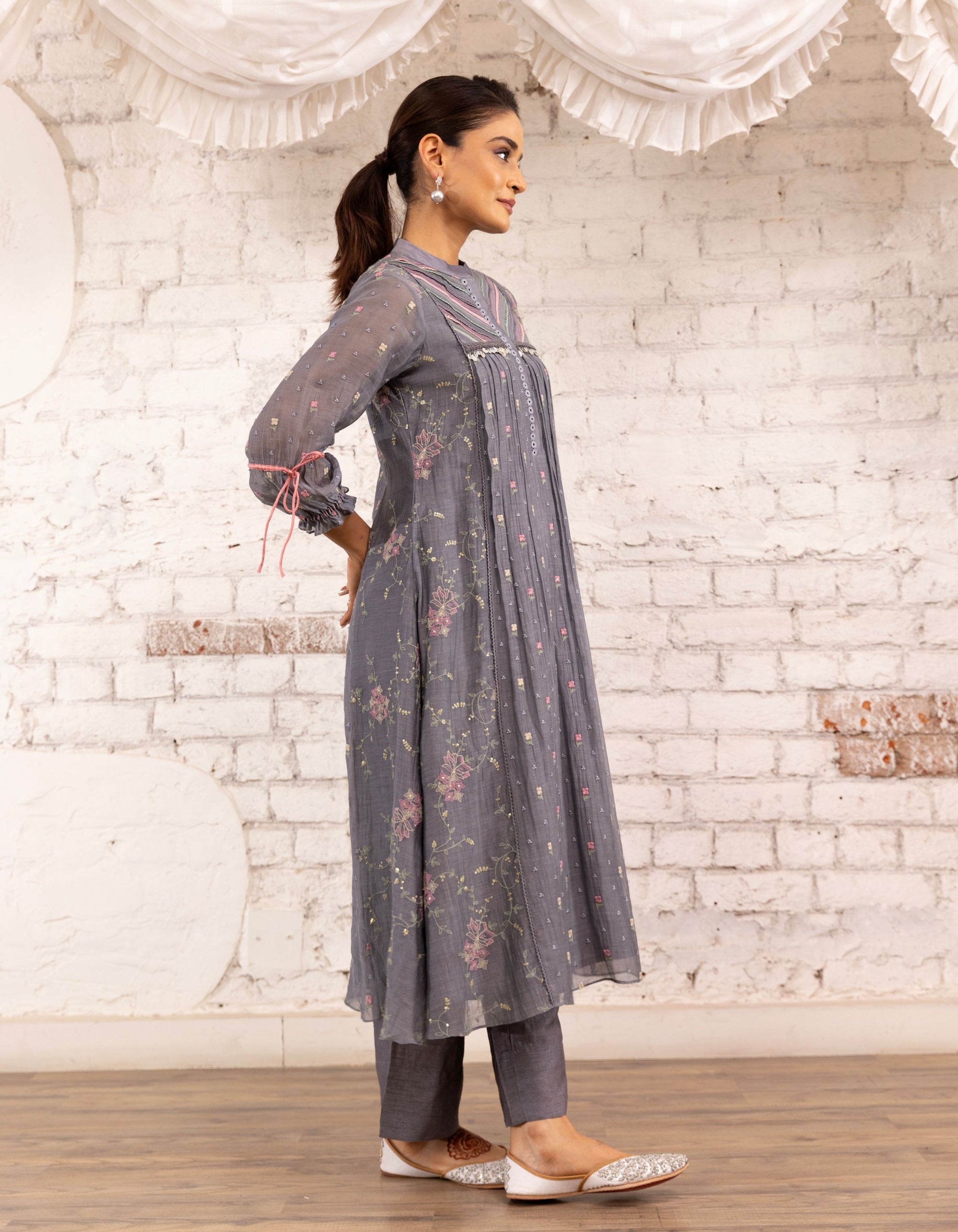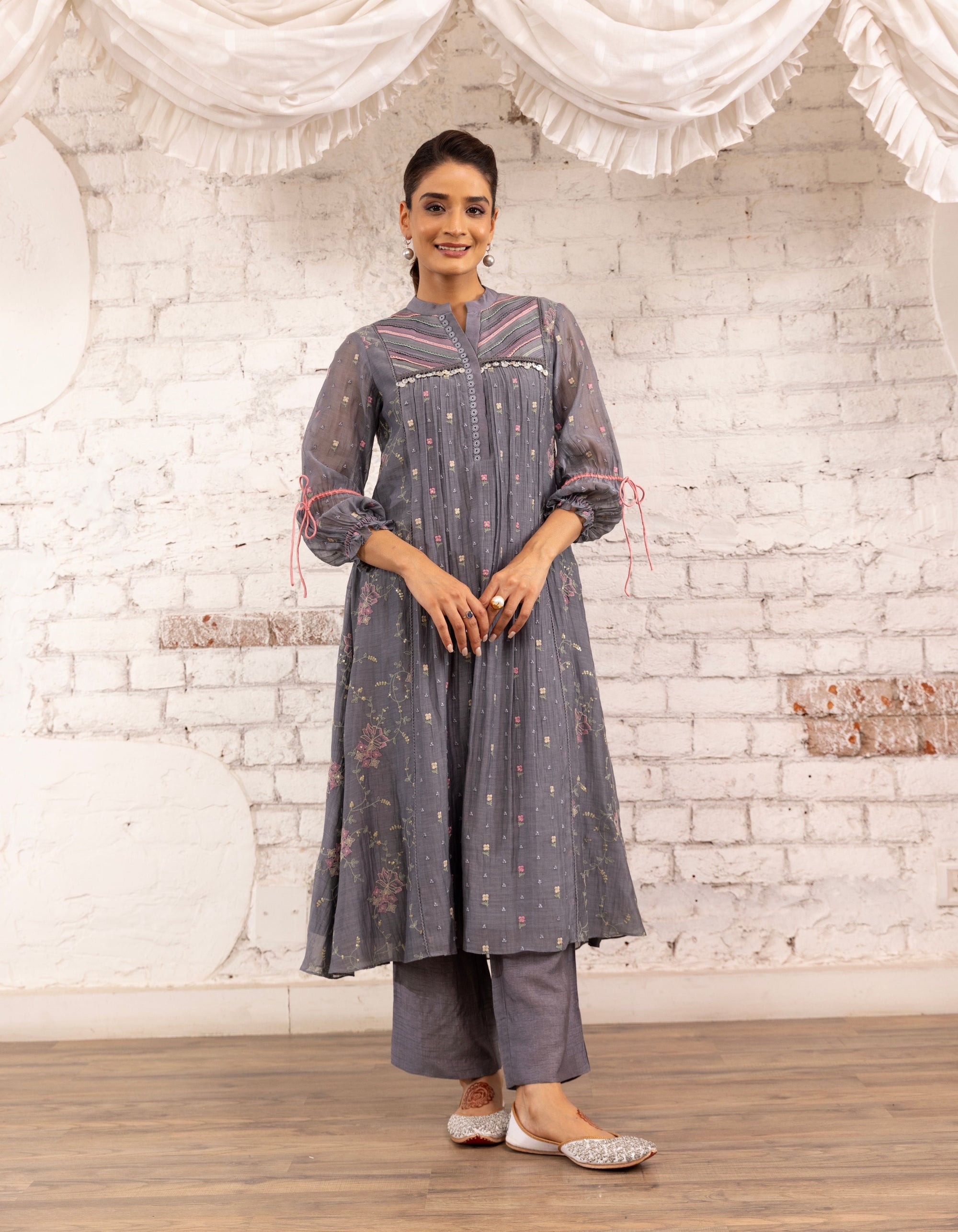Aqua Lotus Yoke Noor Anarkali Kurta Set