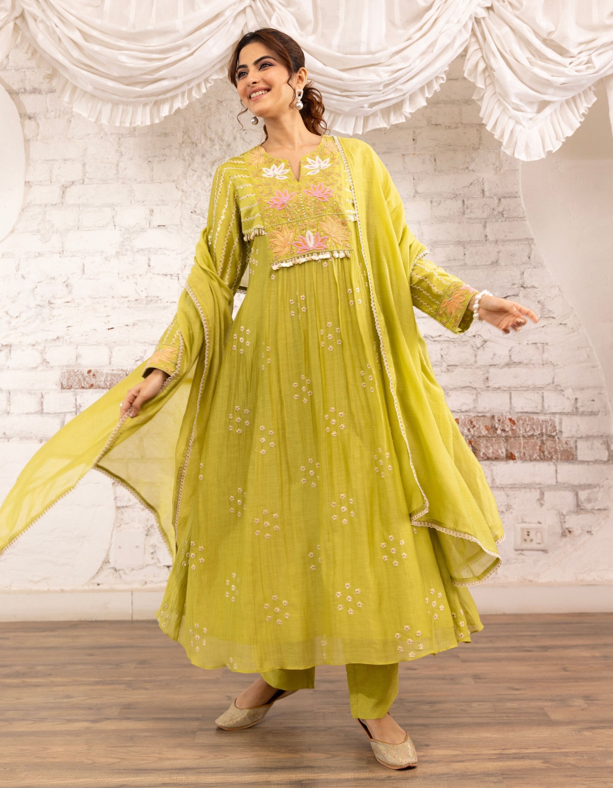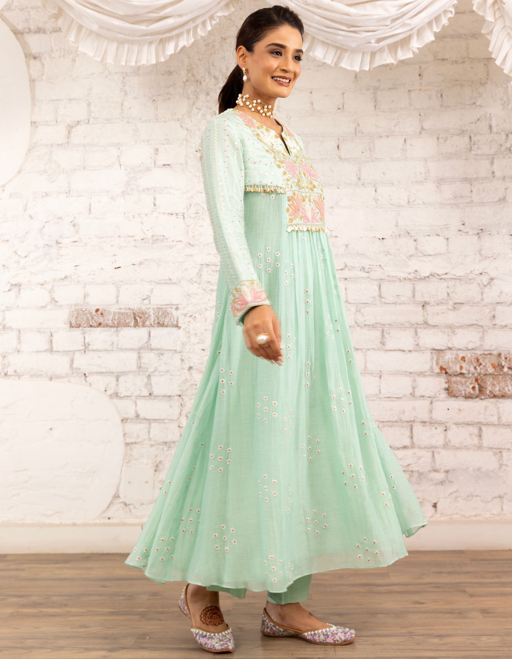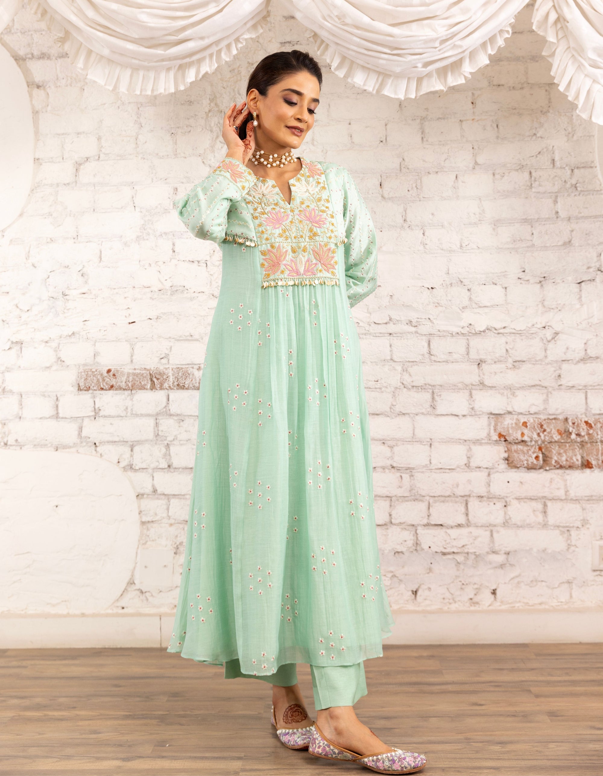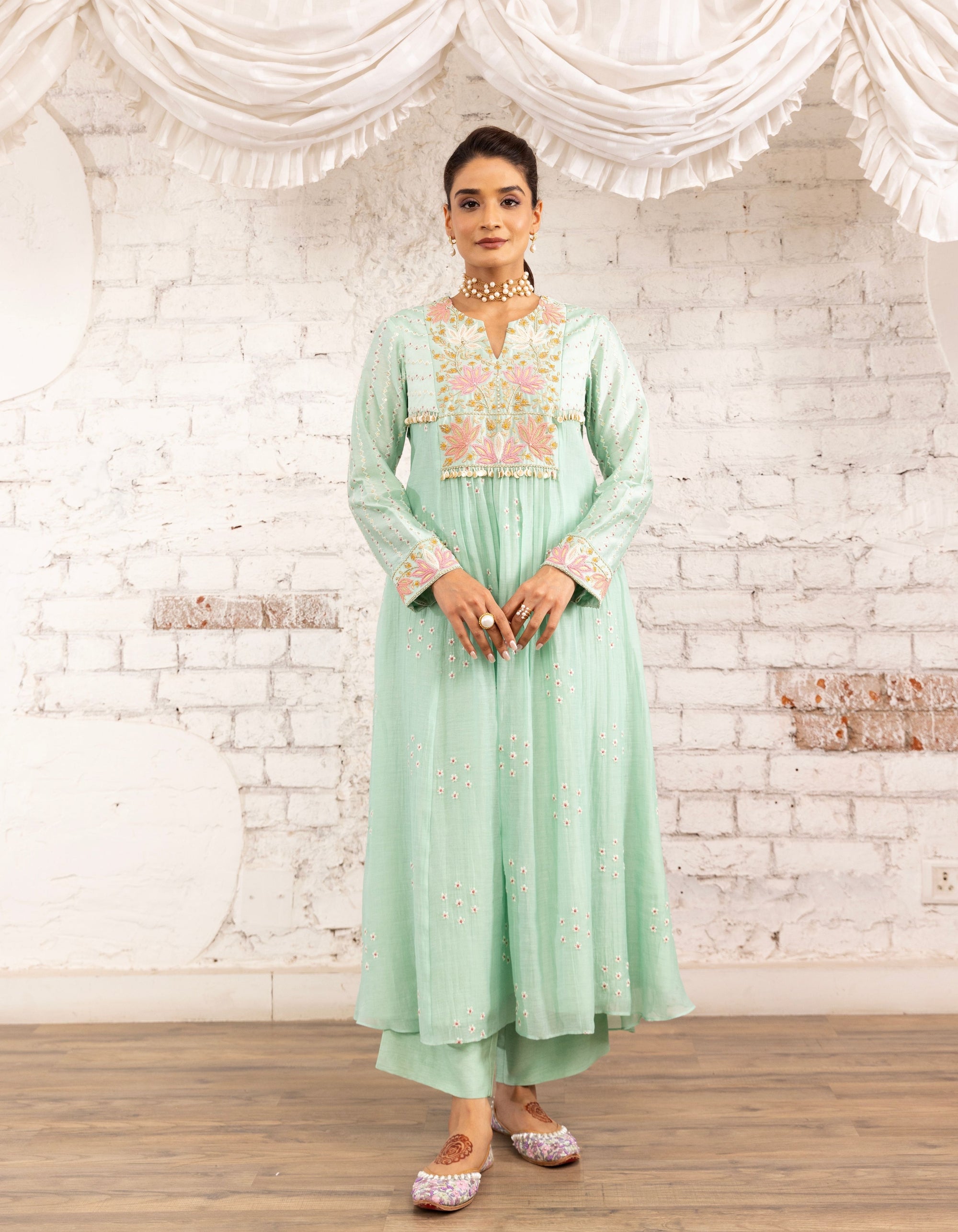 Green Lotus Yoke Noor Anarkali Kurta Set