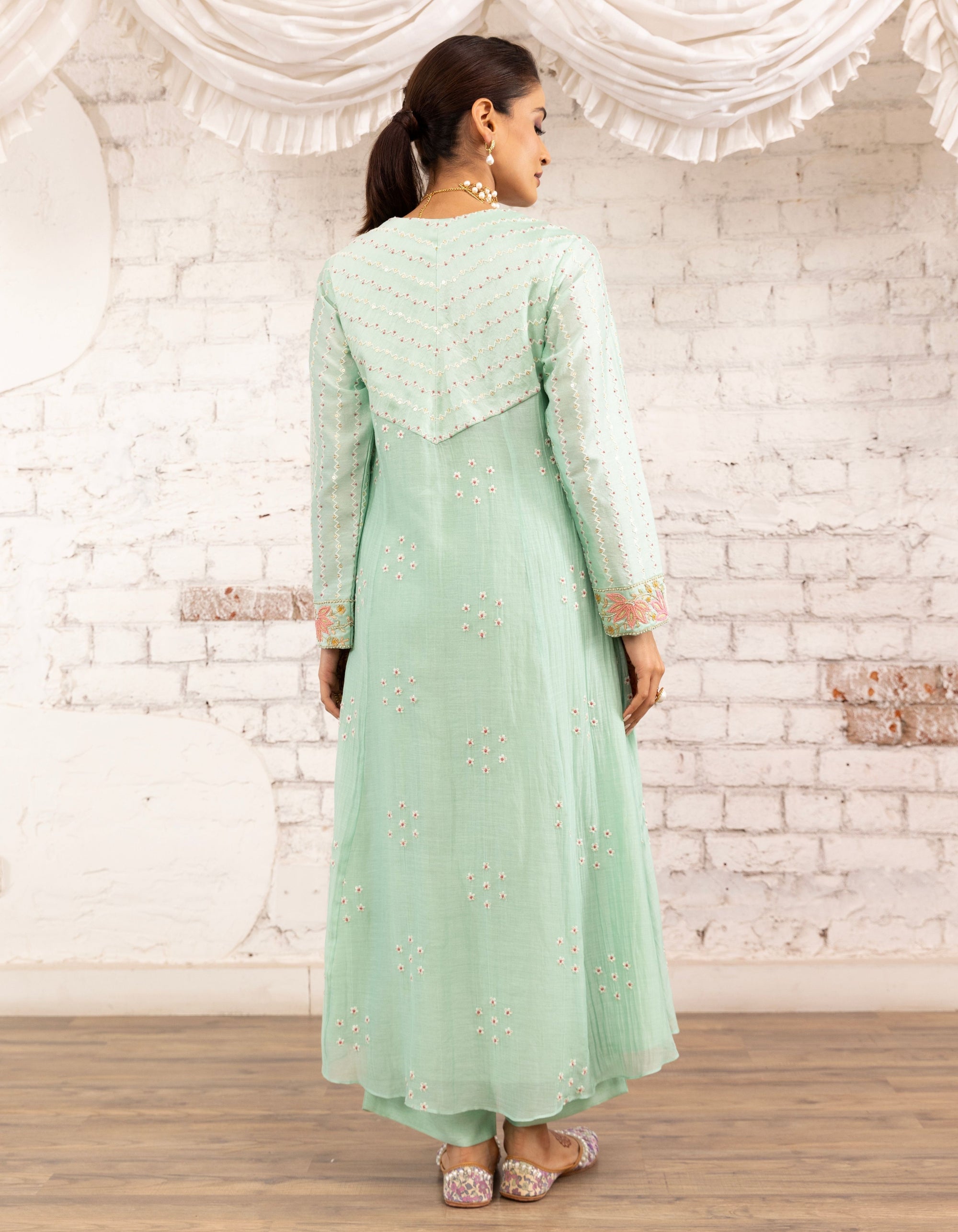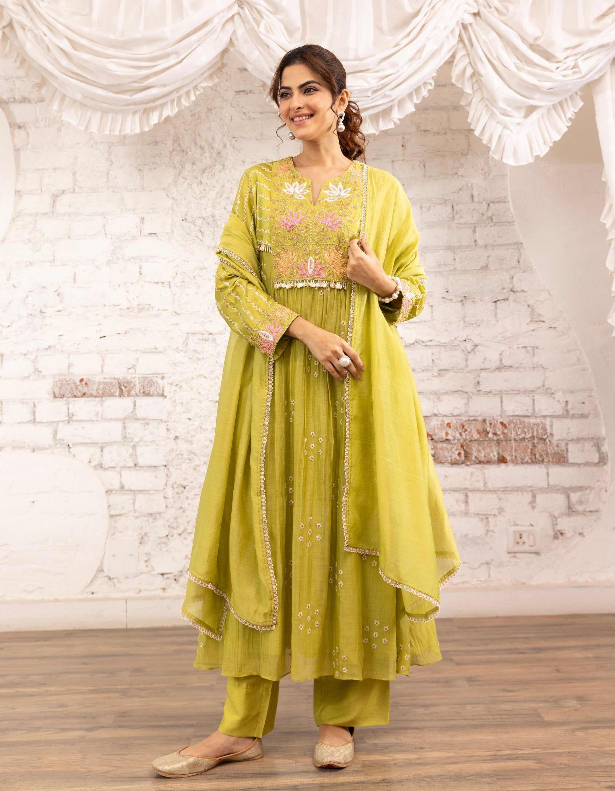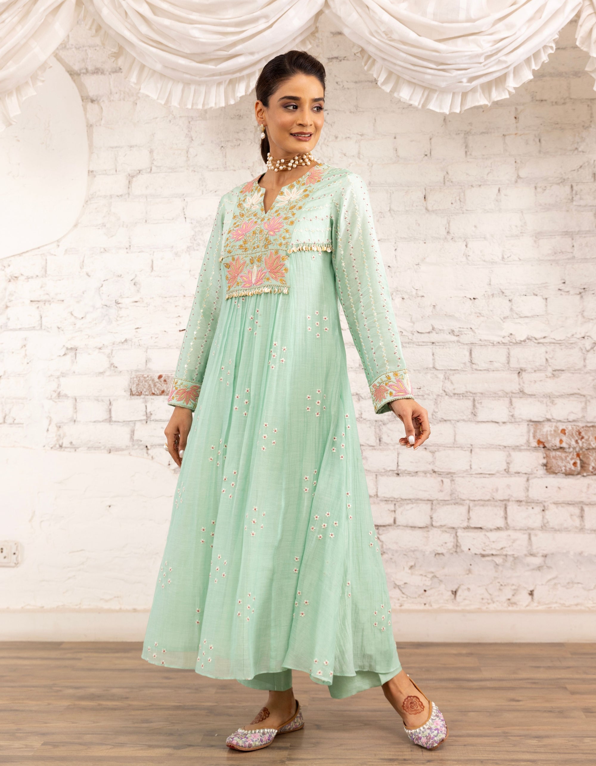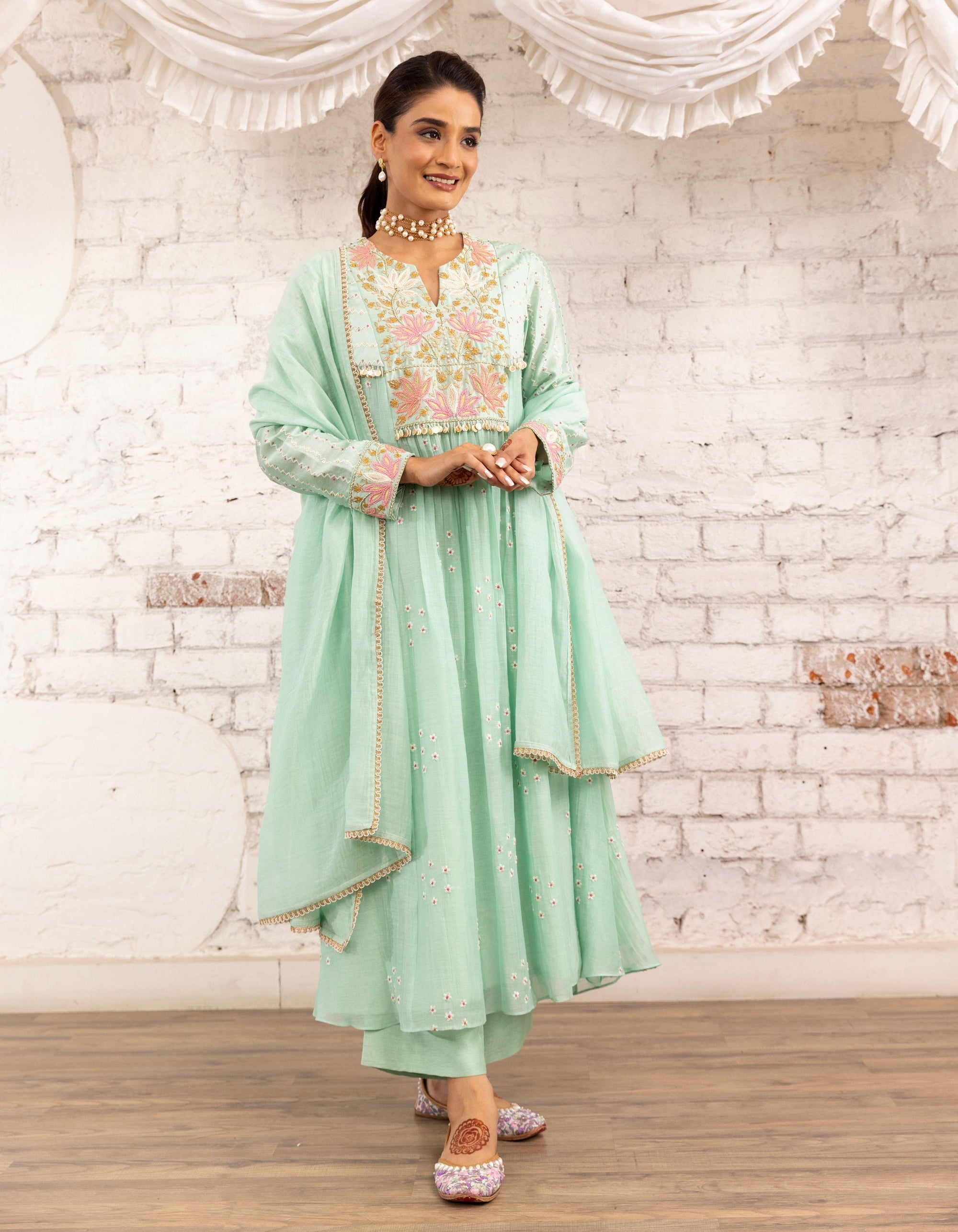 Green Lotus Yoke Noor Anarkali Kurta Set