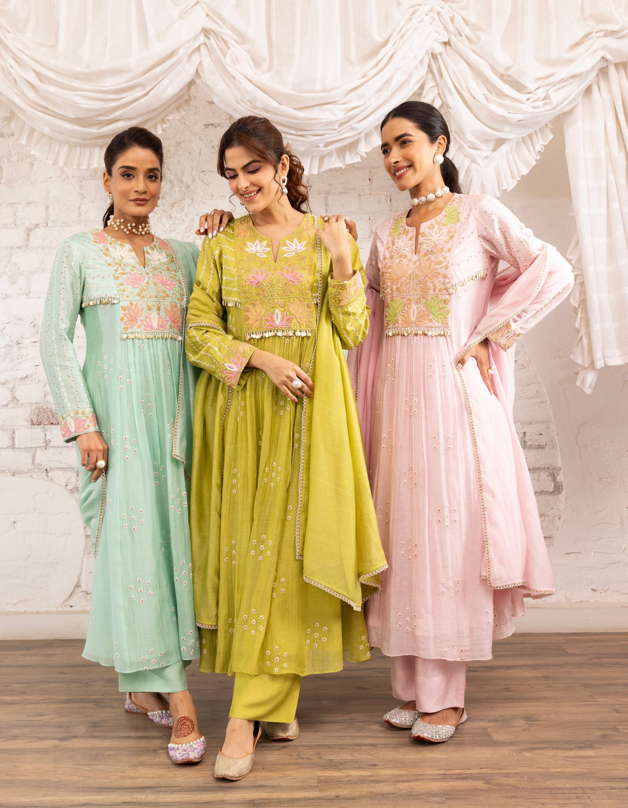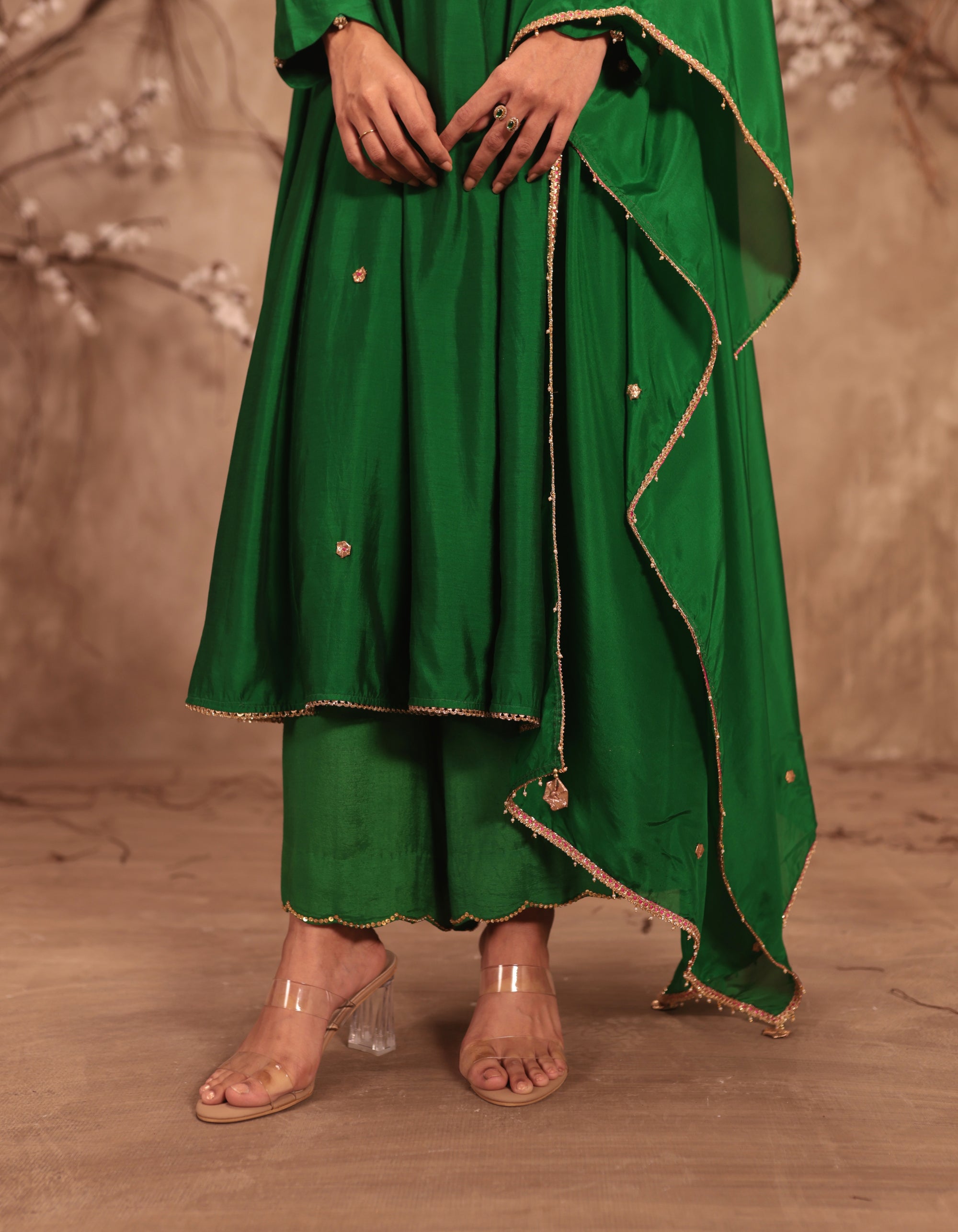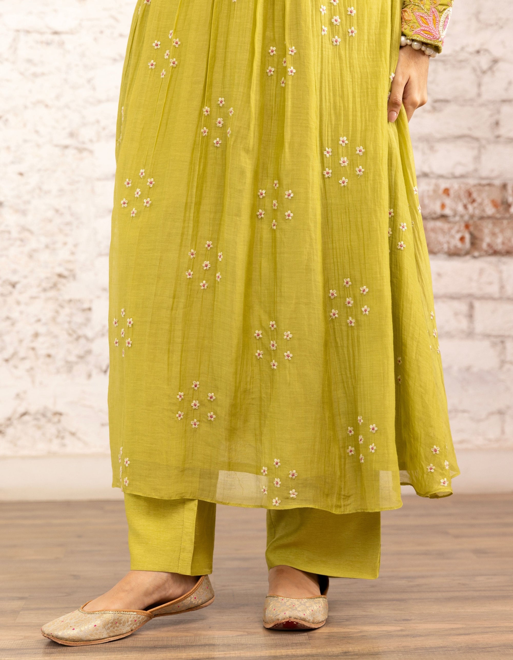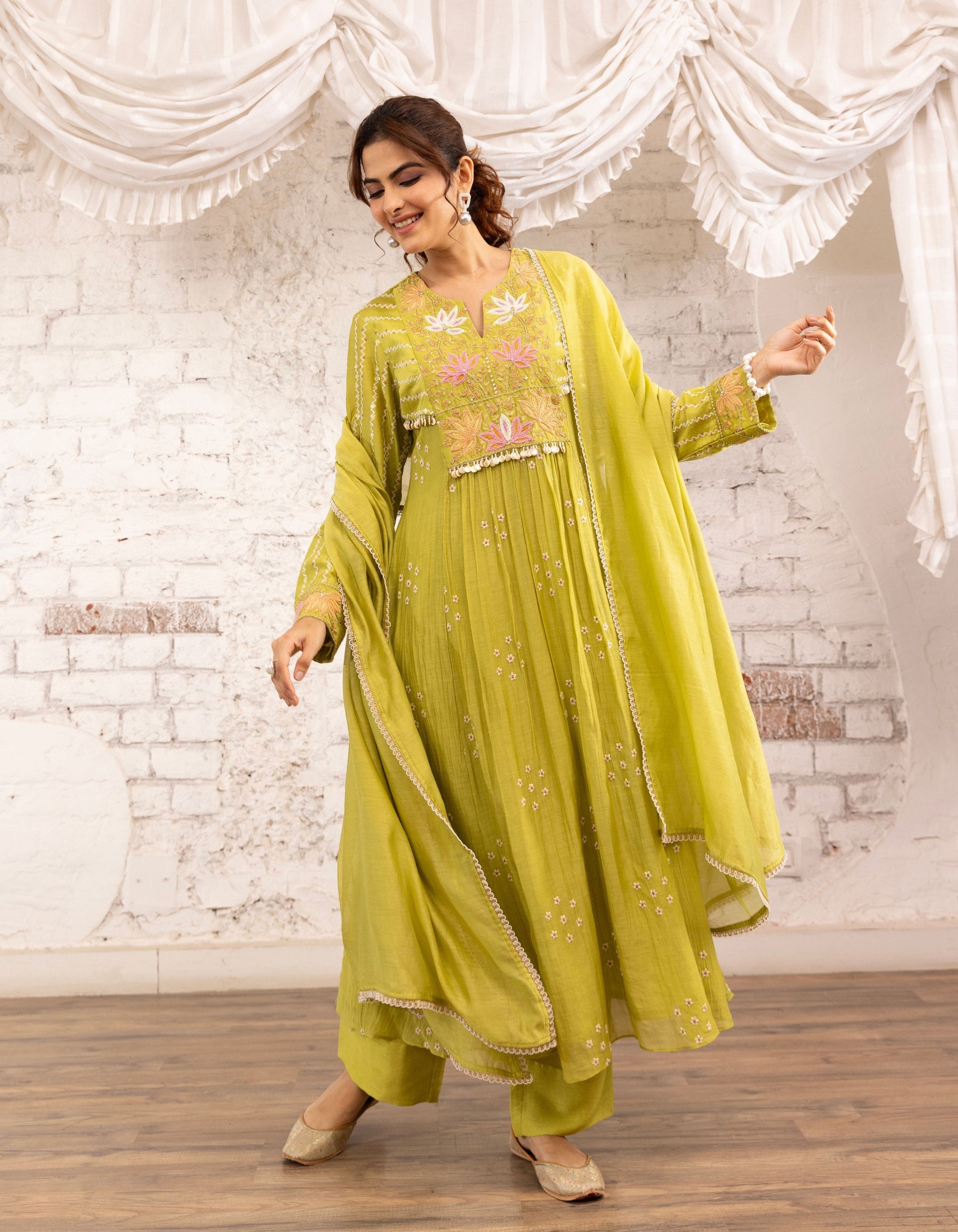 Green Lotus Yoke Noor Anarkali Kurta Set